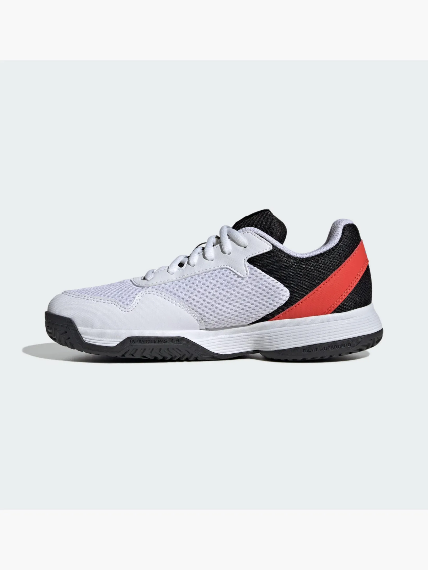 Wer beim Tennis schnell über den Platz flitzt, braucht leichte, bequeme Schuhe, die mit dem eigenen Spielstil mithalten können. Dieser adidas Courtflash Schuh für Kinder kommt mit einem Obermaterial aus Mesh für kühlen Tragekomfort und einer strapazierfähigen Adiwear Außensohle, die rasanten Richtungswechseln und flinker Beinarbeit standhält. Egal, ob dein kleiner Schatz noch die Basics übt oder bereits fortgeschritten ist – dieser Schuh ist der perfekte Allrounder.Dieses Produkt ist mit mindestens 20 % recycelten Materialien hergestellt. Die Wiederverwendung bereits vorhandener Materialien hilft uns dabei, Müll zu reduzieren, unsere Abhängigkeit von nicht erneuerbaren Ressourcen einzuschränken und den CO2-Fußabdruck unserer Produkte zu verringern.