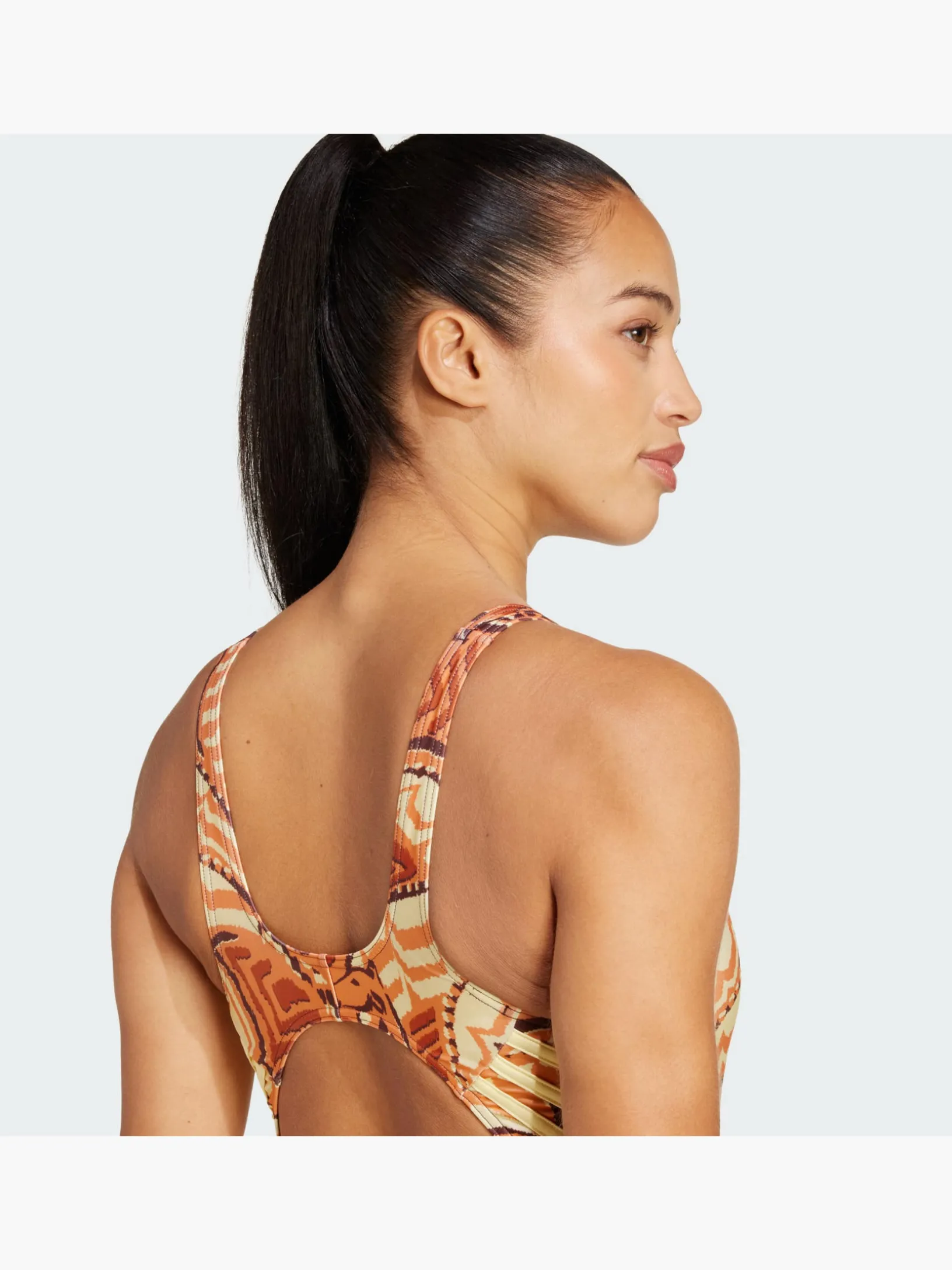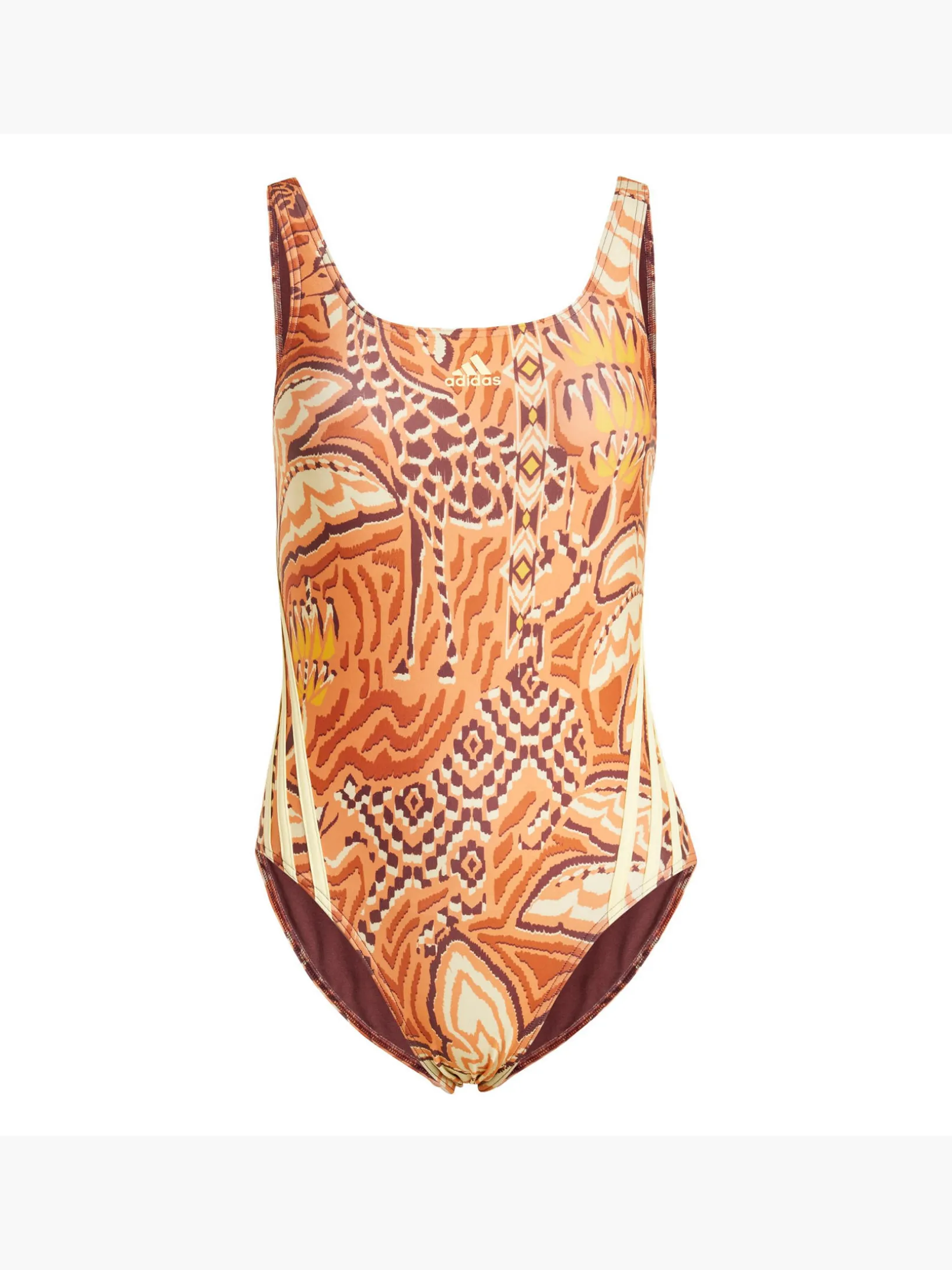 Mit diesem Badeanzug aus der Zusammenarbeit mit FARM RIO bist du bereit für deine private Oase. Er setzt deine Figur toll in Szene und versprüht mit seiner Optik exotische Vibes – die Farbpalette des lebhaften Prints ist von der Schönheit von Wüstenlandschaften inspiriert. Die 3-Streifen an den Seiten sorgen außerdem für einen sportlichen Akzent. Dieses Produkt ist mit mindestens 70 % recycelten Materialien hergestellt. Die Wiederverwendung bereits vorhandener Materialien hilft uns dabei, Müll zu reduzieren, unsere Abhängigkeit von nicht erneuerbaren Ressourcen einzuschränken und den CO2-Fußabdruck unserer Produkte zu verringern.