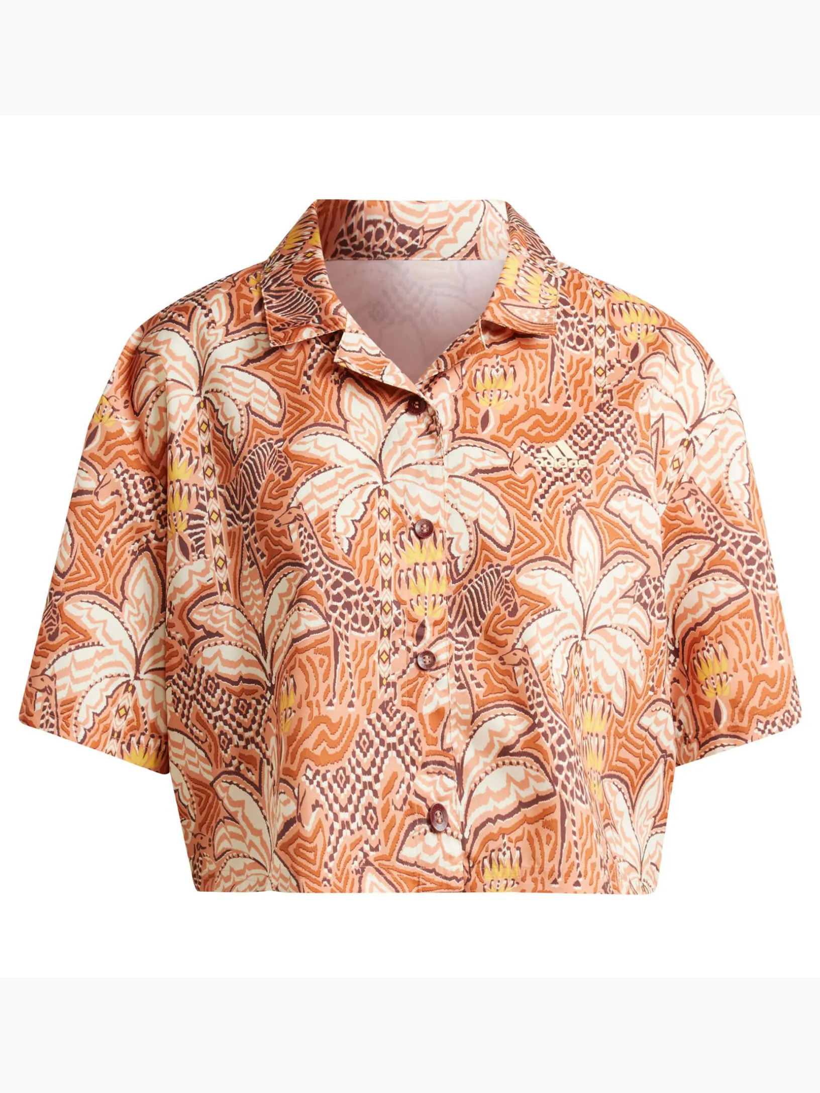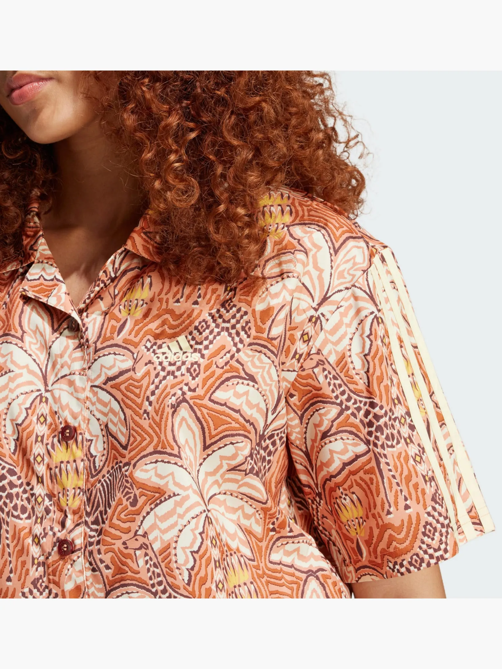 Egal, ob du auf dem Weg ins Fitnessstudio bist oder abends mit den Besties weggehst, dieses Oberteil ist dein perfekter Begleiter. Das leichte, atmungsaktive Material sorgt für ein angenehmes Tragegefühl bei warmem Wetter und der tropische Allover-Print für reichlich gute Laune. Das lockere Design ist zudem etwas kürzer geschnitten und macht jede Bewegung mit. Abgerundet wird das Statement-Piece mit aufgestickten Logos von adidas und FARM – zwei Brands, die für Kreativität und Individualität stehen.Dieses Produkt ist mit 100 % recycelten Materialien hergestellt. Die Wiederverwendung bereits vorhandener Materialien hilft uns dabei, Müll zu reduzieren, unsere Abhängigkeit von nicht erneuerbaren Ressourcen einzuschränken und den CO2-Fußabdruck unserer Produkte zu verringern.