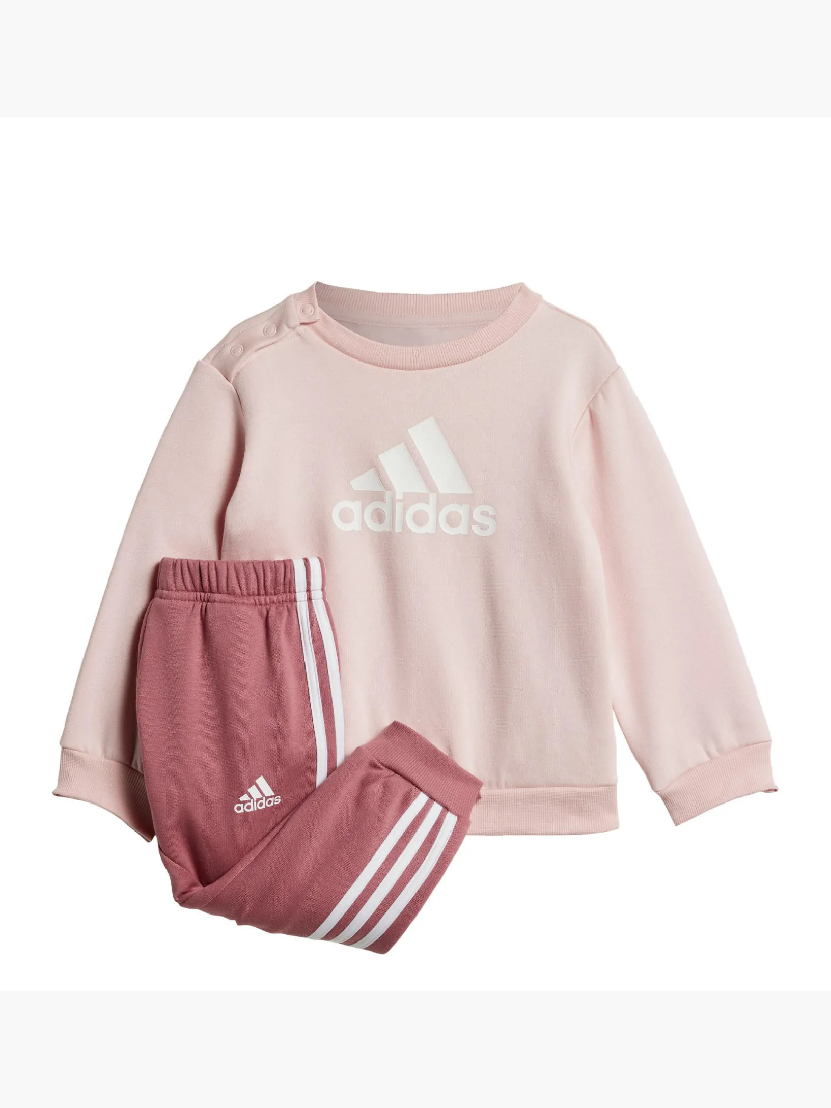 Dein kleiner Schatz sieht dir gern beim Workout zu? Mit diesem Jogginganzug für Babys und Kleinkinder gehören schon die ganz Kleinen zum Trainingsteam. Die sportlichen 3-Streifen entlang der Beine und das große adidas Logo auf dem Sweatshirt sorgen dabei für eine Extraportion Style. Und was ist heute angesagt? Den ganzen Tag spielen.Mit deinem Kauf von einem adidas Baumwollprodukt unterstützt du den nachhaltigen Anbau von Baumwolle. Wir von adidas haben Plastikmüll den Kampf angesagt und daher wurde das Design mit recycelten Materialien hergestellt.
