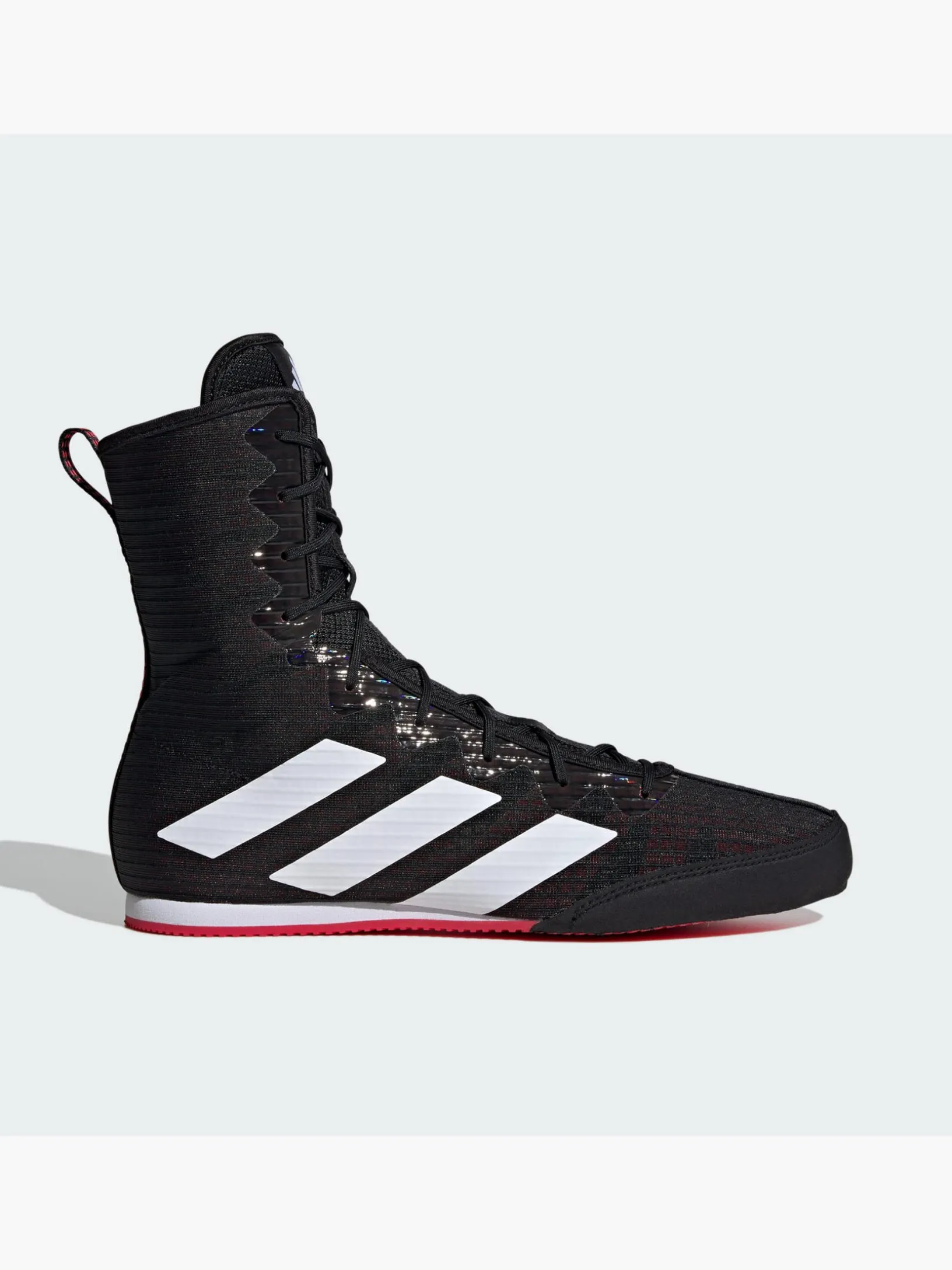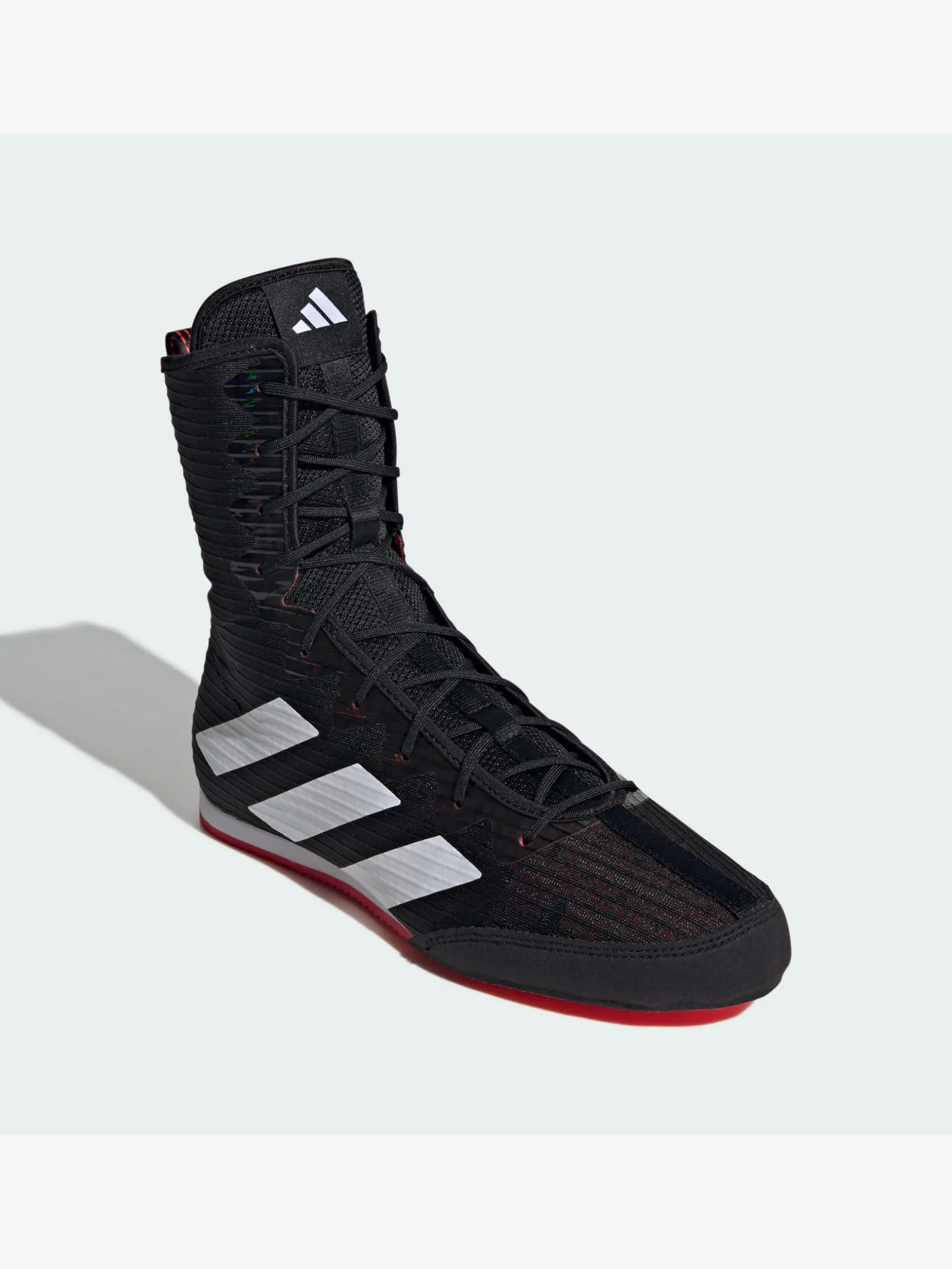 Bestens bewährt: Der adidas Box Hog Boxschuh ist im Gym und im Ring zu Hause und sorgt mit dem atmungsaktiven Obermaterial aus Mesh und innen liegenden Verstärkungen dafür, dass du dich bei jedem Kampf volle Power geben kannst. Die gestanzte EVA-Zwischensohle in Keilform unterstützt deinen Mittelfuß und garantiert einen stabilen Stand. Darunter sorgt die Außensohle für Grip in alle Richtungen, perfekt für eine schnelle Beinarbeit.Das Obermaterial hat einen Recycling-Anteil von mindestens 50 %. Dieses Produkt ist nur eine unserer Lösungen im Kampf gegen Plastikmüll.