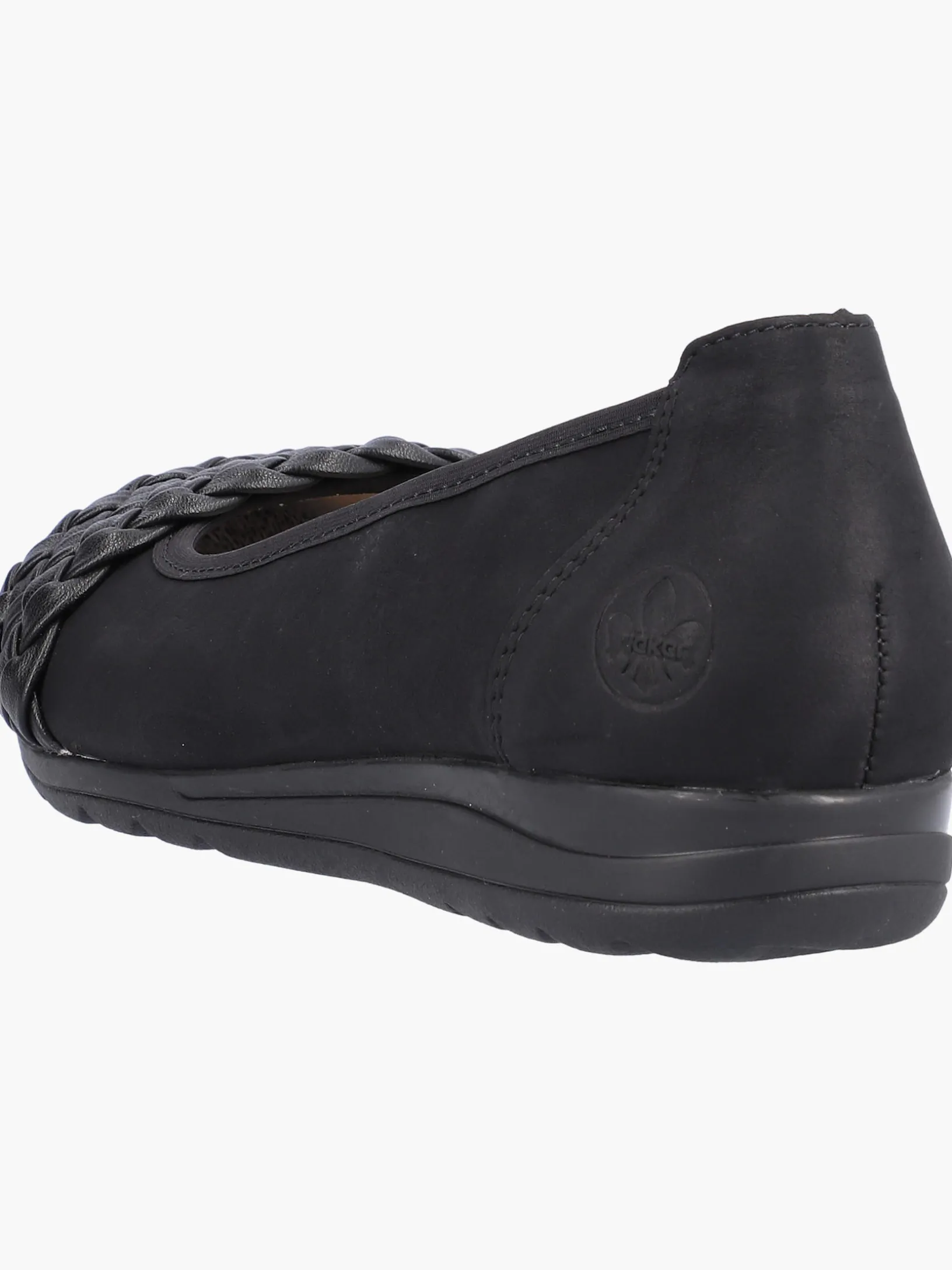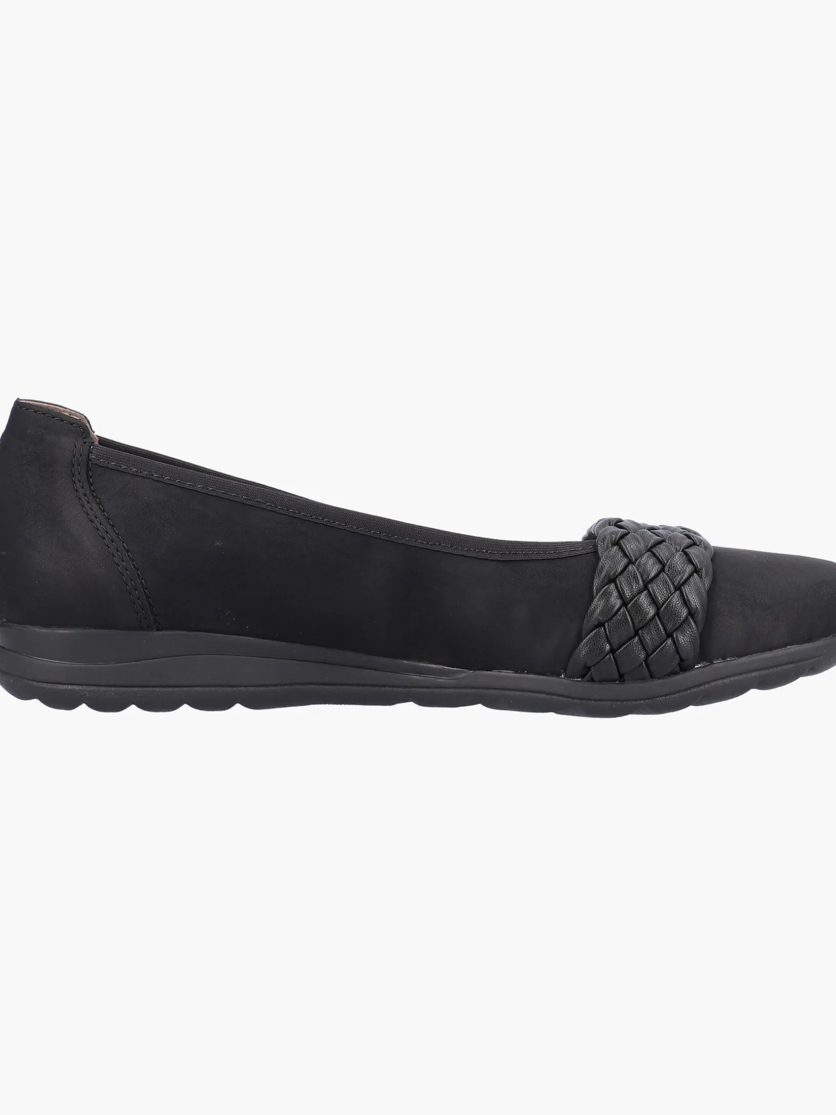 All-time favorite! Mit diesen nachtschwarzen Rieker Ballerinas wird die warme Saison noch schöner! Der Schuh hat keinen Verschluss und kann so in Windeseile angezogen werden. Stylische Eyecatcher sind die Riemen in Flechtoptik. Die griffige Sohle überzeugt auf ganzer Linie und die Decksohle ist extra weich. Trageluxus pur!