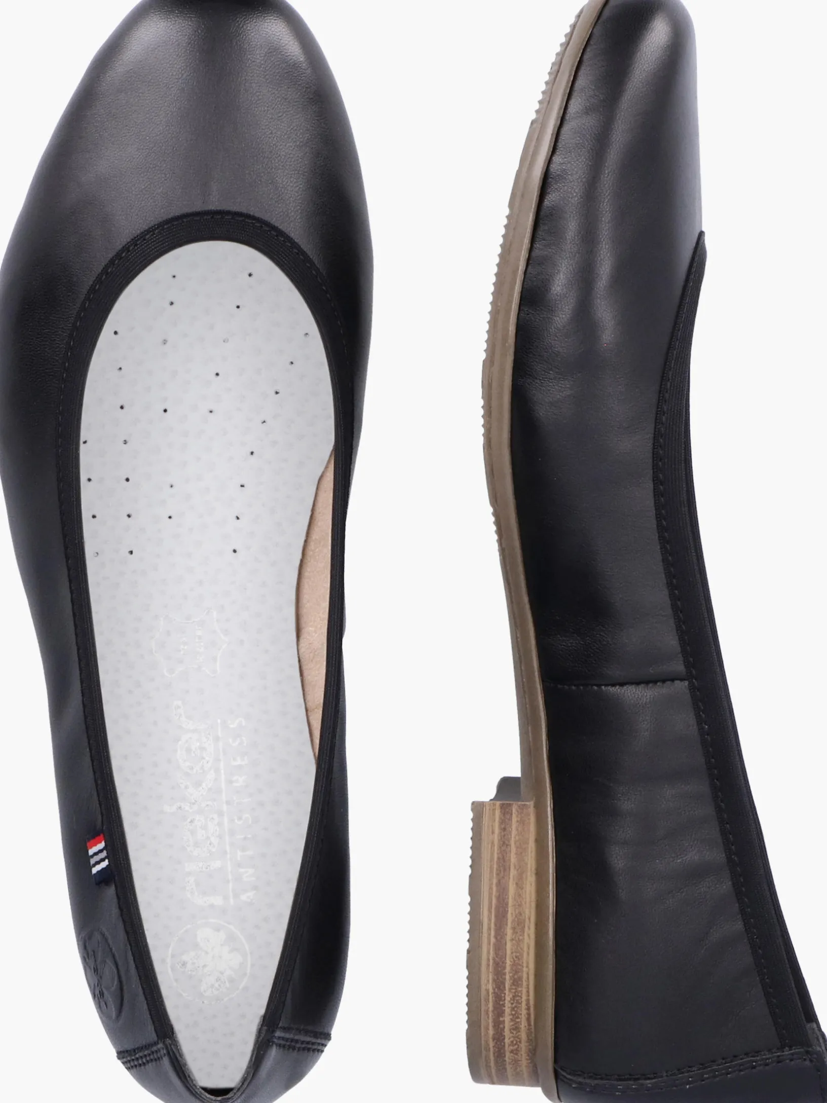 Summer Love! Diese glanzschwarzen Rieker Ballerinas aus Glattleder überzeugen durch modernes Design und hohen Tragekomfort. Das Modell hat keinen Verschluss und kann so in Windeseile angezogen werden. Die schockabsorbierende und leichte Sohle sorgt für ein angenehmes Laufgefühl auch bei langem Tragen und die extra weiche Decksohle sorgt für mehr Tragekomfort. Also nichts wie los!
