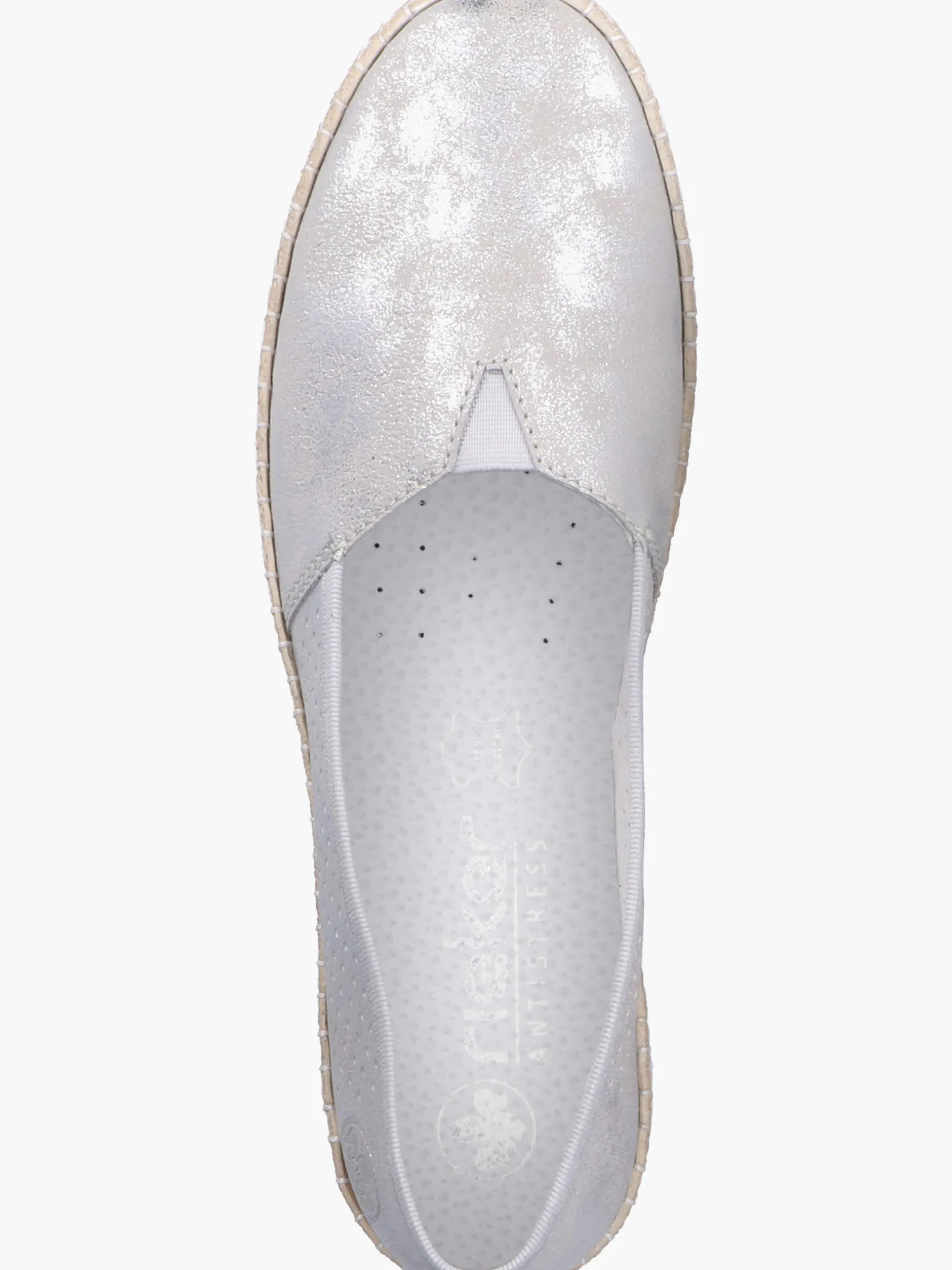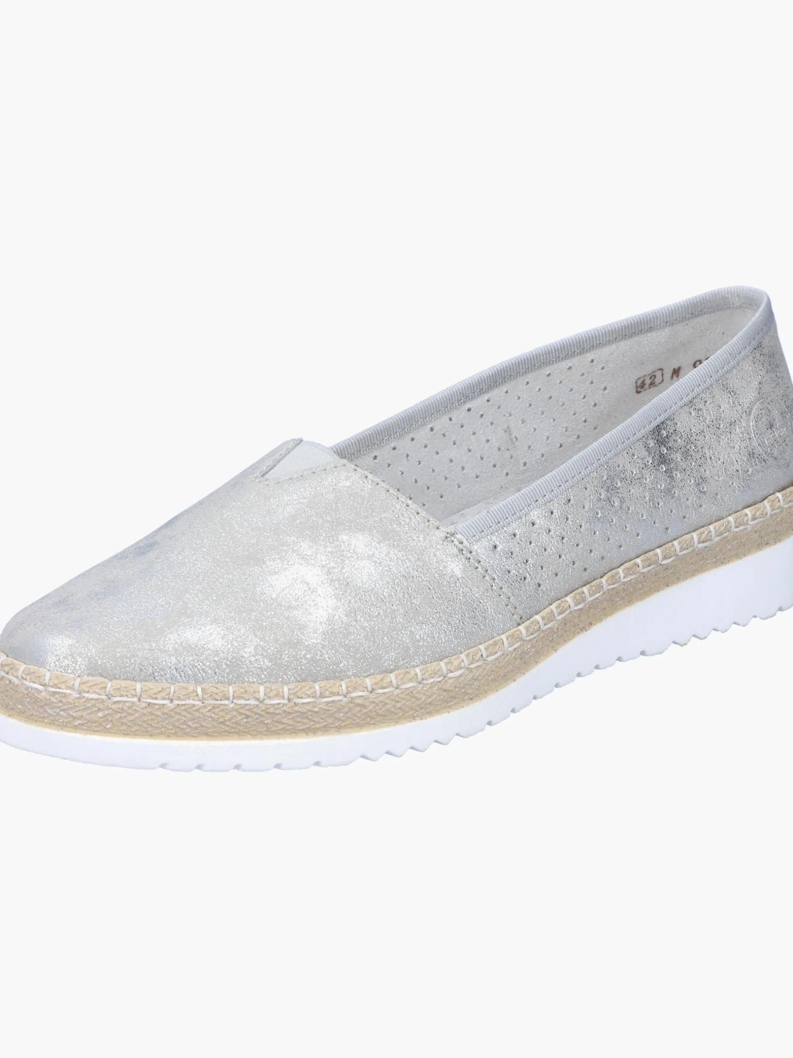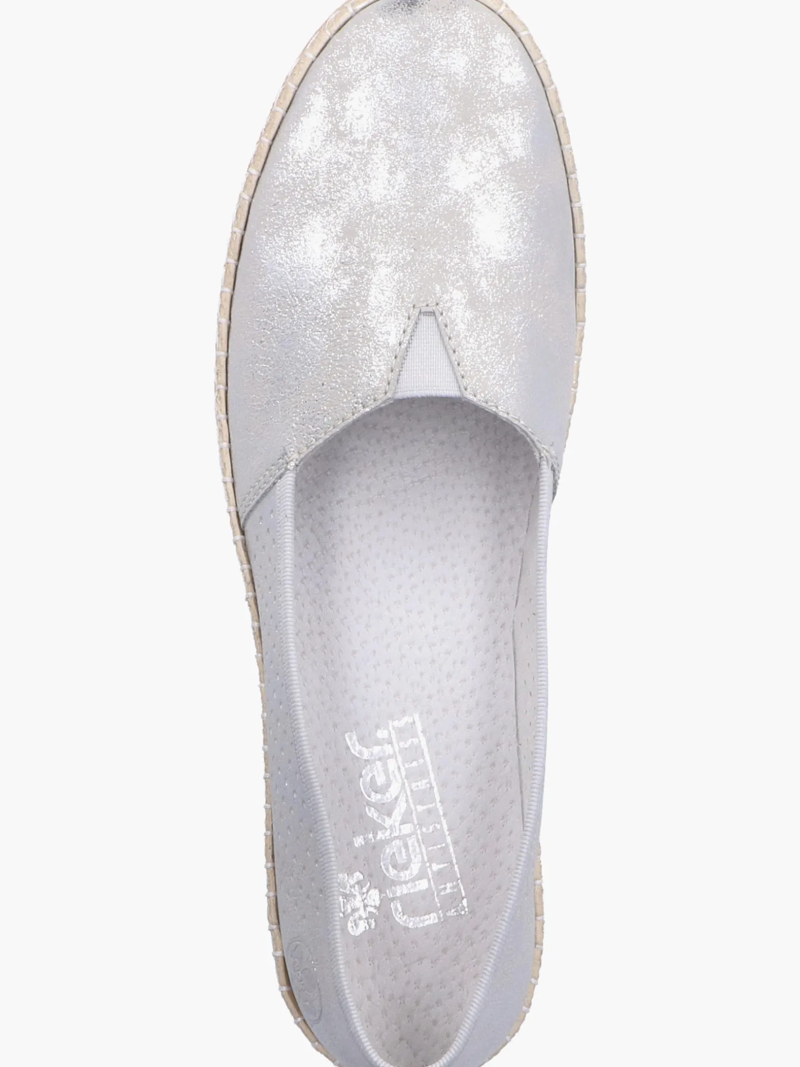 Schöne Tage, schöne Schuhe! Diesen silbernen Rieker Ballerina möchte man gar nicht mehr ausziehen. Der Elastikeinsatz ermöglicht einen bequemen Einstieg. Mit der leichten und schockabsorbierenden Sohle freuen sich die Füße über besten Laufkomfort bei jedem Schritt. Ein weiteres Plus ist die extra weiche Decksohle. Also nichts wie los!