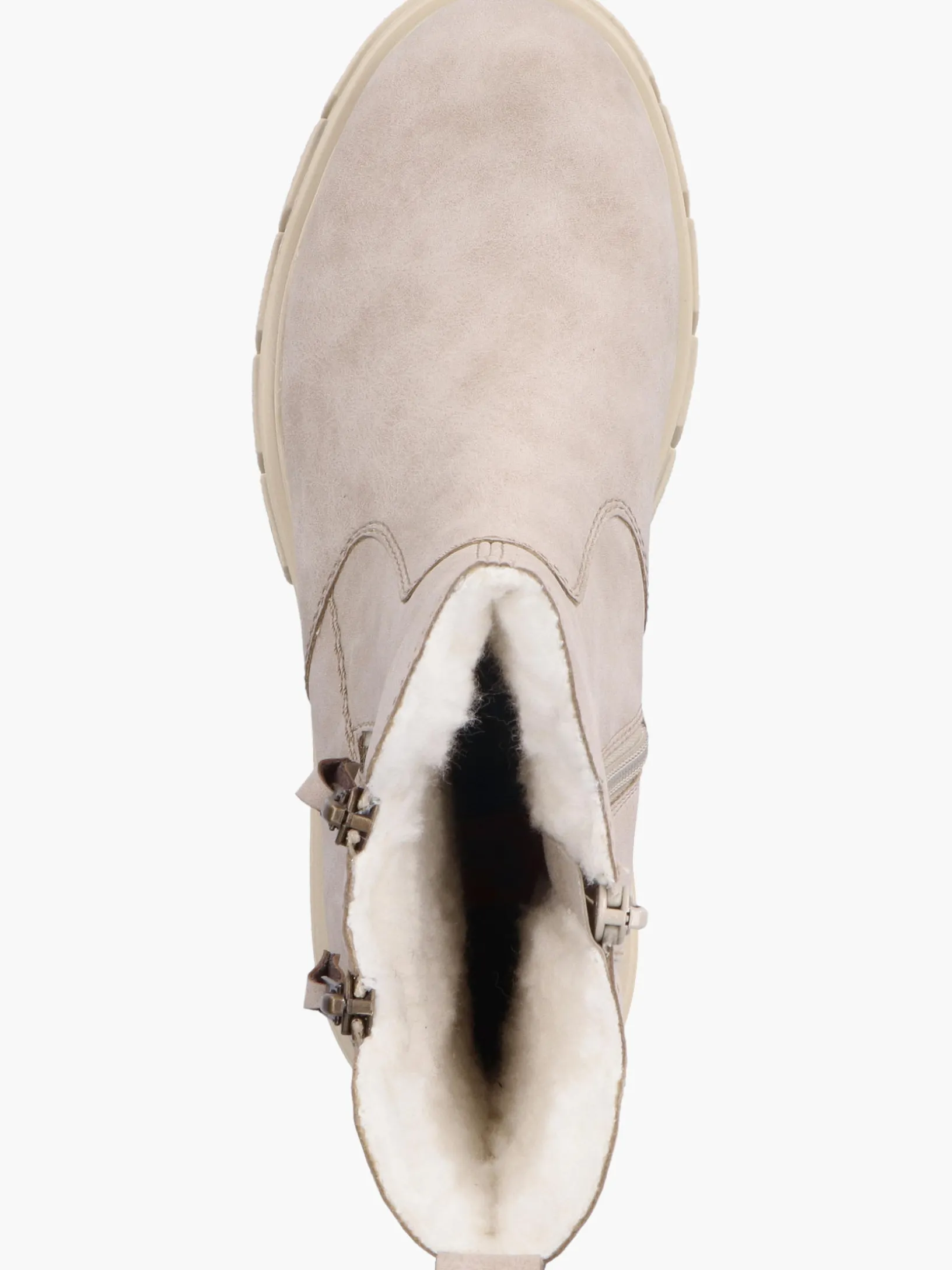 Frieren? No way! Diese sandbeigen Biker Boots sind ein komfortabler Begleiter. Der seitliche Reißverschluss ermöglicht ein einfaches An- und Ausziehen. Der modische Doppelreißverschluss an der Seite frischt das Design gekonnt auf. Die robuste Profilsohle gibt Halt auf unterschiedlichen Wegen. Obendrein sorgt die extra weiche Decksohle für eine Extraportion Tragekomfort. Auch in puncto Komfort trifft man dank dem kuscheligen Warmfutter ins Schwarze. Rock it baby!