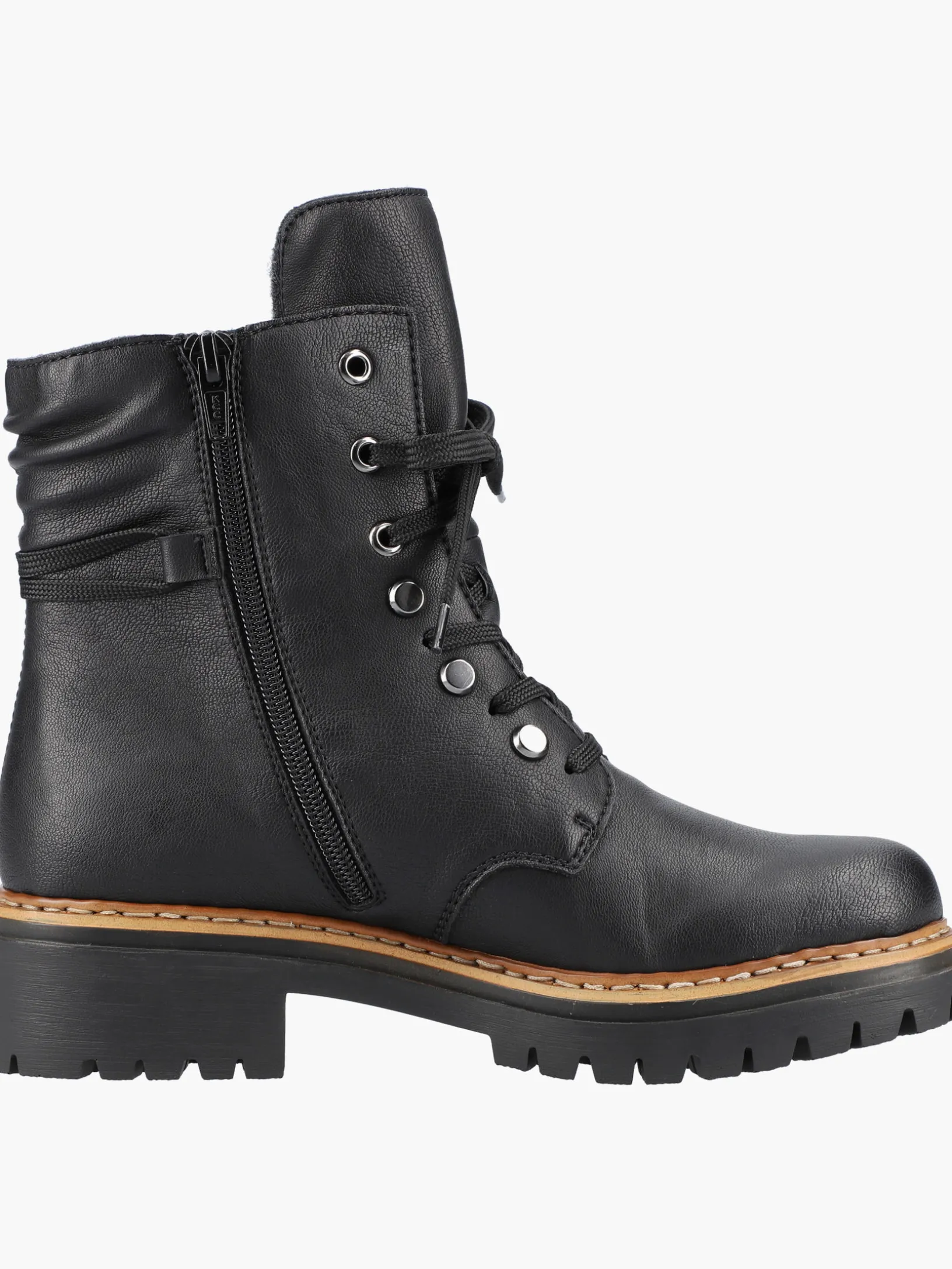 Komfort und gutes Aussehen – das geht! Diese tiefschwarzen Biker Boots von Rieker garantieren ein himmlisches Tragegefühl. Die clevere Kombination aus Schnürung und Reißverschluss garantiert eine perfekte Passform und optimalen Halt. Mit der schockabsorbierenden und leichten Sohle werden deine Füße bei jedem Schritt verwöhnt und die Decksohle ist extra weich. Das Modell ist auch für Frauen mit großen Füßen die perfekte Wahl, denn es gibt den Schuh bis zur Schuhgröße 43. 100% Lieblingsschuh-Potential!