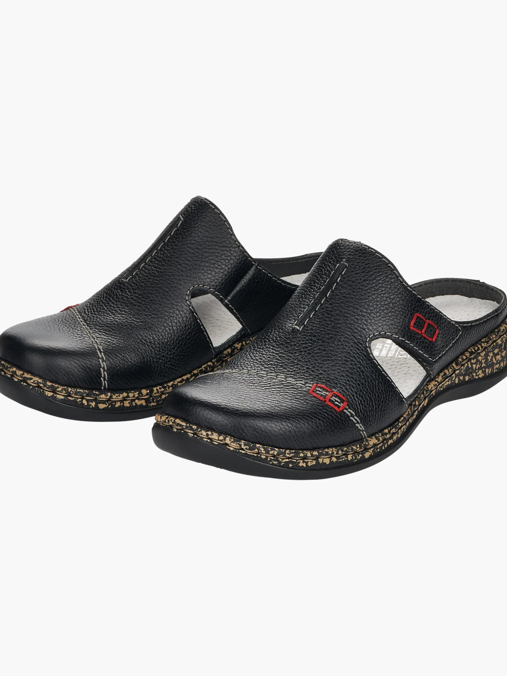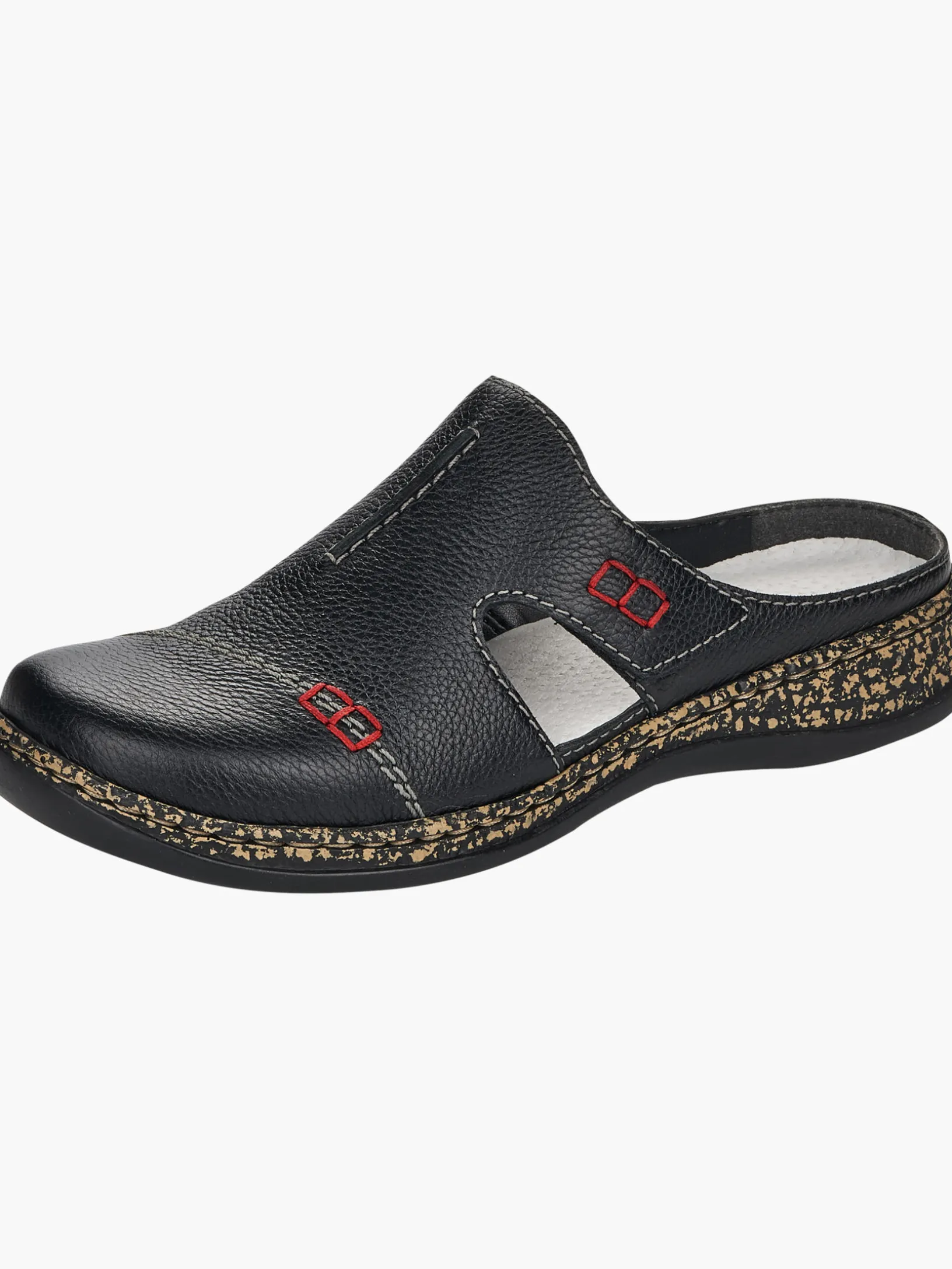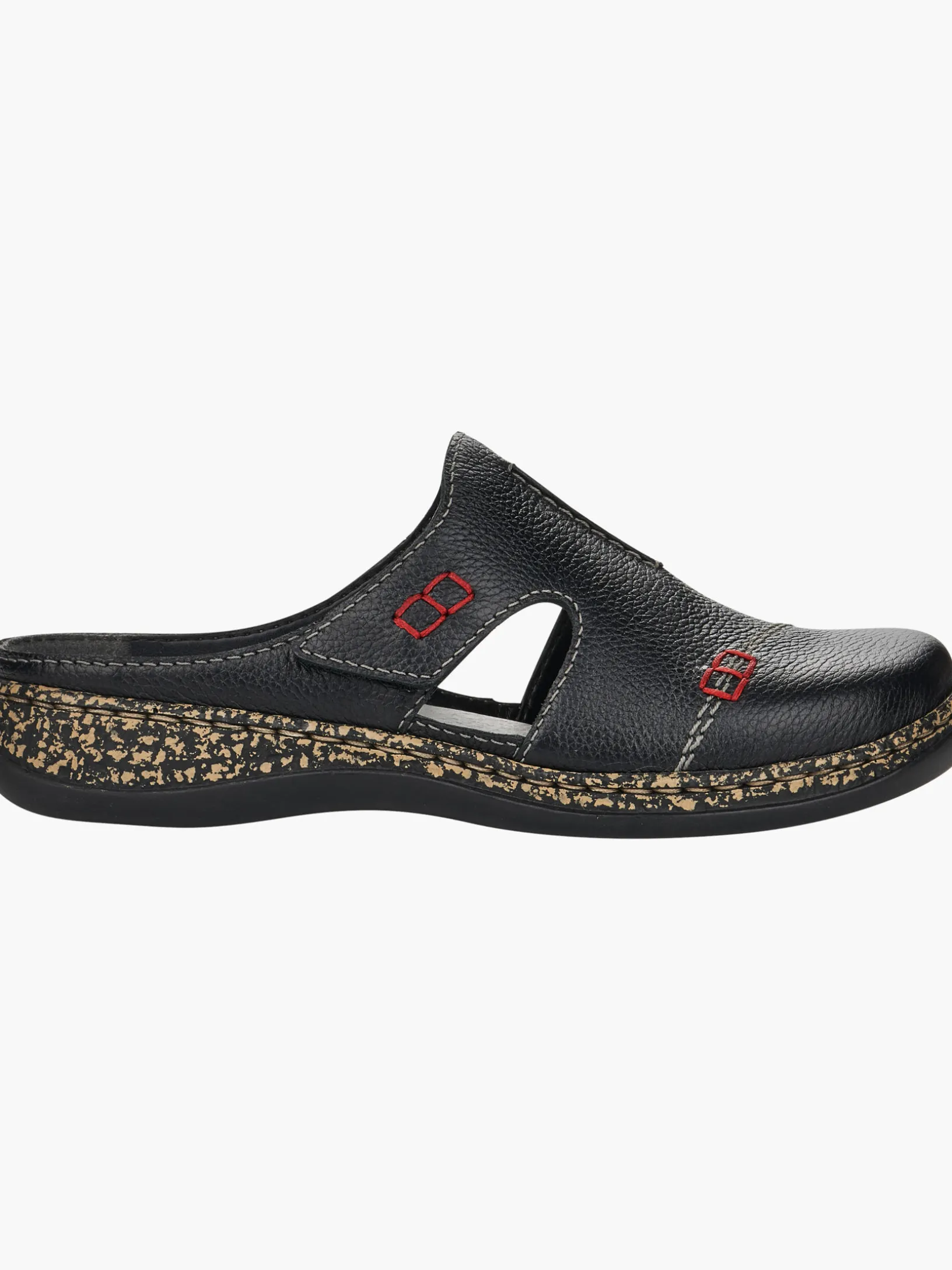 Fashion meets Function. Mit diesen nachtschwarzen Rieker Clogs für Damen aus Glattleder wird die warme Saison noch schöner! Ein Klettverschluss ermöglicht einen schnellen und bequemen Einstieg. Die Sohle ist sowohl leicht als auch schockabsorbierend und bietet damit ein doppeltes Wohlgefühl bei jedem Schritt. Ein weiteres Plus ist die extra weiche Decksohle. Alles in einem – top!