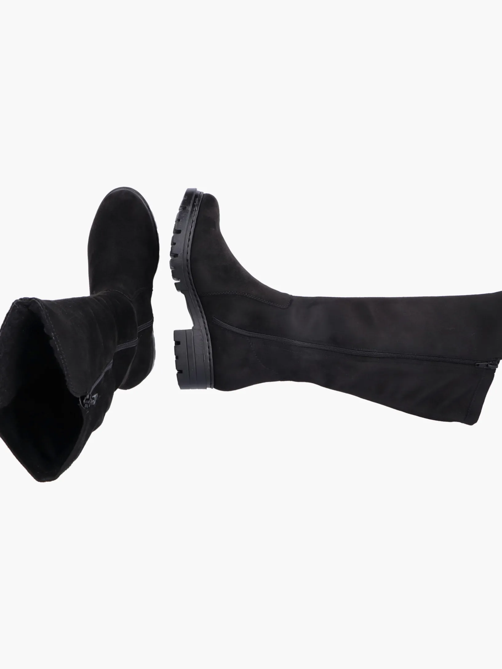 Fashion meets Function. Diese tiefschwarzen Hochschaftstiefel sind ein komfortabler Begleiter. Für ein bequemes An- und Ausziehen sorgt der Reißverschluss. Mit der robusten Profilsohle ist trittsicheres Gehen eine Selbstverständlichkeit und die extra weiche Decksohle ist ein weiteres Plus. Der Schuh ist optional auch in Übergrößen erhältlich. Weiches Warmfutter macht diesen Hochschaftstiefel zum optimalen Begleiter – perfekt für nass-kalte Tage. Da haben die Minustemperaturen schlechte Karten!