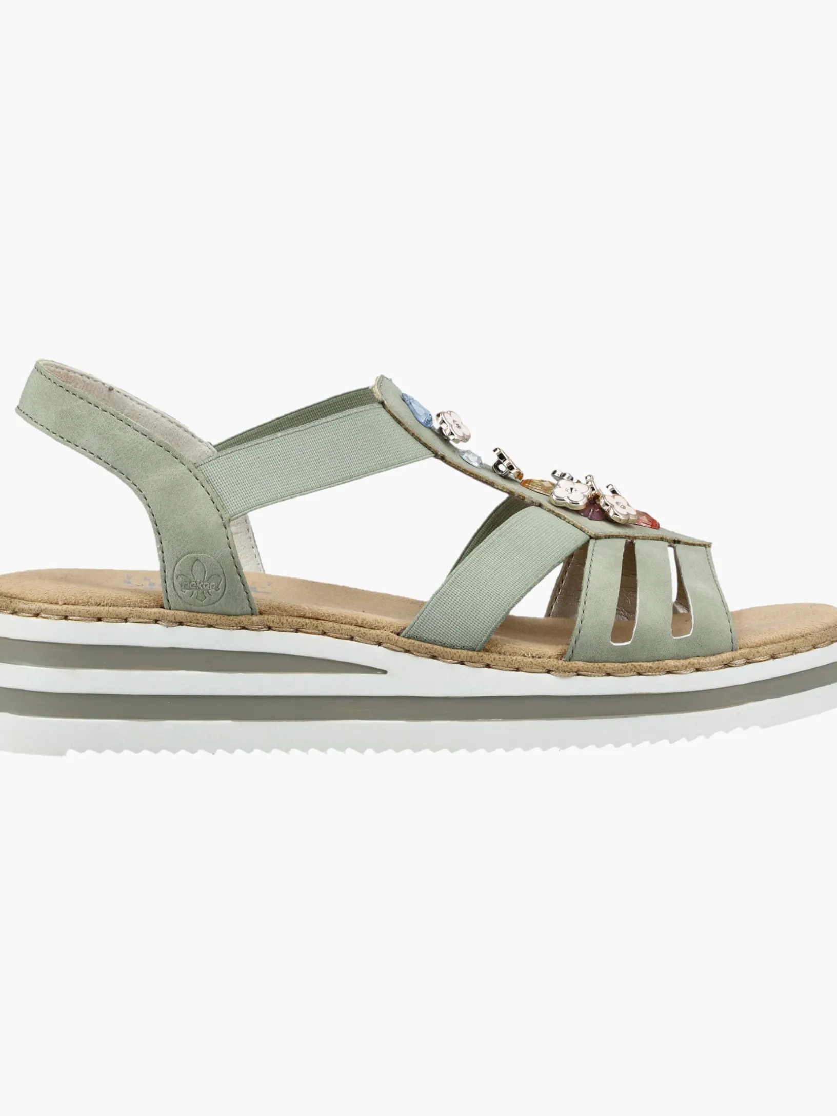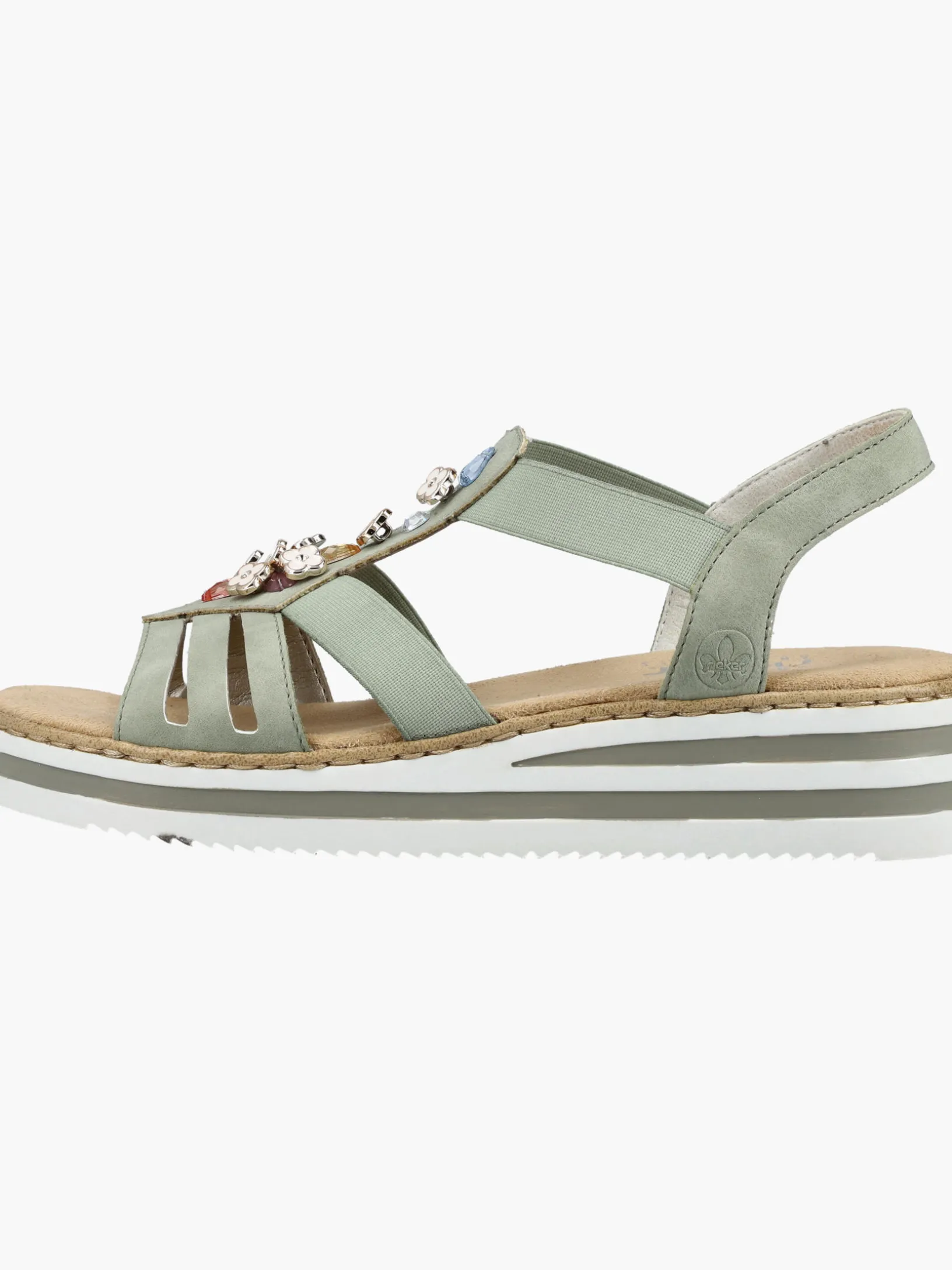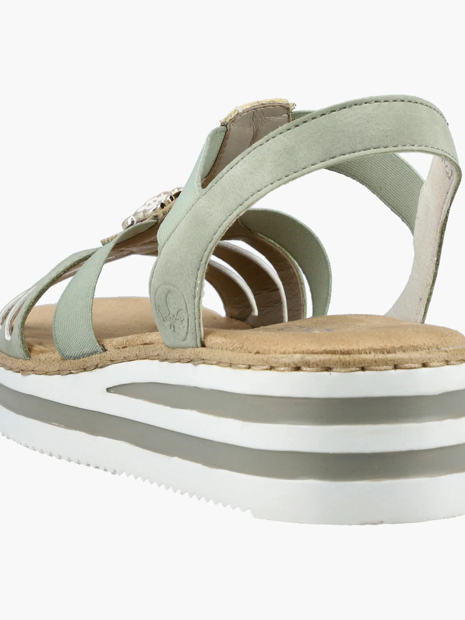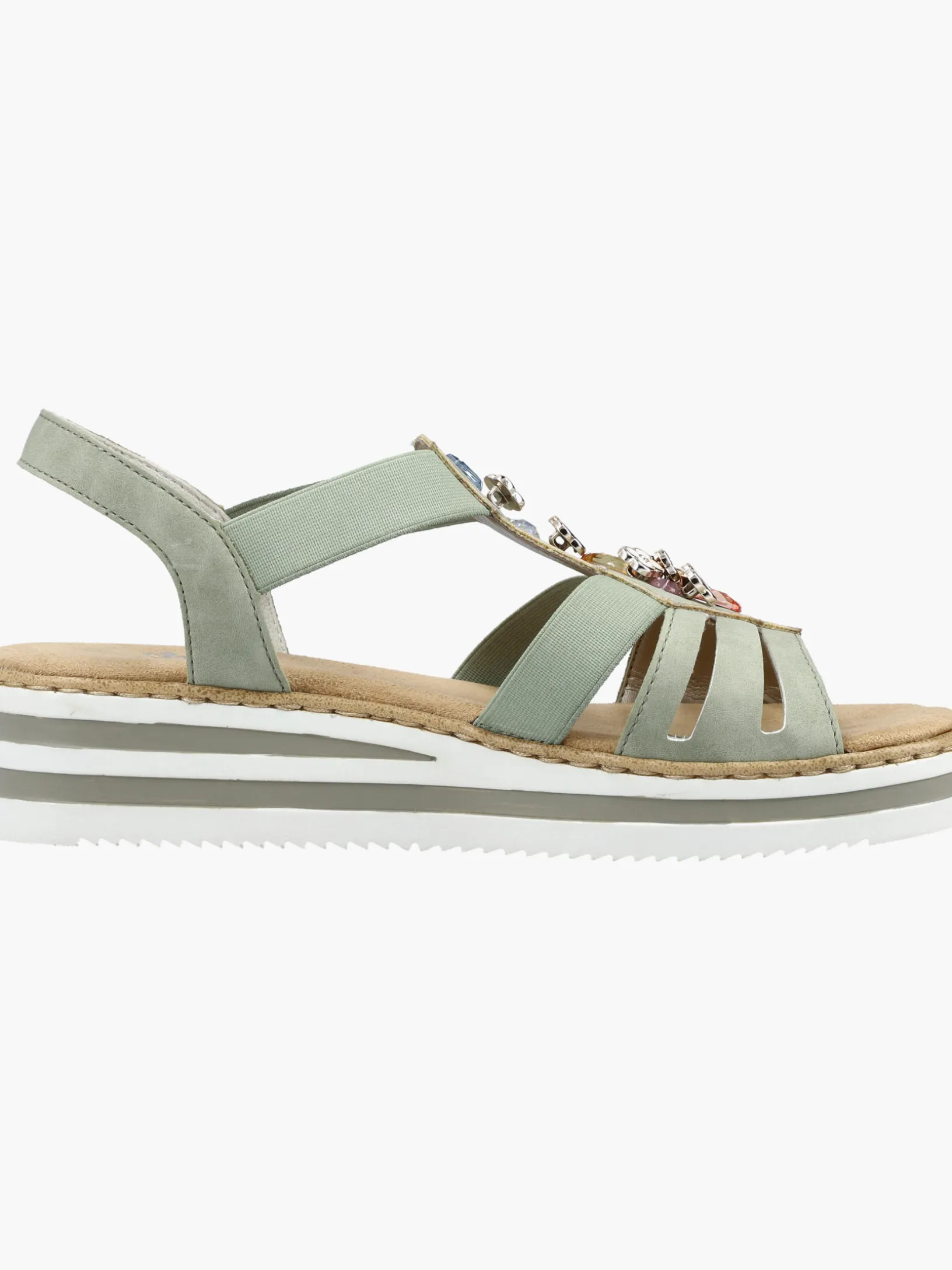 Fashion-Lovers aufgepasst: Die Rieker Must-Haves sind da! Diese mintgrüne Rieker Keilsandalette überzeugt durch modernes Design und hohen Tragekomfort. Einen zusätzlichen Pluspunkt stellen der Elastikeinsatz und der schmale Fersenriemen dar, die optimalen Halt verleihen und super zum optischen Gesamtbild passen. Die stilvollen Schmuckelemente sind schöne Hingucker. Die schockabsorbierende und leichte Sohle bietet besten Laufkomfort und die extra weiche Decksohle ist ein weiteres Plus. Durch die schmale Passform E 1/2 sitzt der Schuh wie angegossen. Modisches Wohlgefühl im Stil von Rieker!