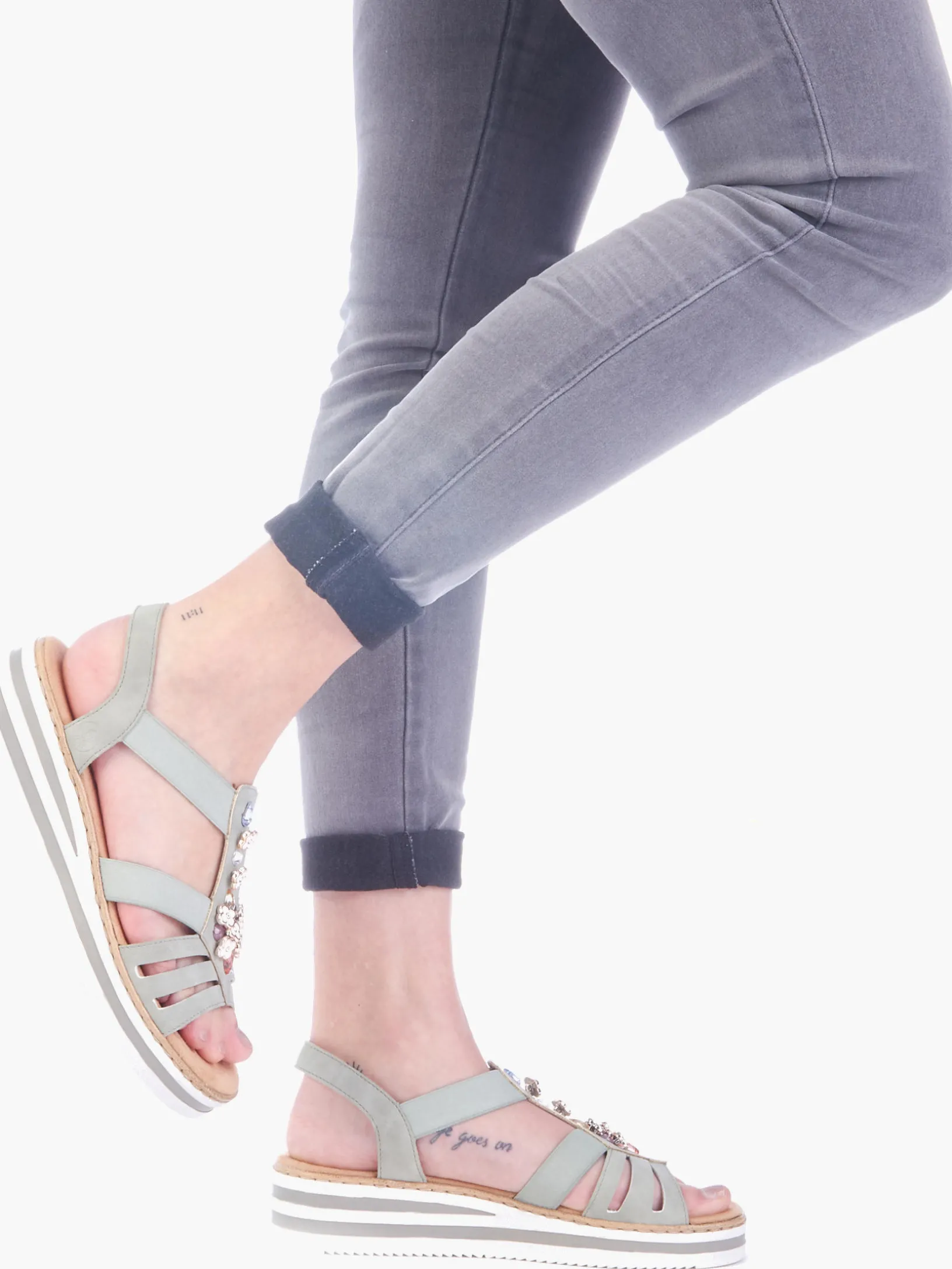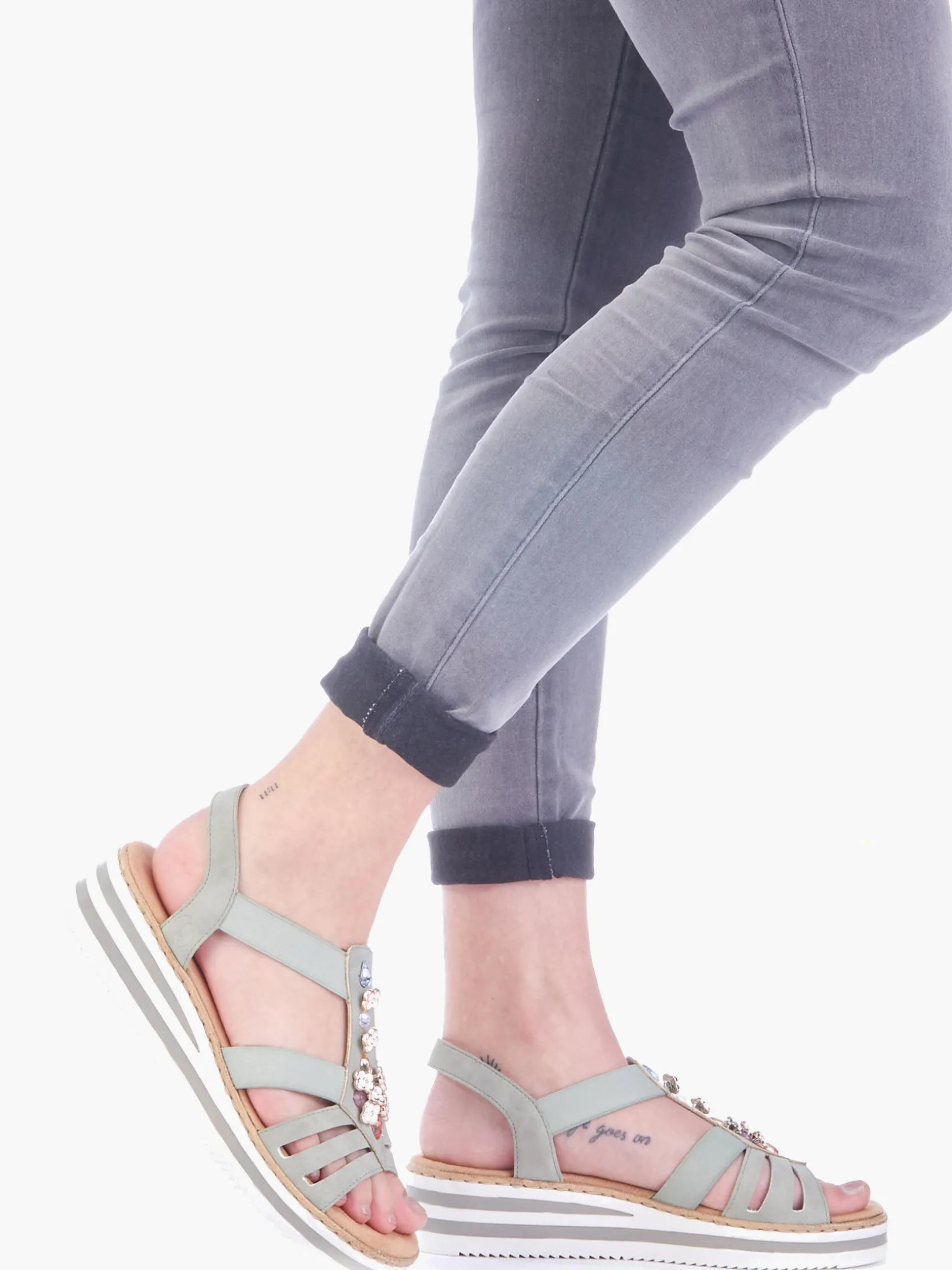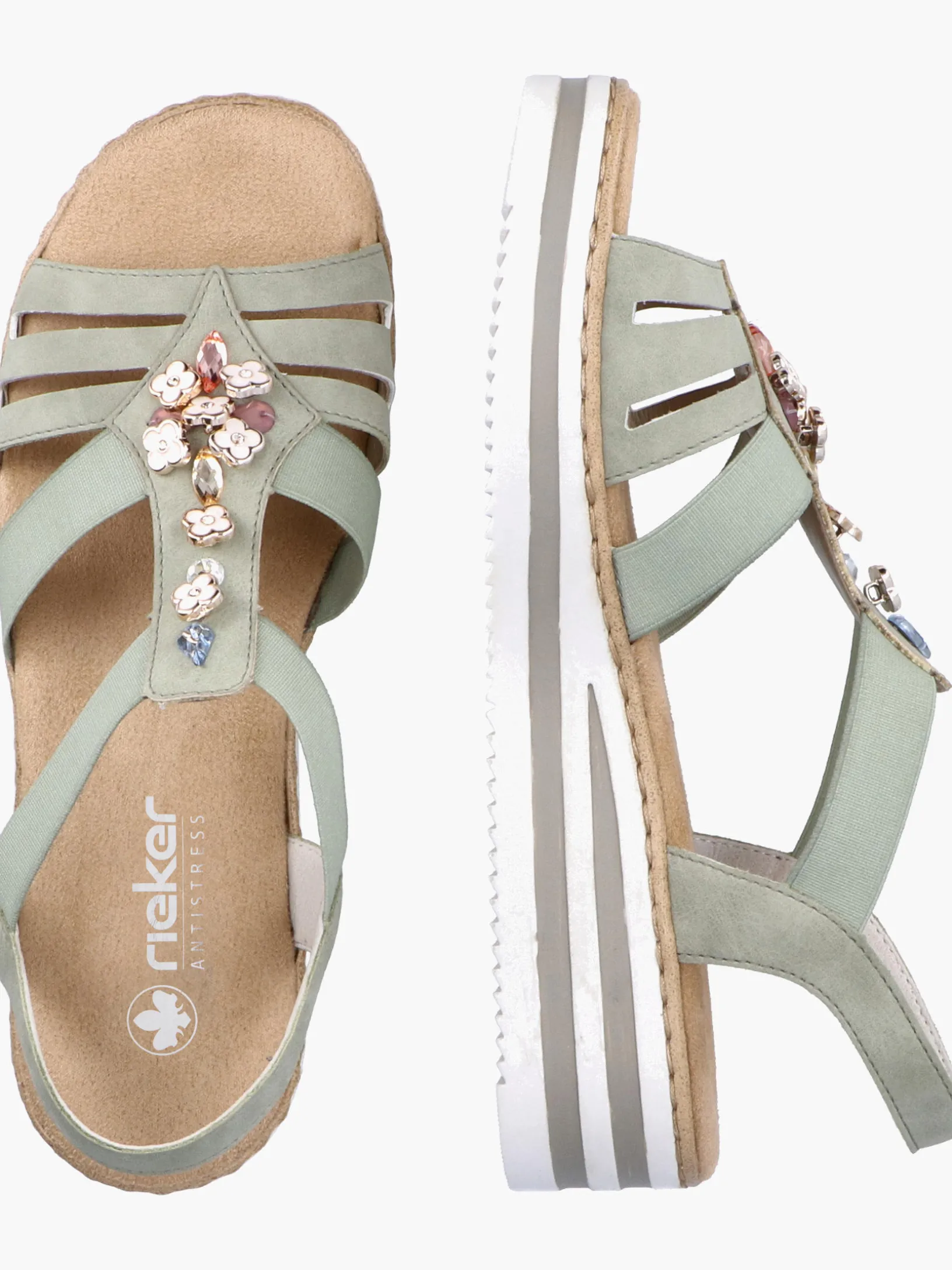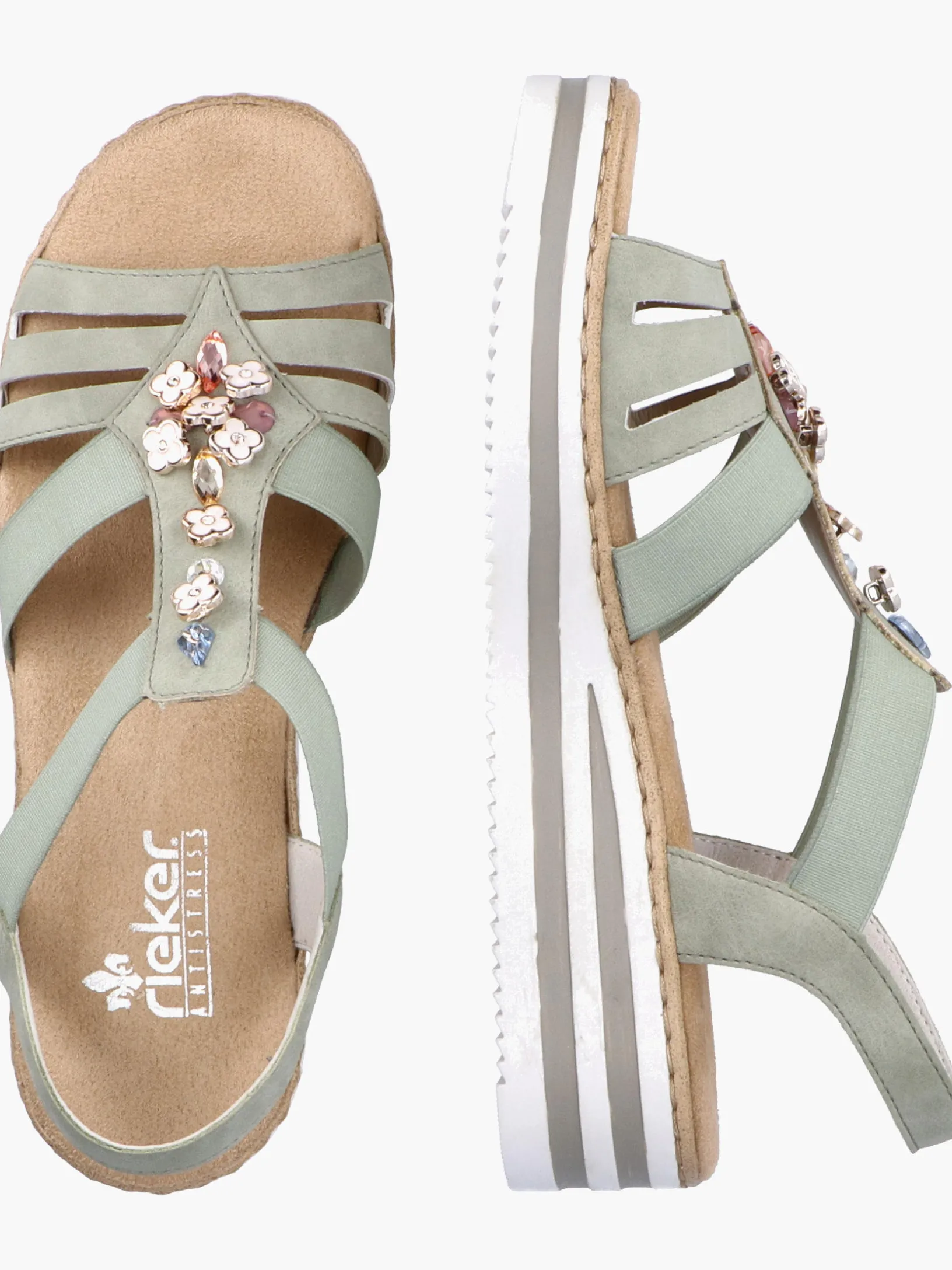 Fashion-Lovers aufgepasst: Die Rieker Must-Haves sind da! Diese mintgrüne Rieker Keilsandalette überzeugt durch modernes Design und hohen Tragekomfort. Einen zusätzlichen Pluspunkt stellen der Elastikeinsatz und der schmale Fersenriemen dar, die optimalen Halt verleihen und super zum optischen Gesamtbild passen. Die stilvollen Schmuckelemente sind schöne Hingucker. Die schockabsorbierende und leichte Sohle bietet besten Laufkomfort und die extra weiche Decksohle ist ein weiteres Plus. Durch die schmale Passform E 1/2 sitzt der Schuh wie angegossen. Modisches Wohlgefühl im Stil von Rieker!