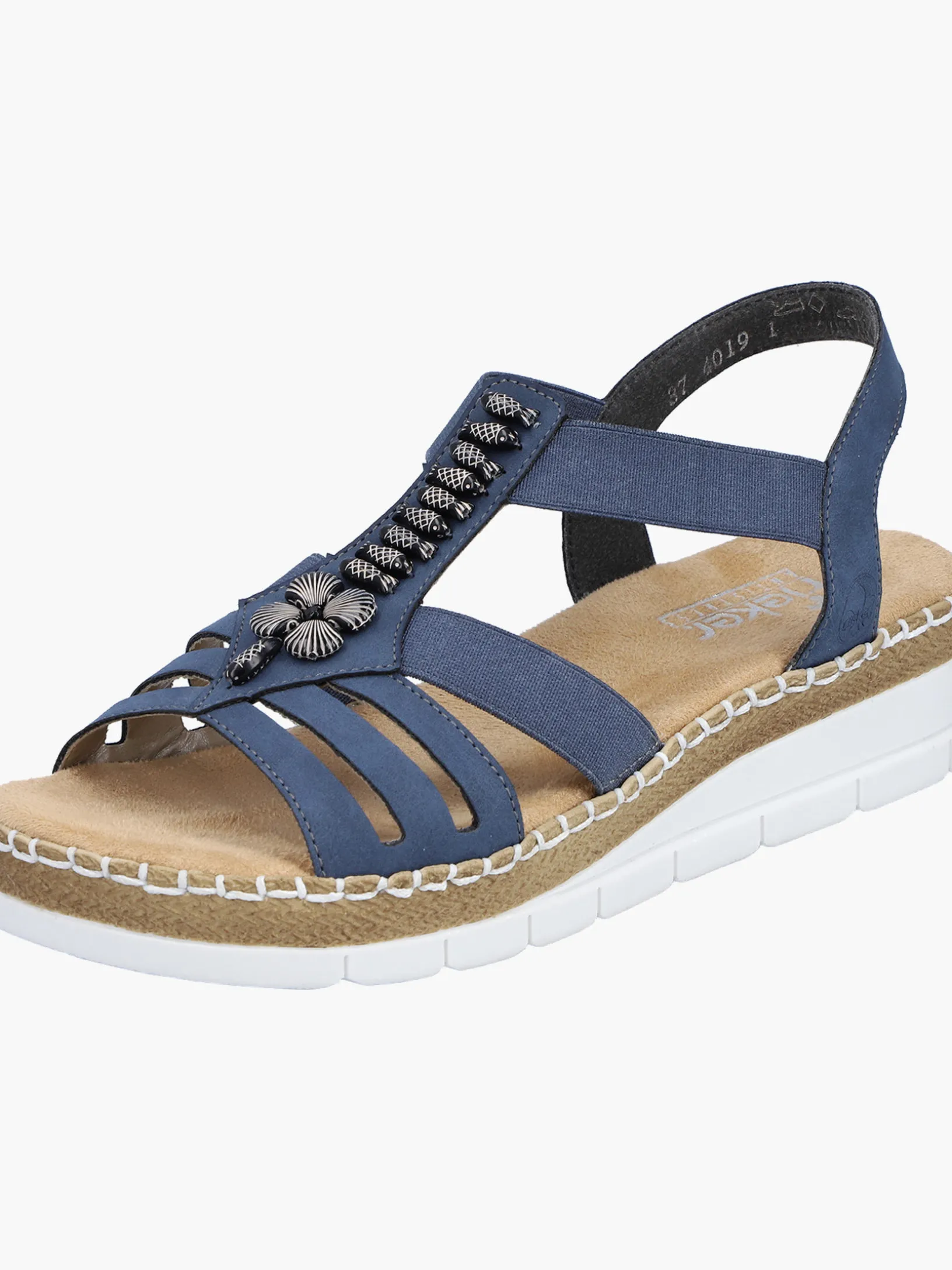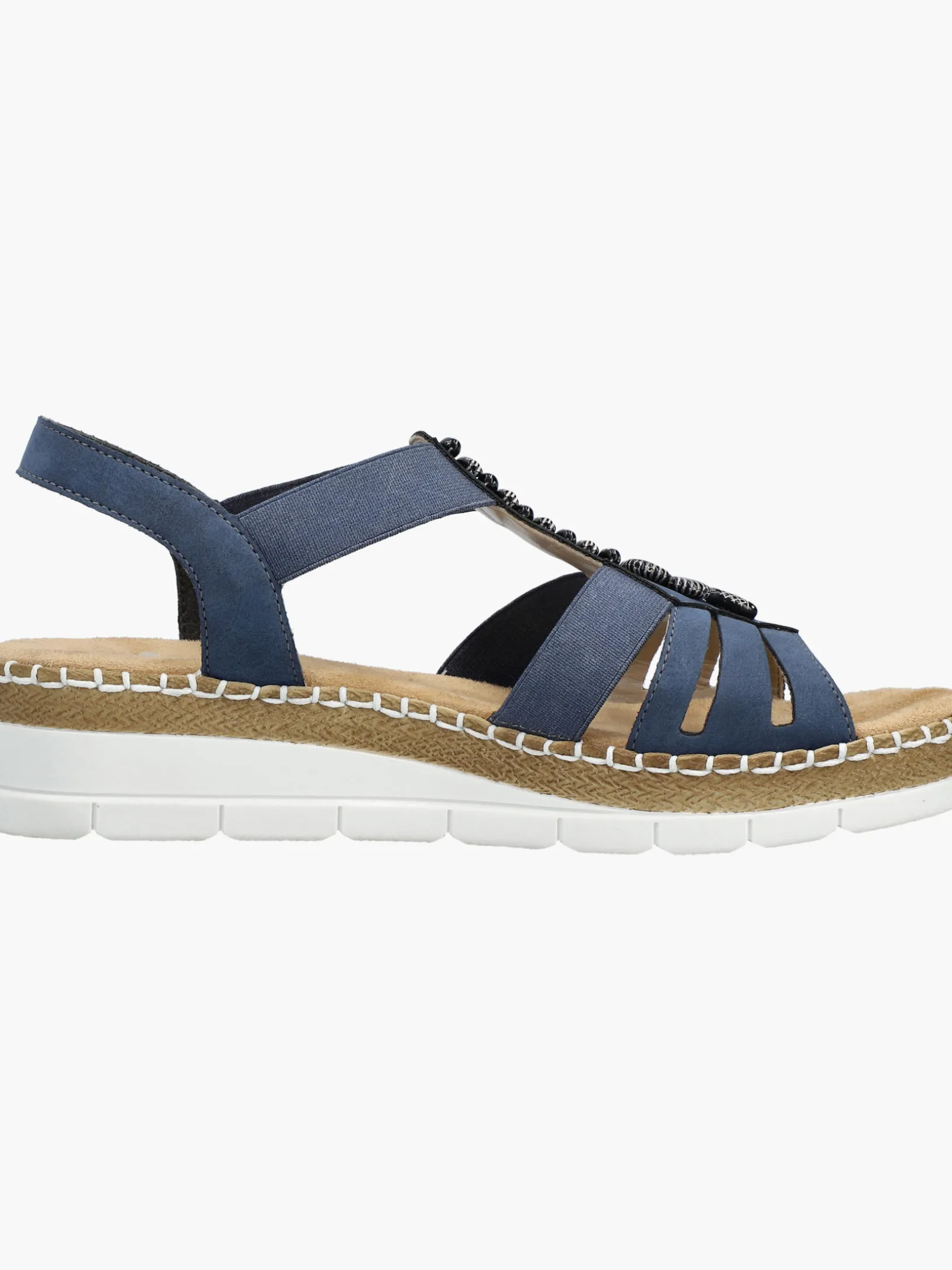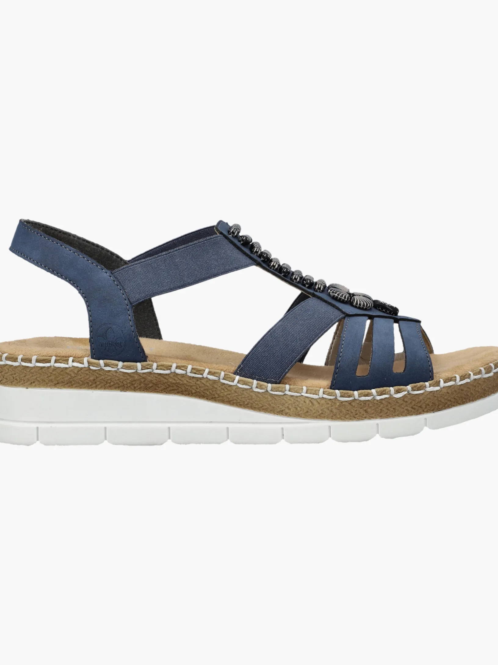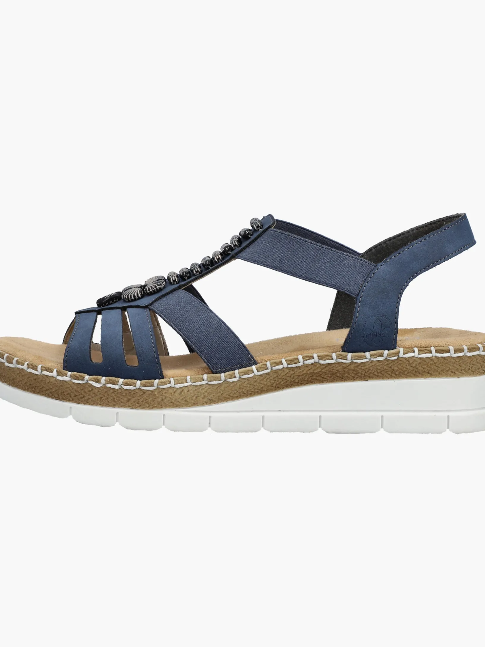 Achtung Trendalarm! Mit dieser alltagstauglichen pazifikblauen Rieker Keilsandalette bist du immer gut angezogen und kannst dich auf maximalen Komfort verlassen. Der Elastikeinsatz ermöglicht einen bequemen Einstieg. Der Mittelriemen mit stilvollen Schmuckelementen ist ein hübsches Detail. Mit der sehr leichten und schockabsorbierenden Sohle freuen sich die Füße über besten Laufkomfort bei jedem Schritt. Zudem sorgt die extra weiche Decksohle für eine Extraportion Tragekomfort. Für zusätzlichen Halt sorgt die schmale Passform E 1/2. Achtung, Lieblingsschuh-Potential!