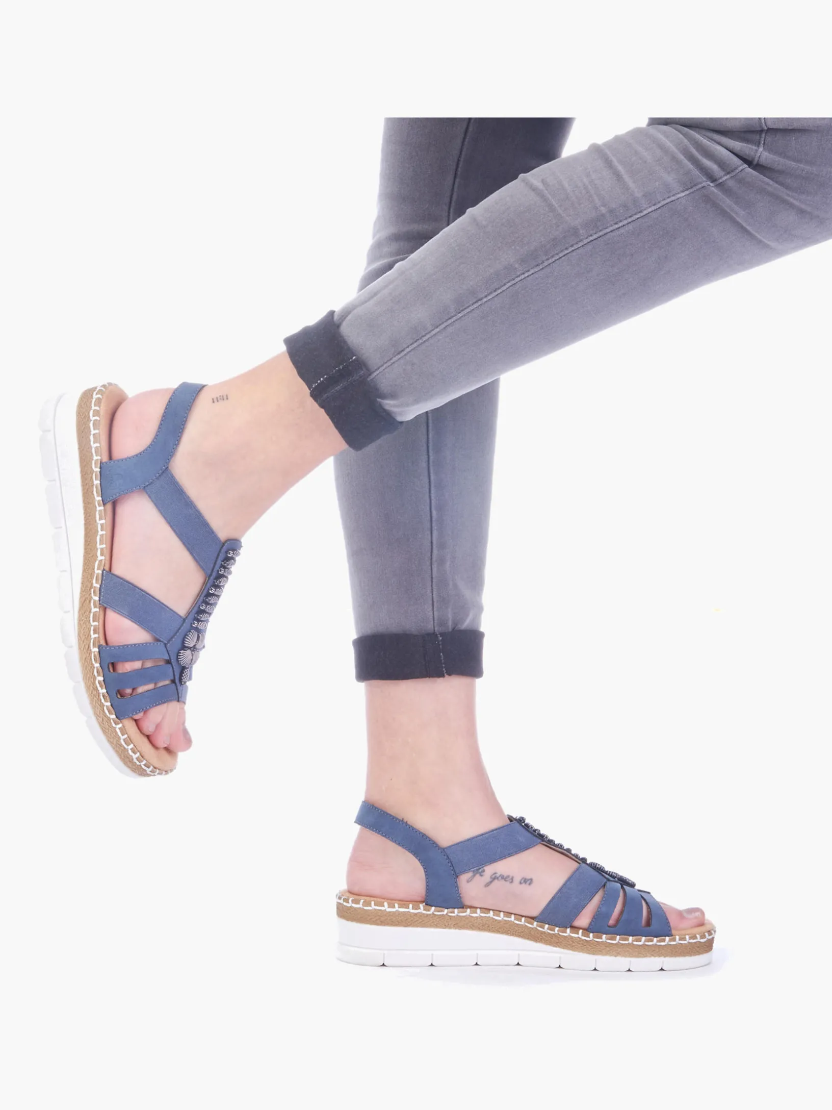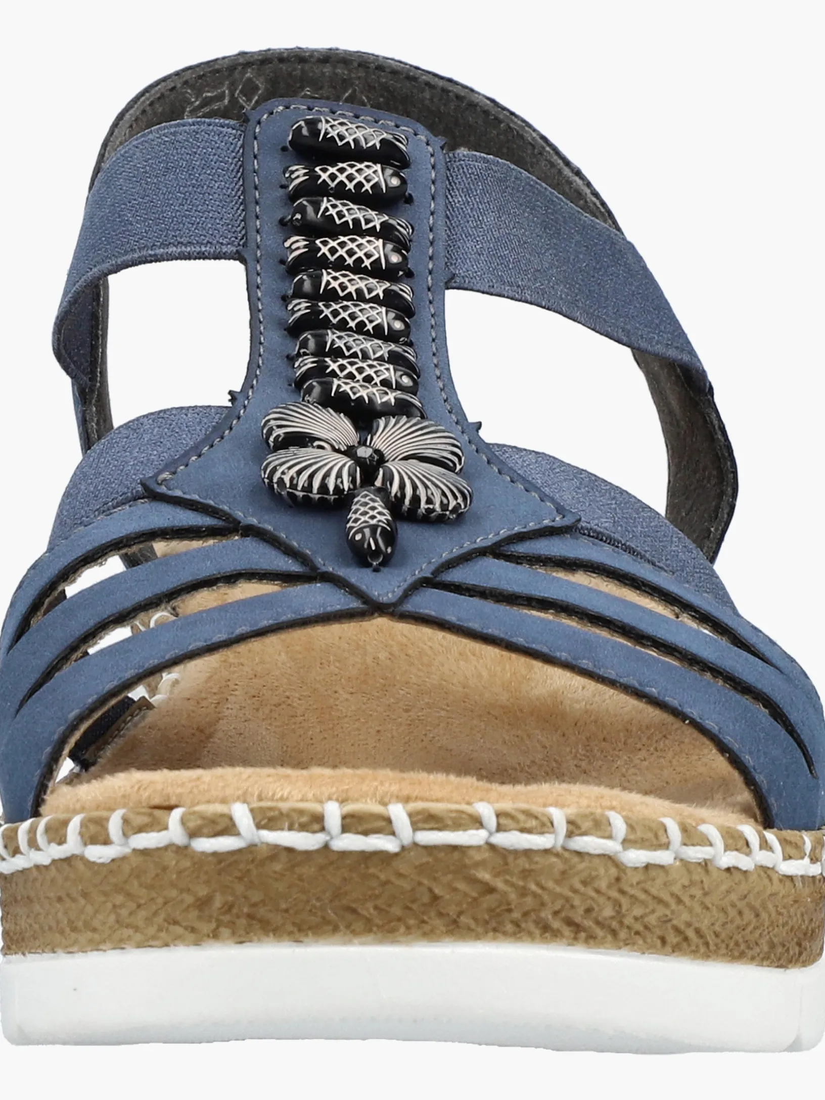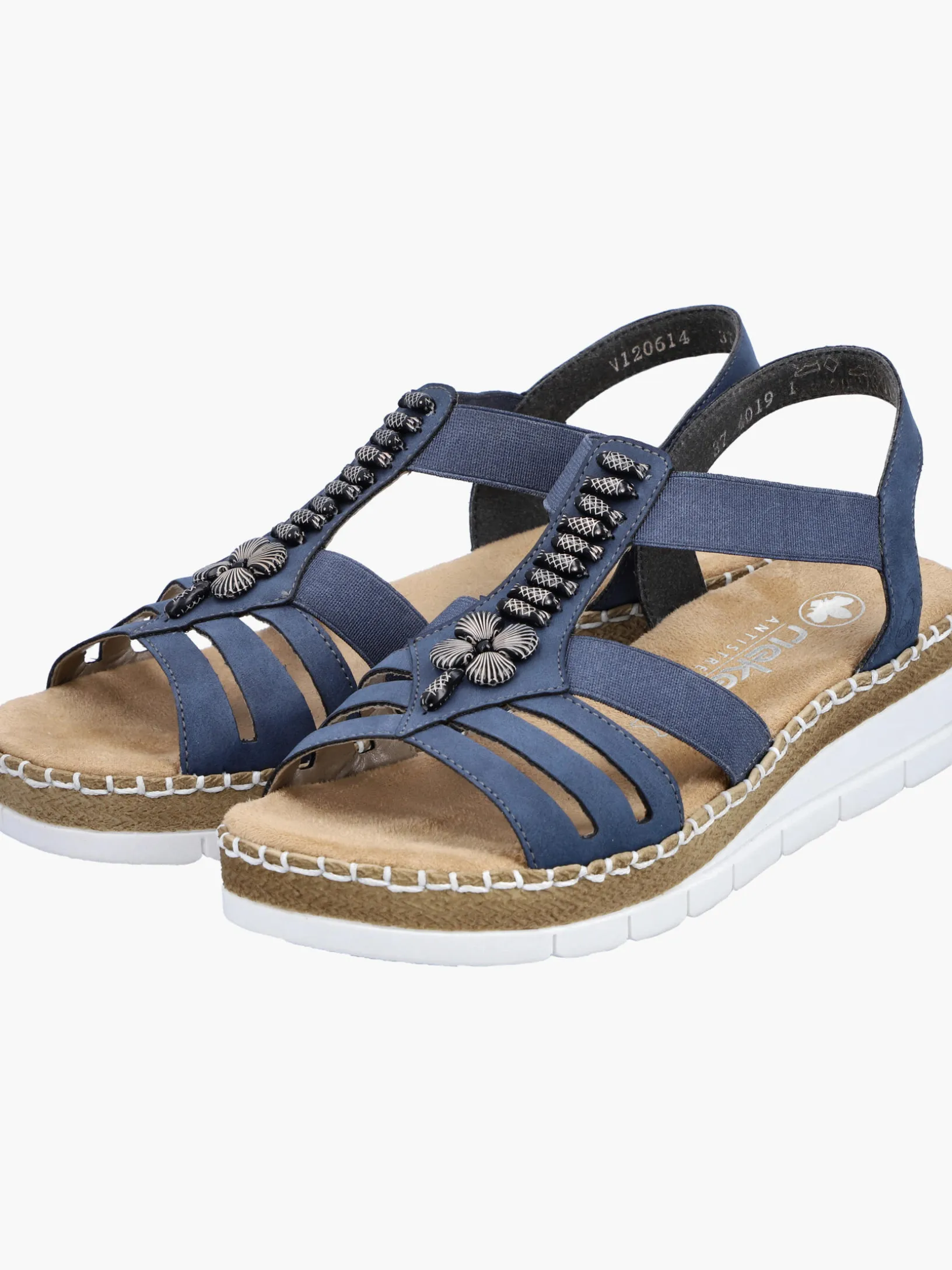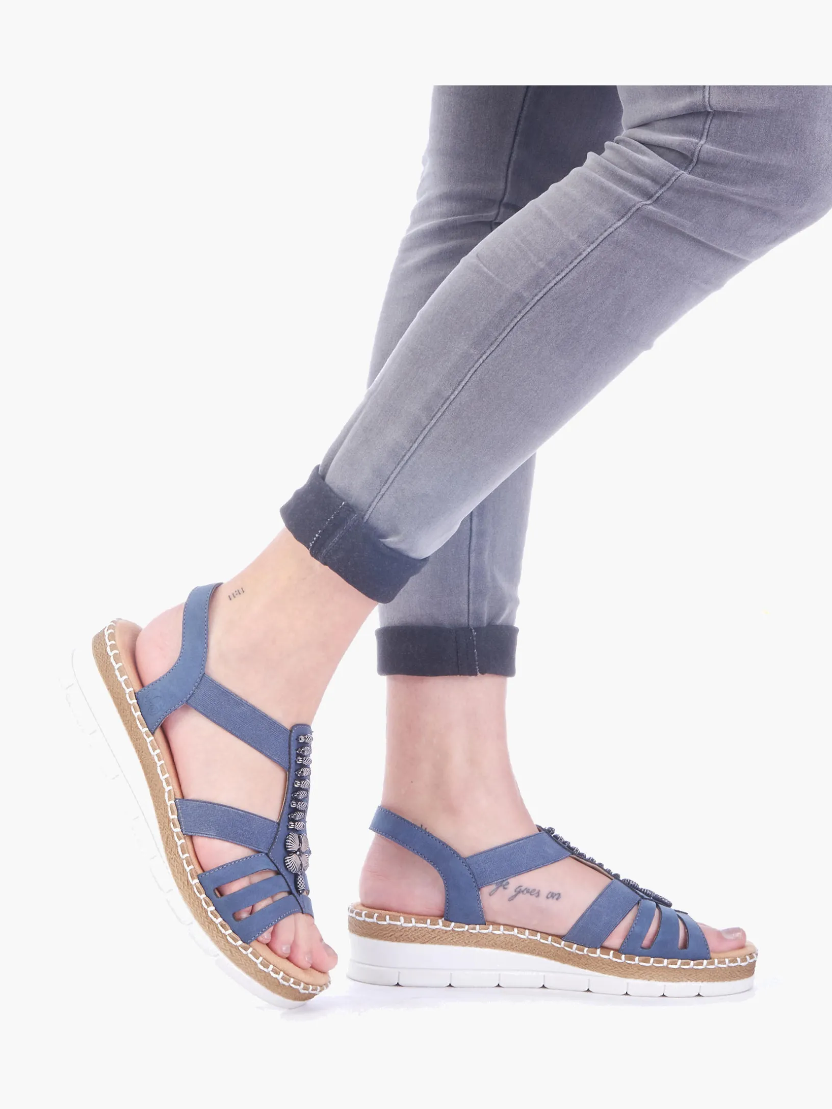 Achtung Trendalarm! Mit dieser alltagstauglichen pazifikblauen Rieker Keilsandalette bist du immer gut angezogen und kannst dich auf maximalen Komfort verlassen. Der Elastikeinsatz ermöglicht einen bequemen Einstieg. Der Mittelriemen mit stilvollen Schmuckelementen ist ein hübsches Detail. Mit der sehr leichten und schockabsorbierenden Sohle freuen sich die Füße über besten Laufkomfort bei jedem Schritt. Zudem sorgt die extra weiche Decksohle für eine Extraportion Tragekomfort. Für zusätzlichen Halt sorgt die schmale Passform E 1/2. Achtung, Lieblingsschuh-Potential!