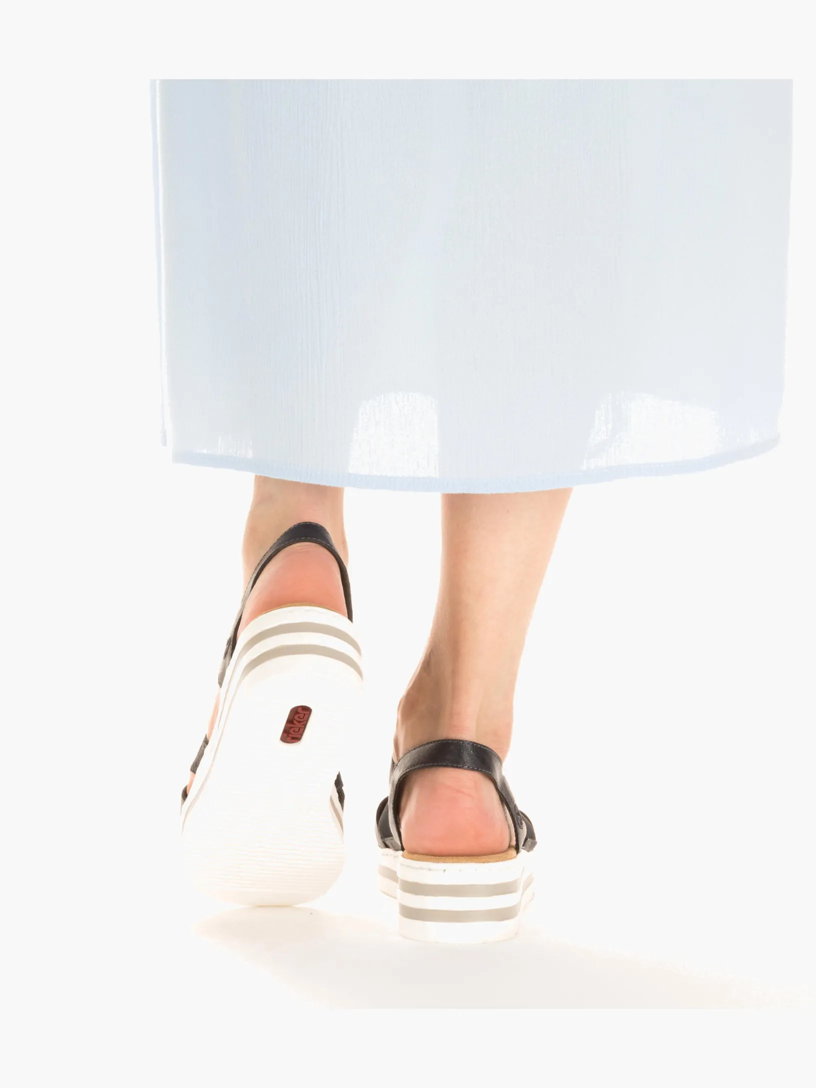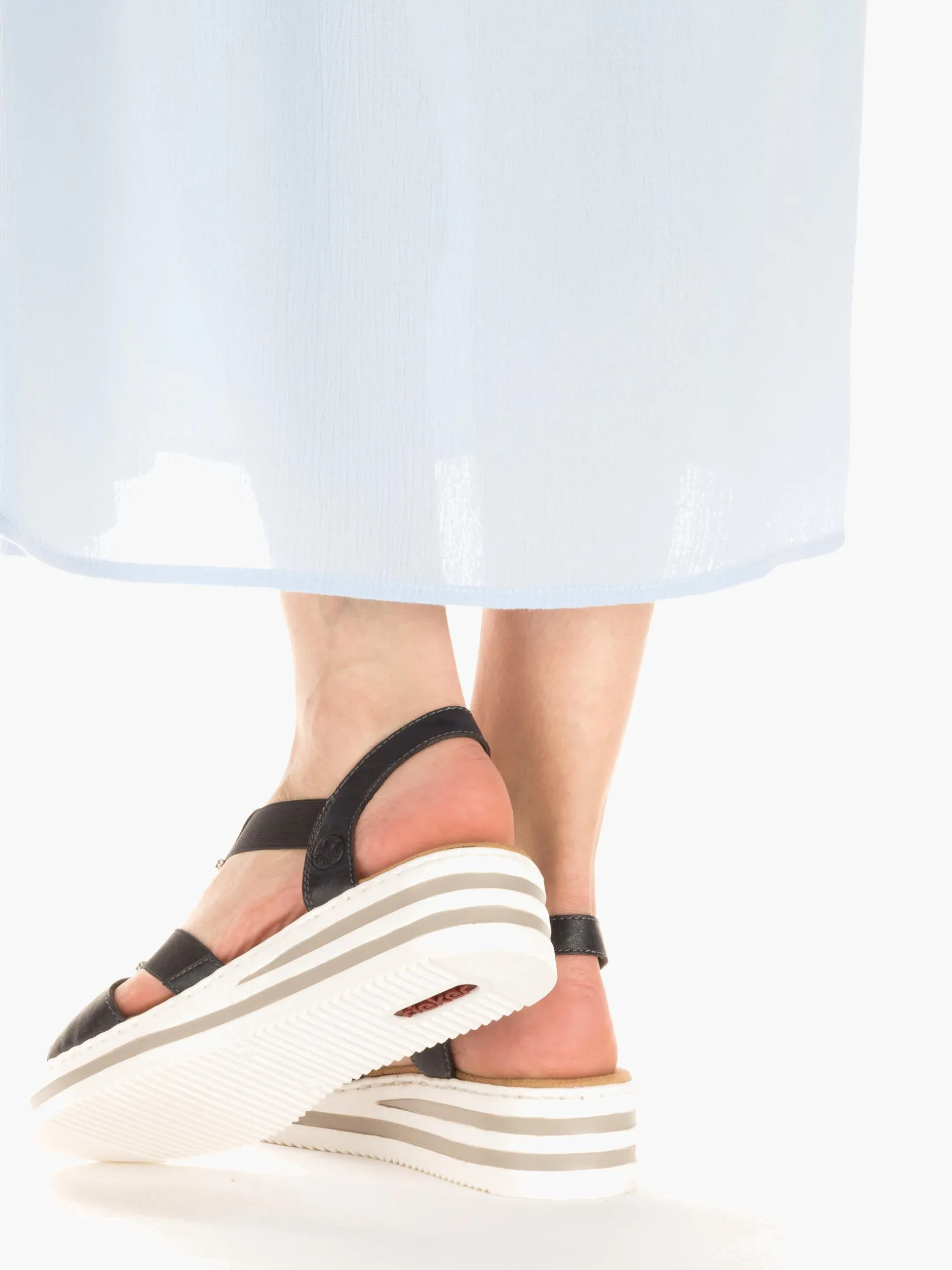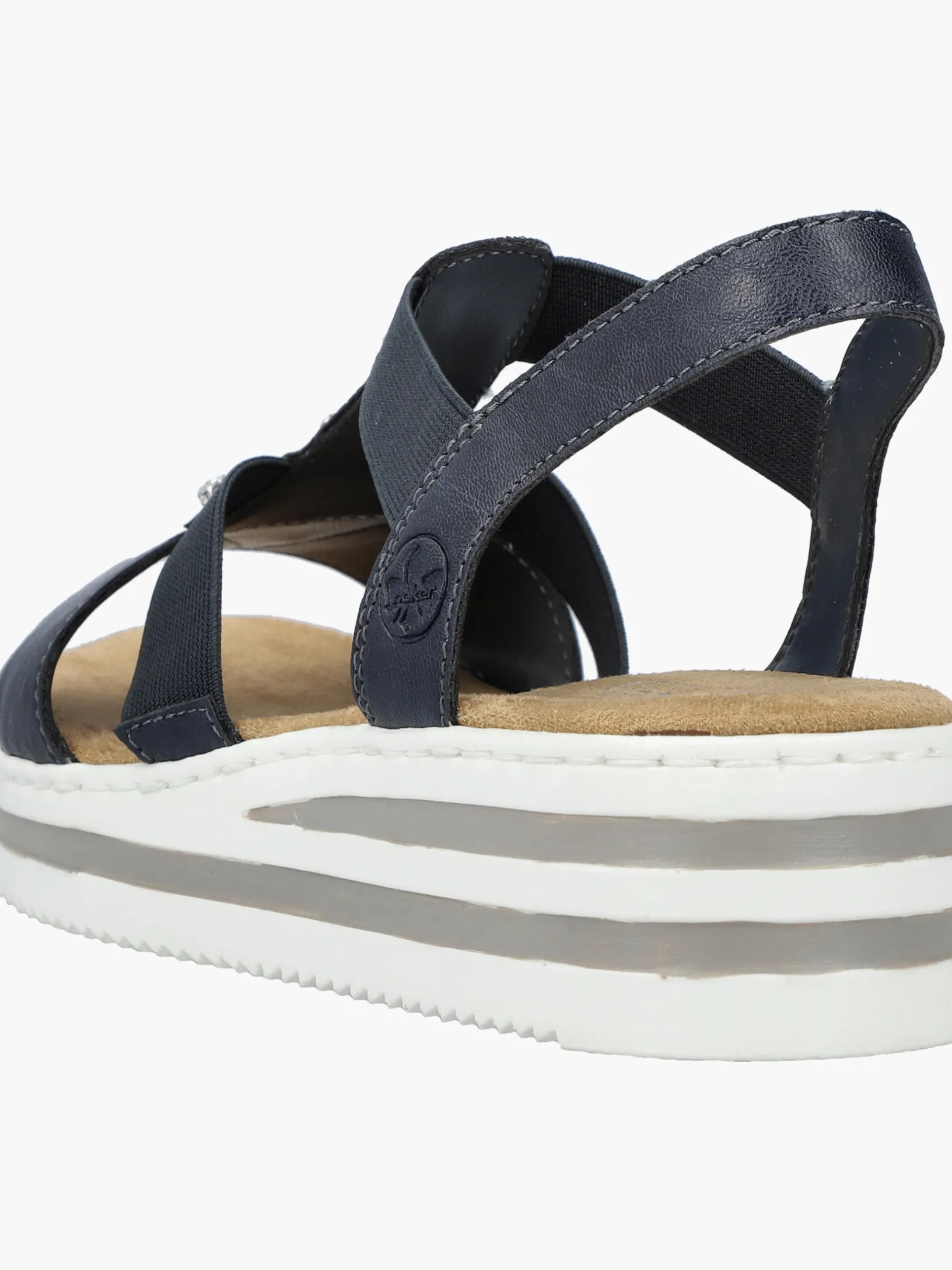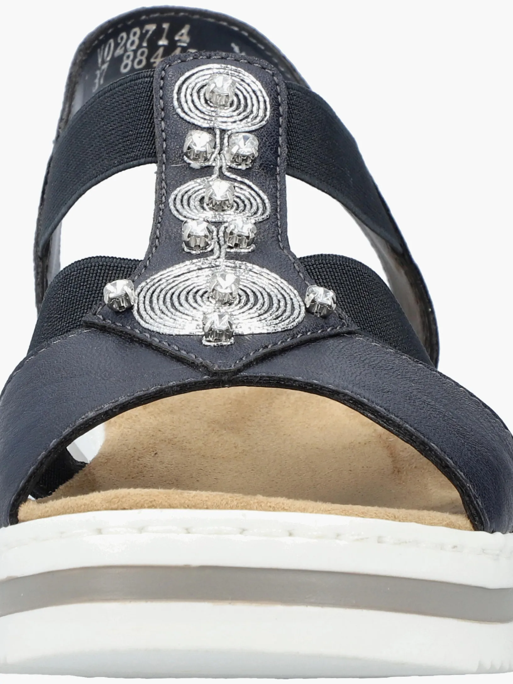 Die folgen dir auf Schritt und Tritt! Diese marineblauen Rieker Keilsandaletten garantieren ein himmlisches Tragegefühl. Breite Riemen und ein Elastikeinsatz sorgen zusammen mit dem schmalen Fersenband für perfekten Halt. Der Mittelriemen mit stilvollen Schmuckelementen in Silber rundet das moderne Design perfekt ab. Die schockabsorbierende und leichte Sohle bietet anhaltendes Wohlgefühl ‒ auch an langen Tagen. Außerdem sorgt die extra weiche Decksohle für eine Extraportion Tragekomfort. Extra-Halt ist durch die schmale Passform E 1/2 geboten. Modisches Wohlgefühl im Stil von Rieker!