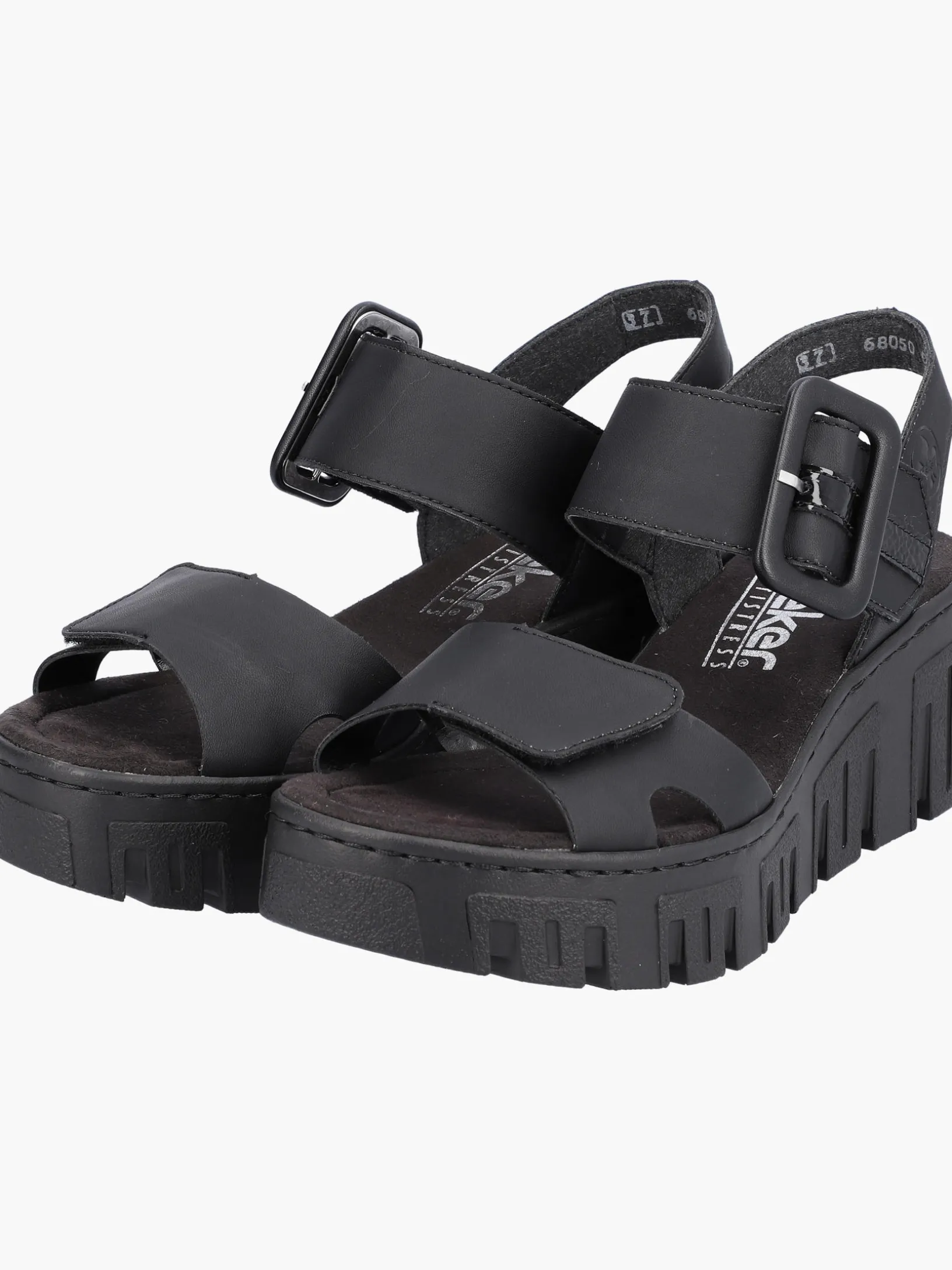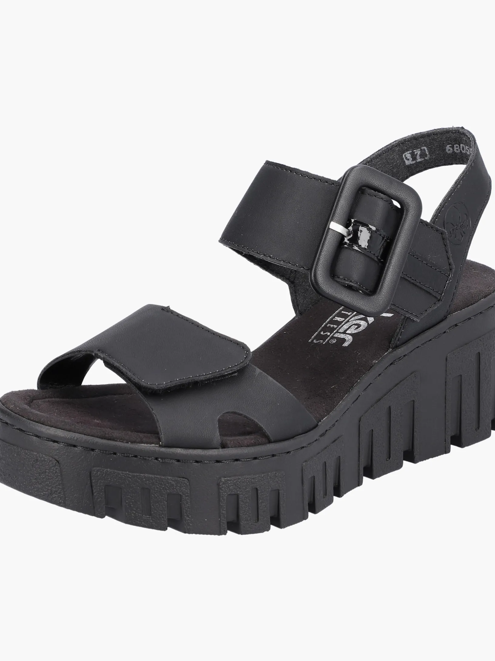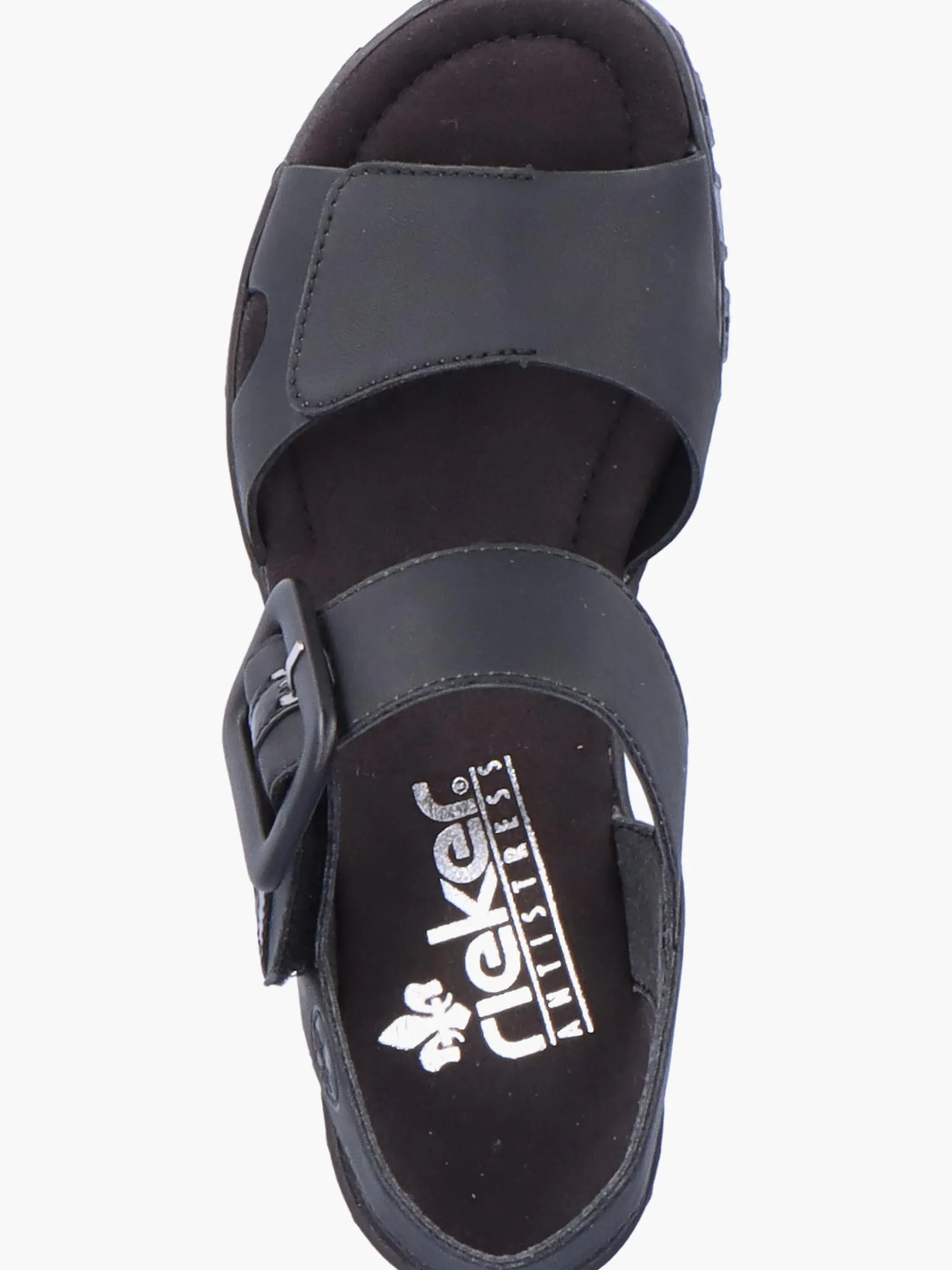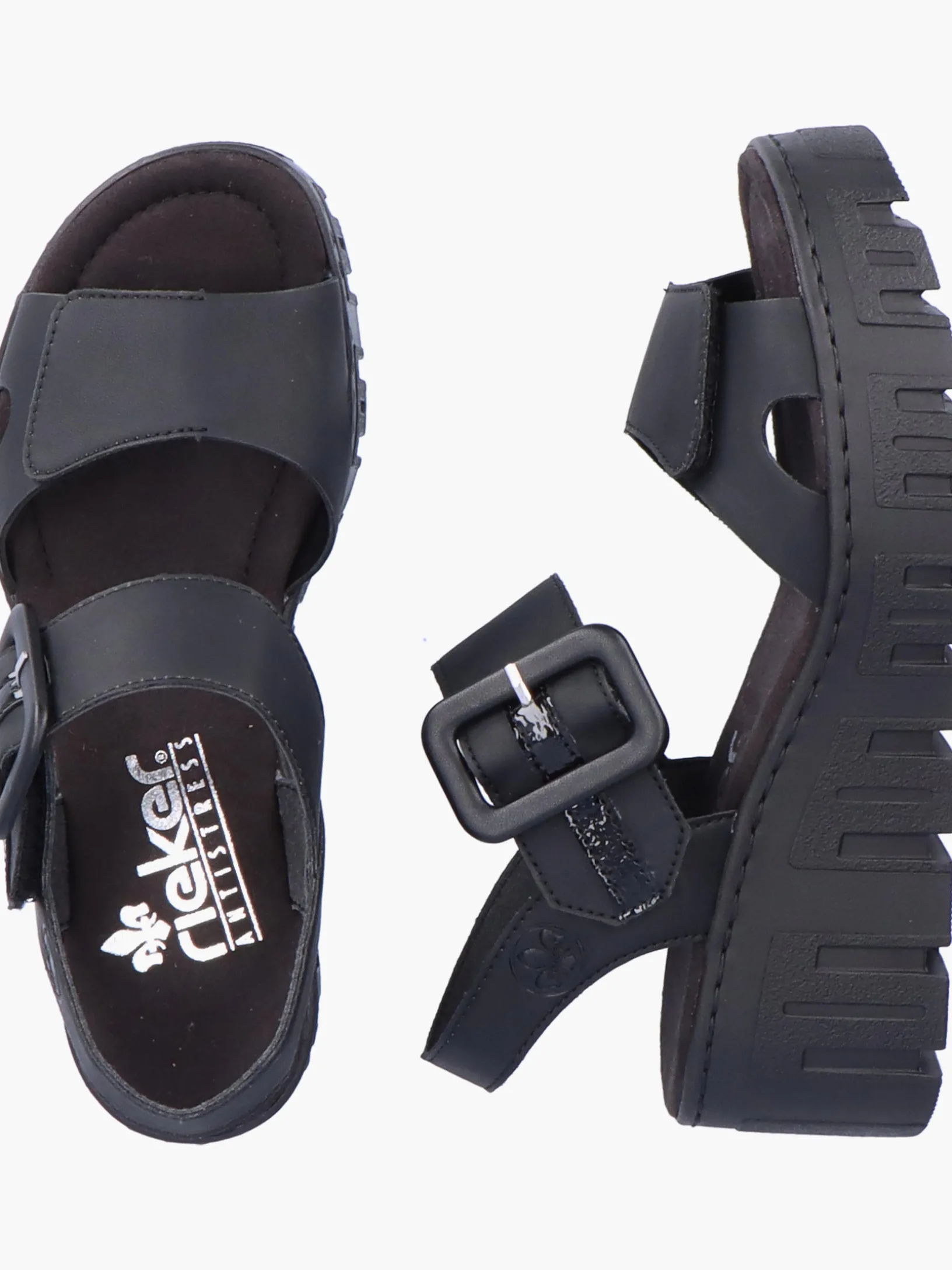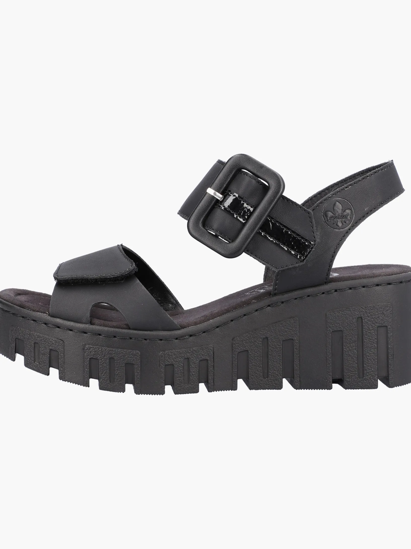 Achtung Trendalarm! Diese tiefschwarzen Rieker Keilsandaletten wurden aufwendig verarbeitet. Bestmöglicher Halt und perfekte Passform sind durch Riemen, Klettverschluss und einen Fersenriemen garantiert. Die leichte und schockabsorbierende Sohle mit Keilabsatz bietet anhaltendes Wohlgefühl ‒ auch an langen Tagen. Außerdem sorgt die extra weiche Decksohle für eine Extraportion Tragekomfort. 100% Lieblingsschuh-Potential!