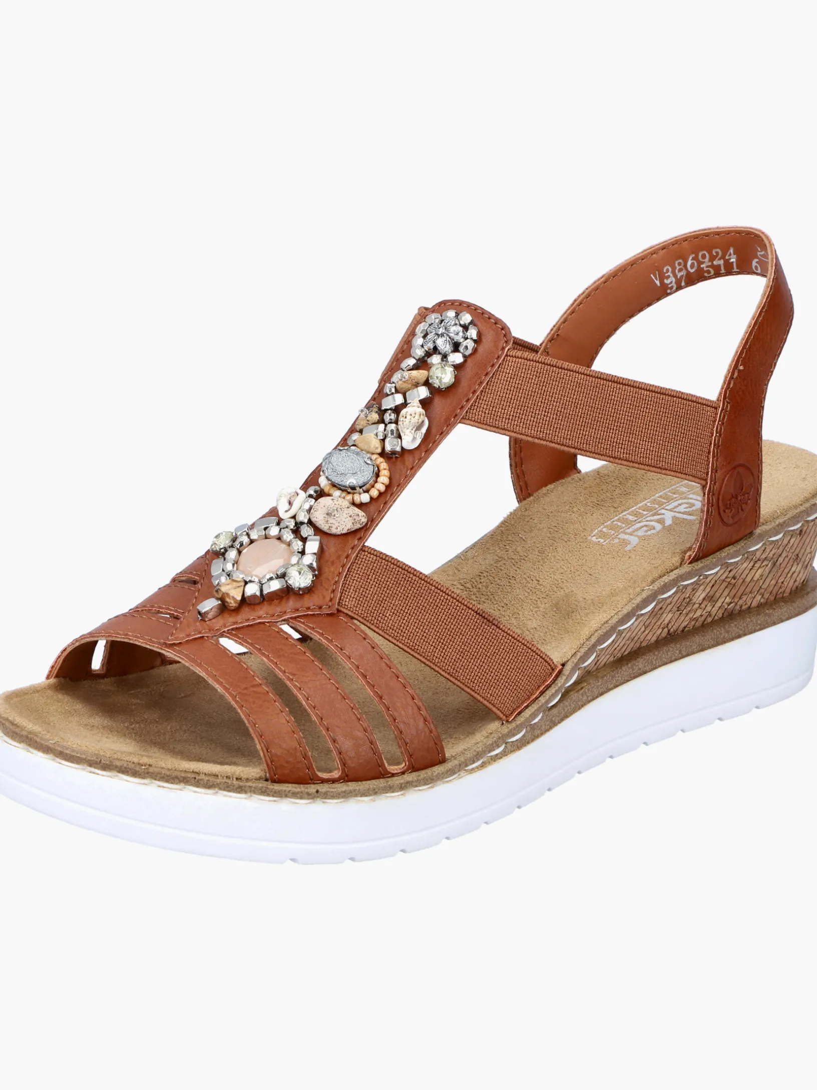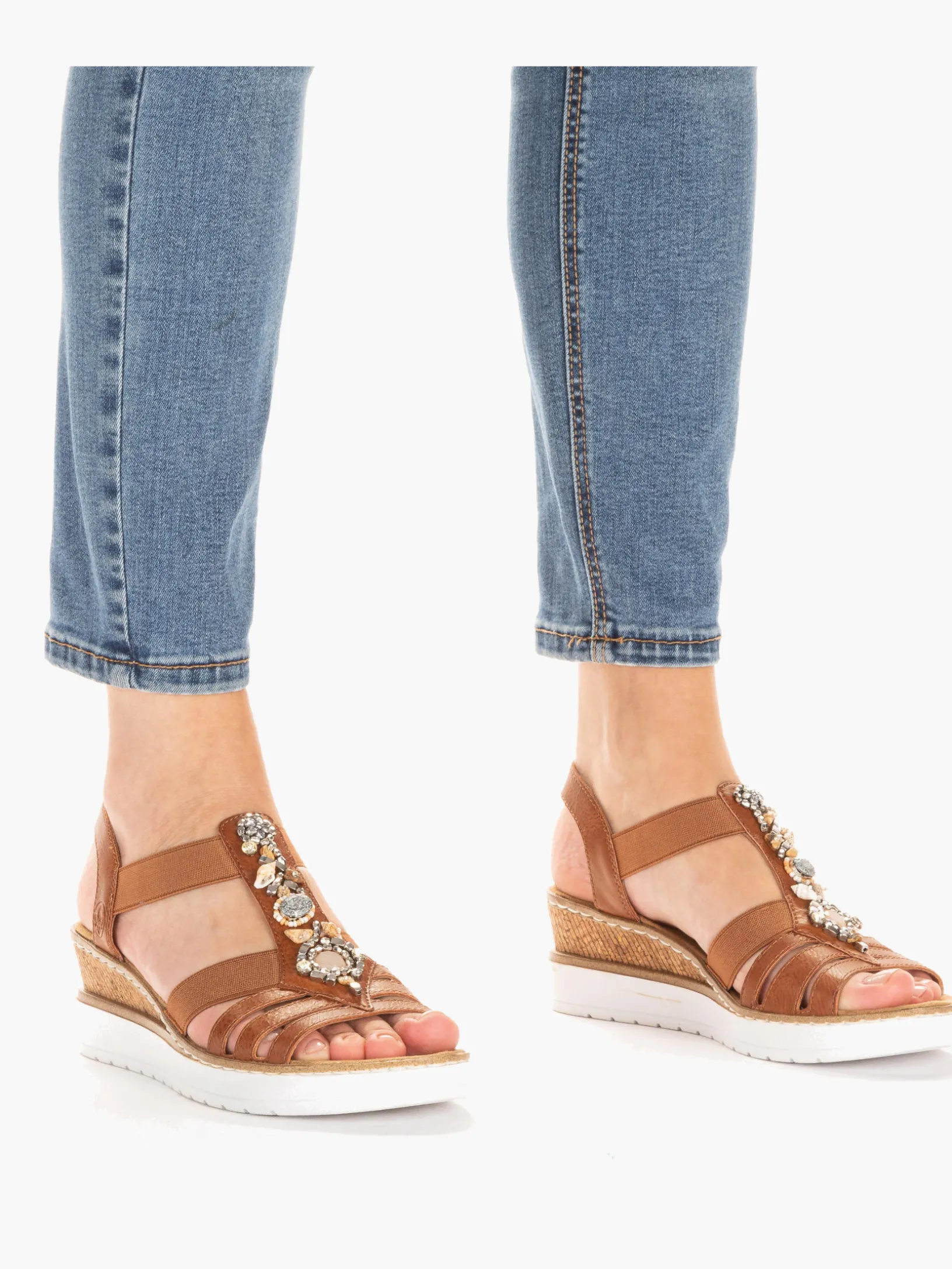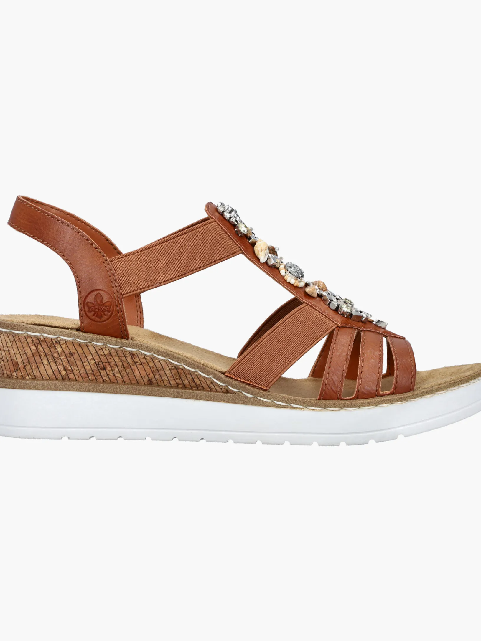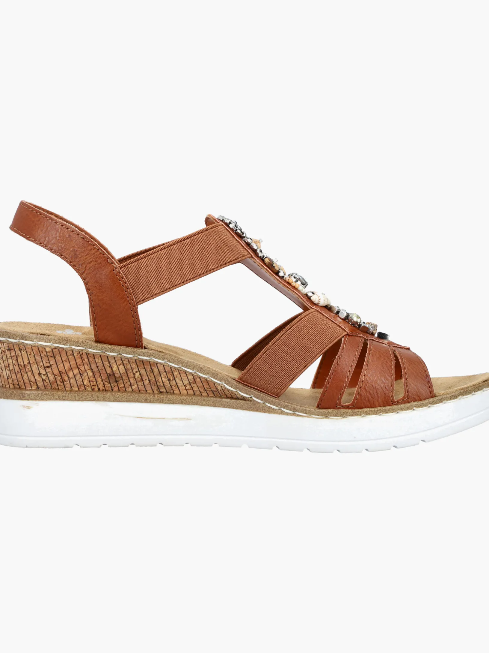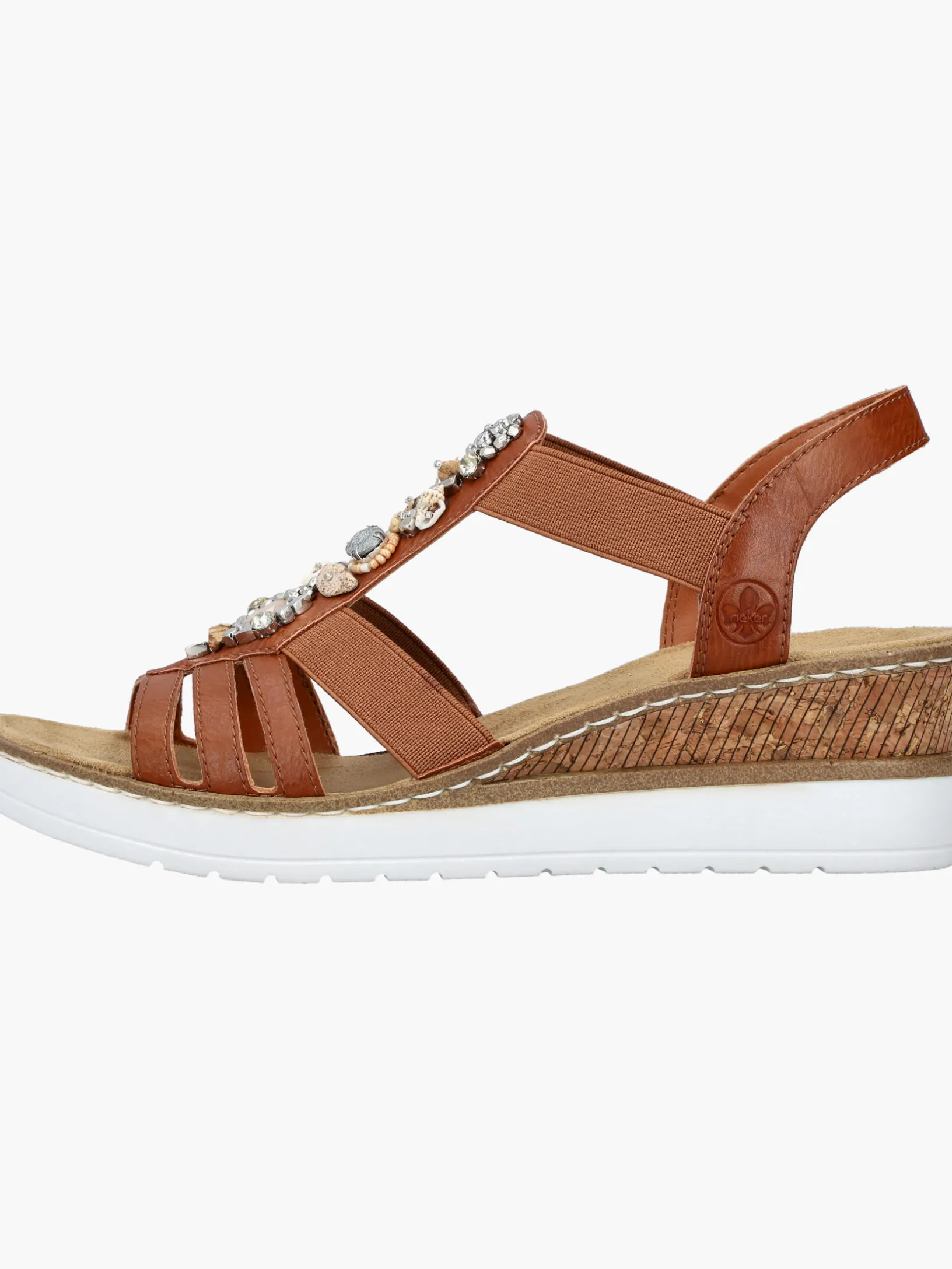 Fashion meets Function. Diese karamellbraune Rieker Keilsandalette überzeugt durch modernes Design und hohen Tragekomfort. Der Elastikeinsatz ist besonders beim An- und Ausziehen eine große Erleichterung. Ein schöner Eyecatcher ist der Mittelriemen mit stilvollen Schmuckelementen. Die leichte und schockabsorbierende Sohle mit Keilabsatz bietet besten Laufkomfort. Mehr geht nicht!