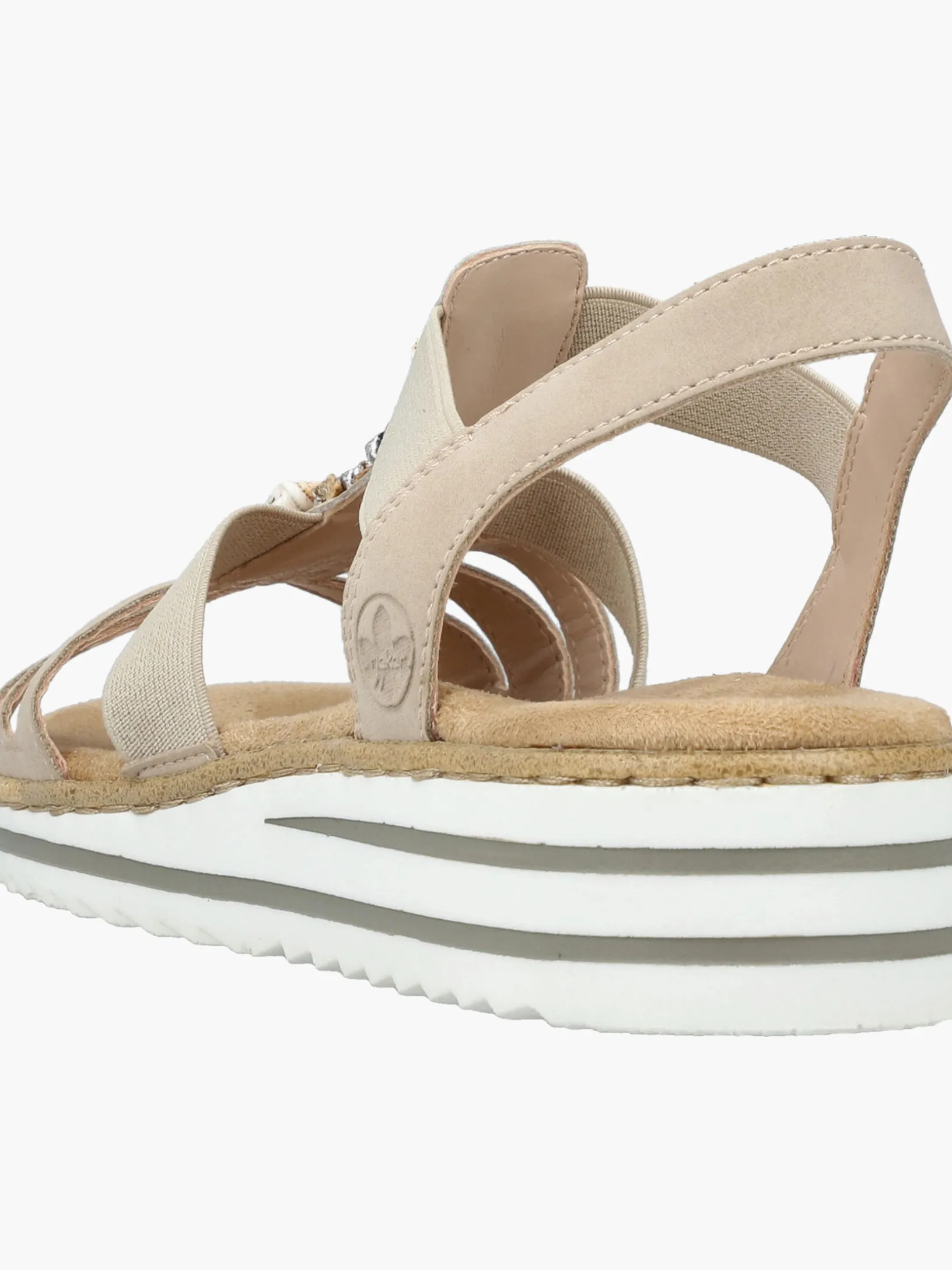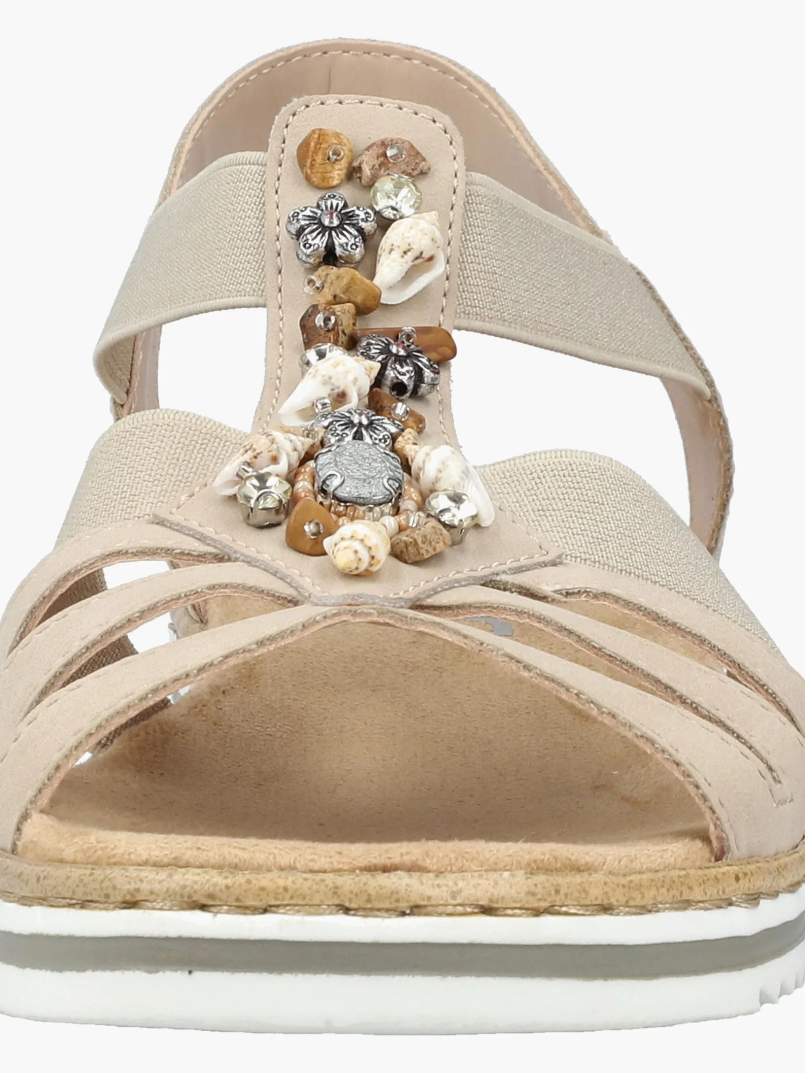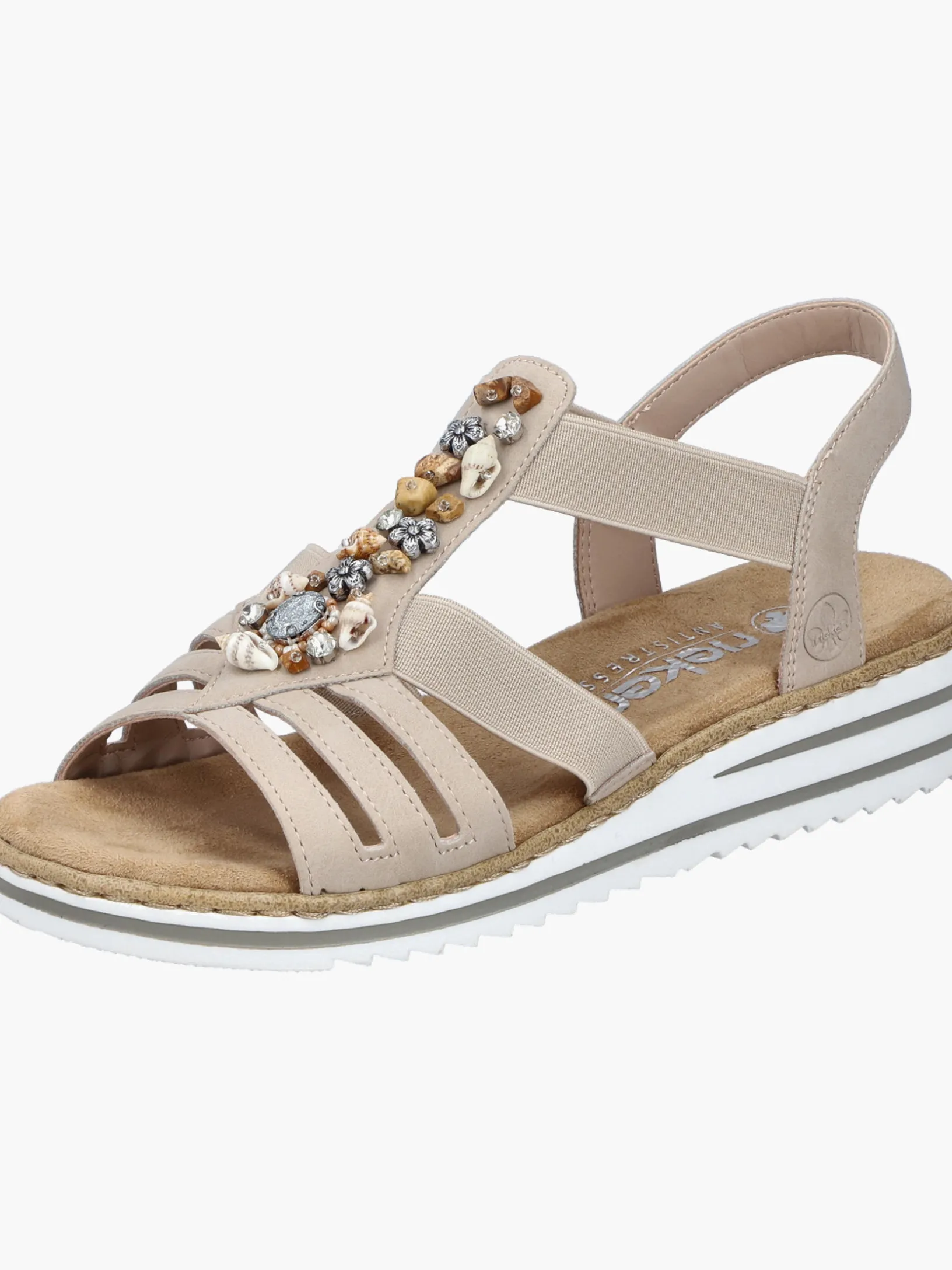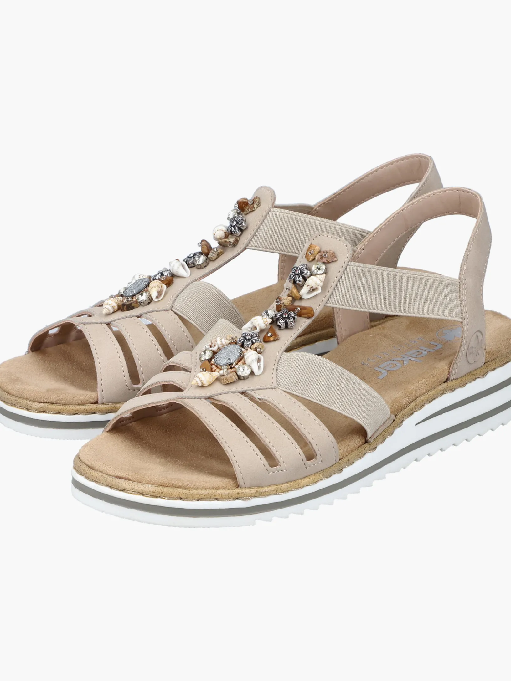 Immer einen Schritt voraus! Die cremebeigen Rieker Keilsandaletten setzen garantiert das richtige Statement und hinterlassen einen unvergesslichen Eindruck! Der Elastikeinsatz erleichtert das An- und Ausziehen besonders. Der Mittelriemen mit stilvollen Schmuckelementen rundet das moderne Design perfekt ab. Die leichte und schockabsorbierende Sohle sorgt für ein angenehmes Tragegefühl. Zudem sorgt die extra weiche Decksohle für eine Extraportion Tragekomfort. Durch die schmale Passform E 1/2 sitzt der Schuh angenehm eng, ohne dabei zu drücken. Was will man mehr?