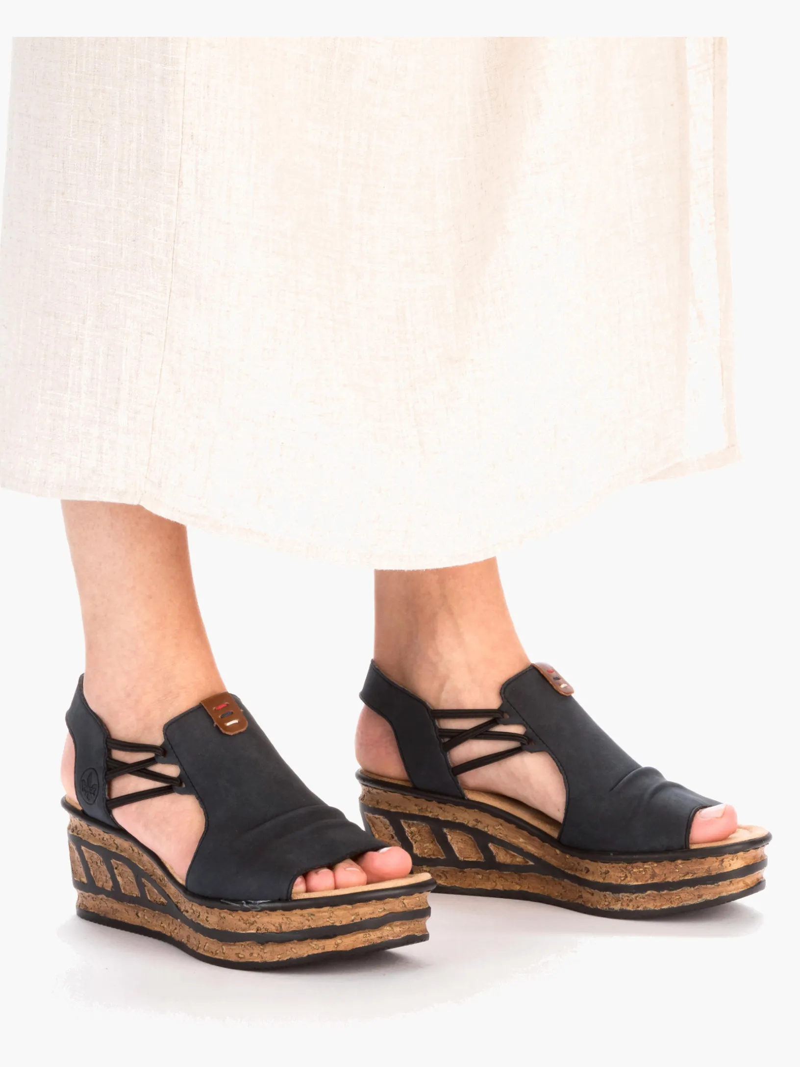 Alleskönner! Die stahlblauen Rieker Keilsandaletten setzen garantiert das richtige Statement und hinterlassen einen unvergesslichen Eindruck! Der Elastikeinsatz ermöglicht einen bequemen Einstieg. Die leichte und schockabsorbierende Sohle mit Keilabsatz verwöhnt die Füße darüber hinaus bei jedem Schritt. Modisches Wohlgefühl im Stil von Rieker!
