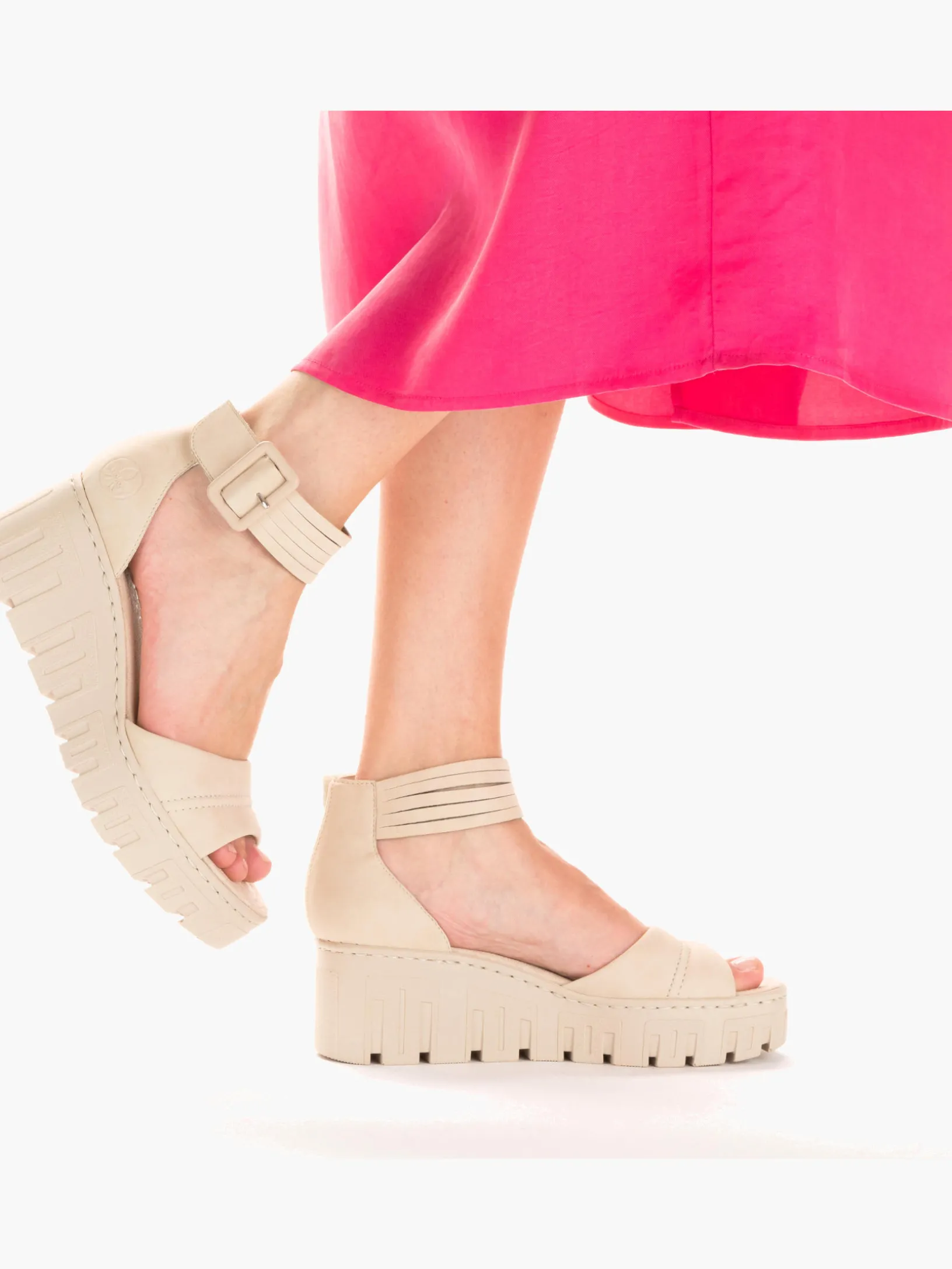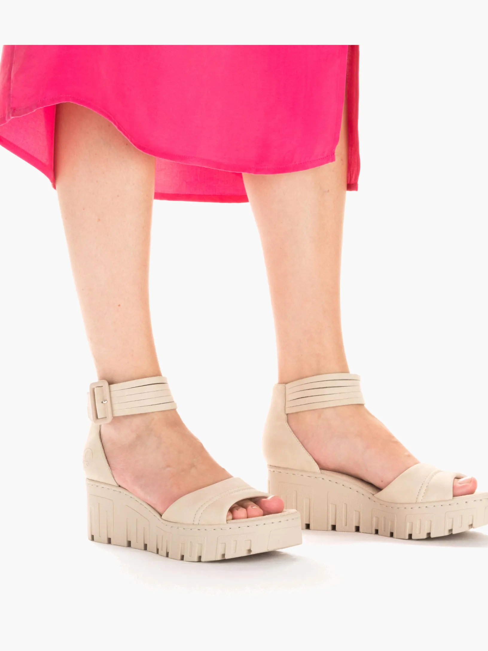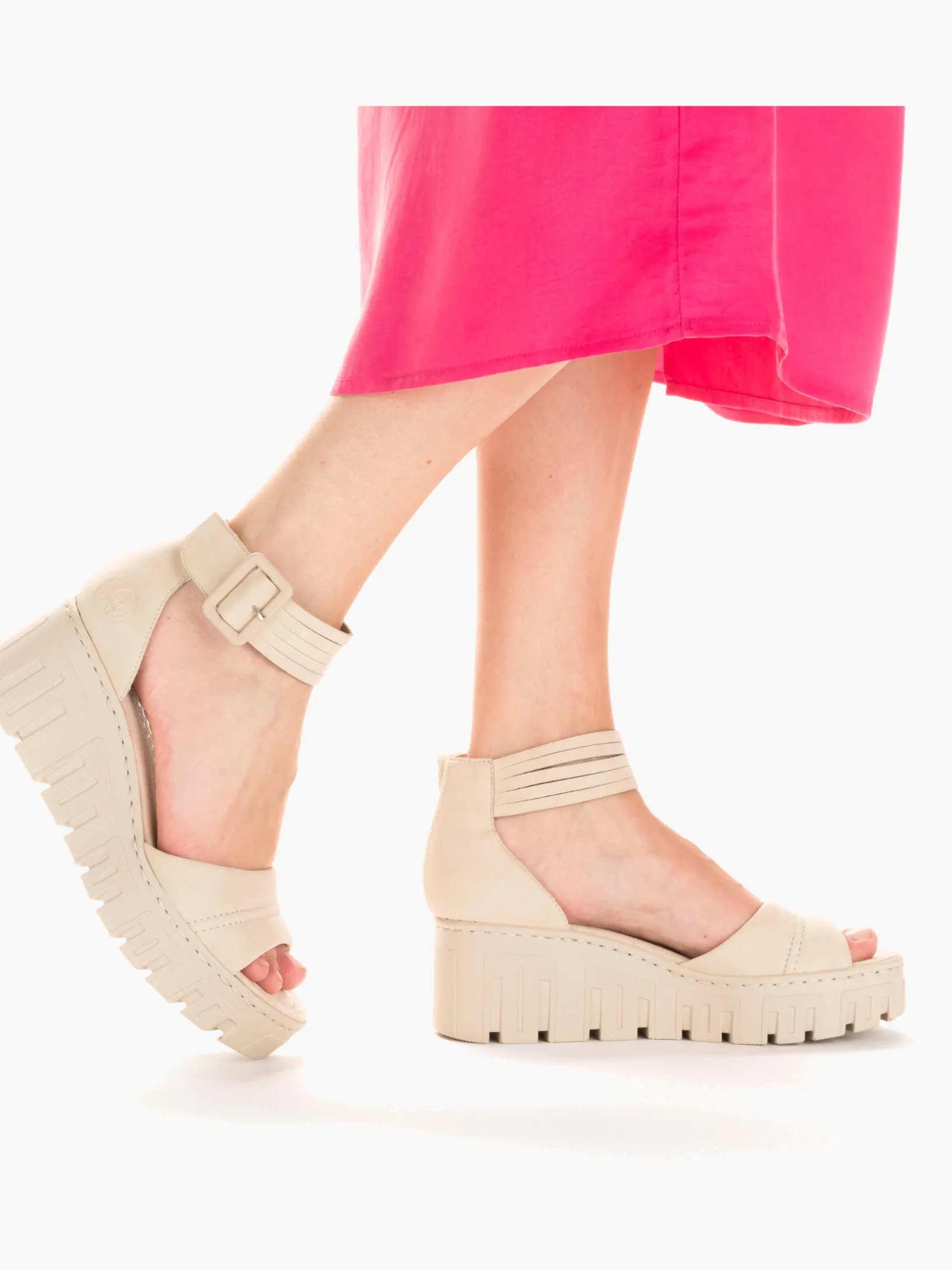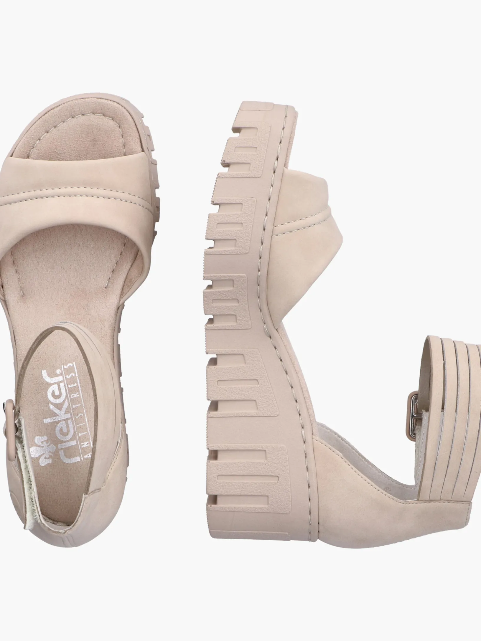 Stylisch oder komfortabel? Wieso oder? Diese sandbeige Rieker Keilsandalette überzeugt durch modernes Design und hohen Tragekomfort. Ein Klettverschluss ermöglicht einen schnellen und bequemen Einstieg. Die Sohle mit Keilabsatz ist sowohl schockabsorbierend als auch leicht und bietet damit ein doppeltes Wohlgefühl bei jedem Schritt. Darüber hinaus ist die Decksohle extra weich. Achtung, Lieblingsschuh-Potential!