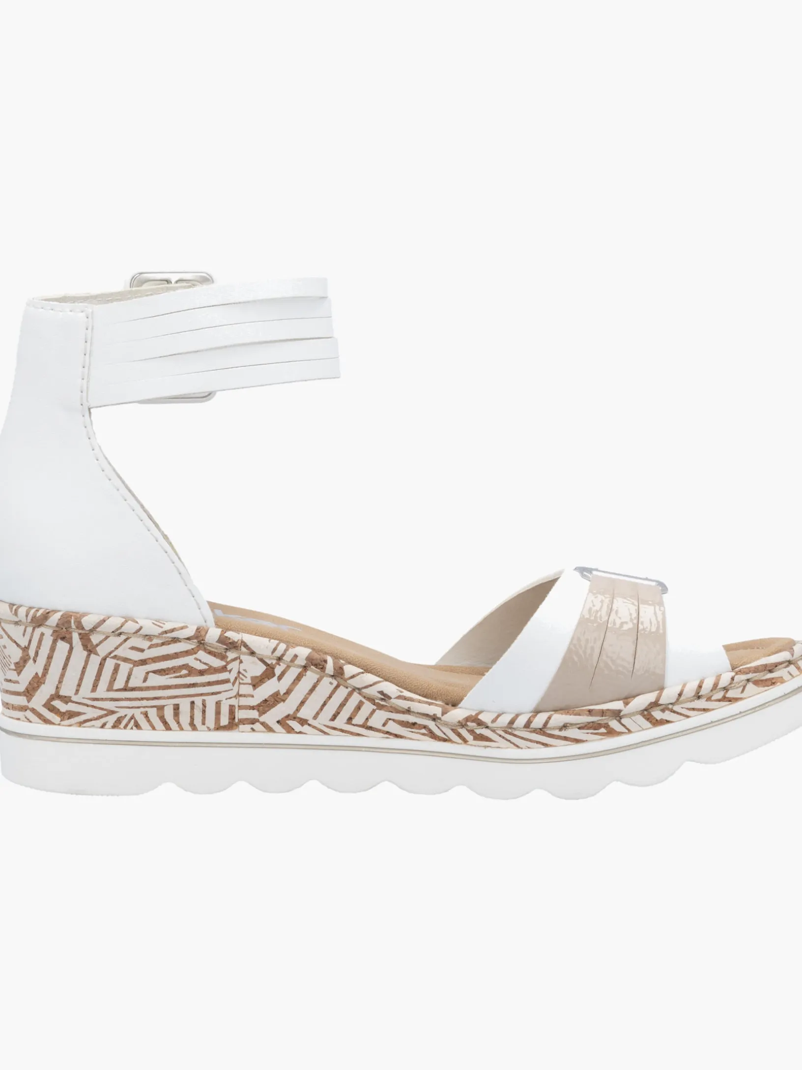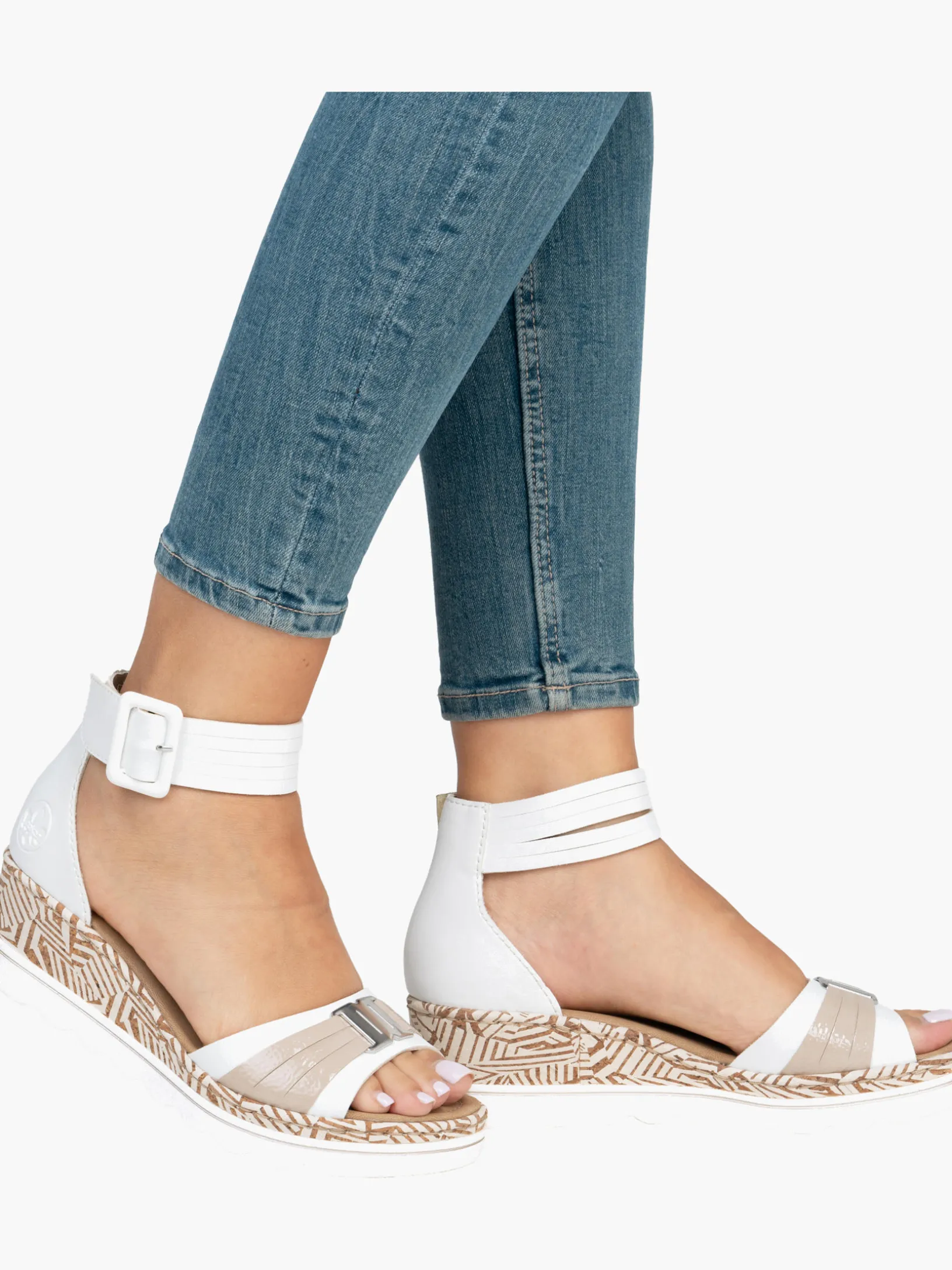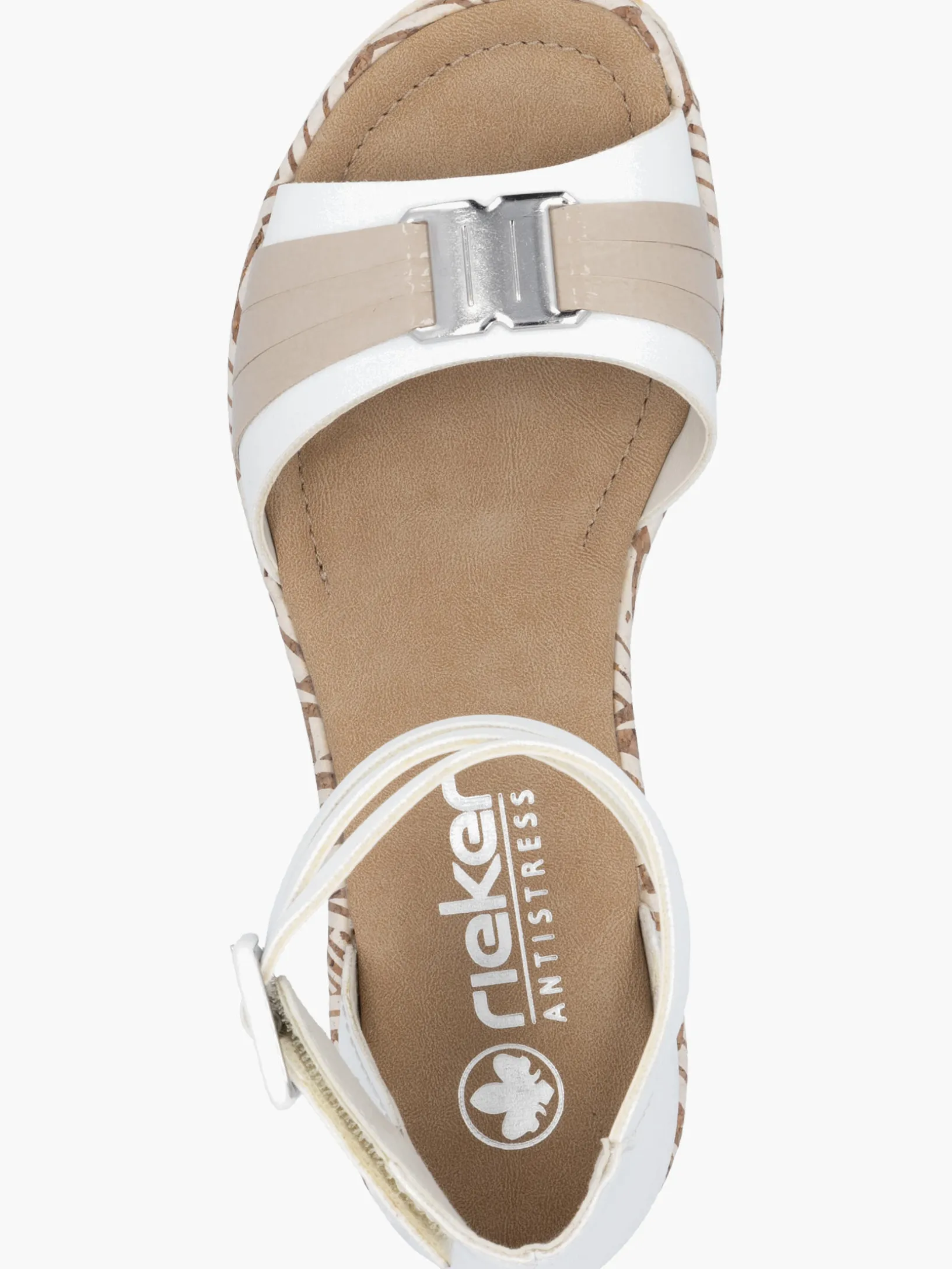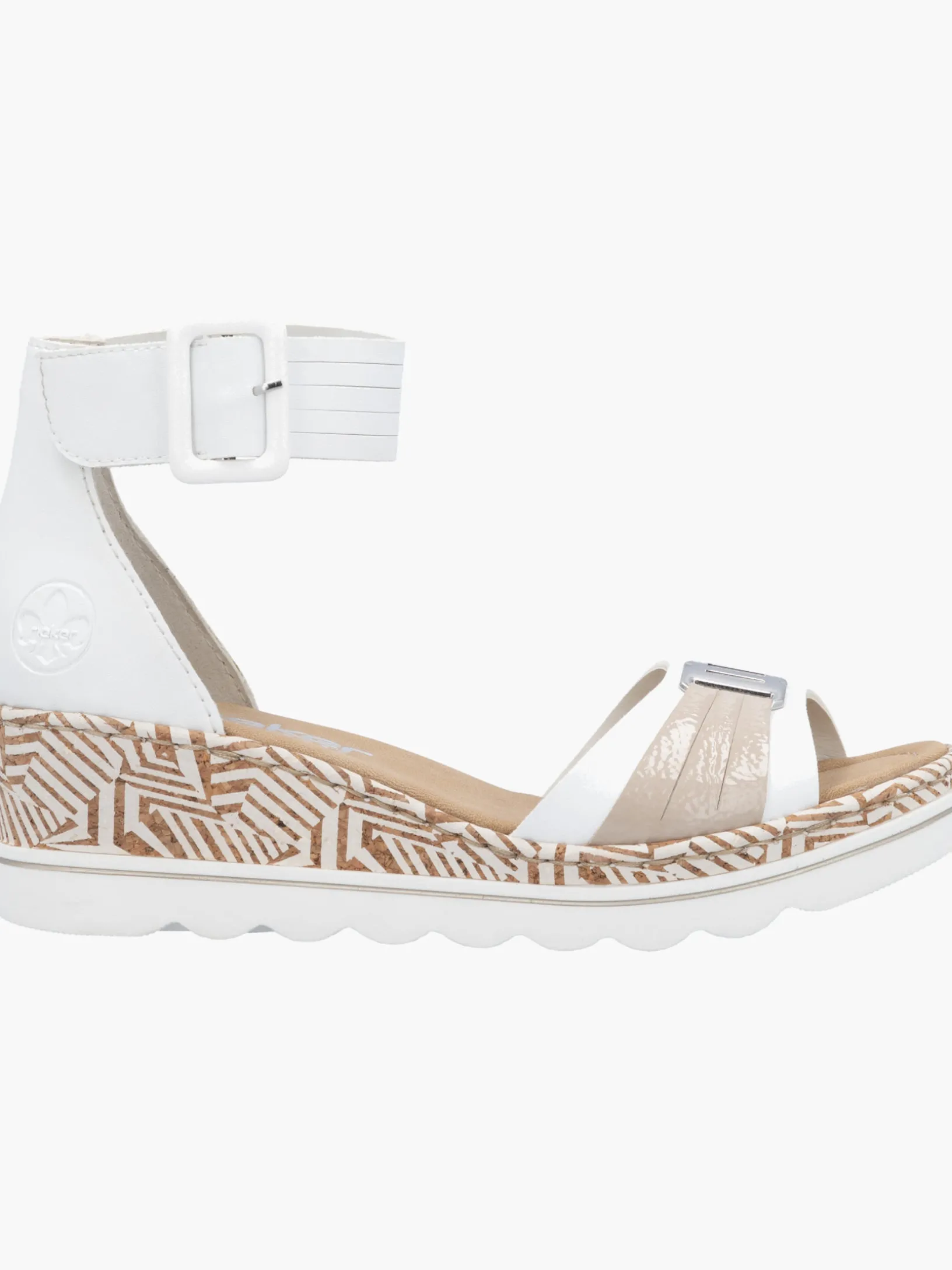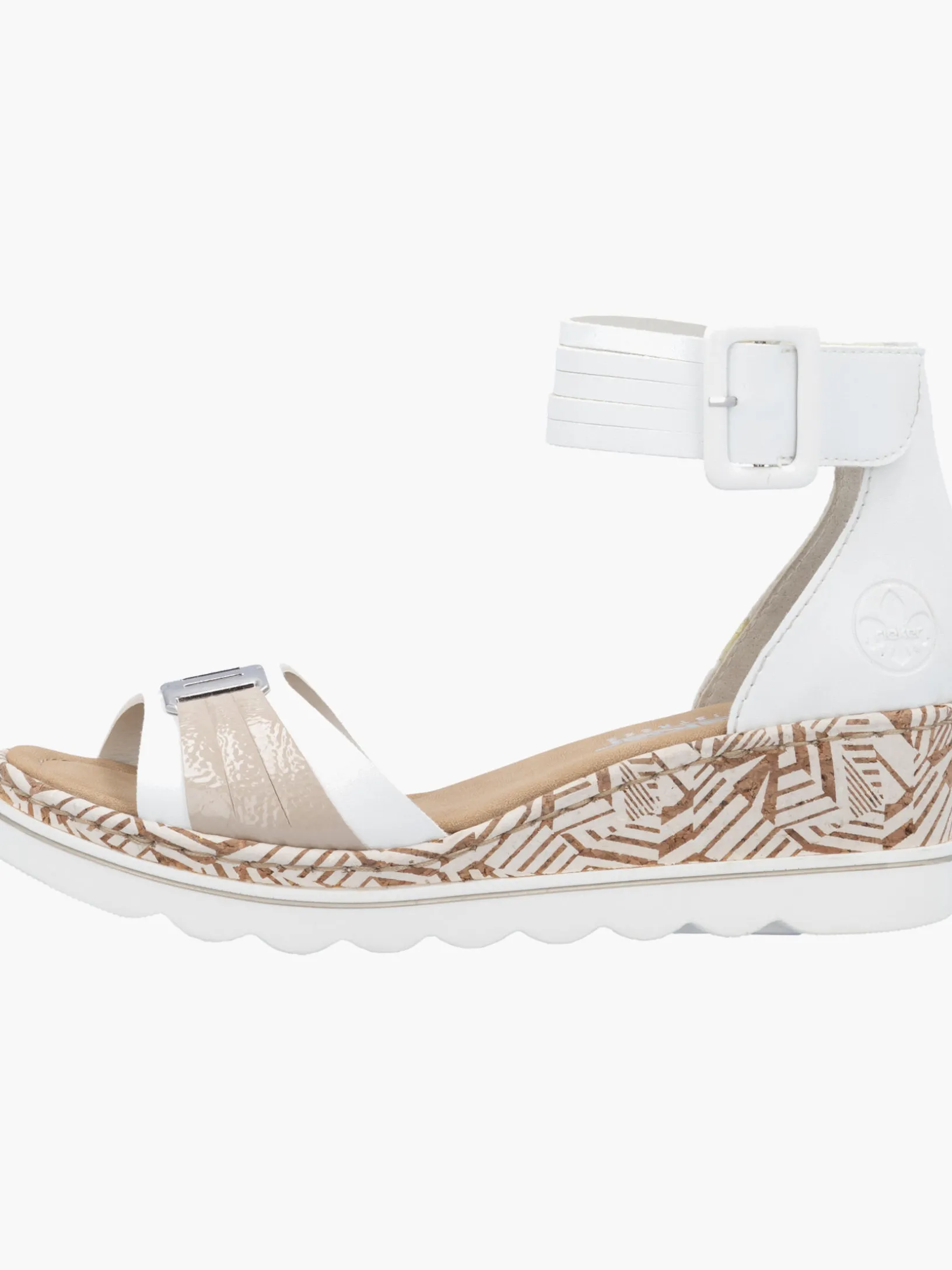 Auf dem Fashion-Radar! Die lilienweißen Rieker Keilsandaletten sind nicht nur ein echter Hingucker, sondern auch unglaublich bequem für den Alltag. Durch den Klettverschluss kann das Modell ganz schnell angezogen werden. Mit der schockabsorbierenden und sehr leichten Sohle mit Keilabsatz freuen sich die Füße über besten Laufkomfort bei jedem Schritt. Alles in einem – top!