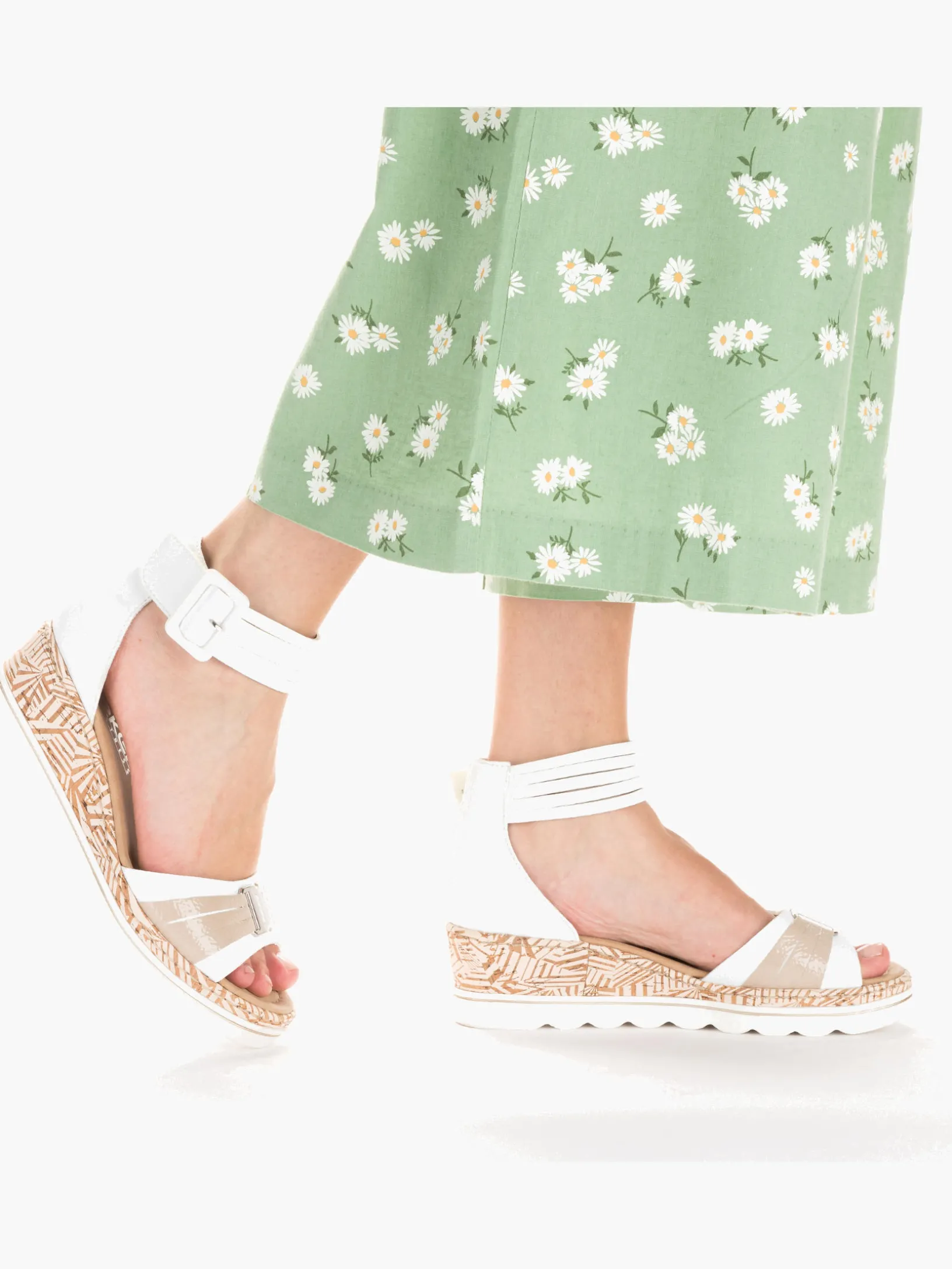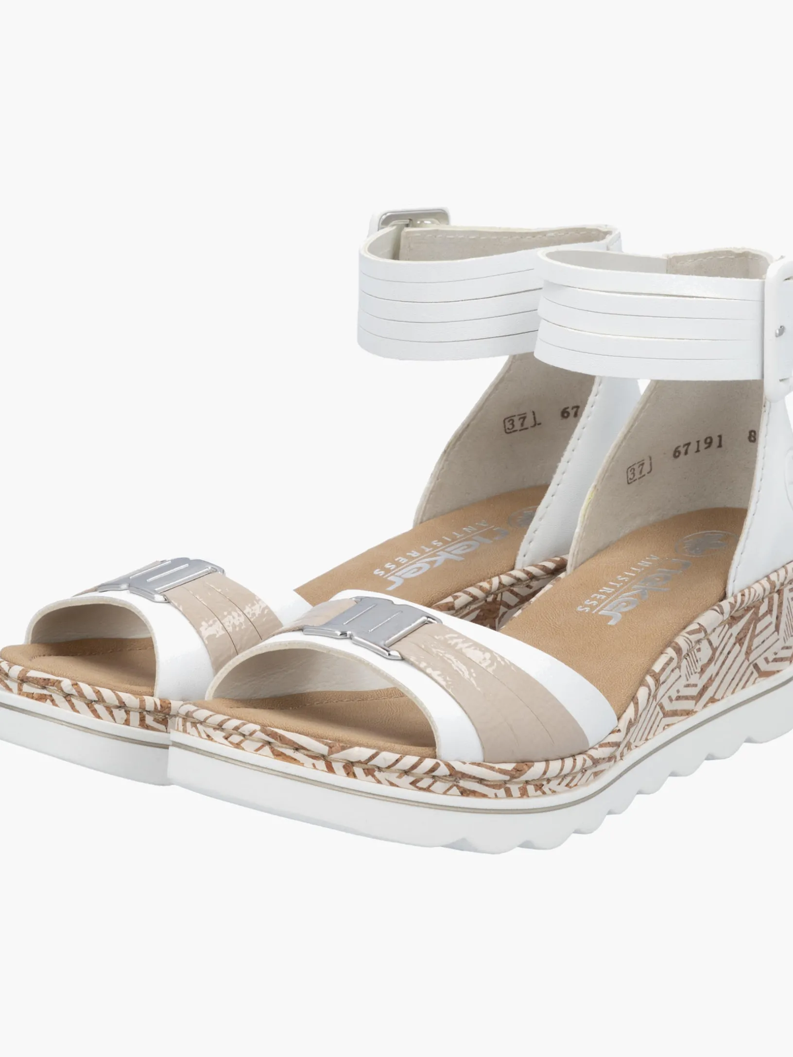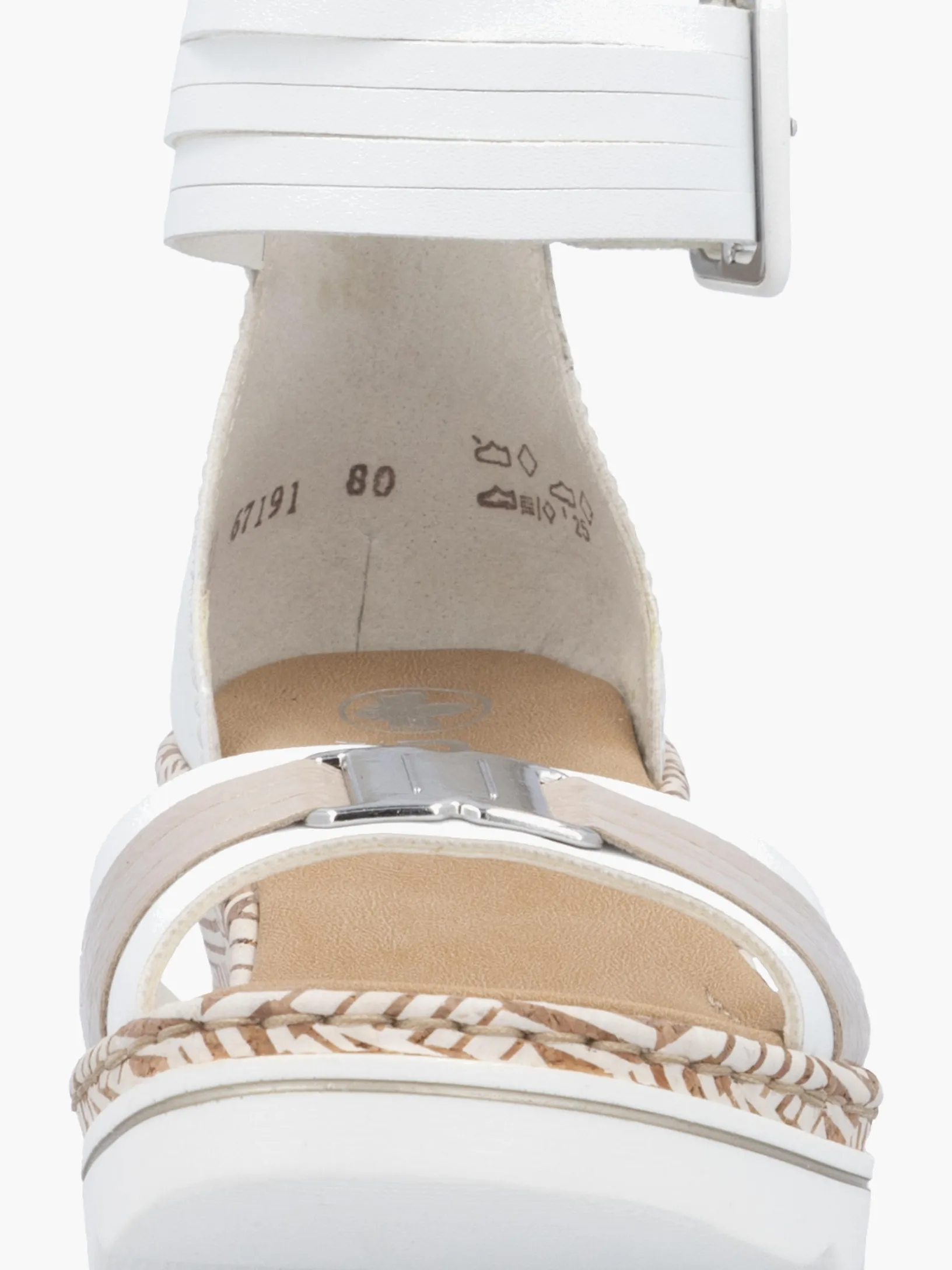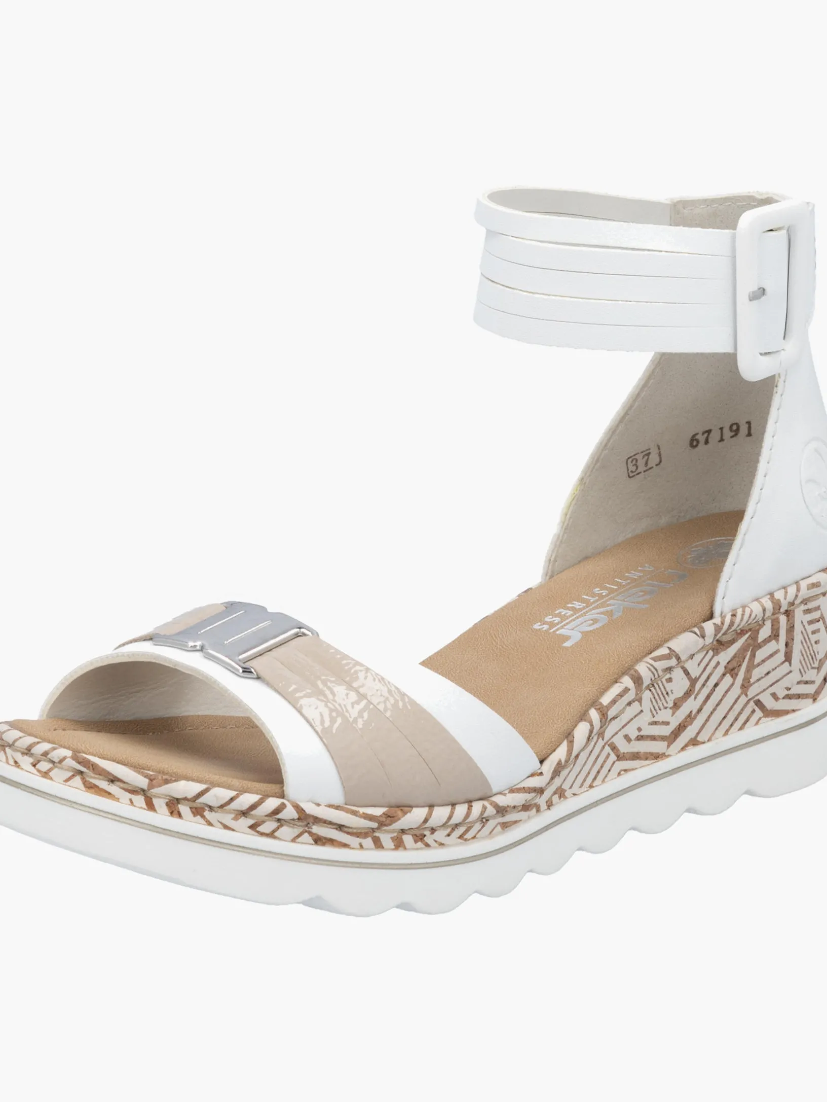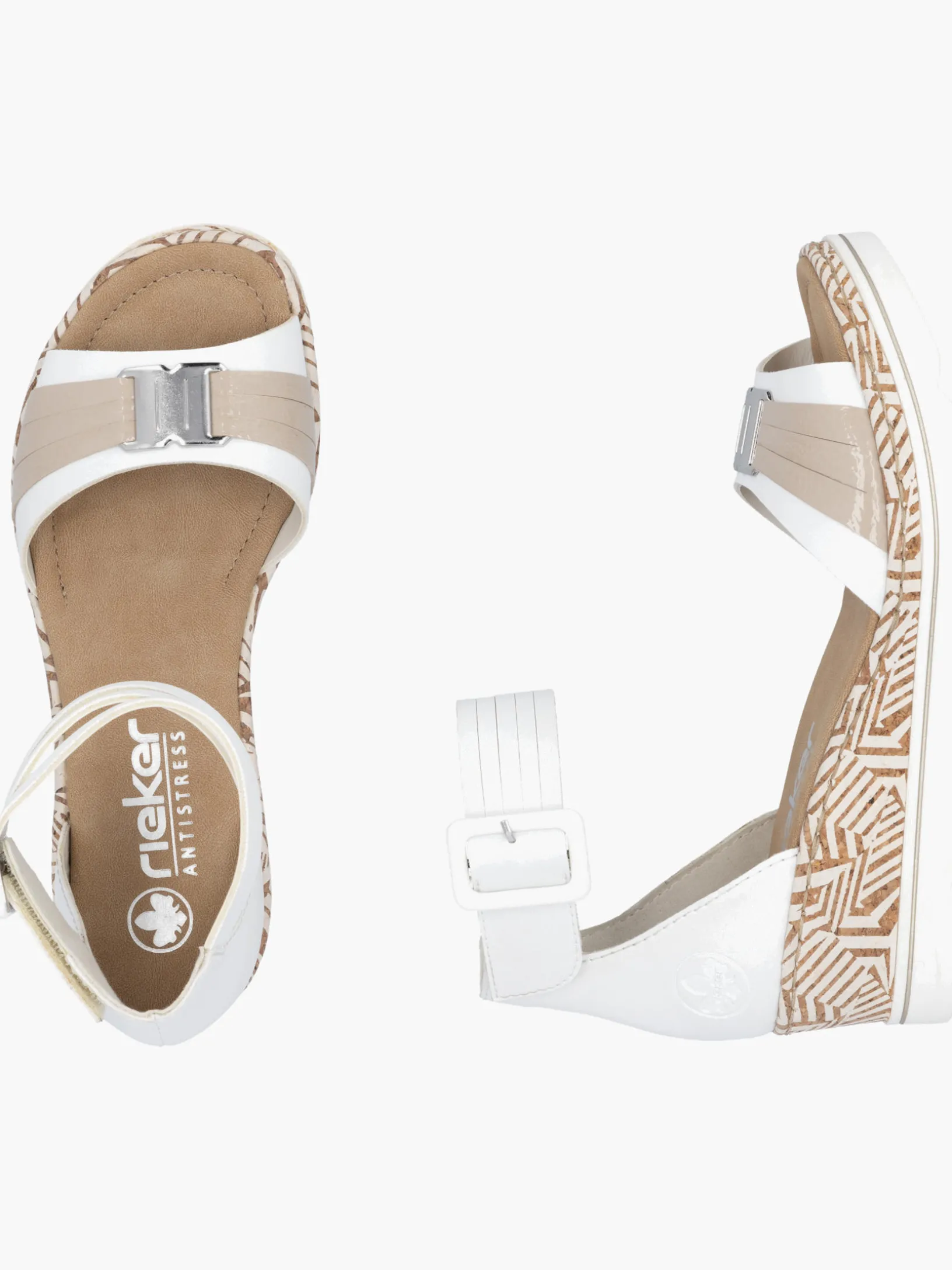 Auf dem Fashion-Radar! Die lilienweißen Rieker Keilsandaletten sind nicht nur ein echter Hingucker, sondern auch unglaublich bequem für den Alltag. Durch den Klettverschluss kann das Modell ganz schnell angezogen werden. Mit der schockabsorbierenden und sehr leichten Sohle mit Keilabsatz freuen sich die Füße über besten Laufkomfort bei jedem Schritt. Alles in einem – top!
