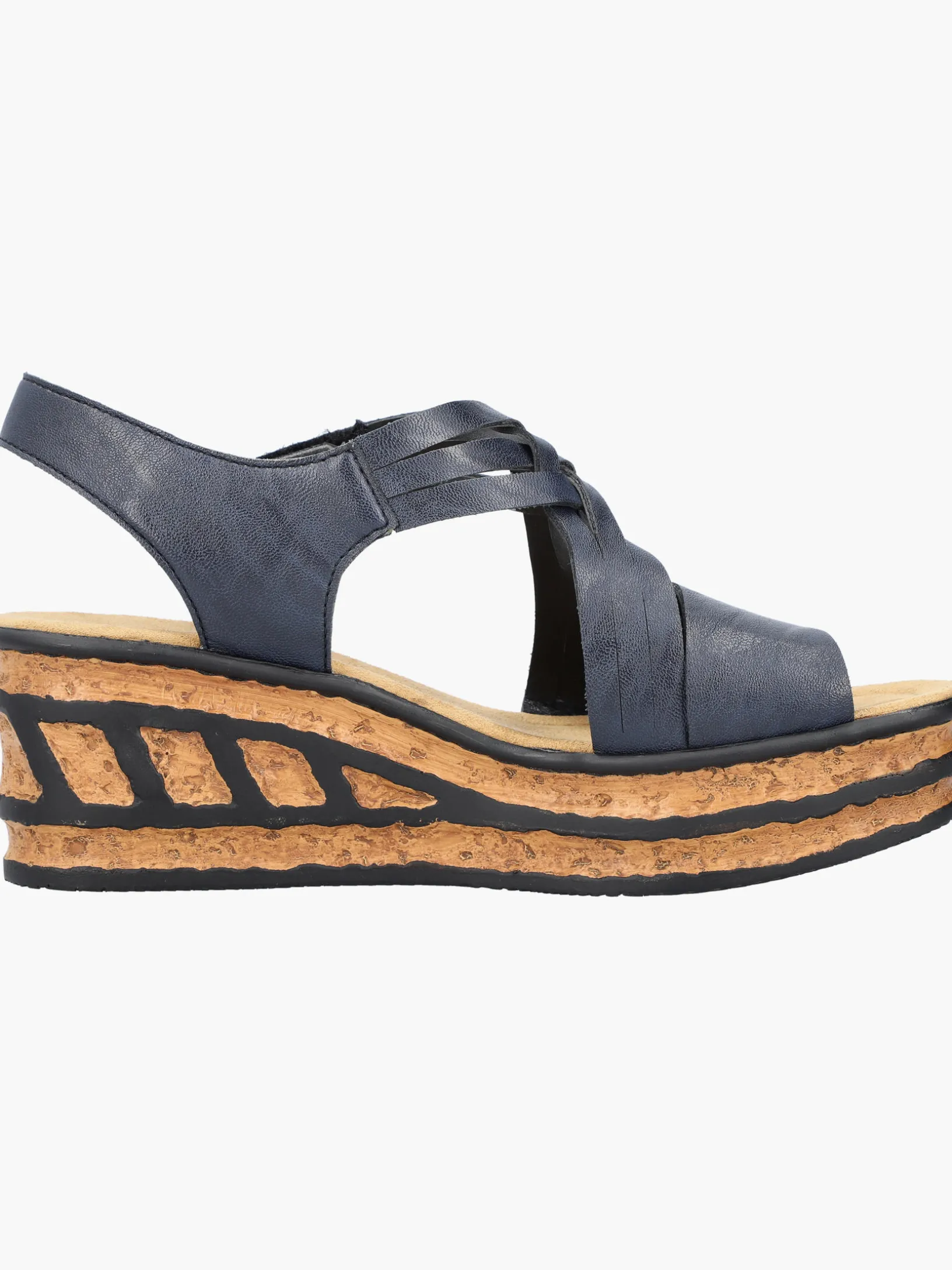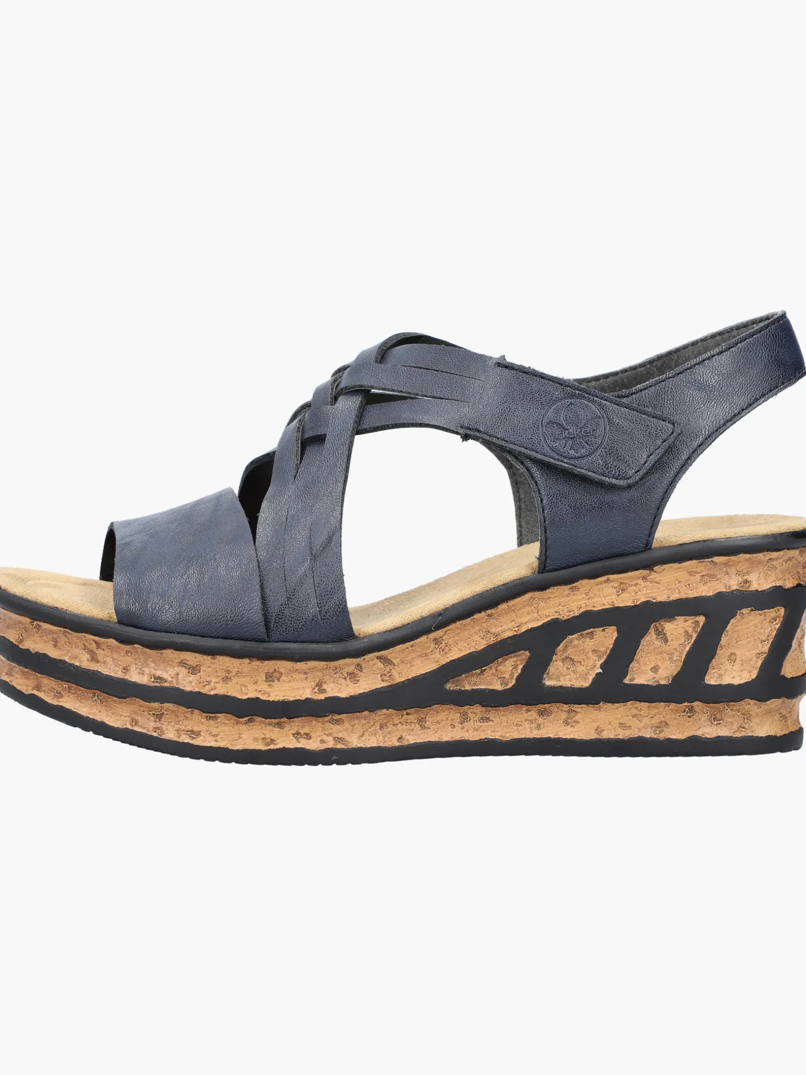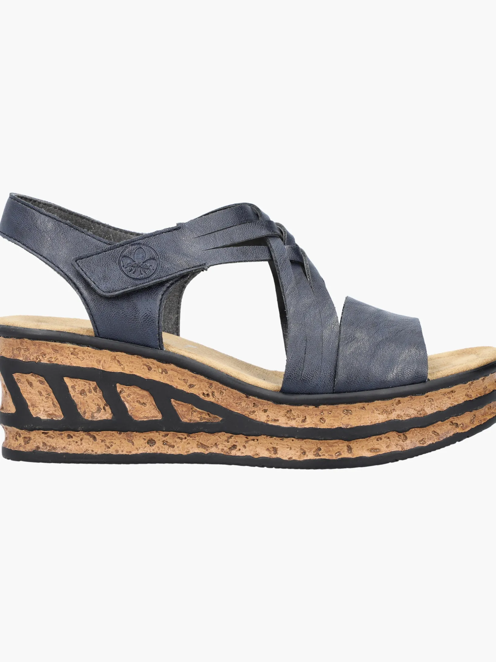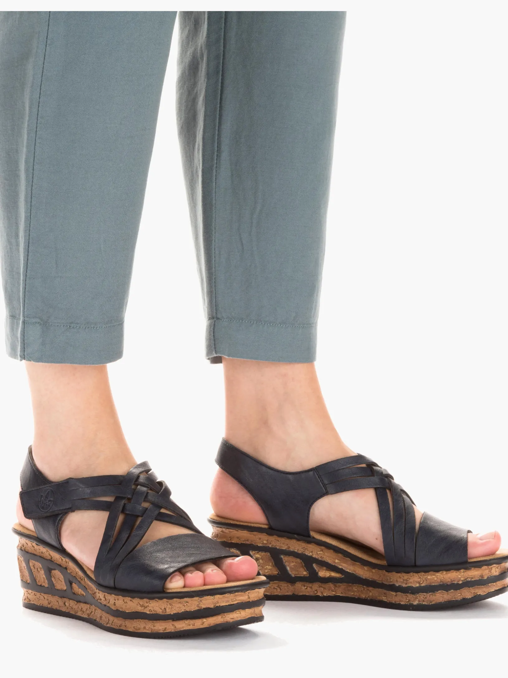 Comfort meets Style. Diese schieferblauen Rieker Keilsandaletten sind perfekt geeignet für jeden Tag. Geflochtene Riemen und ein Klettverschluss sorgen zusammen mit dem Fersenband für idealen Halt. Die schwarzen Linien an der Sohle sorgen für das perfekte Finish und einen auffallenden Look. Die leichte und schockabsorbierende Sohle mit Keilabsatz verwöhnt die Füße darüber hinaus bei jedem Schritt. Schöner Nebeneffekt: Man ist gleich ein paar Zentimeter größer!