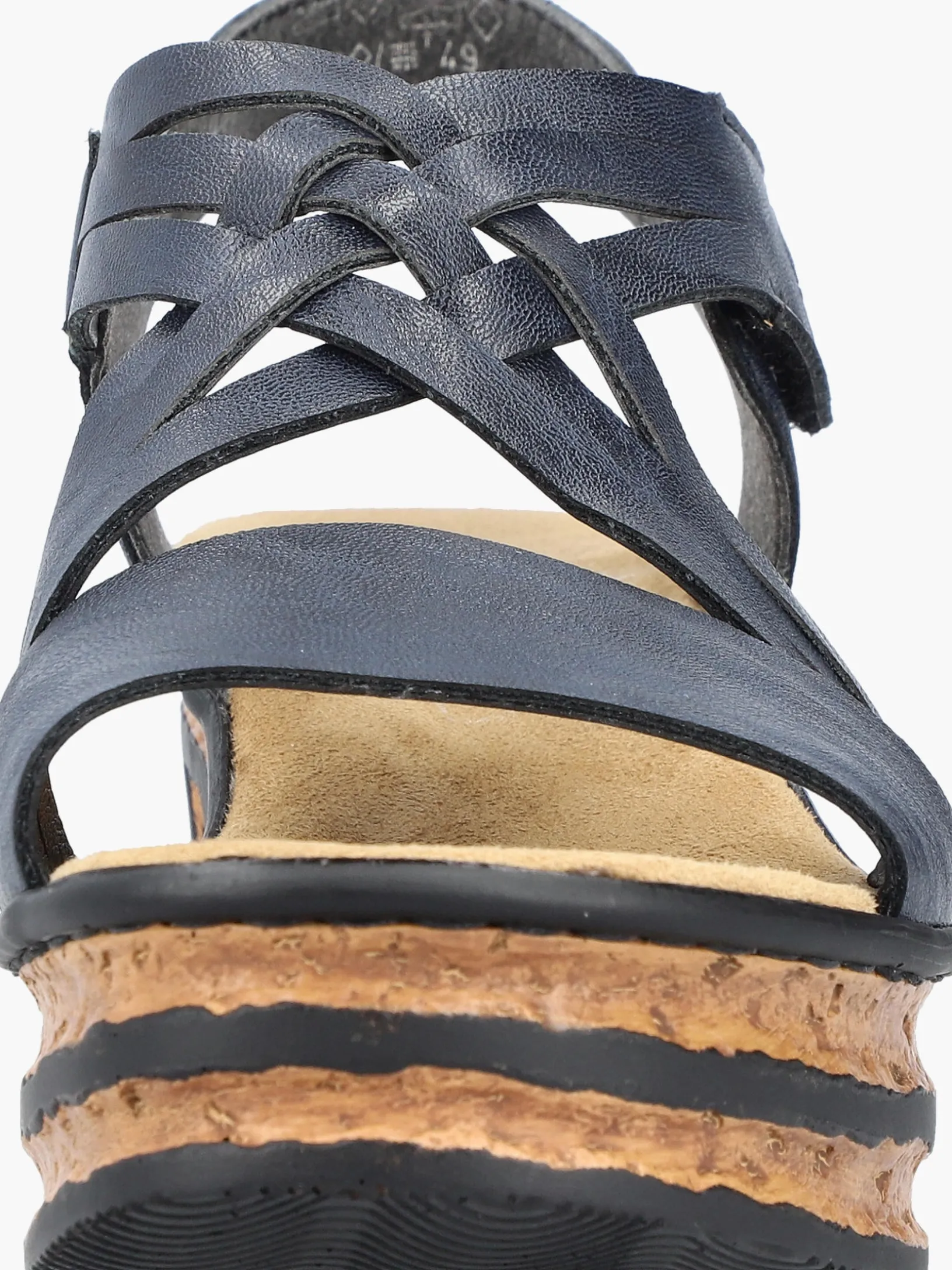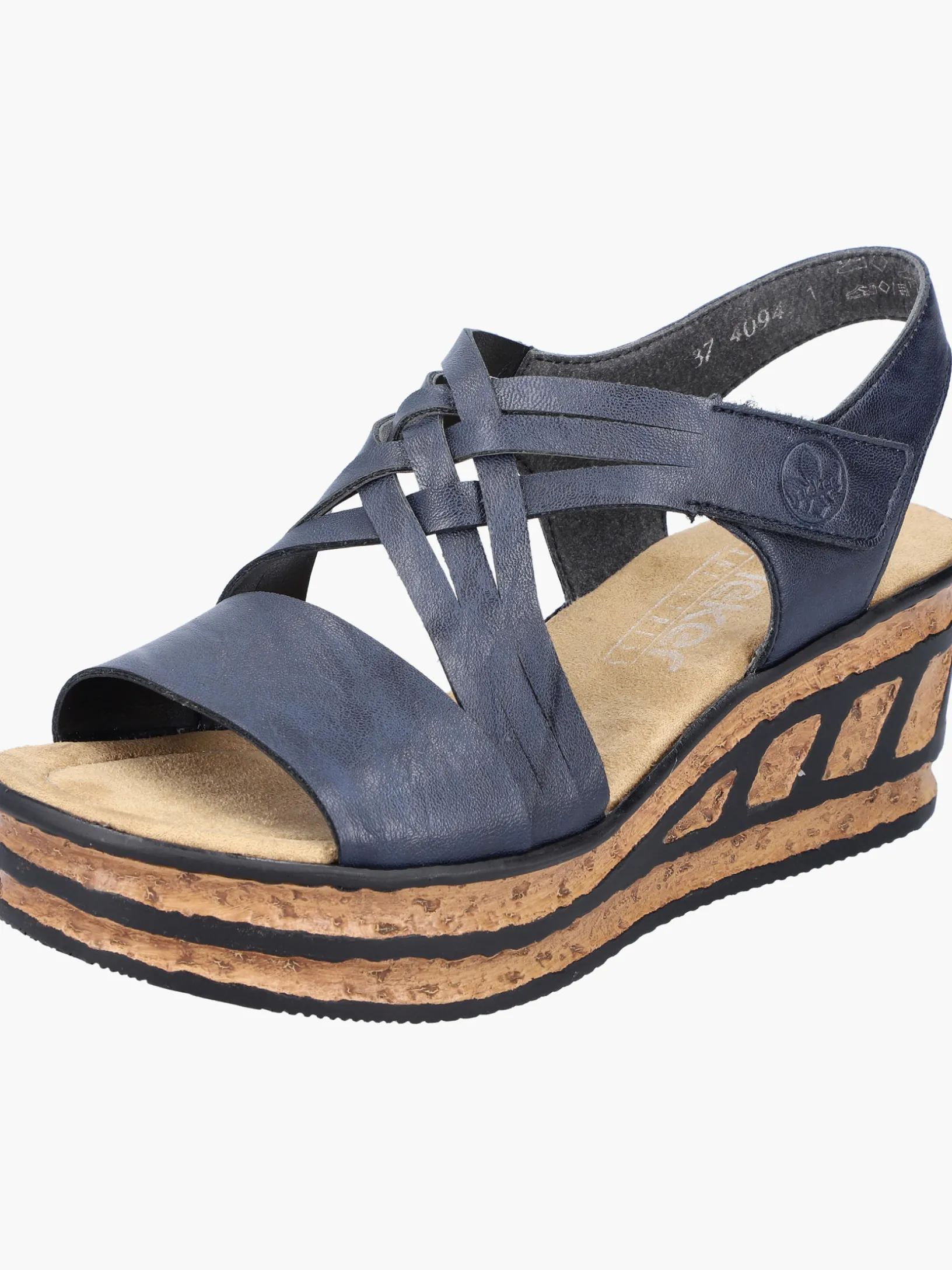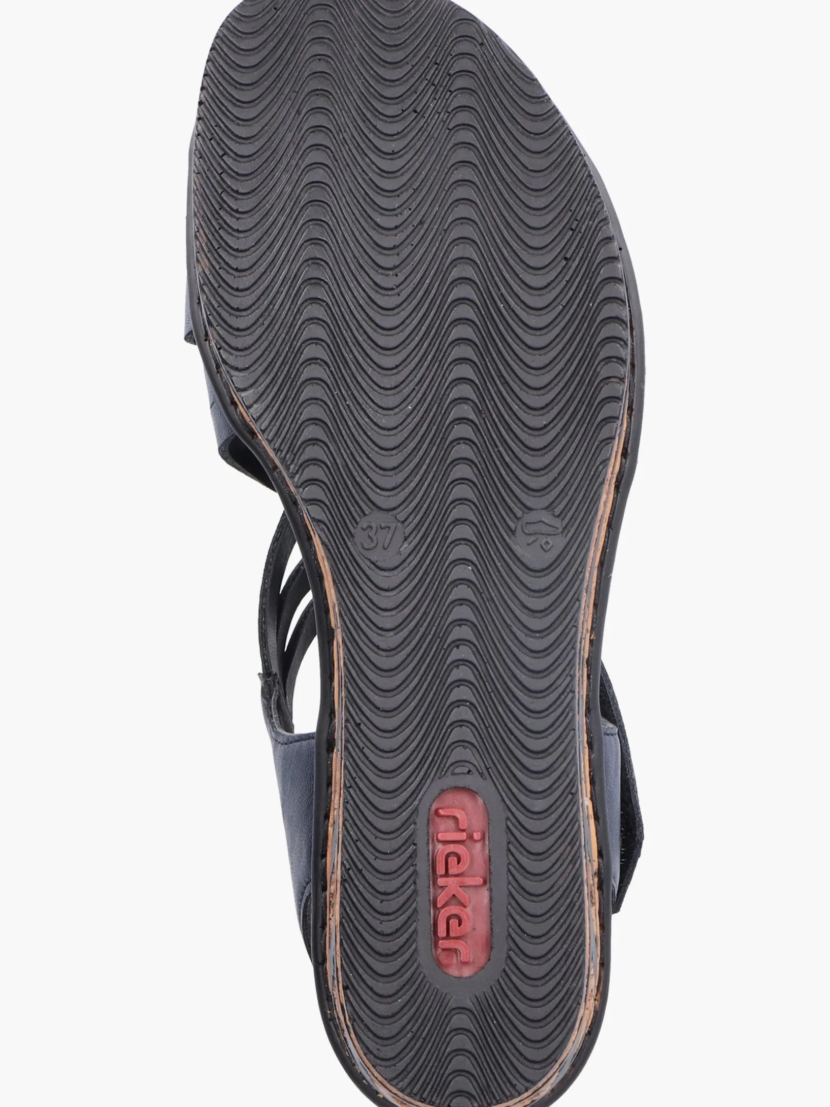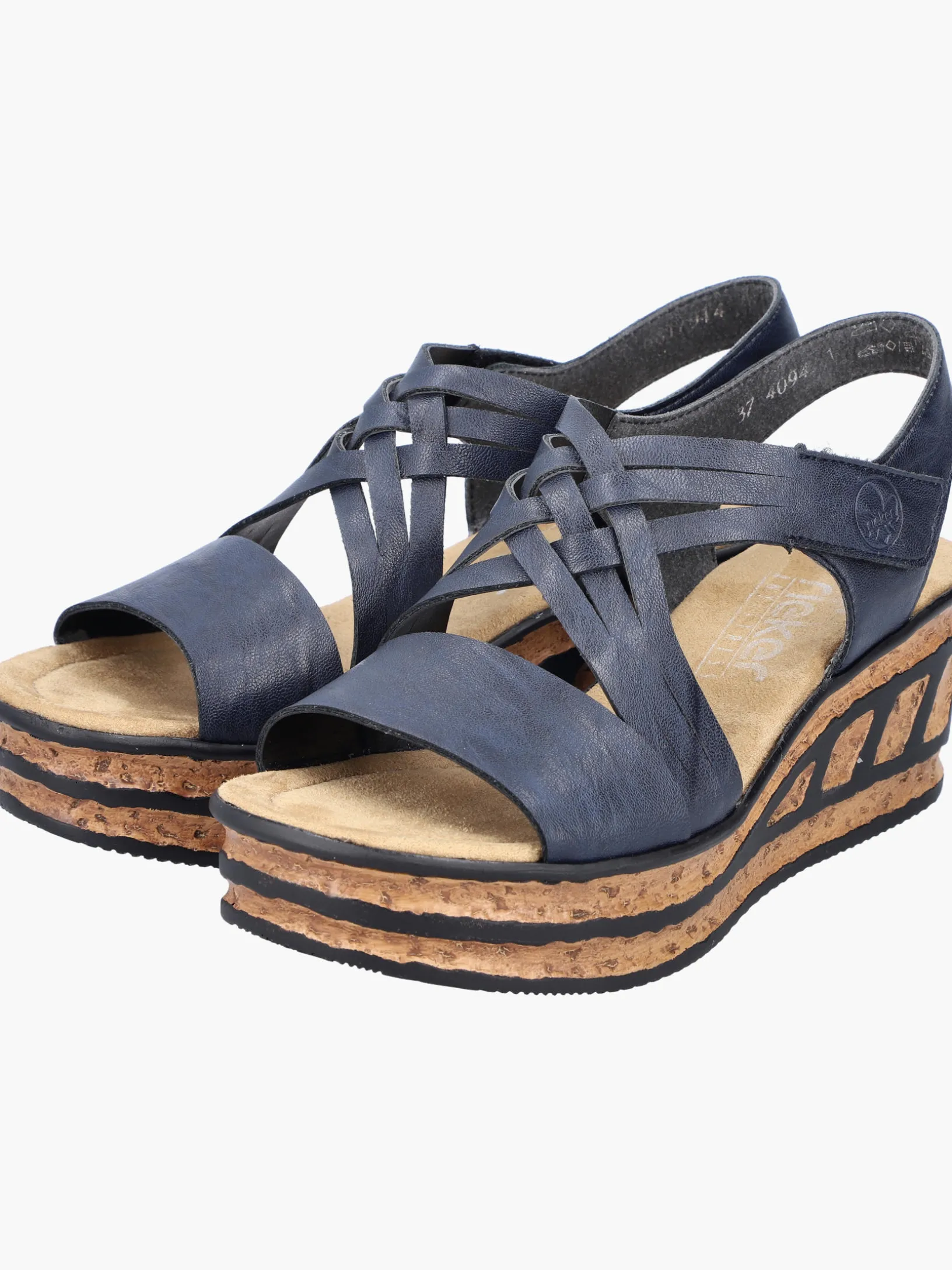 Comfort meets Style. Diese schieferblauen Rieker Keilsandaletten sind perfekt geeignet für jeden Tag. Geflochtene Riemen und ein Klettverschluss sorgen zusammen mit dem Fersenband für idealen Halt. Die schwarzen Linien an der Sohle sorgen für das perfekte Finish und einen auffallenden Look. Die leichte und schockabsorbierende Sohle mit Keilabsatz verwöhnt die Füße darüber hinaus bei jedem Schritt. Schöner Nebeneffekt: Man ist gleich ein paar Zentimeter größer!