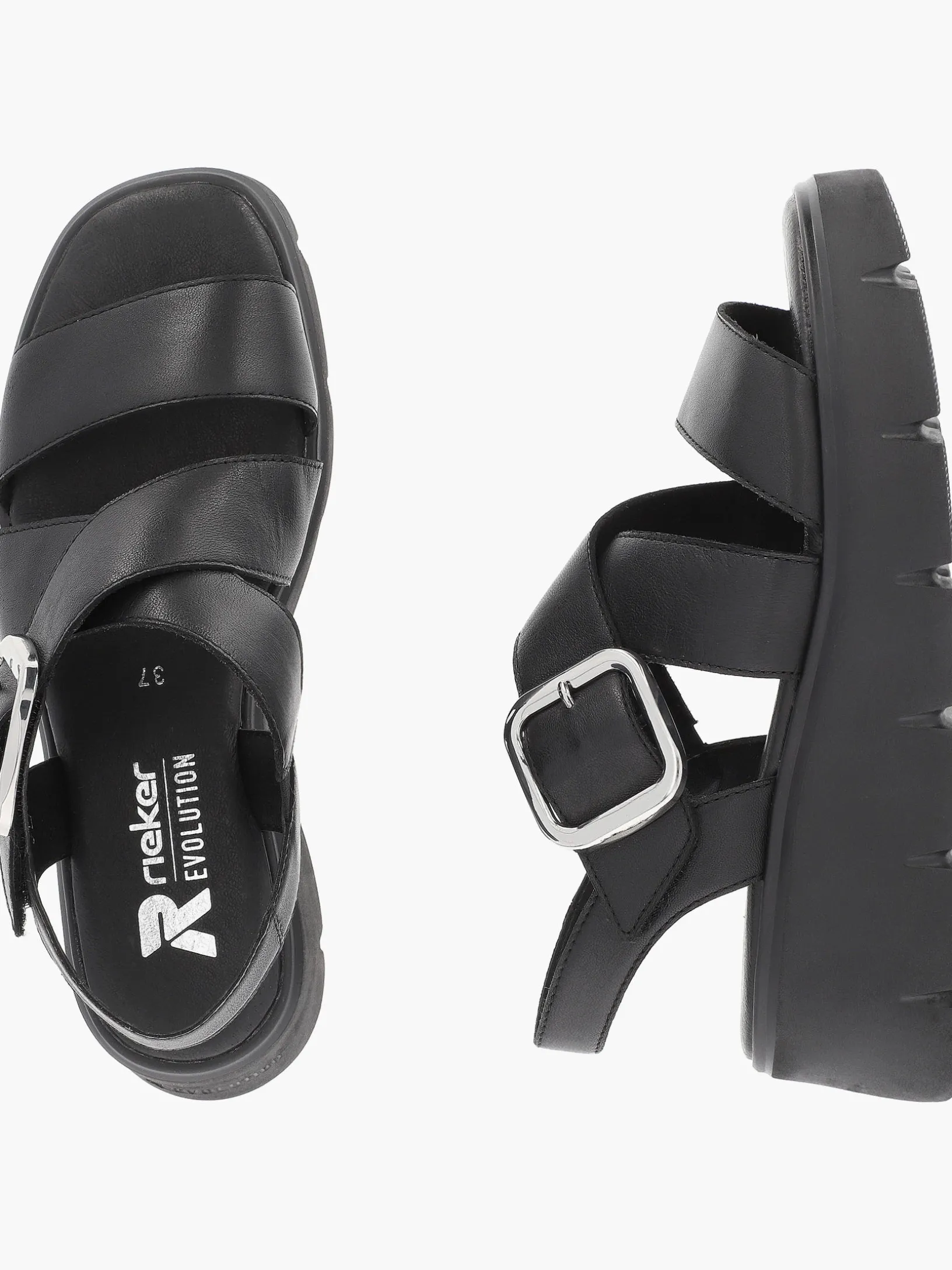 Mindestens genau so bequem wie cool! Diese Rieker Riemchensandalen für Damen aus Glattleder in Schwarz versprechen ein Höchstmaß an sporty Sommer-Vibes. Optimaler Halt und eine ideale Passform sind durch verstellbare Riemen, einen silbernen Klettverschluss und den Fersenriemen garantiert. Die Sohle mit Keilabsatz ist sowohl flexibel als auch ultra leicht und bietet damit ein doppeltes Wohlgefühl bei jedem Schritt. Zudem ist die Leder-Decksohle extra weich. Das Innenfutter aus Leder und Microvelour sorgt für ein gutes Fußklima. Immer top in Form mit Rieker!