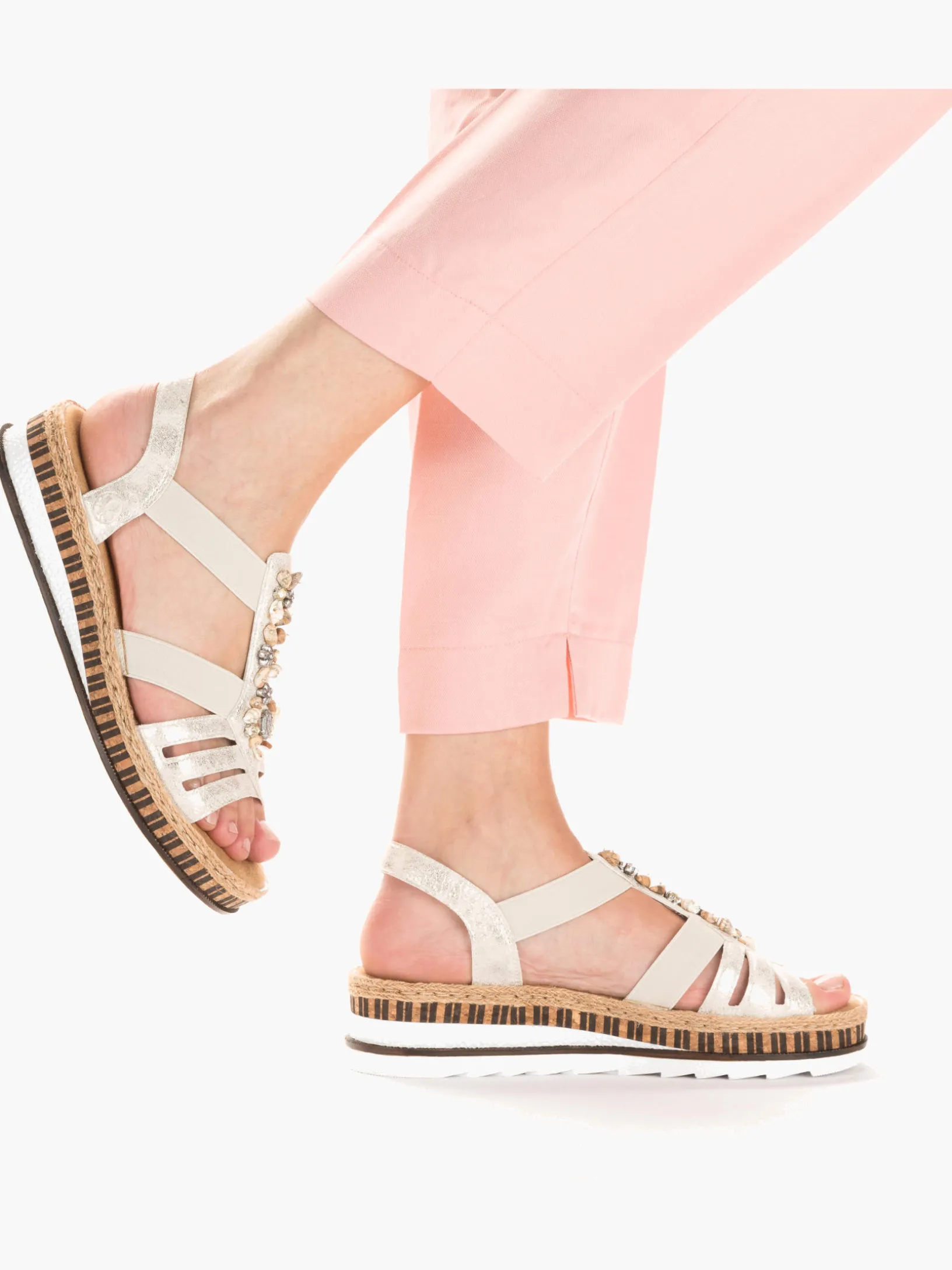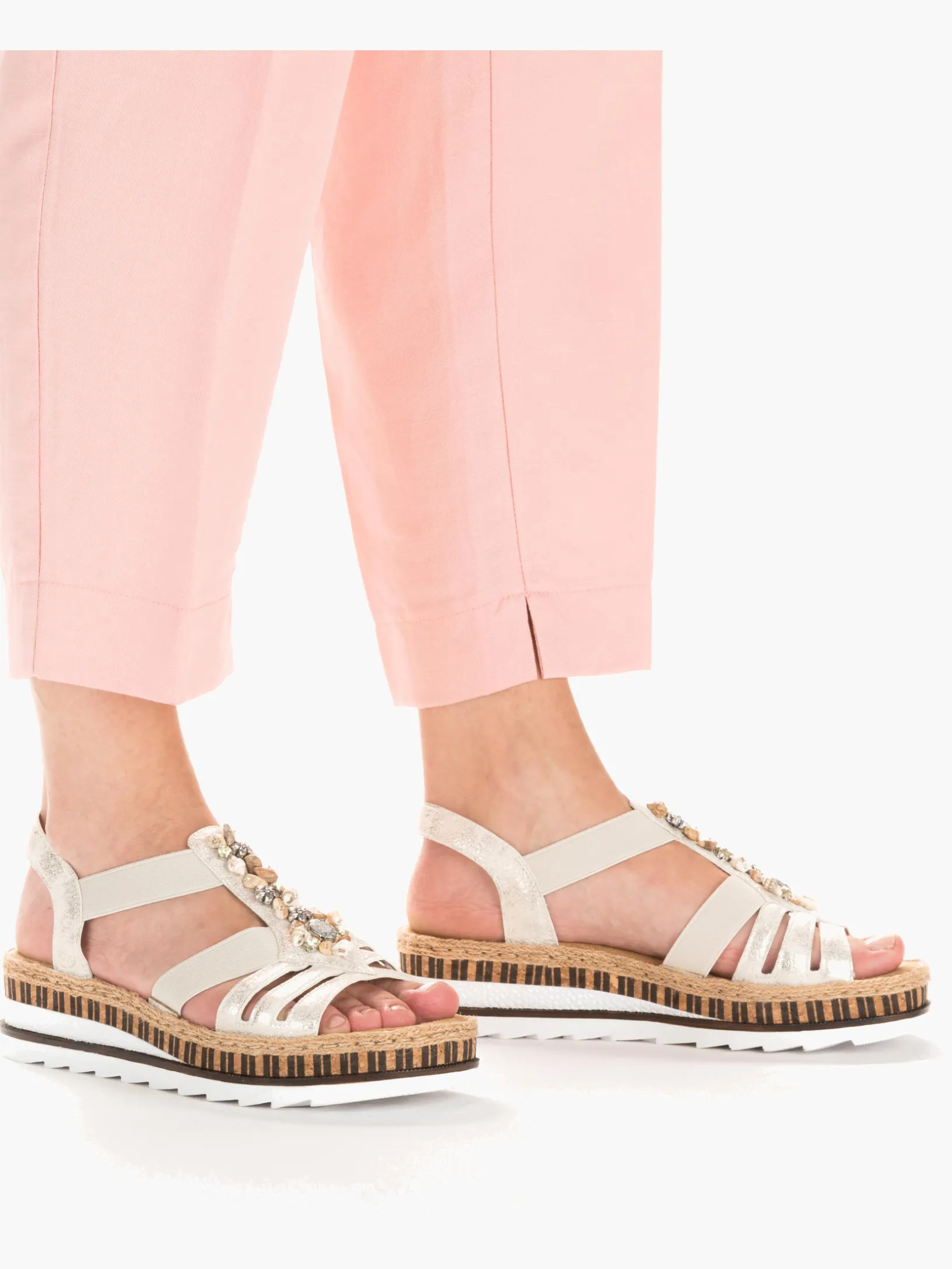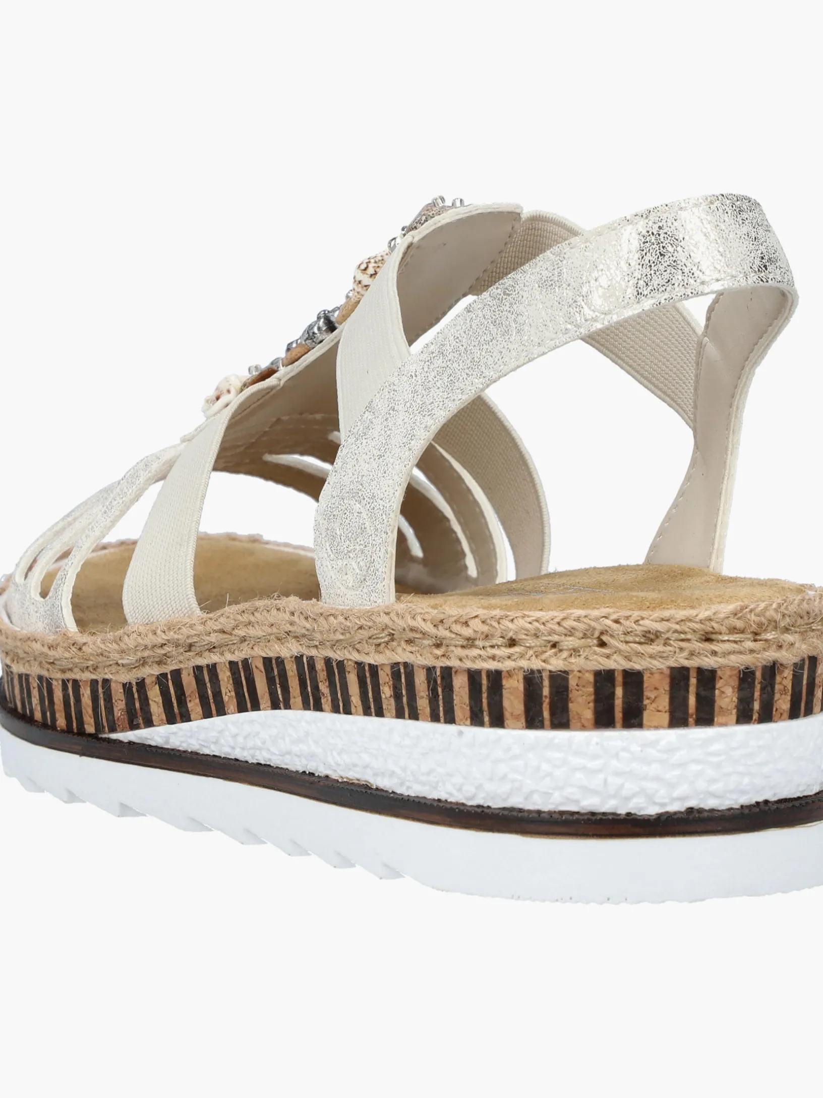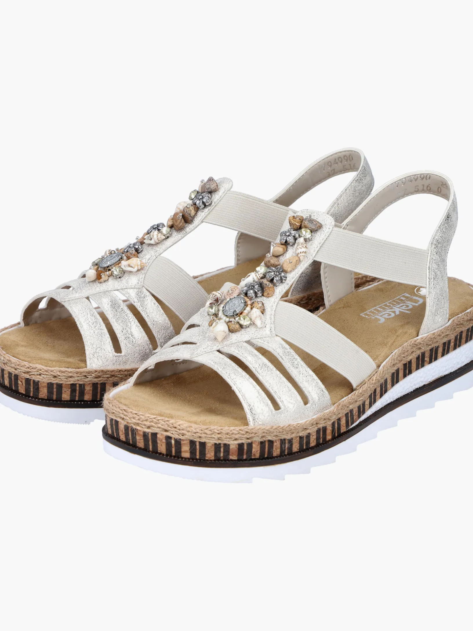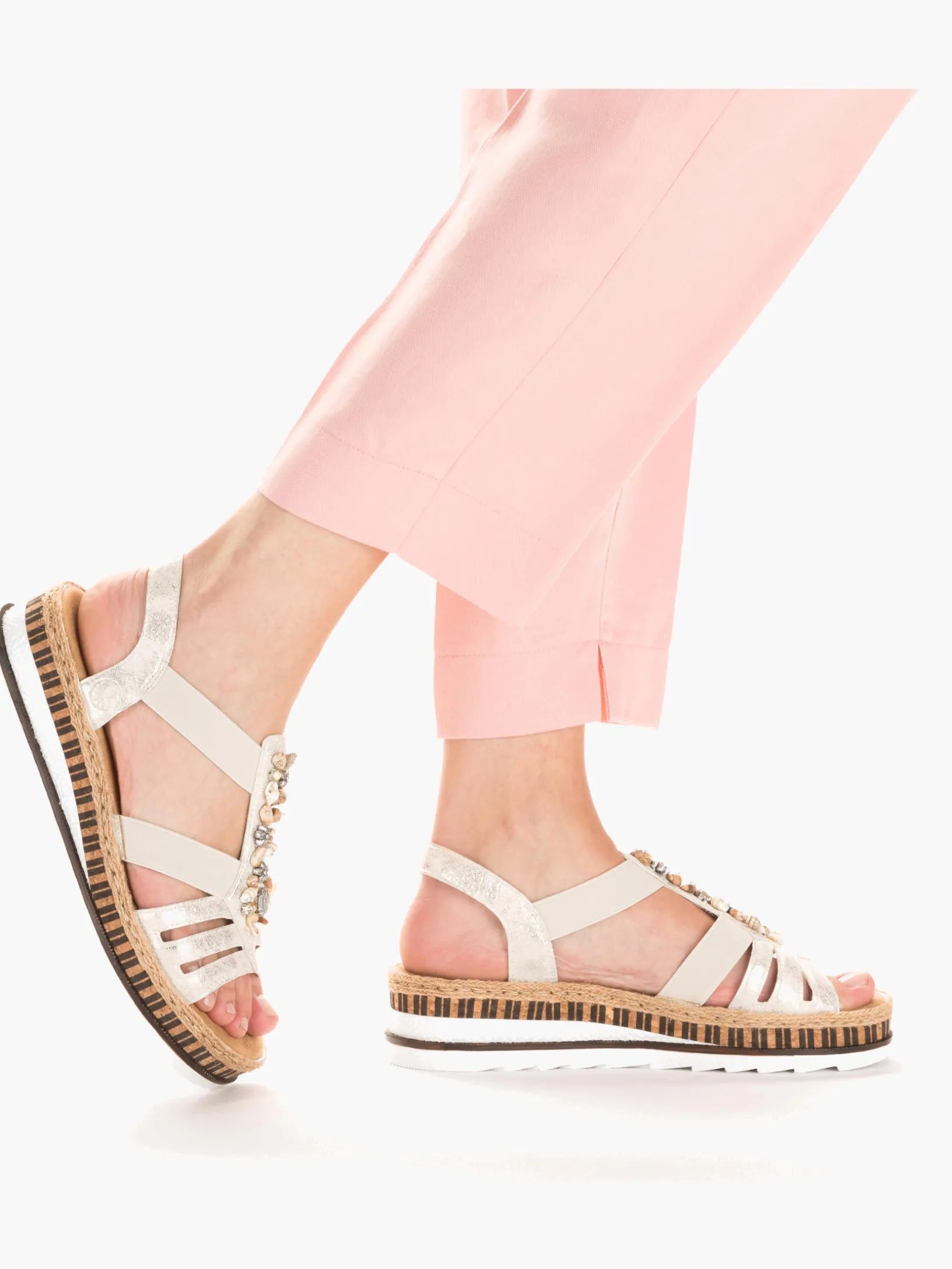 Lieblingsschuh-Potential! Diese beigen Rieker Keilsandaletten sind ein komfortabler Begleiter. Der Einstieg wird durch einen Elastikeinsatz erleichtert. Der Mittelriemen mit dekorativen Perlen setzt das Design modisch in Szene. Die sehr leichte und schockabsorbierende Sohle verwöhnt die Füße zusätzlich bei jedem Schritt. Außerdem ist die Decksohle extra weich. Durch die schmale Passform E 1/2 bieten die Keilsandaletten zusätzlichen Halt. 100% Lieblingsschuh-Potential!