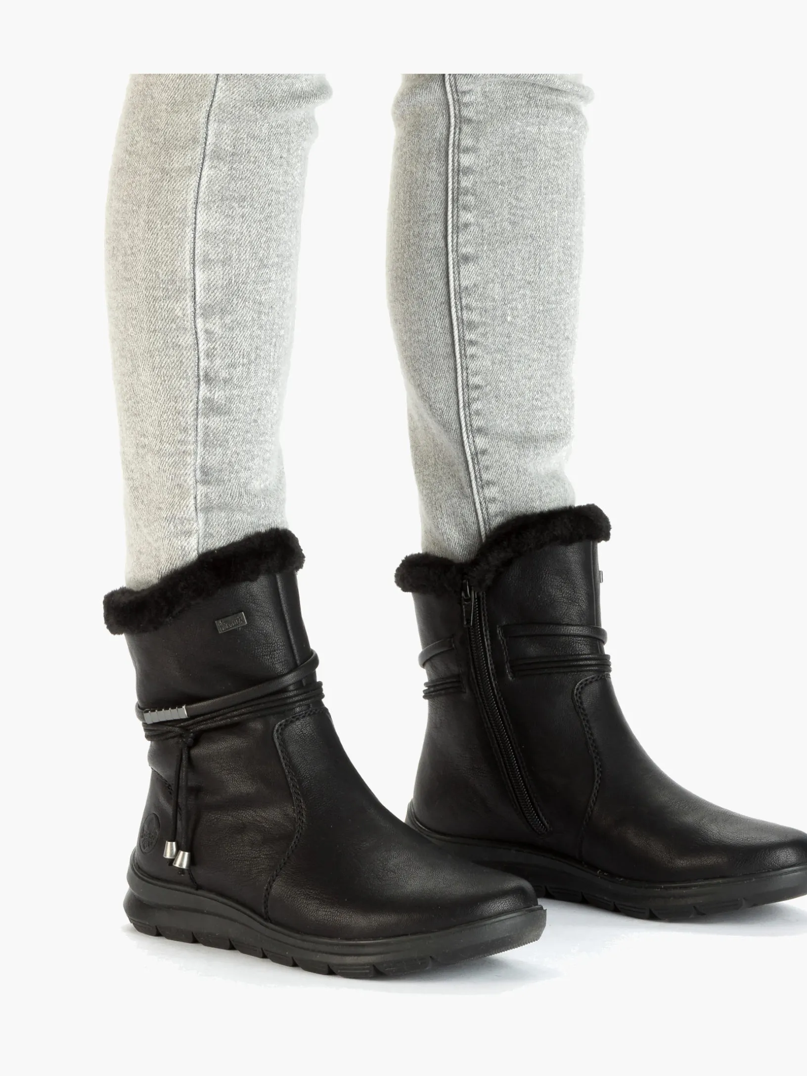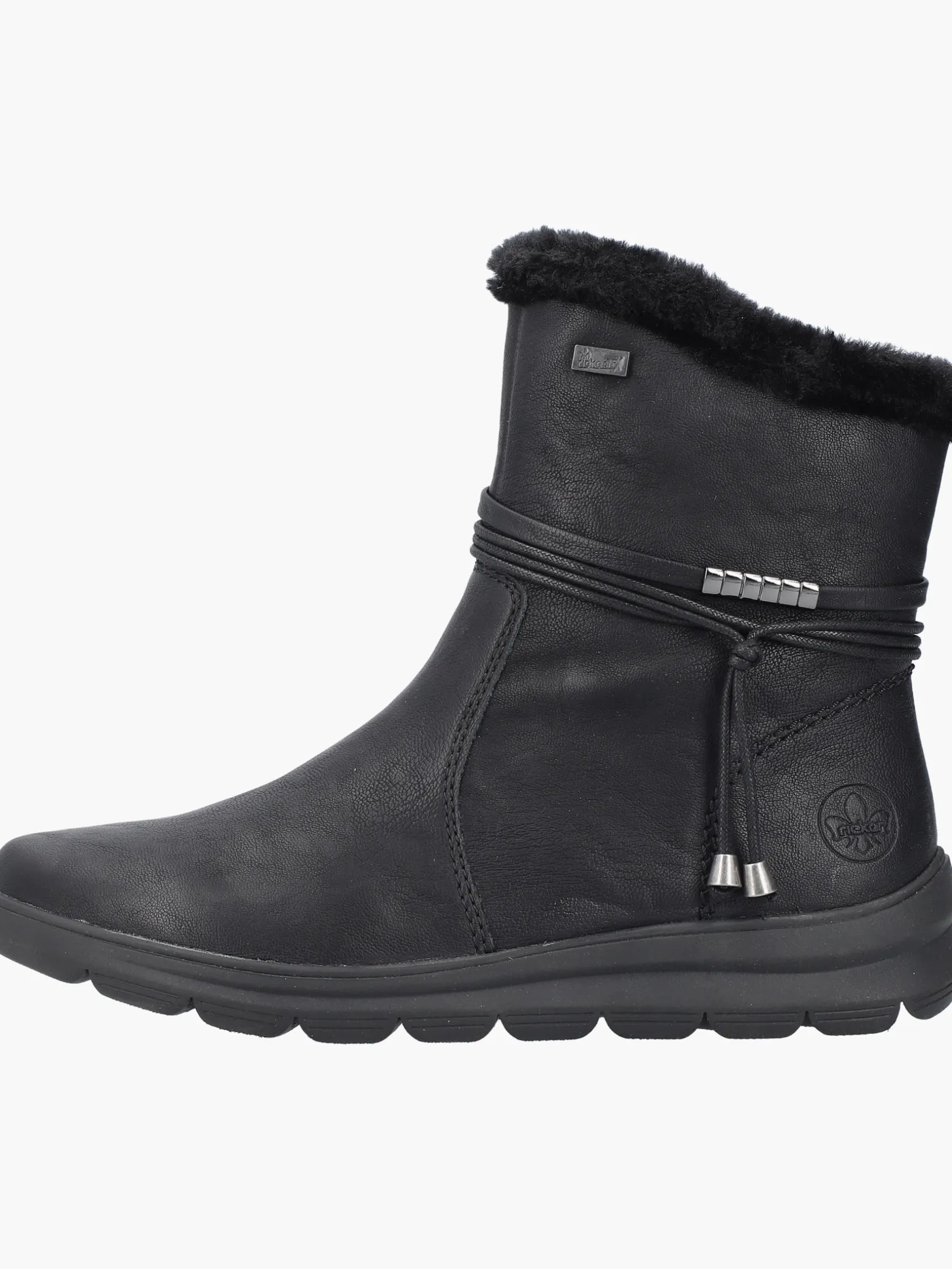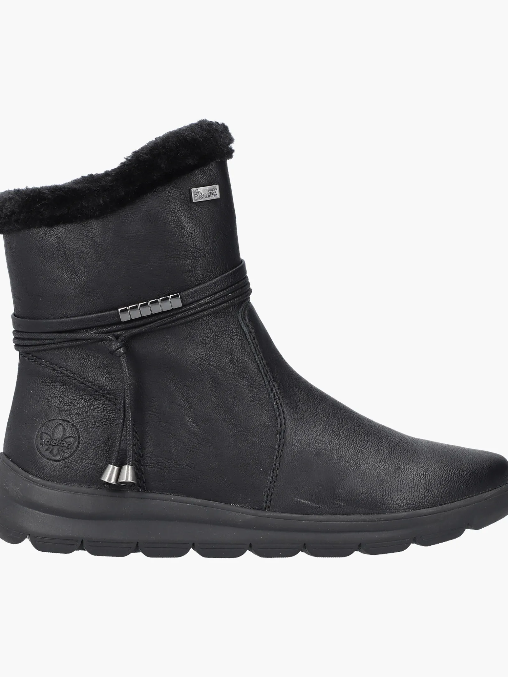 Lieblingsschuh-Potential! Diese tiefschwarzen Kurzstiefel von Rieker überzeugen durch modernes Design und hohen Tragekomfort. Der Reißverschluss ermöglicht ein einfaches An- und Ausziehen. Die schwarze Quaste an der Seite setzt das Design modisch in Szene. Durch die robuste Profilsohle ist jeder Schritt eine sichere Angelegenheit. Die Kurzstiefel punkten auch noch mit einer gepolsterten und herausnehmbaren Einlegesohle. Für große Füße ist der Schuh bis zur Größe 43 erhältlich. Die RiekerTEX-Technologie und das Warmfutter garantieren zudem tollen Tragekomfort bei jedem Wetter. Da haben die Minustemperaturen schlechte Karten!