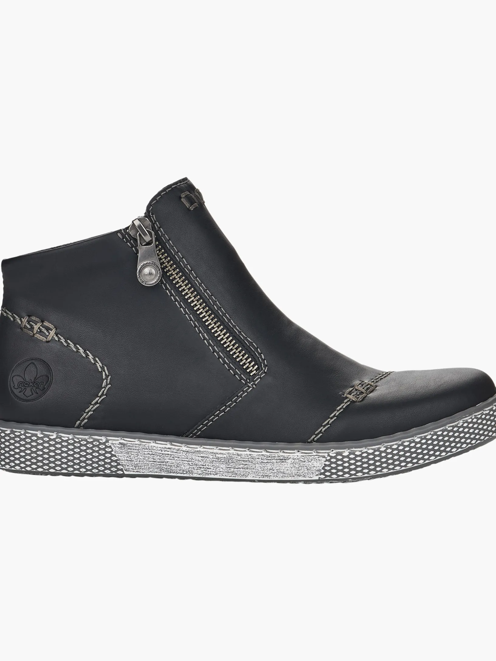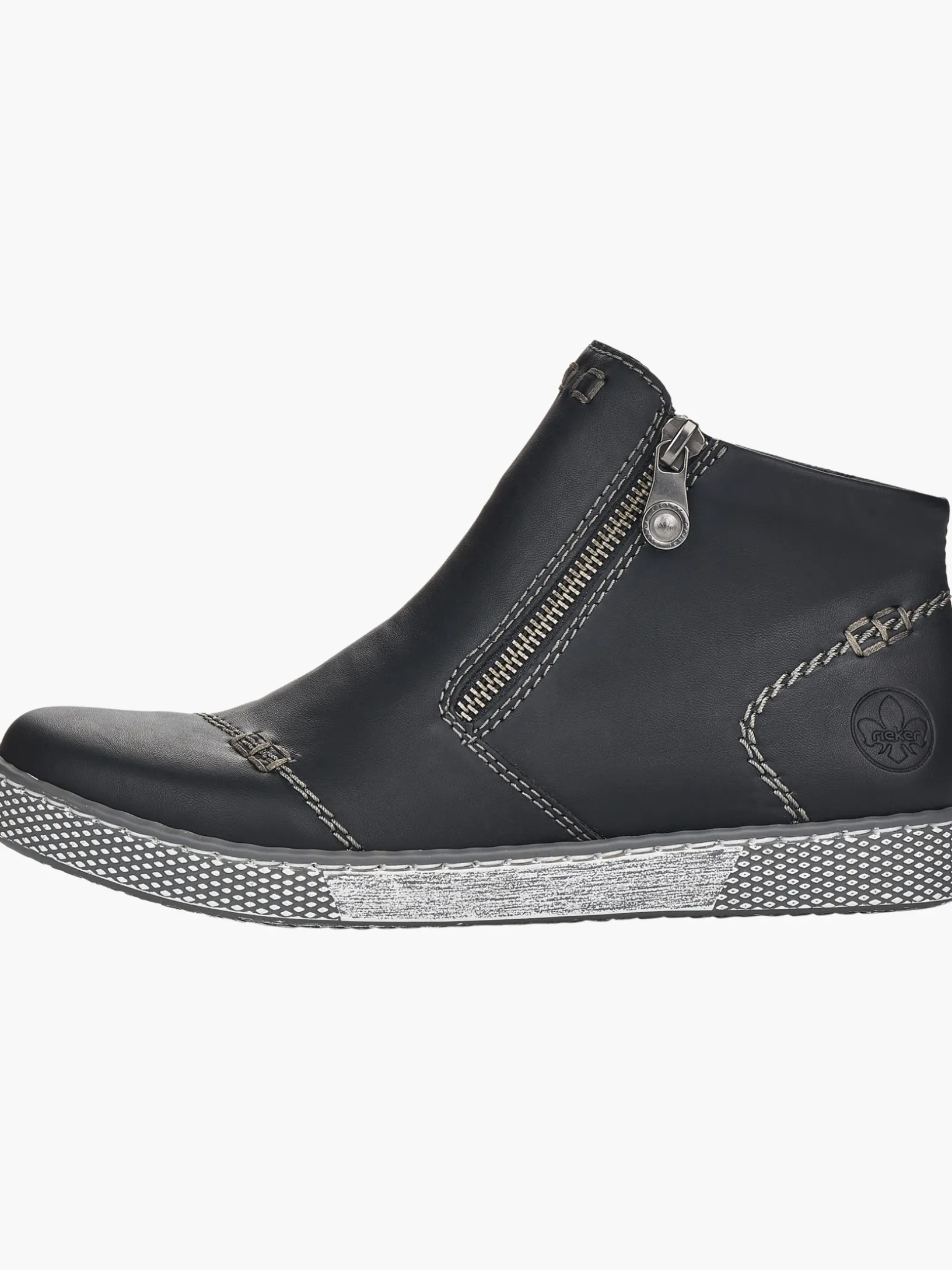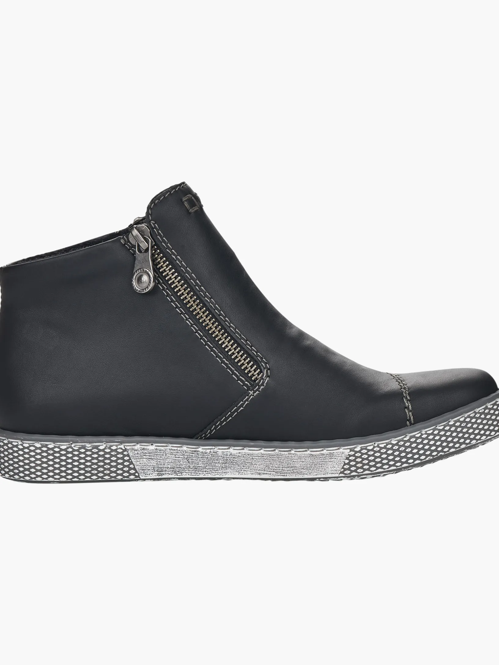Immer einen Schritt voraus! Diese tiefschwarzen Kurzstiefel von Rieker garantieren ein himmlisches Tragegefühl. Durch den Reißverschluss kann der Schuh ganz schnell angezogen werden. Die robuste Profilsohle sorgt für guten Halt. Dank der herausnehmbaren Einlegesohle ist bester Komfort und raffinierte Funktionalität gegeben. Worauf warten?
