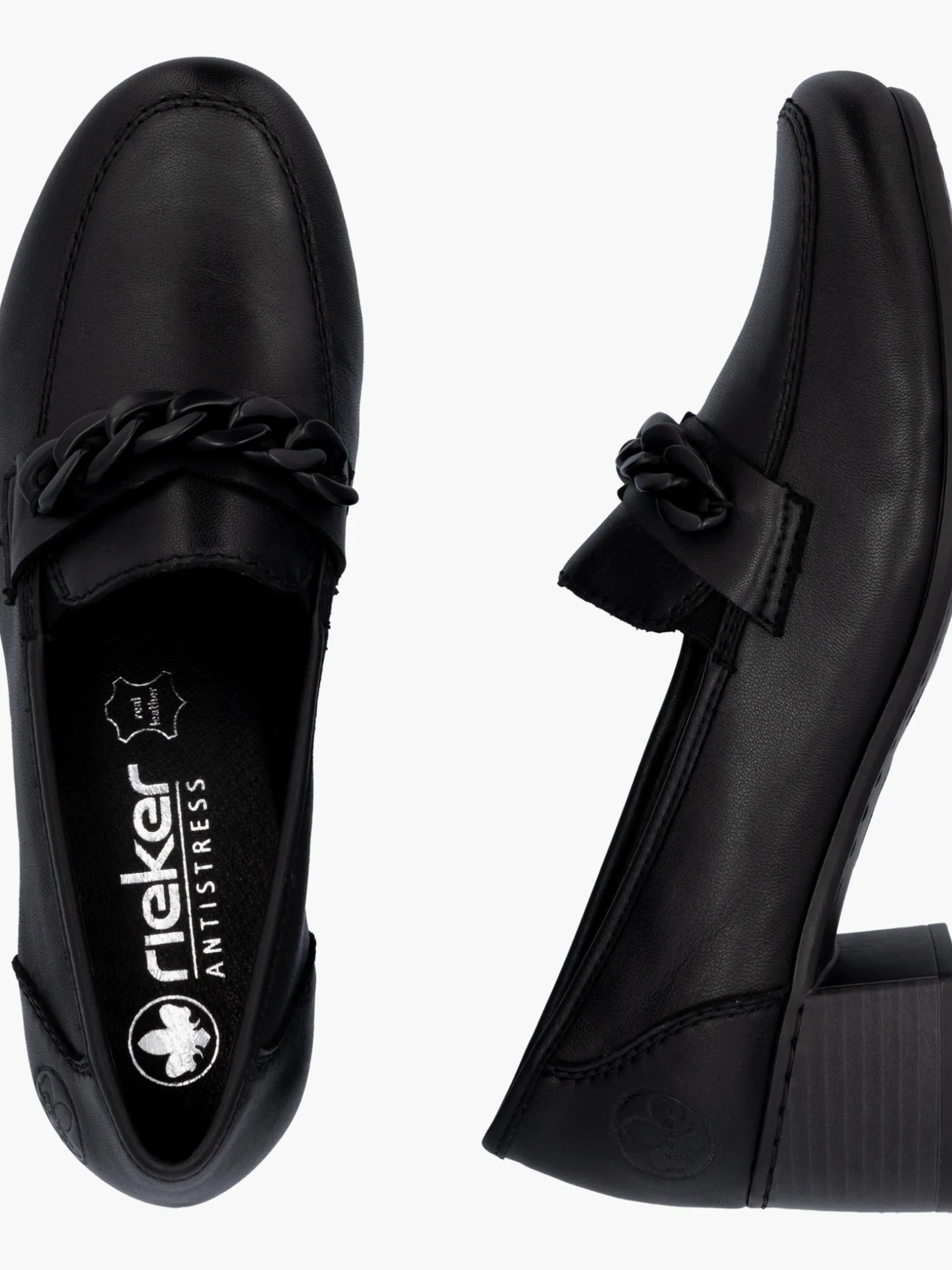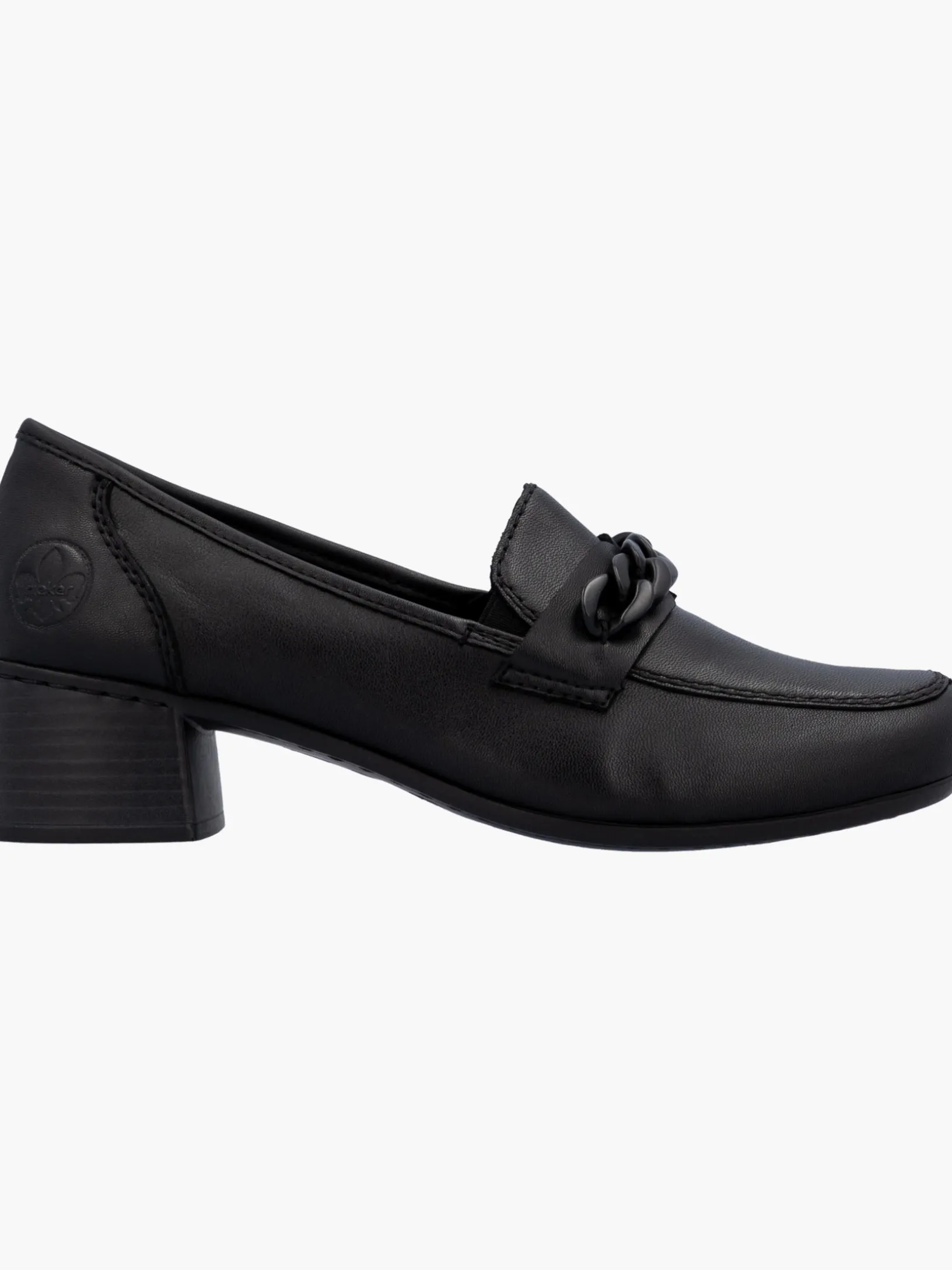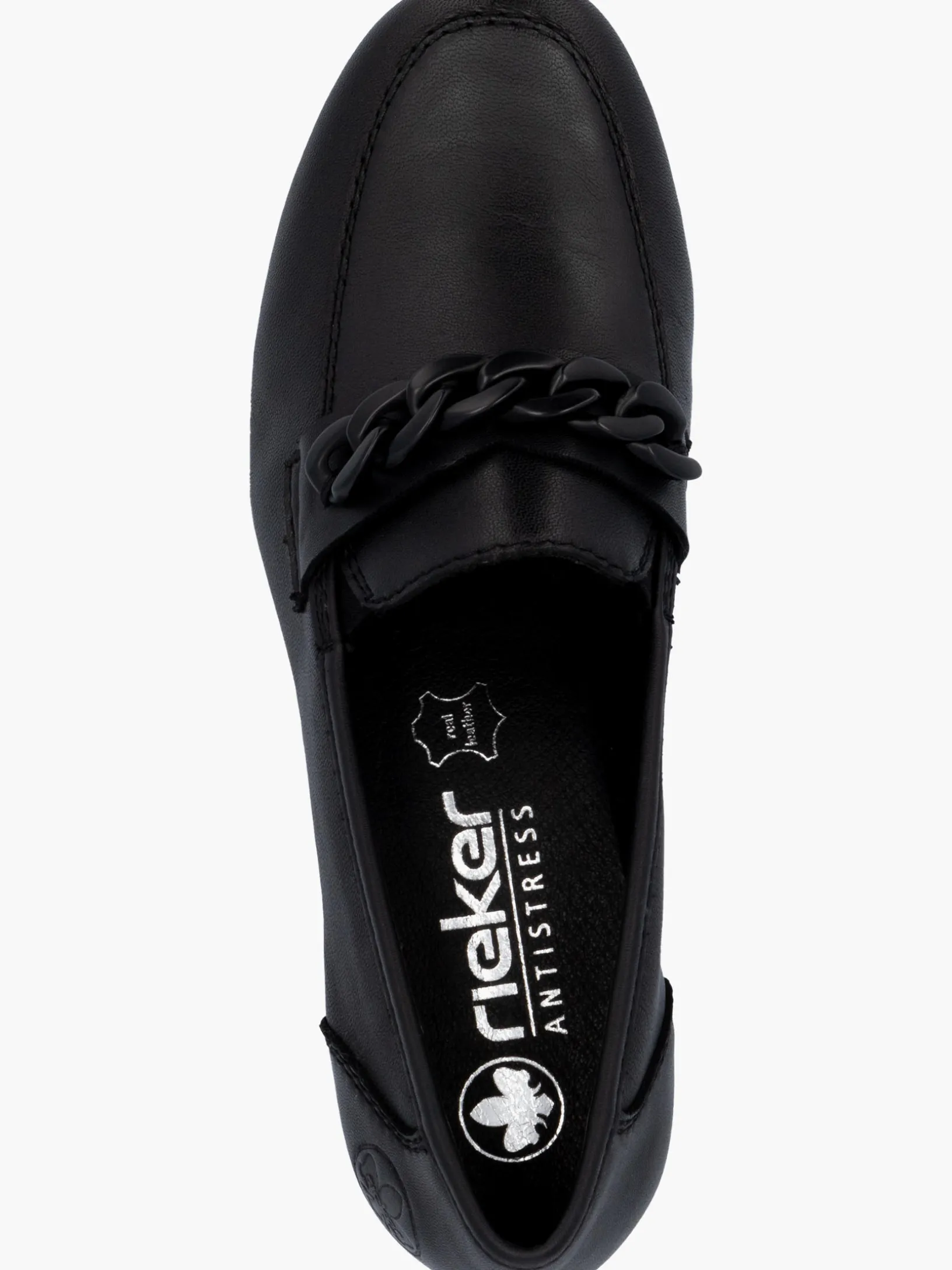 Happy feet, happy life! Mit diesen alltagstauglichen mitternachtsschwarzen Rieker Loafern für Damen aus Glattleder bist du mit maximalem Komfort und ultimativem Style unterwegs. Der Elastikeinsatz ermöglicht ein leichtes An- und Ausziehen. Die stylische Kette in Schwarz setzt das Design modisch in Szene. Die schockabsorbierende und leichte Sohle mit Blockabsatz bietet anhaltendes Wohlgefühl ‒ auch an langen Tagen. Ein weiteres Plus ist die extra weiche Decksohle. Deine Best-Buddies für die neue Saison!