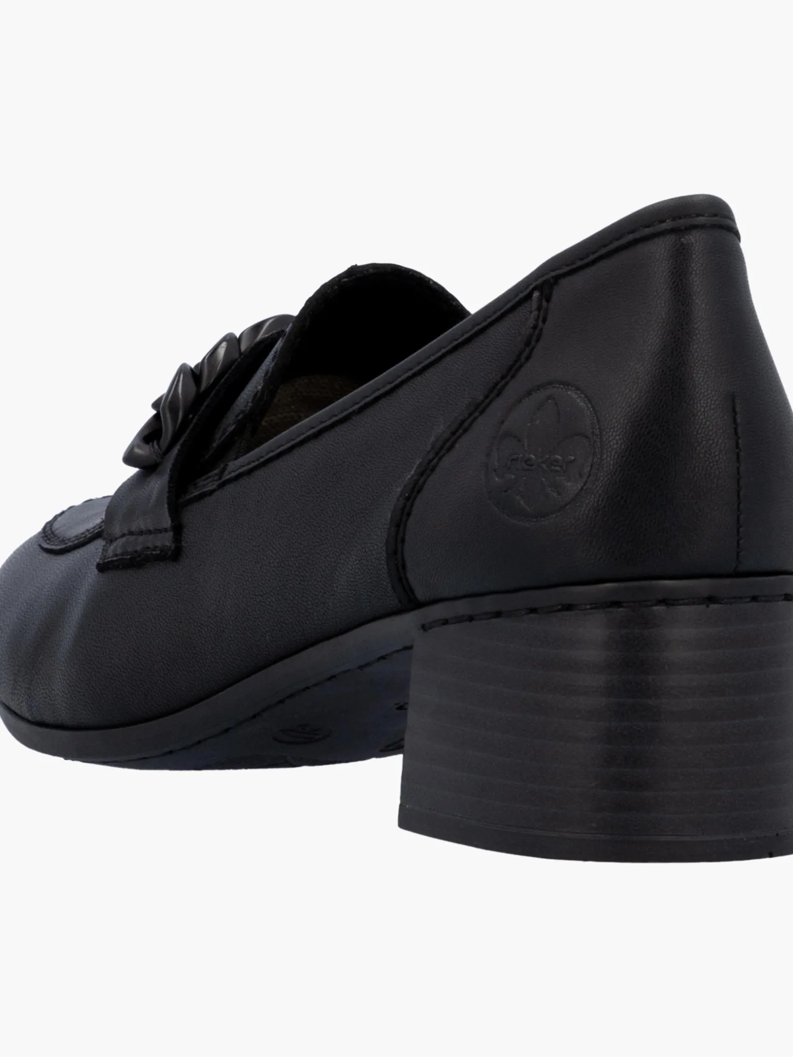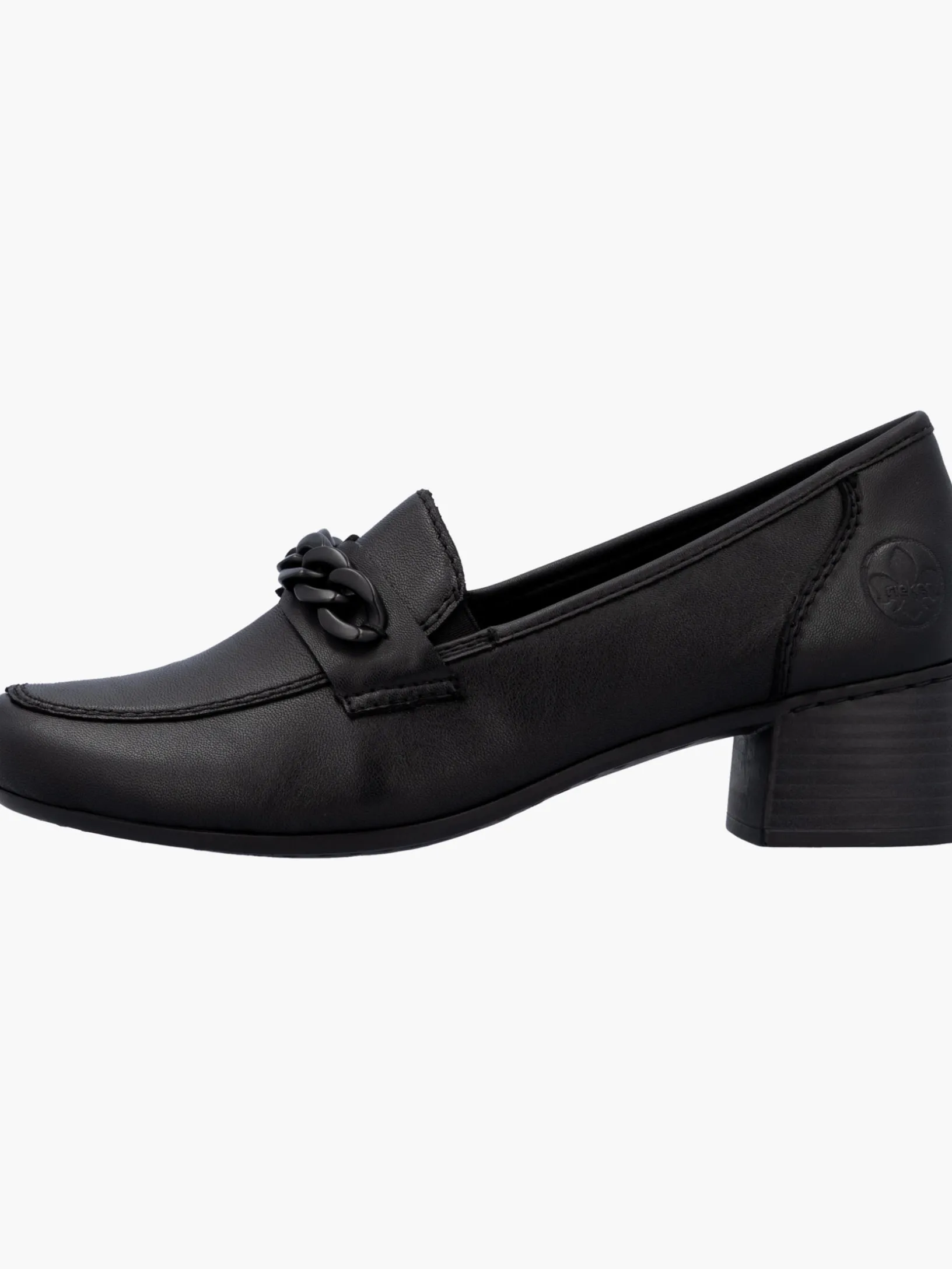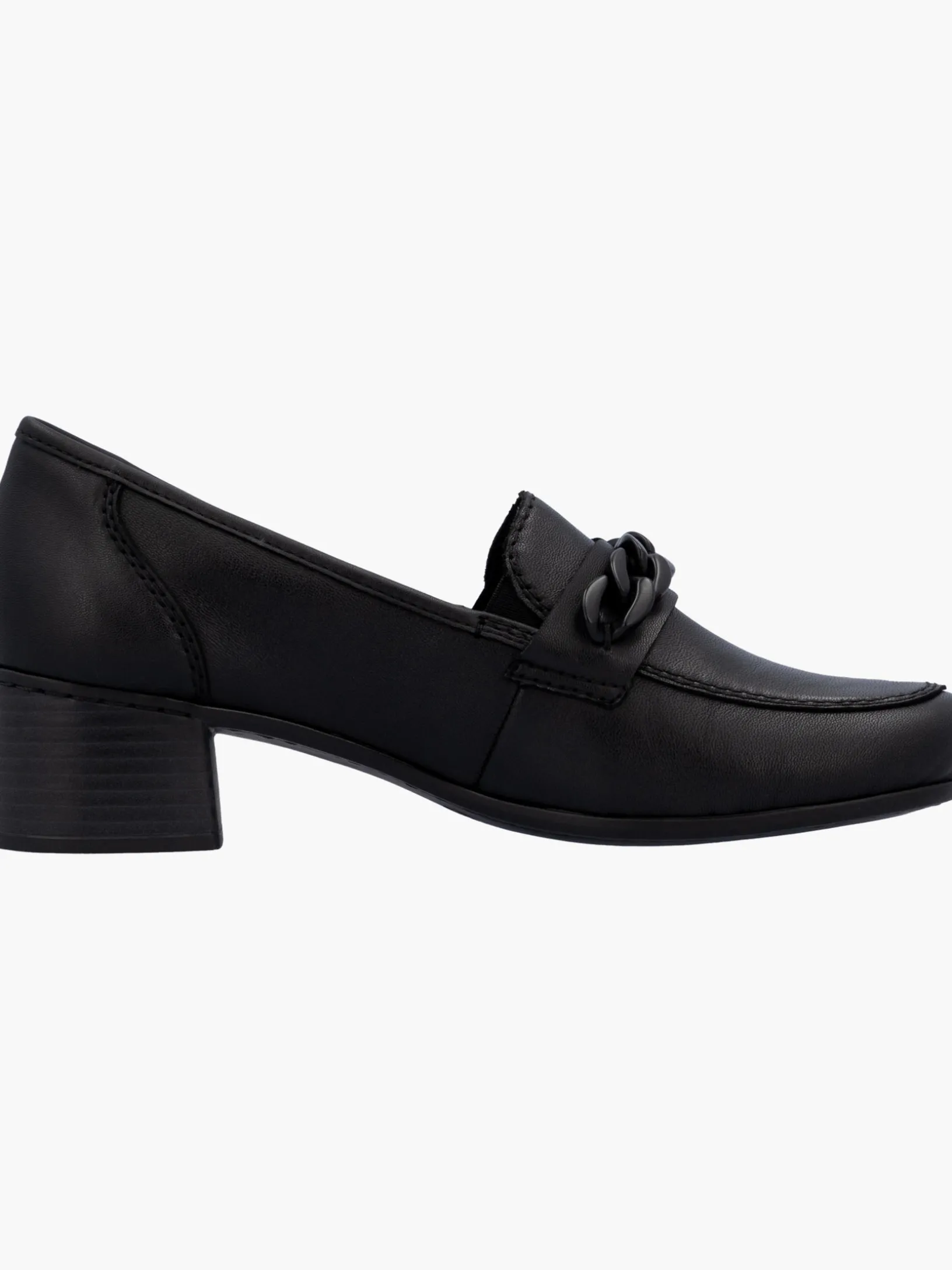Happy feet, happy life! Mit diesen alltagstauglichen mitternachtsschwarzen Rieker Loafern für Damen aus Glattleder bist du mit maximalem Komfort und ultimativem Style unterwegs. Der Elastikeinsatz ermöglicht ein leichtes An- und Ausziehen. Die stylische Kette in Schwarz setzt das Design modisch in Szene. Die schockabsorbierende und leichte Sohle mit Blockabsatz bietet anhaltendes Wohlgefühl ‒ auch an langen Tagen. Ein weiteres Plus ist die extra weiche Decksohle. Deine Best-Buddies für die neue Saison!