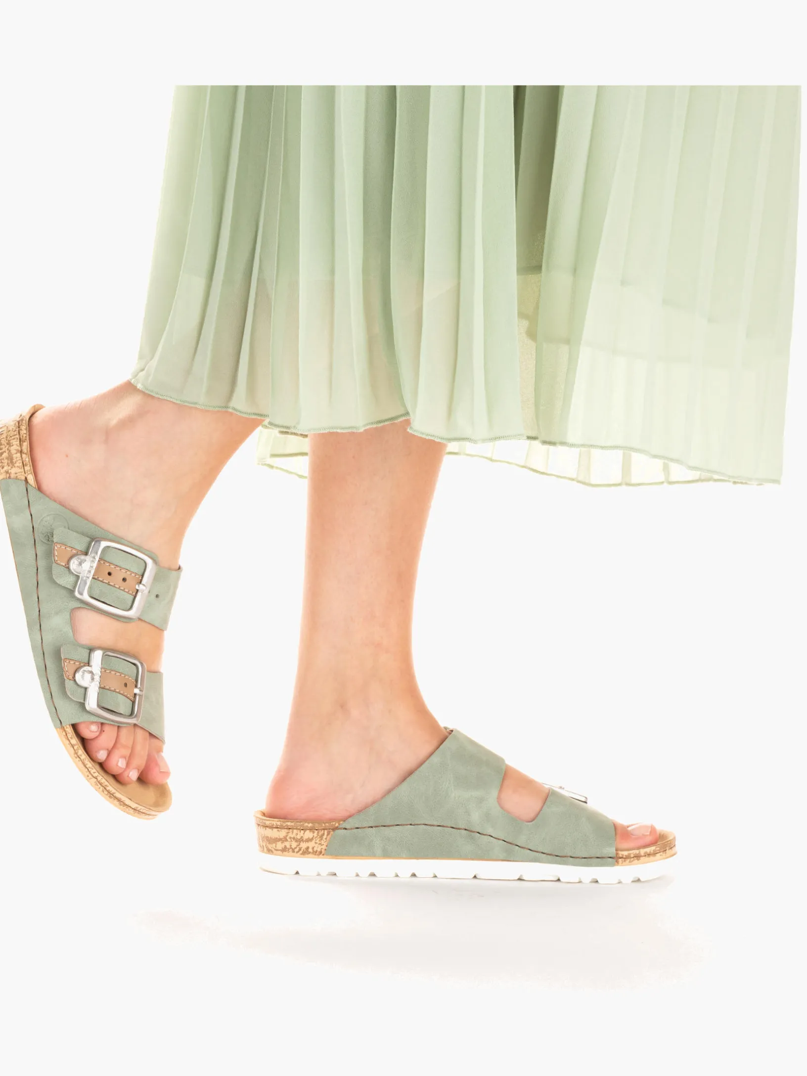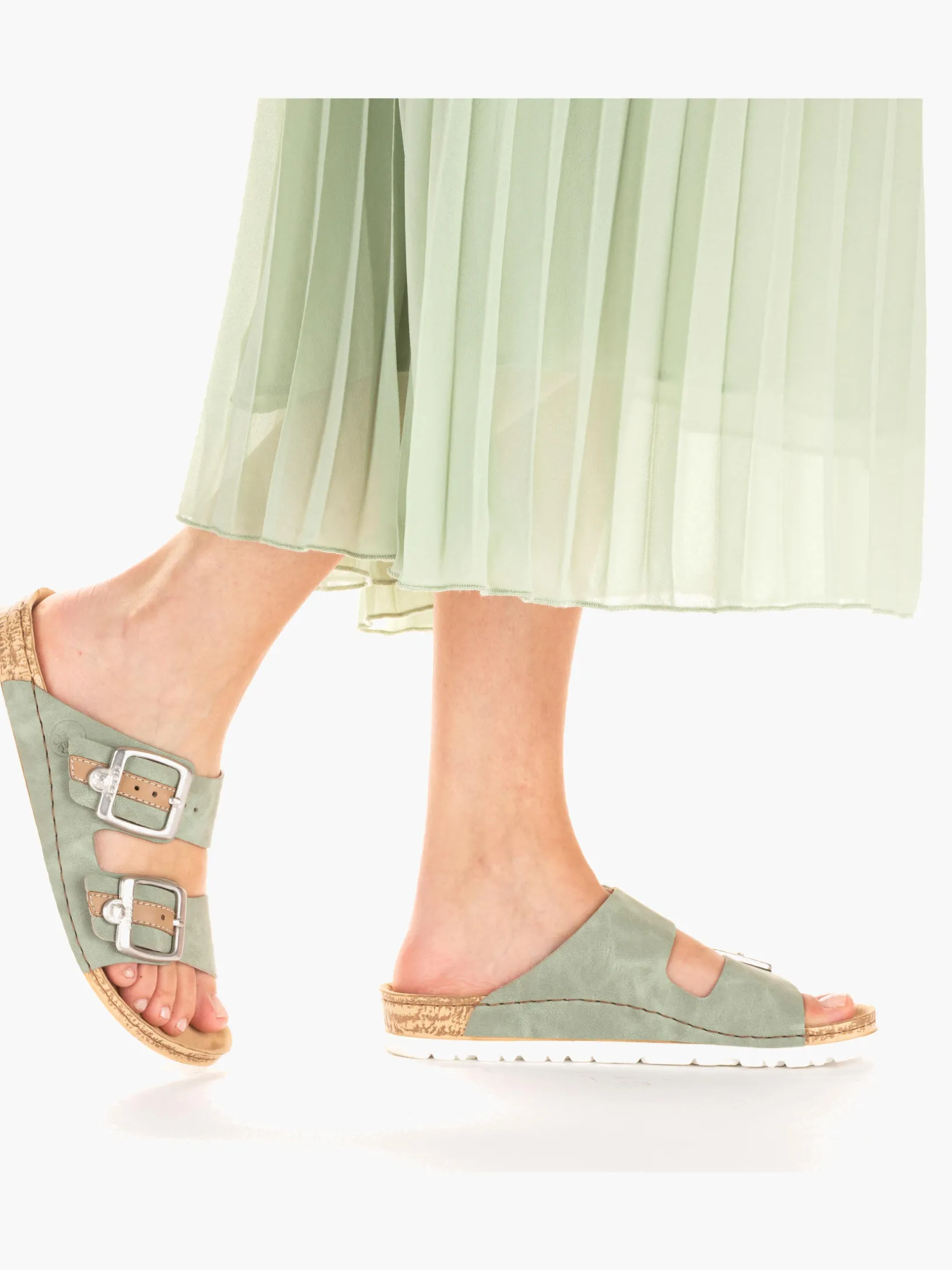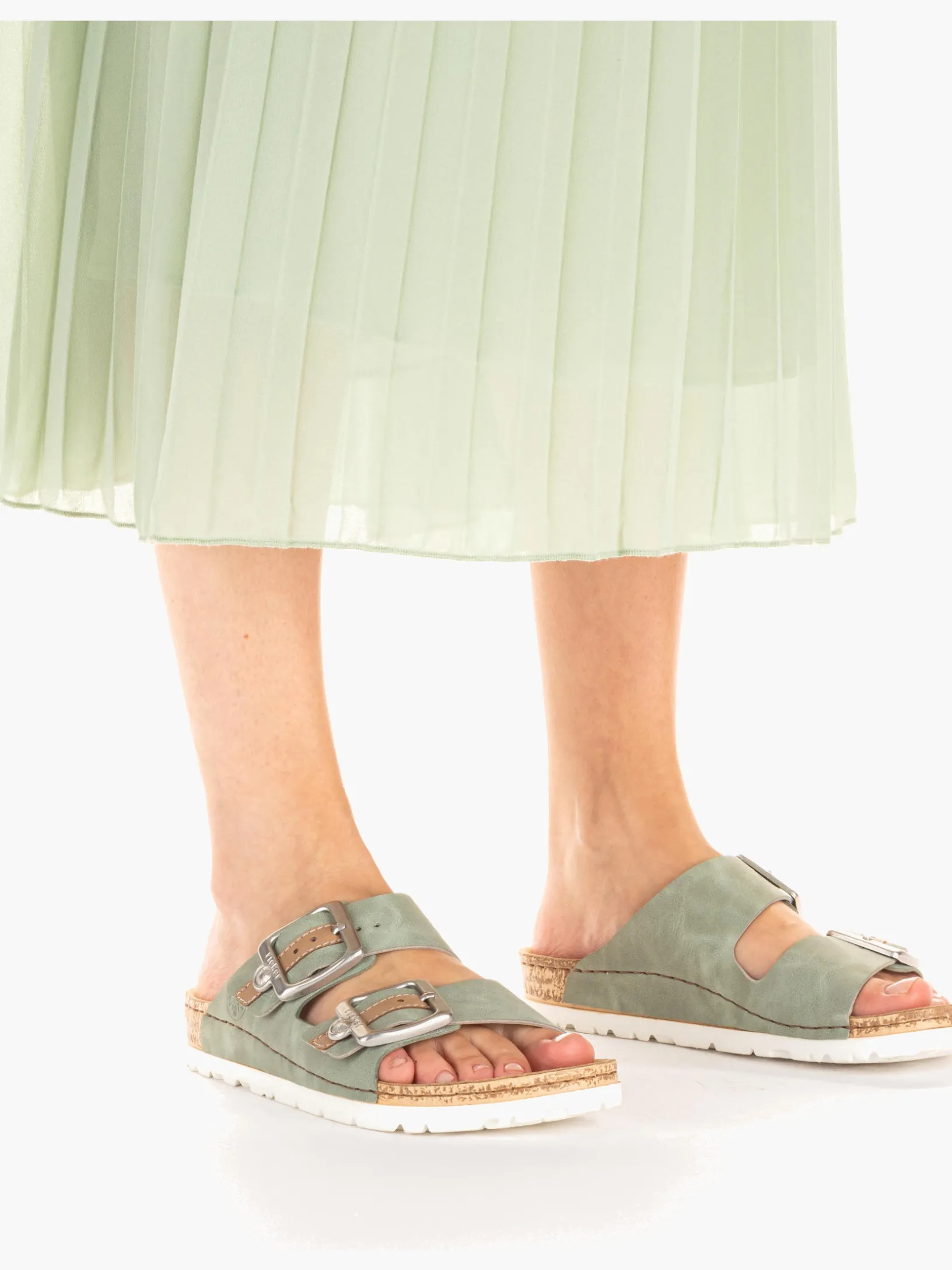 Bequem und praktisch! Die khakigrünen Rieker Pantoletten für Damen setzen garantiert das richtige Statement und hinterlassen einen unvergesslichen Eindruck! Die Pantoletten werden durch eine Schnalle geschlossen. Die schockabsorbierende und leichte Sohle der Pantoletten bietet besten Gehkomfort. Dein Style, dein Sommer!