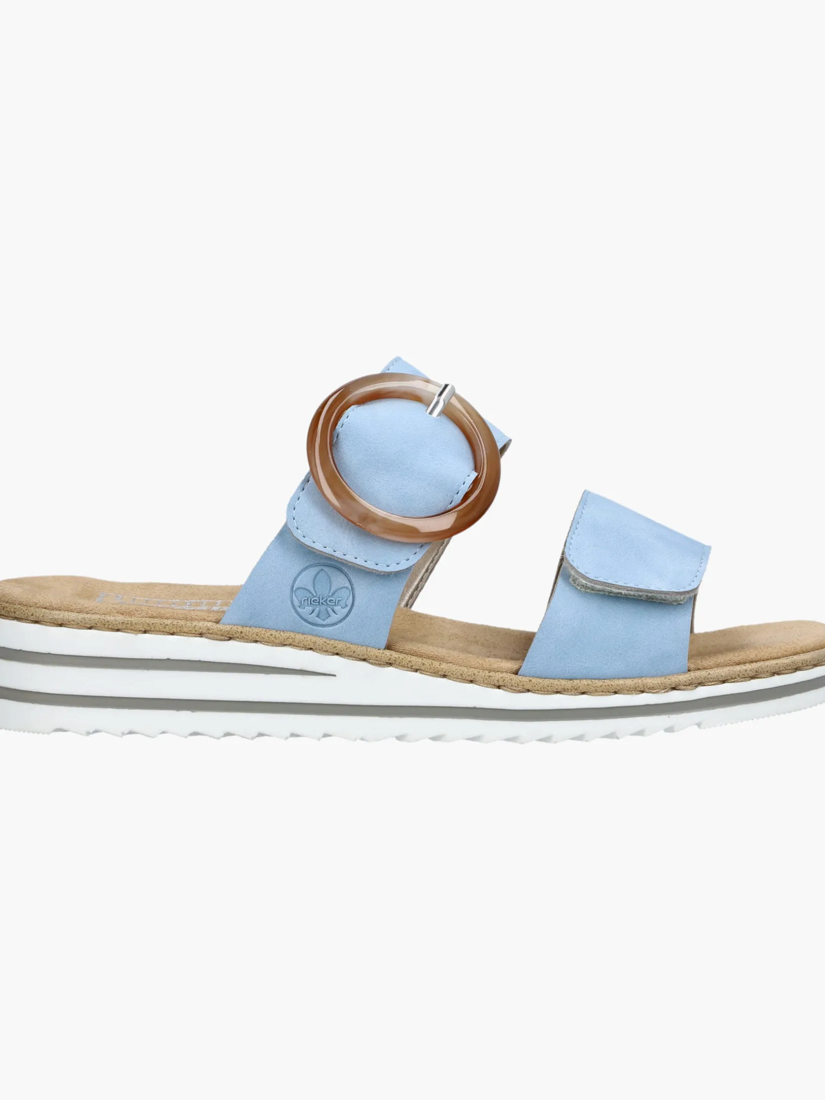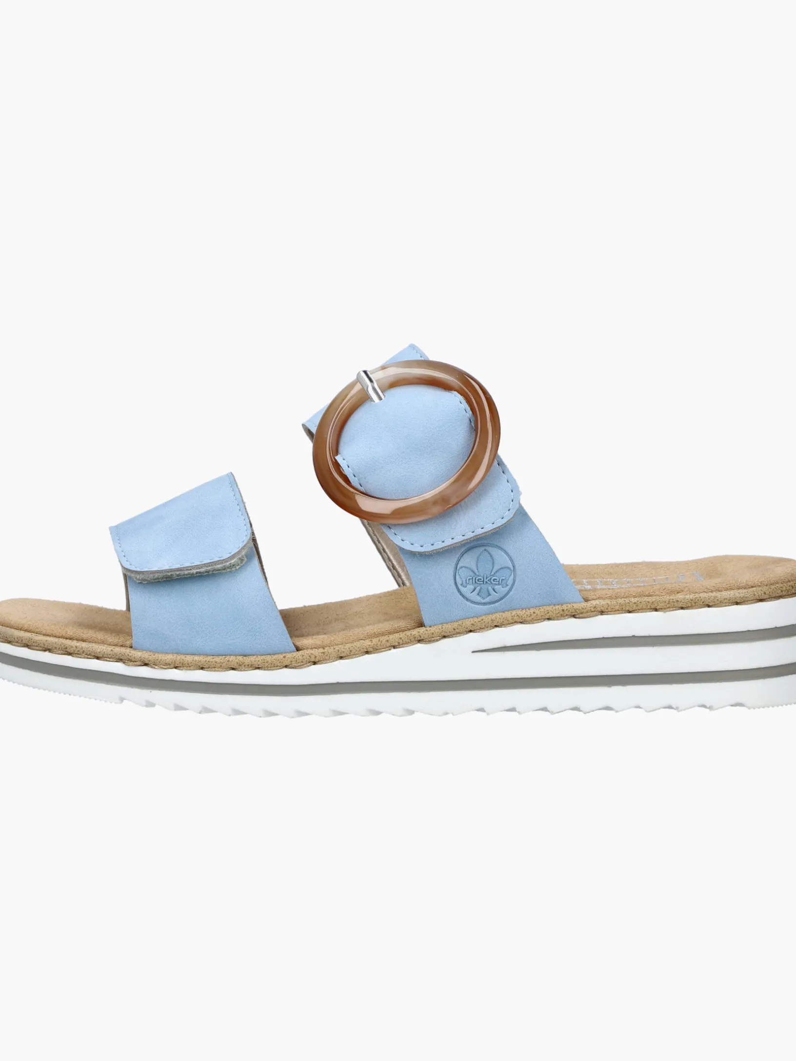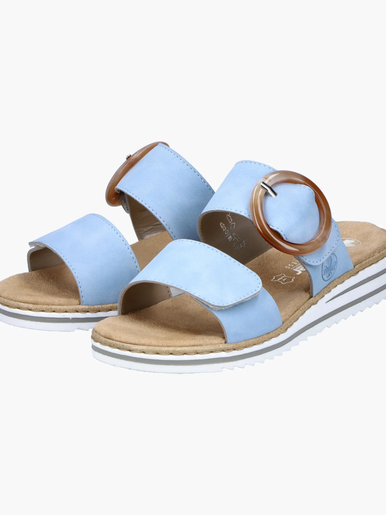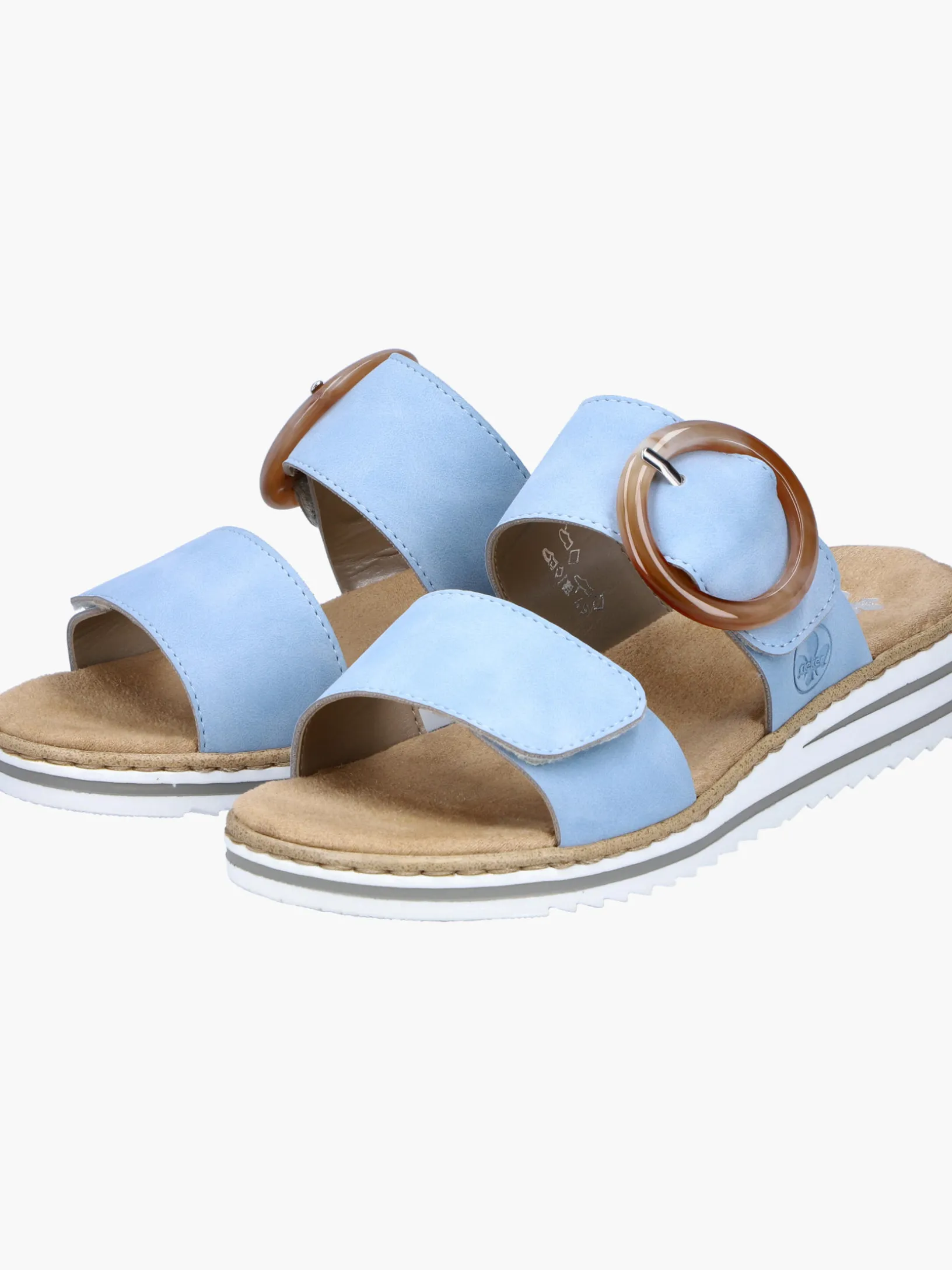 Maximaler Komfort auf Schritt und Tritt! Diese himmelblauen Rieker Pantoletten für Damen sind ein komfortabler Begleiter. Ein Klettverschluss ermöglicht einen schnellen und bequemen Einstieg. Die dekorative Schnalle in Braun setzt einen frischen Akzent. Der offene Schuh sowie die leichte und schockabsorbierende Sohle sorgen für anhaltendes Wohlgefühl. Zudem sorgt die extra weiche Decksohle für eine Extraportion Tragekomfort. Extra-Halt ist durch die schmale Passform E 1/2 geboten. Dein Style, dein Sommer!
