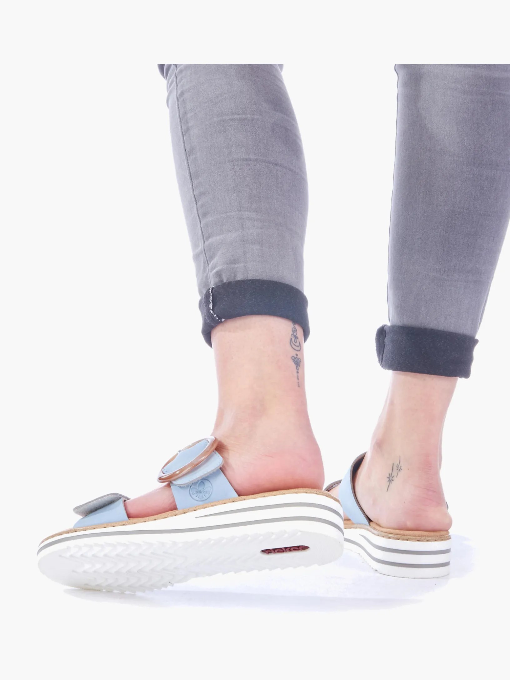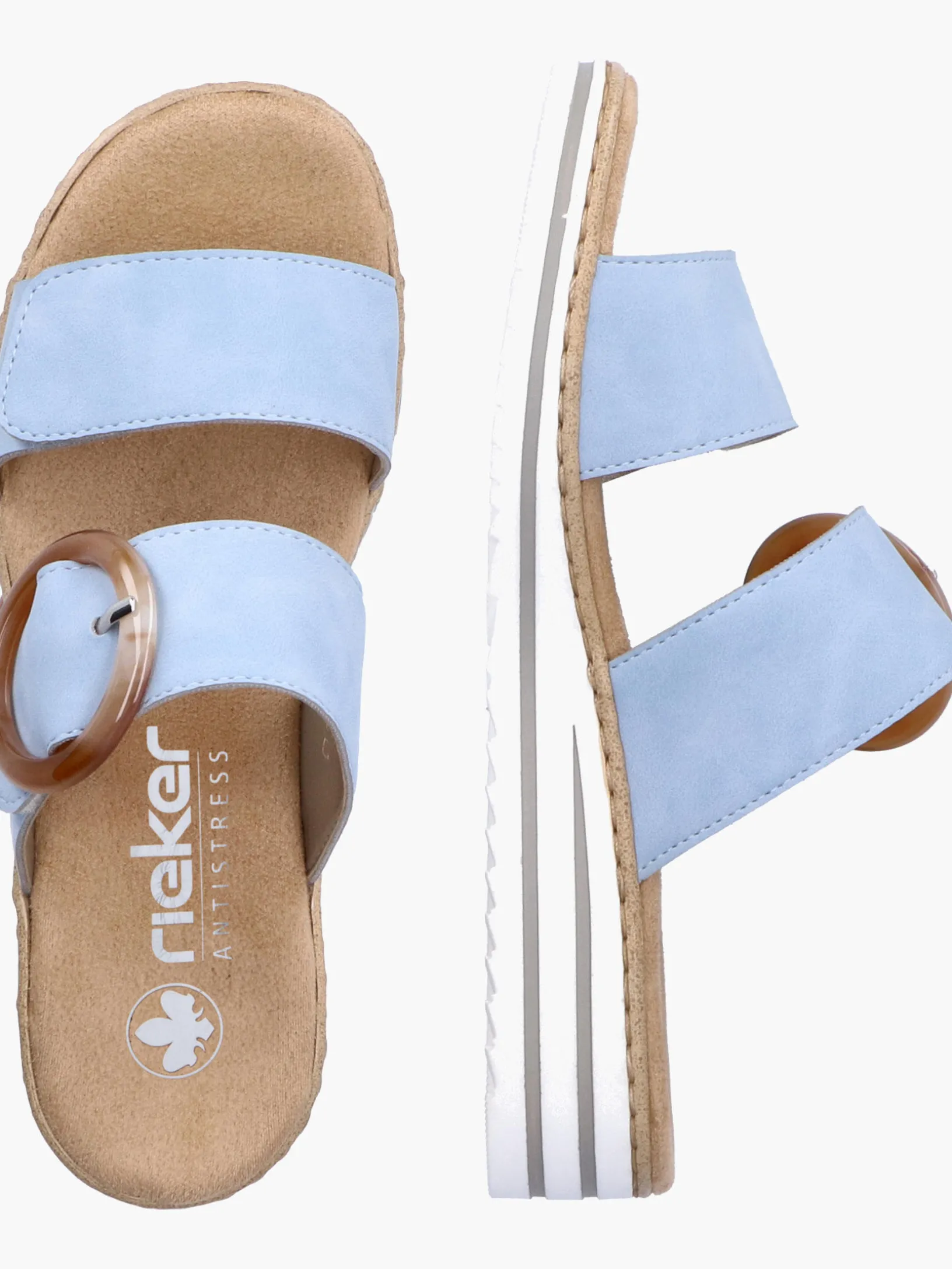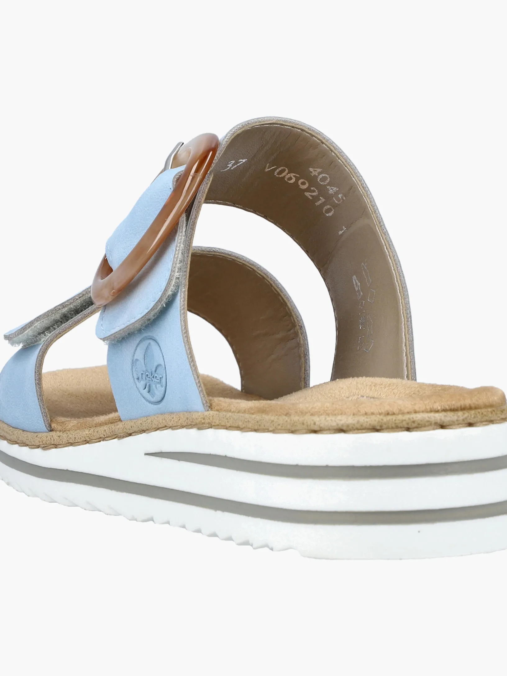Maximaler Komfort auf Schritt und Tritt! Diese himmelblauen Rieker Pantoletten für Damen sind ein komfortabler Begleiter. Ein Klettverschluss ermöglicht einen schnellen und bequemen Einstieg. Die dekorative Schnalle in Braun setzt einen frischen Akzent. Der offene Schuh sowie die leichte und schockabsorbierende Sohle sorgen für anhaltendes Wohlgefühl. Zudem sorgt die extra weiche Decksohle für eine Extraportion Tragekomfort. Extra-Halt ist durch die schmale Passform E 1/2 geboten. Dein Style, dein Sommer!