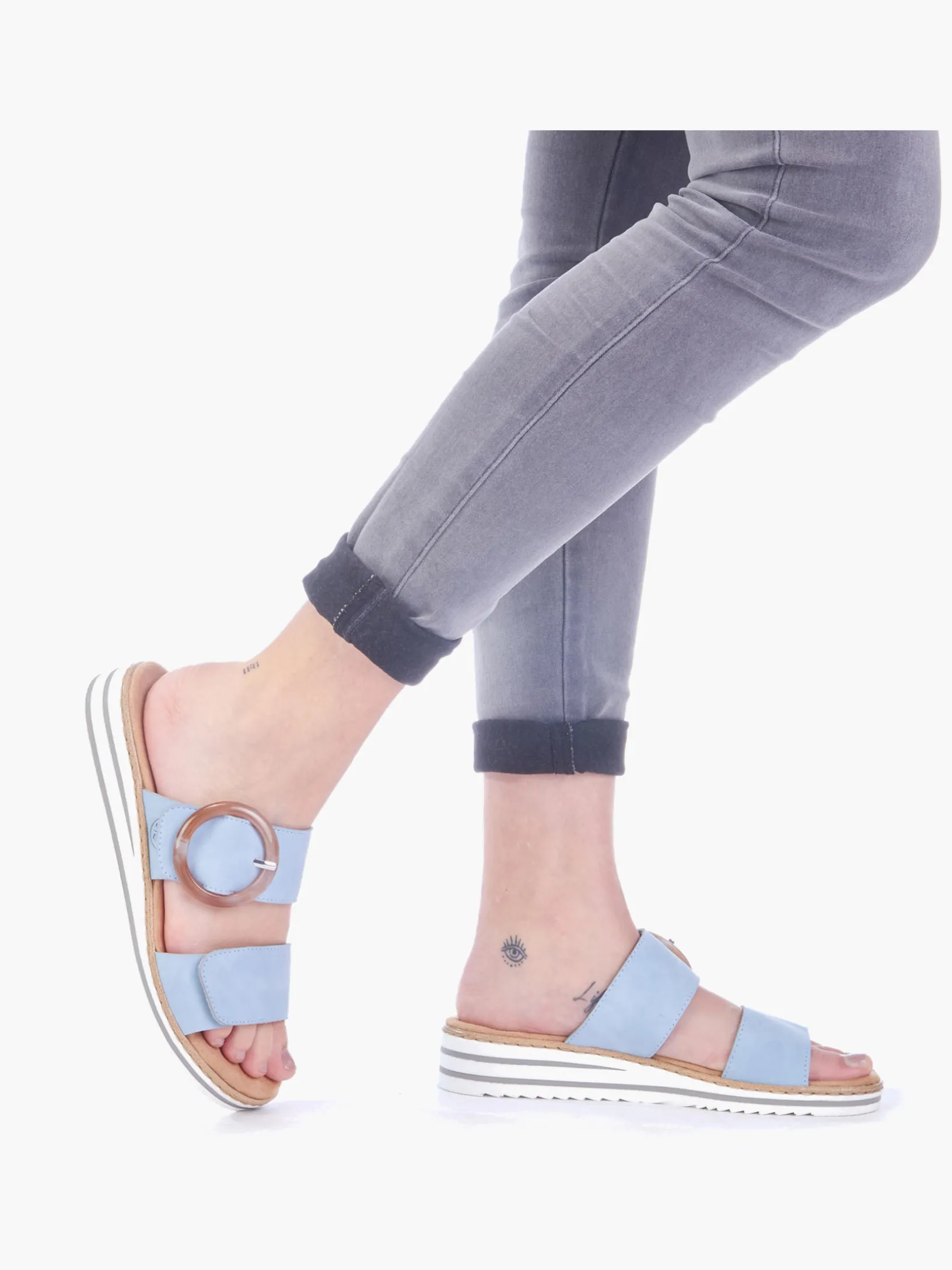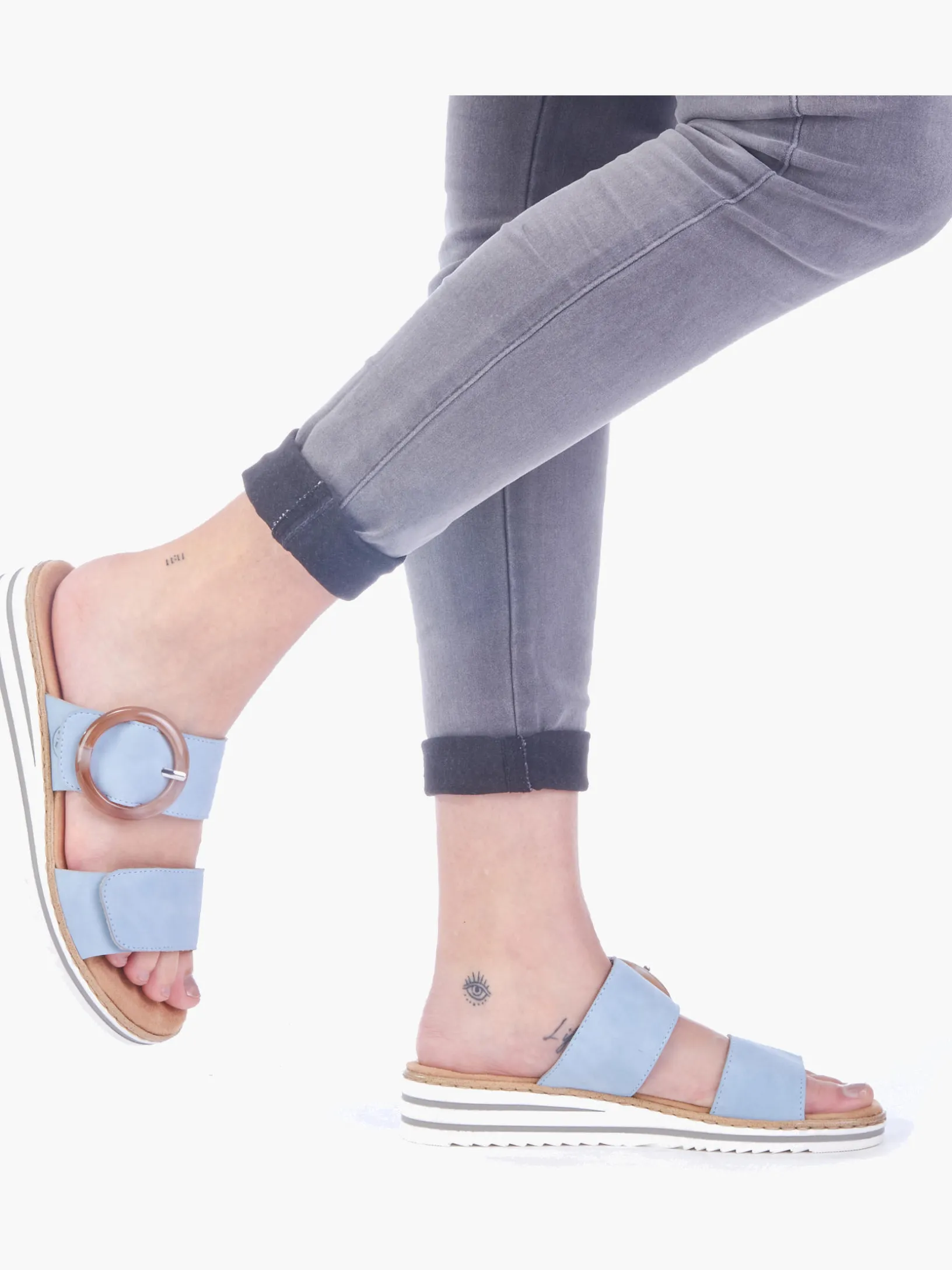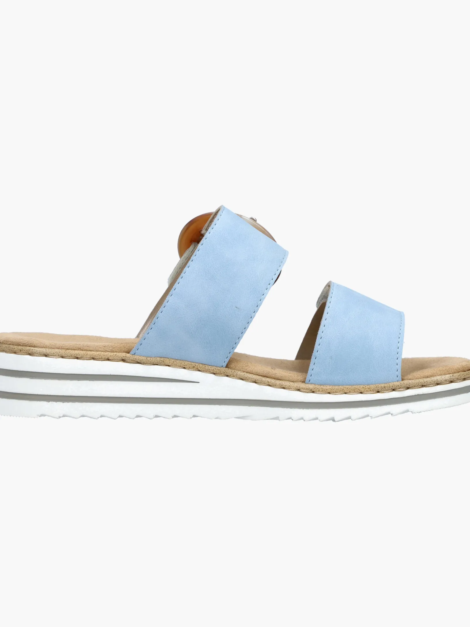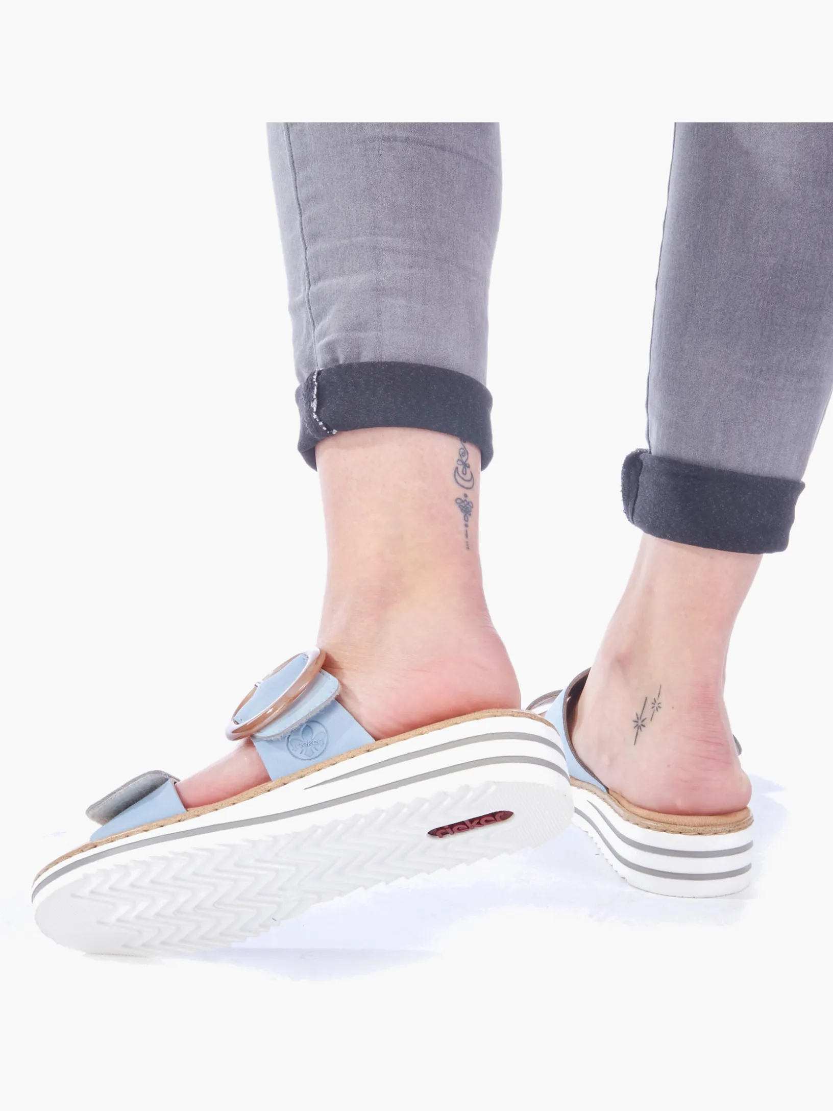Maximaler Komfort auf Schritt und Tritt! Diese himmelblauen Rieker Pantoletten für Damen sind ein komfortabler Begleiter. Ein Klettverschluss ermöglicht einen schnellen und bequemen Einstieg. Die dekorative Schnalle in Braun setzt einen frischen Akzent. Der offene Schuh sowie die leichte und schockabsorbierende Sohle sorgen für anhaltendes Wohlgefühl. Zudem sorgt die extra weiche Decksohle für eine Extraportion Tragekomfort. Extra-Halt ist durch die schmale Passform E 1/2 geboten. Dein Style, dein Sommer!