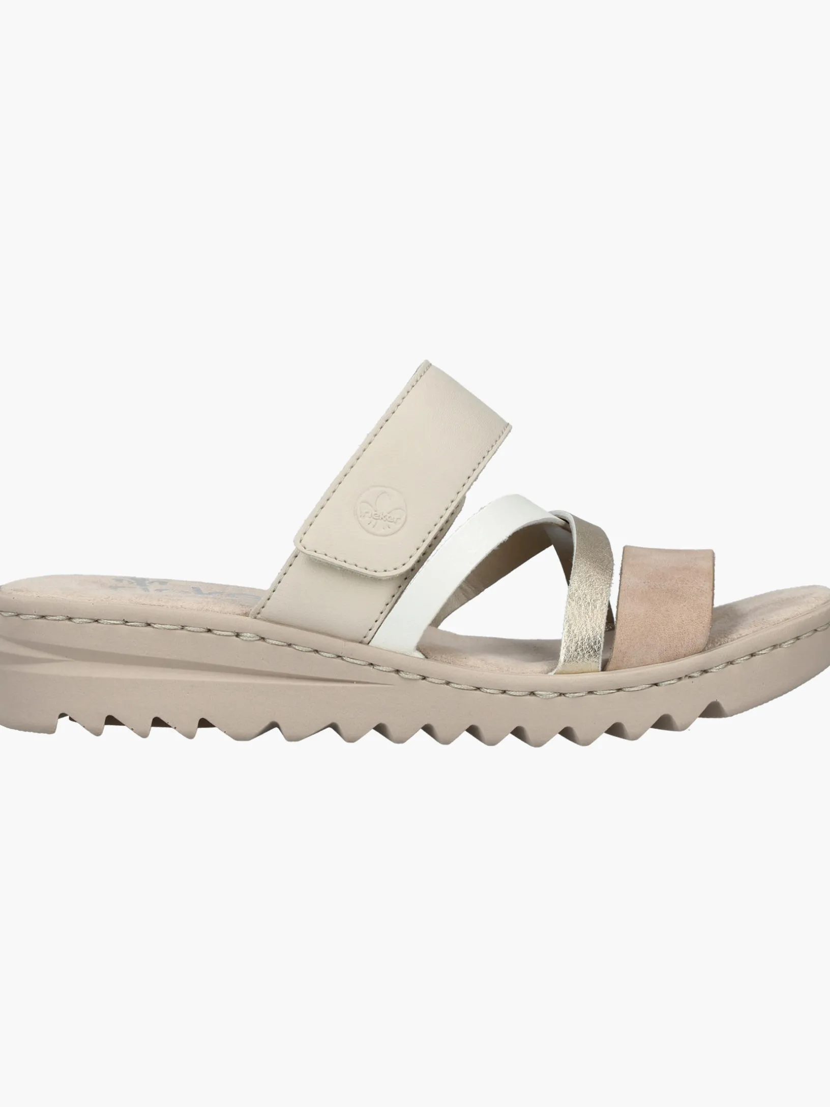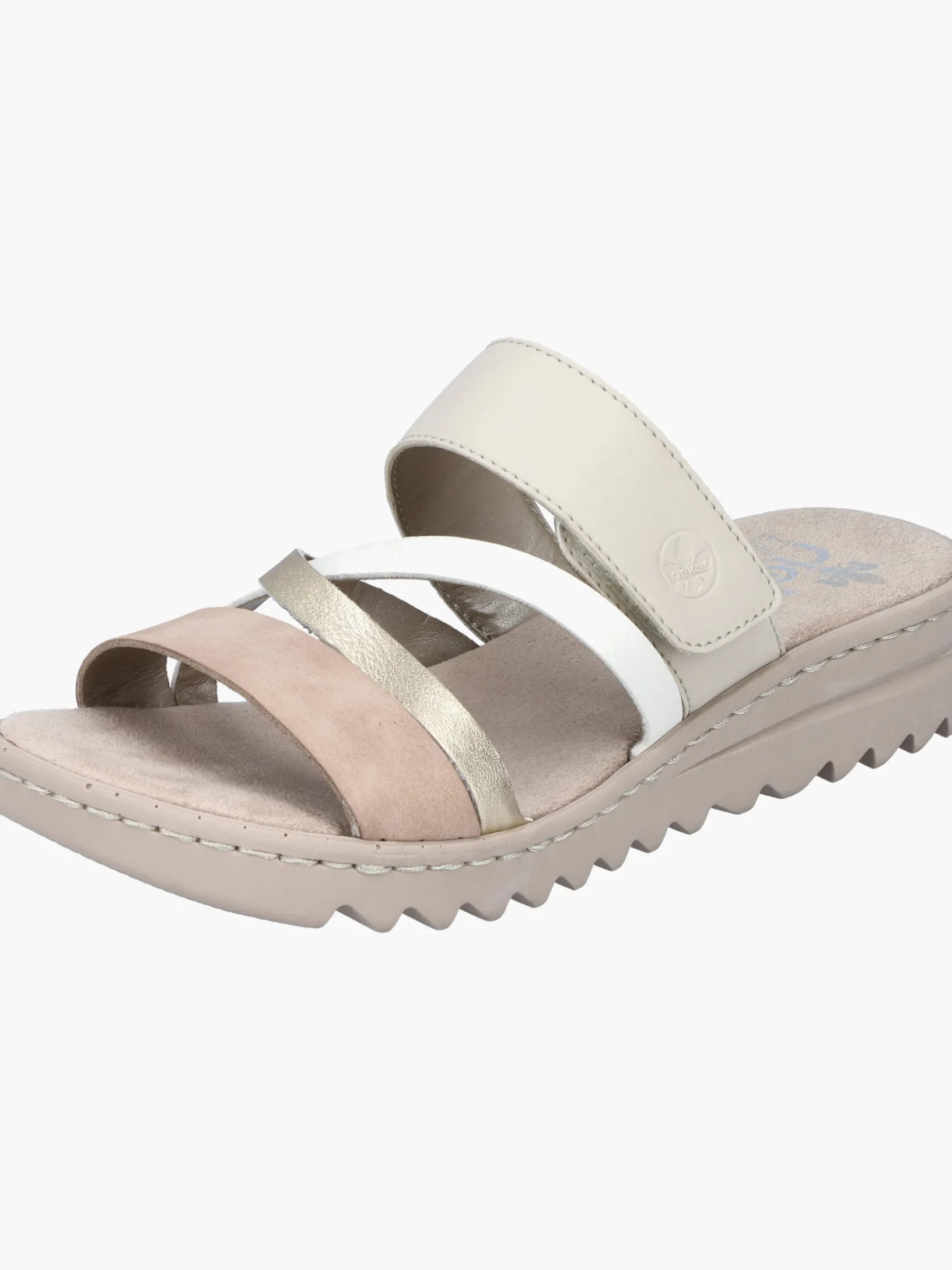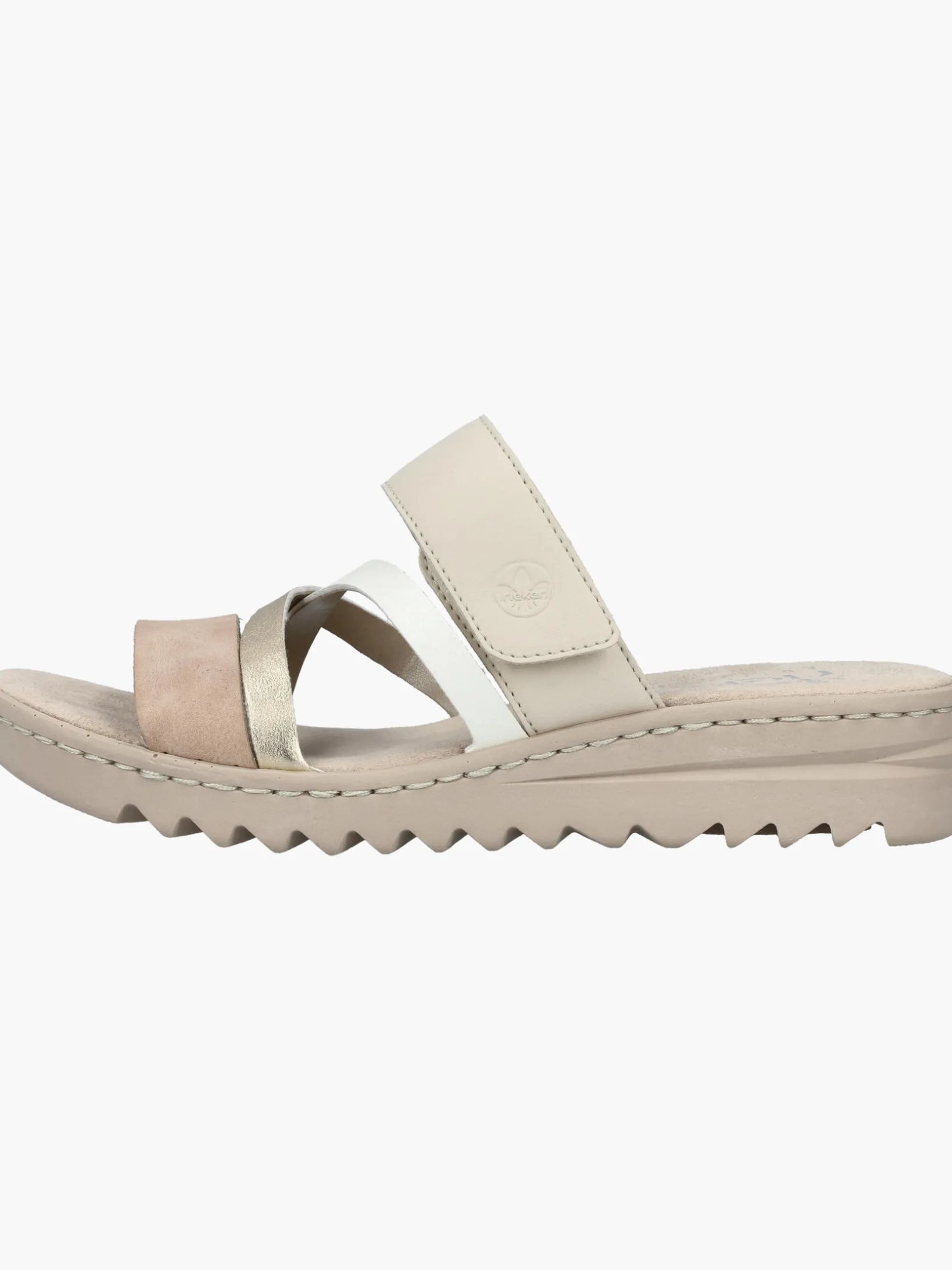 Comfort meets Style. Diese champagnerfarbenen Rieker Pantoletten für Damen überzeugen mit echtem Komfort für die Füße. Das Modell ist dank eines Klettverschlusses in Nullkommanichts angezogen. Der offene Schuh sowie die leichte und schockabsorbierende Sohle sorgen für anhaltendes Wohlgefühl. Ein weiteres Plus ist die extra weiche Decksohle. Damit wird die warme Saison noch toller!