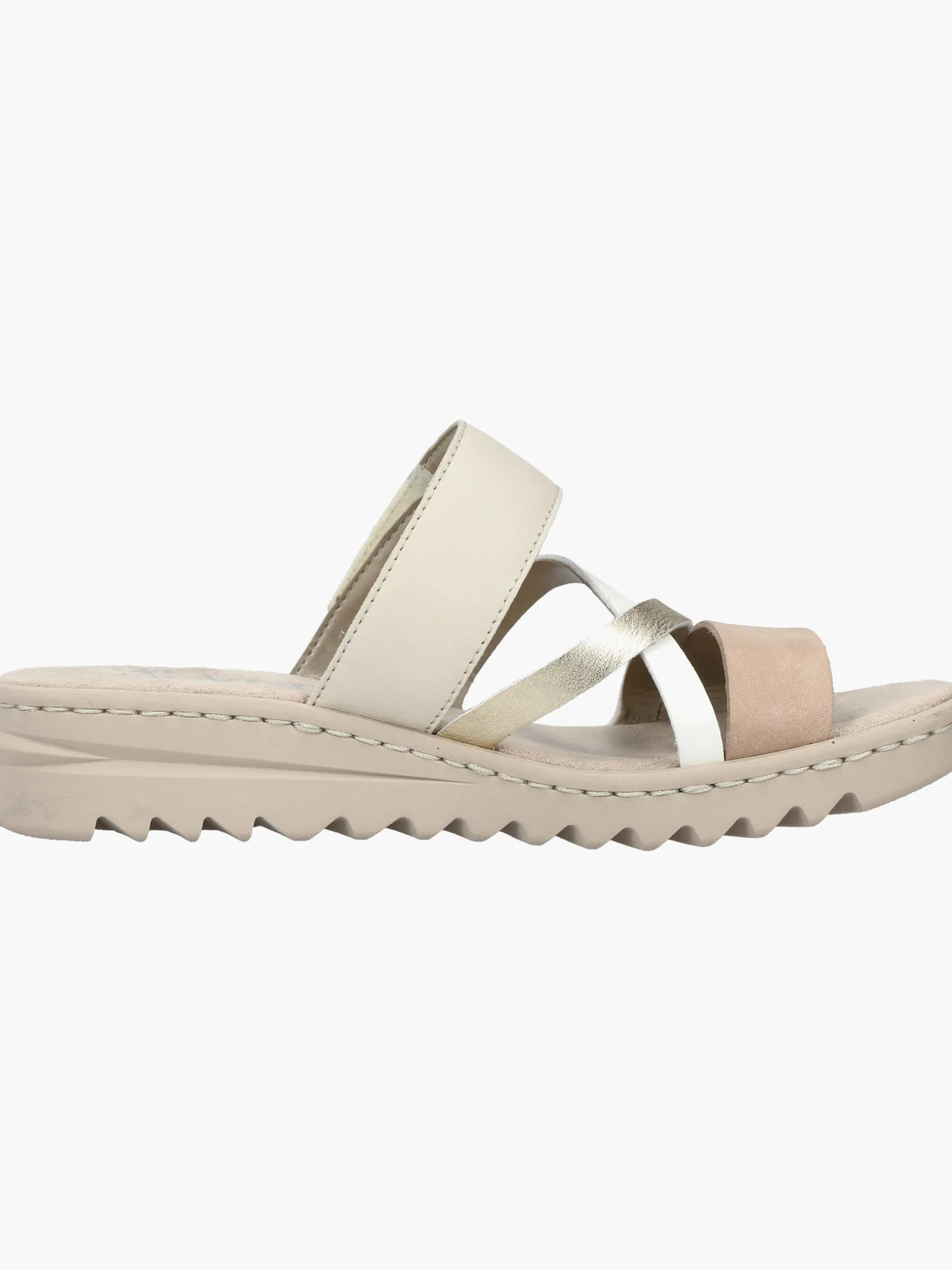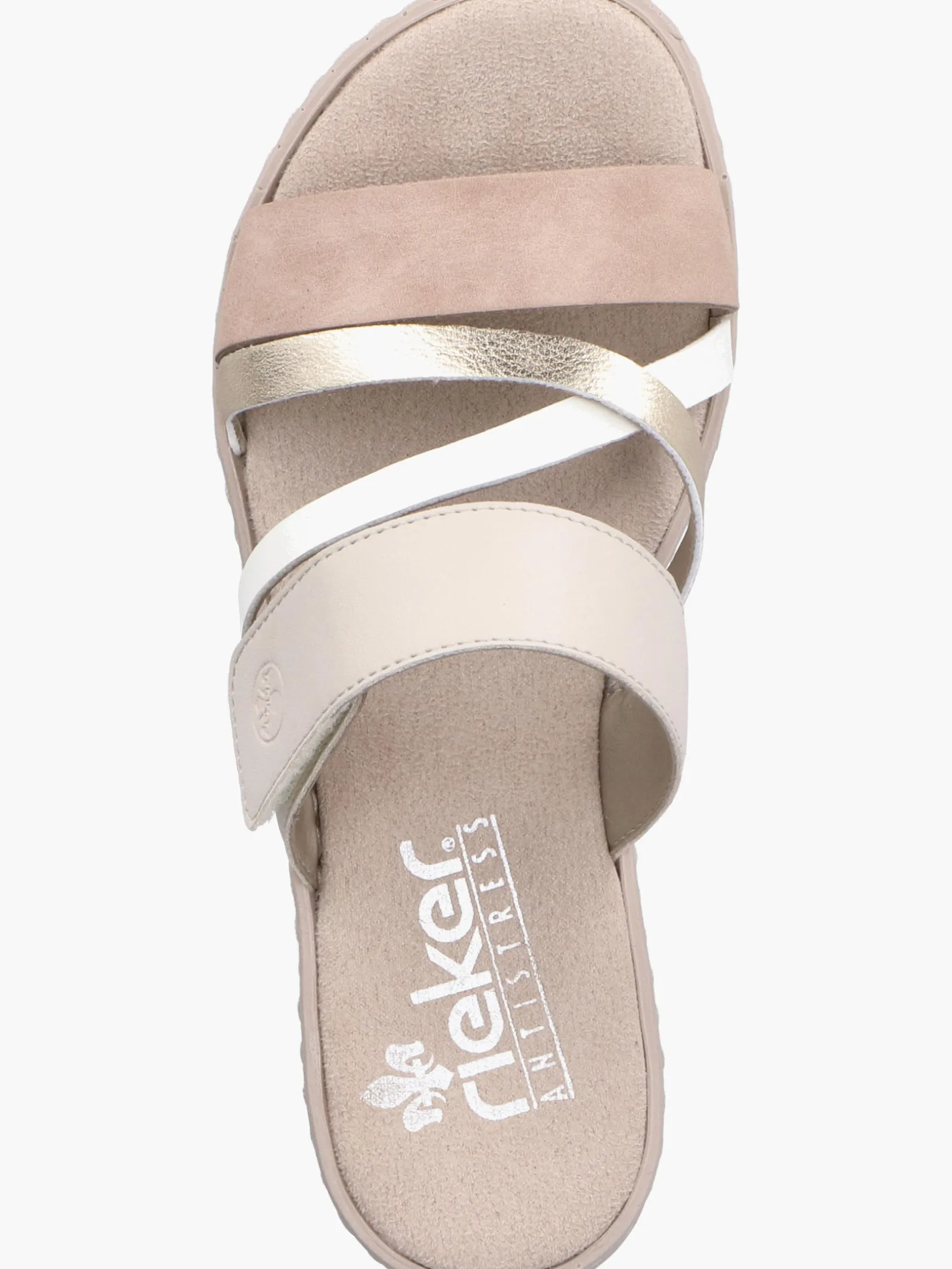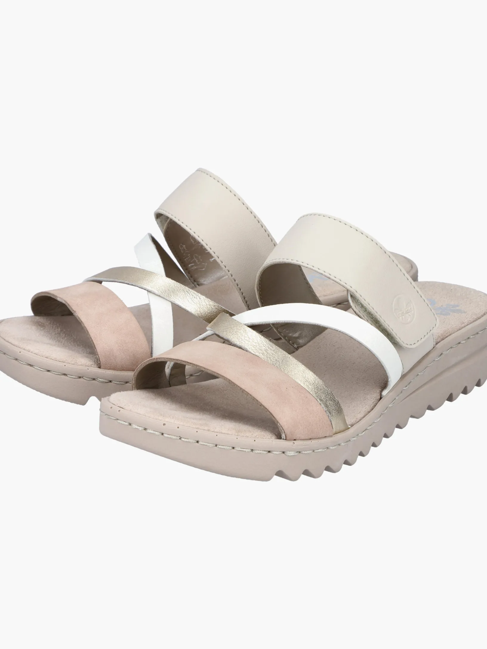 Comfort meets Style. Diese champagnerfarbenen Rieker Pantoletten für Damen überzeugen mit echtem Komfort für die Füße. Das Modell ist dank eines Klettverschlusses in Nullkommanichts angezogen. Der offene Schuh sowie die leichte und schockabsorbierende Sohle sorgen für anhaltendes Wohlgefühl. Ein weiteres Plus ist die extra weiche Decksohle. Damit wird die warme Saison noch toller!
