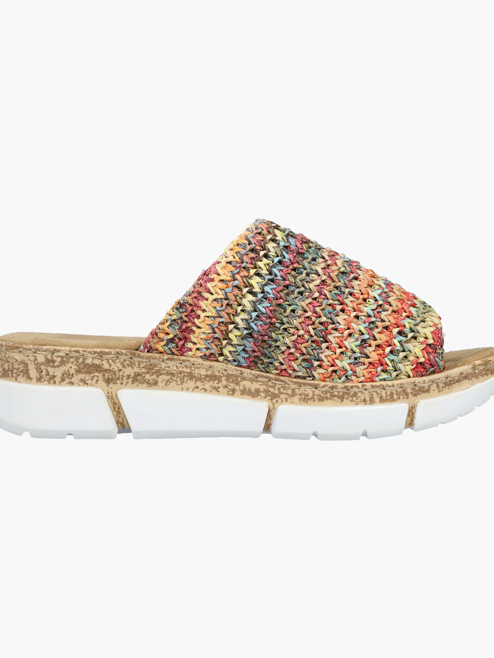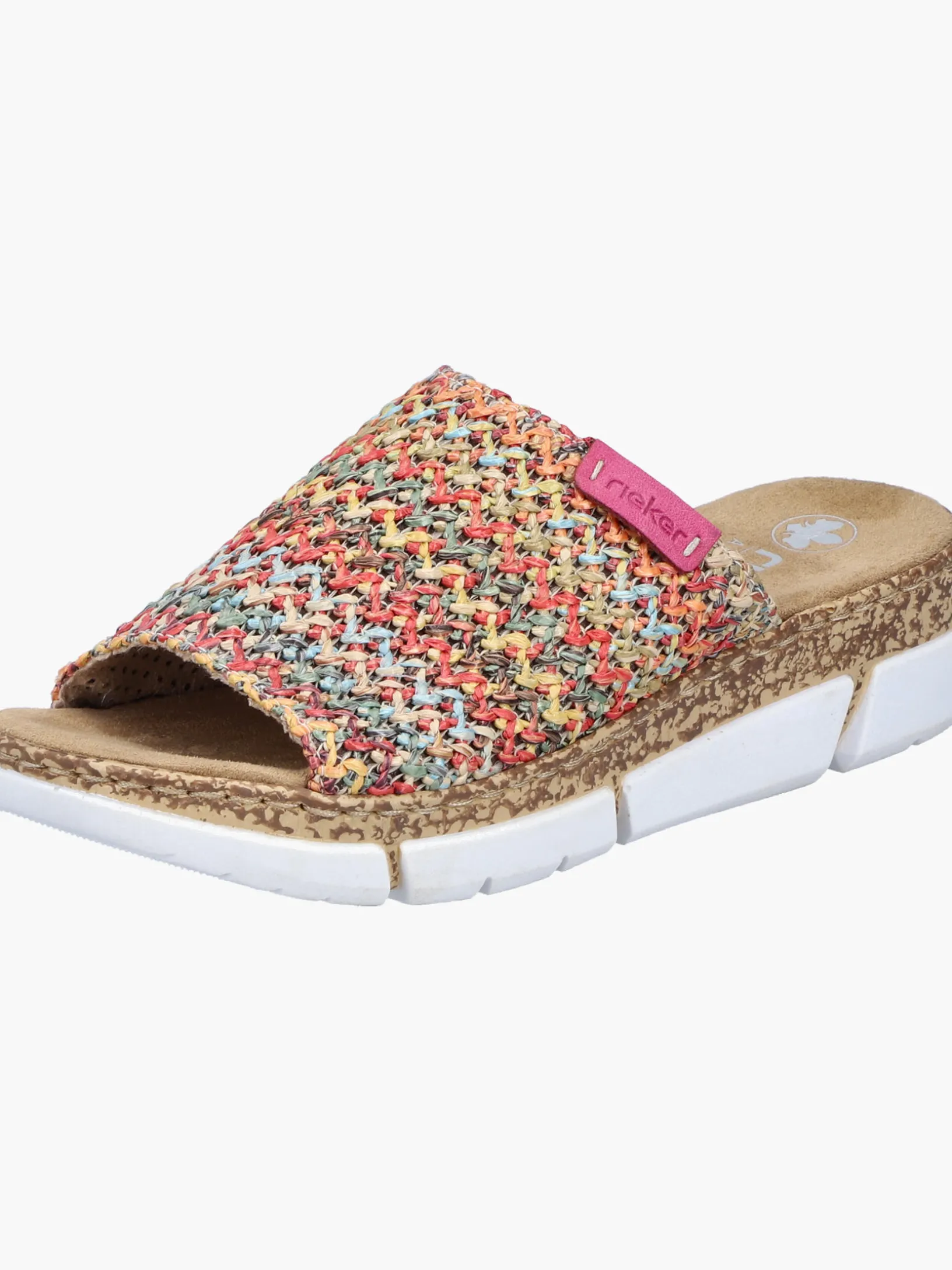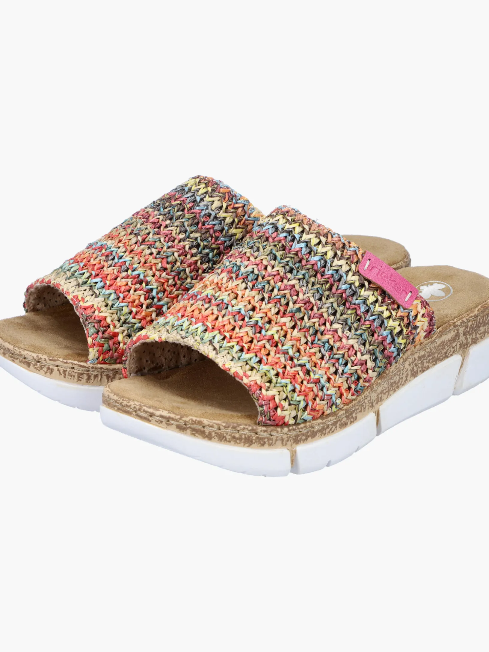 Maximaler Komfort auf Schritt und Tritt! Diese bunte Rieker Pantolette für Damen möchte man gar nicht mehr ausziehen. Der Schuh kann ohne Verschluss ganz einfach durch Hineinschlüpfen angezogen werden. Die mehrfarbigen Nähte auf dem Riemen setzen frische Akzente. Der offene Schuh sowie die leichte und schockabsorbierende Plateausohle sorgen für anhaltendes Wohlgefühl. Ein weiteres Plus ist die extra weiche Decksohle. Durch die schmale Passform E 1/2 sitzt der Schuh wie angegossen. Damit wird die warme Saison noch toller!