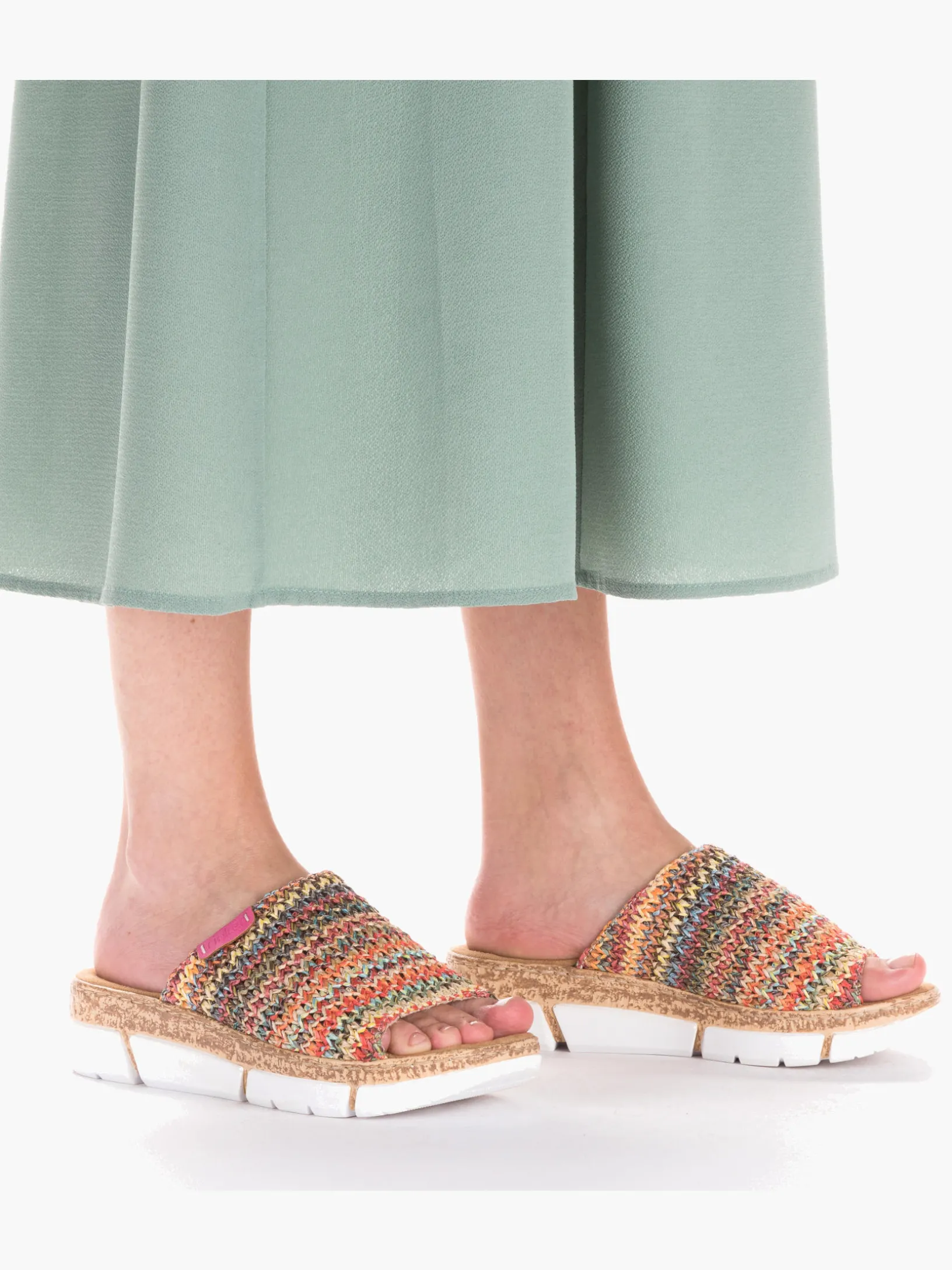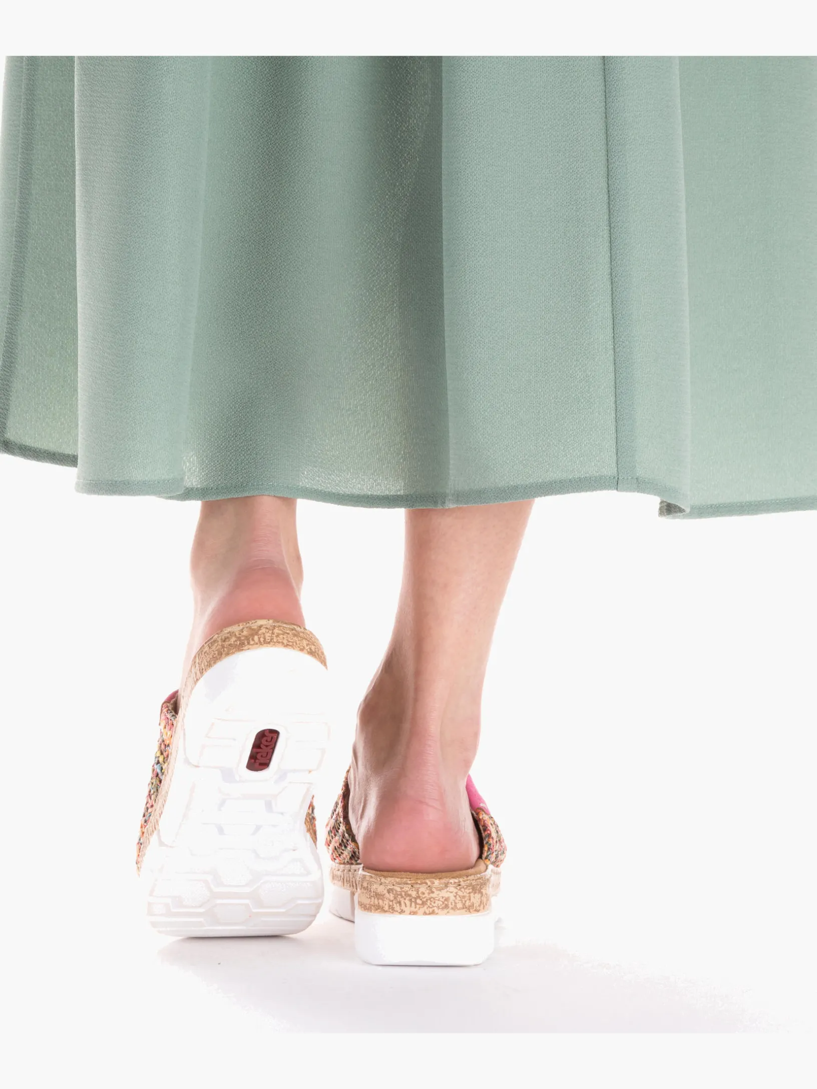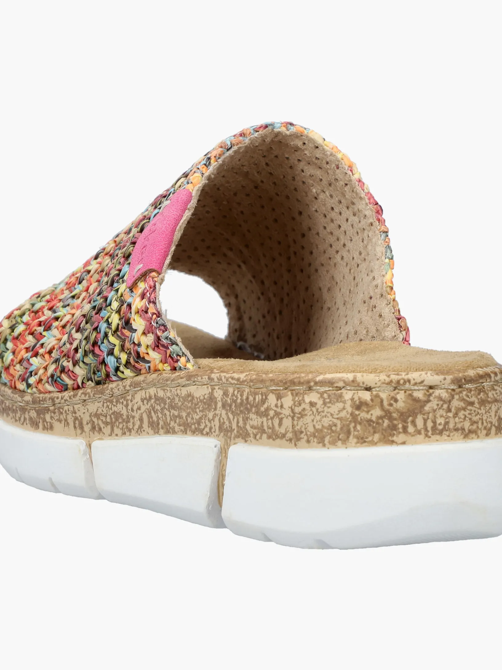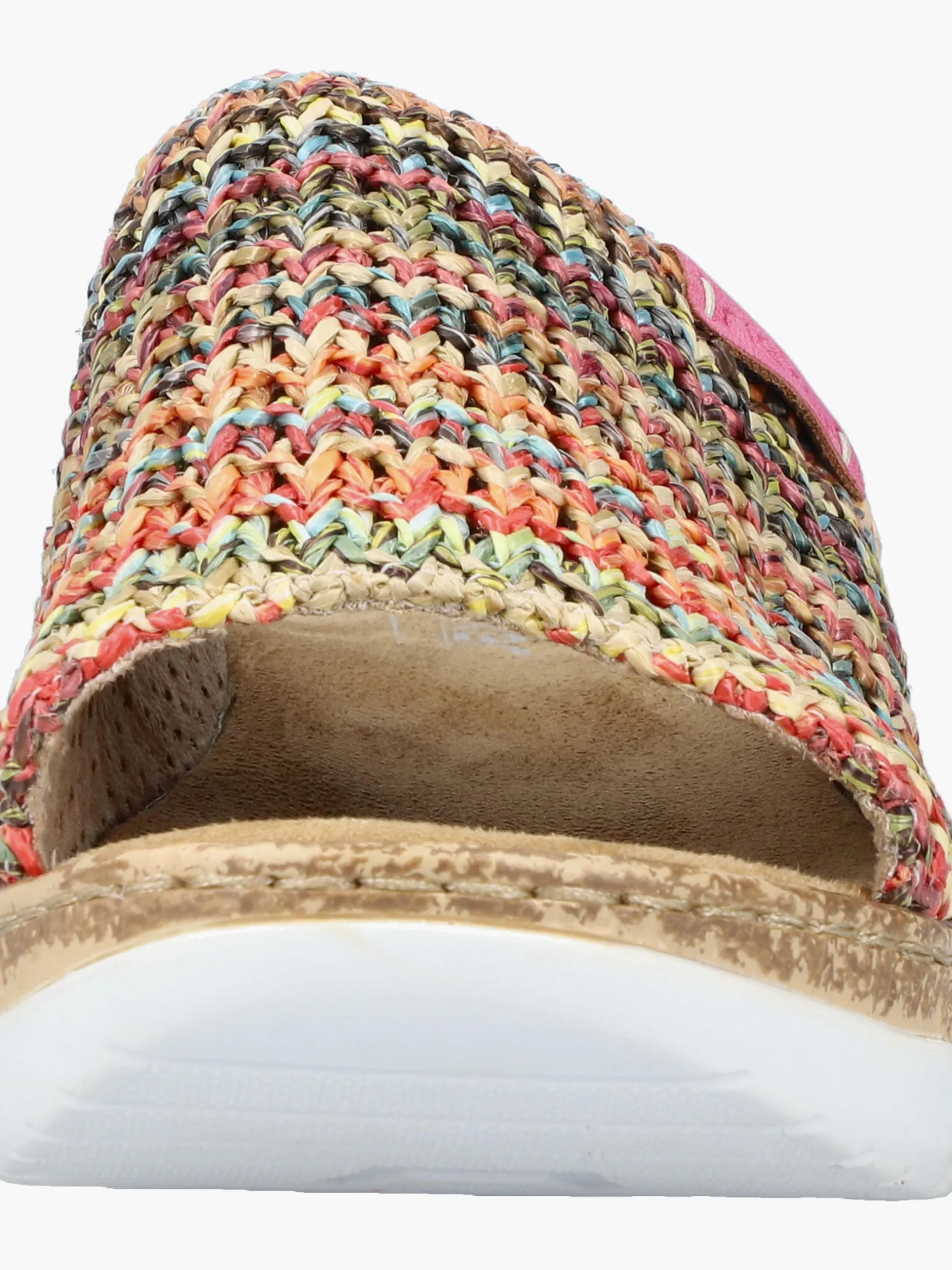 Maximaler Komfort auf Schritt und Tritt! Diese bunte Rieker Pantolette für Damen möchte man gar nicht mehr ausziehen. Der Schuh kann ohne Verschluss ganz einfach durch Hineinschlüpfen angezogen werden. Die mehrfarbigen Nähte auf dem Riemen setzen frische Akzente. Der offene Schuh sowie die leichte und schockabsorbierende Plateausohle sorgen für anhaltendes Wohlgefühl. Ein weiteres Plus ist die extra weiche Decksohle. Durch die schmale Passform E 1/2 sitzt der Schuh wie angegossen. Damit wird die warme Saison noch toller!