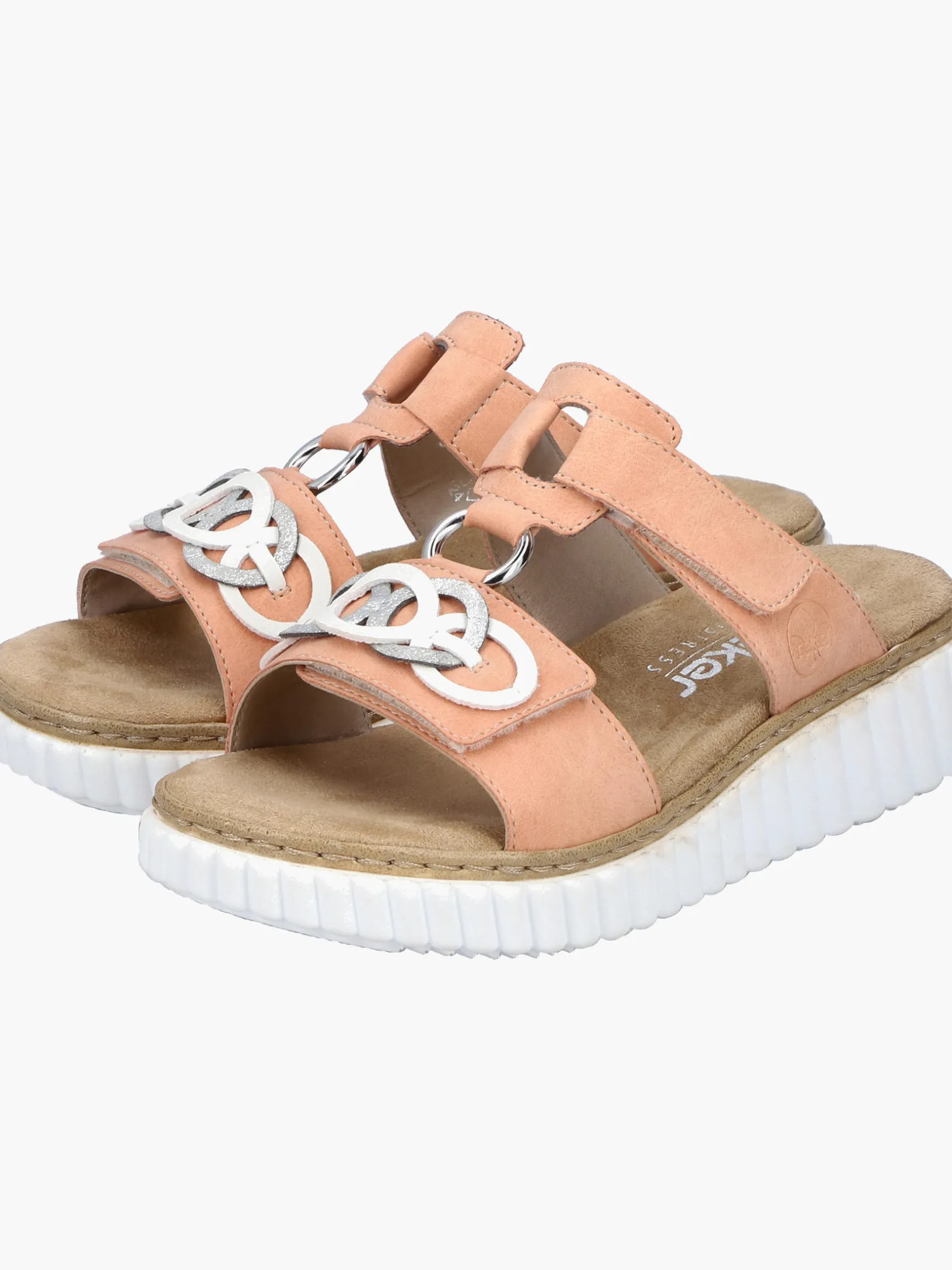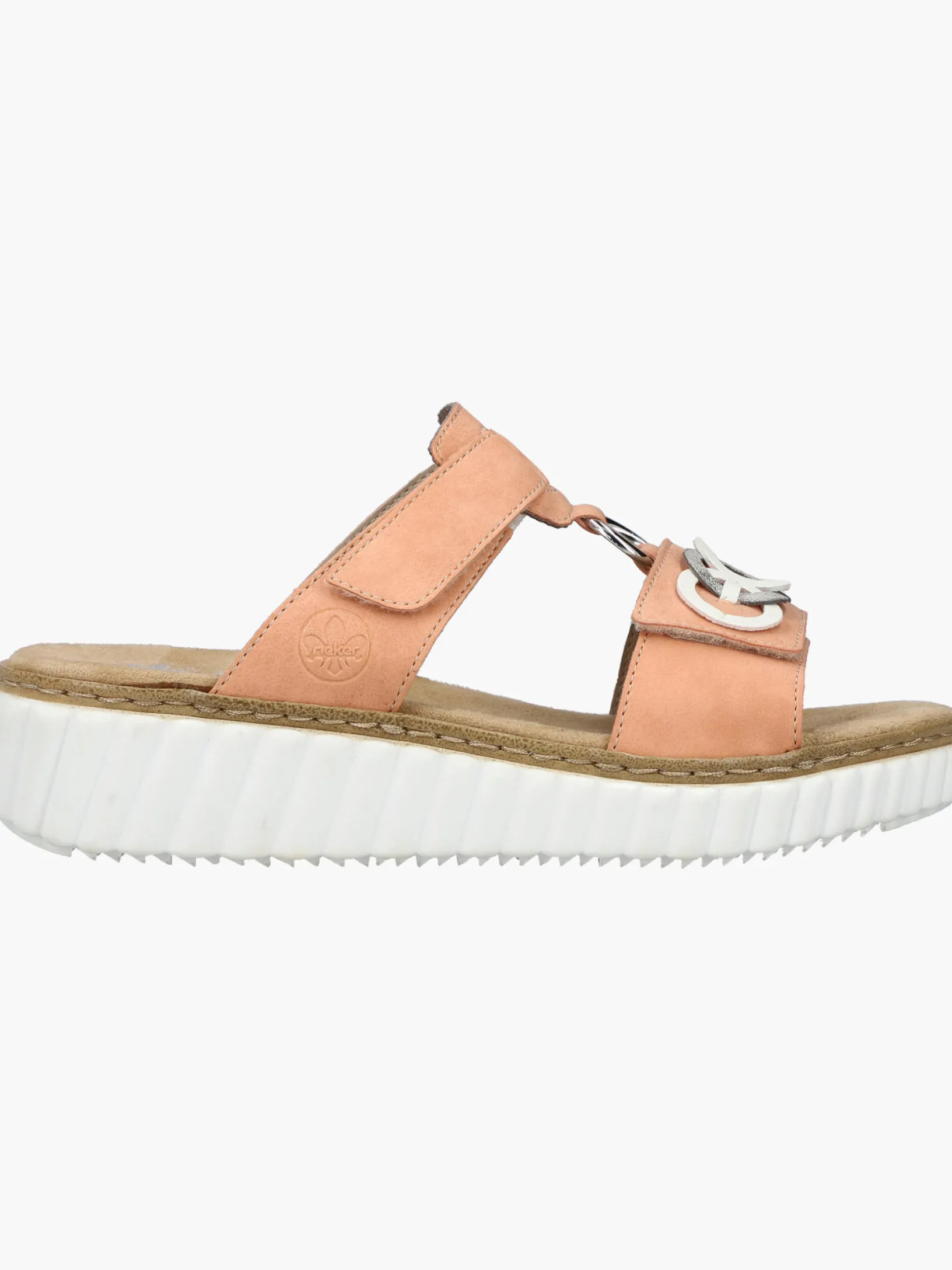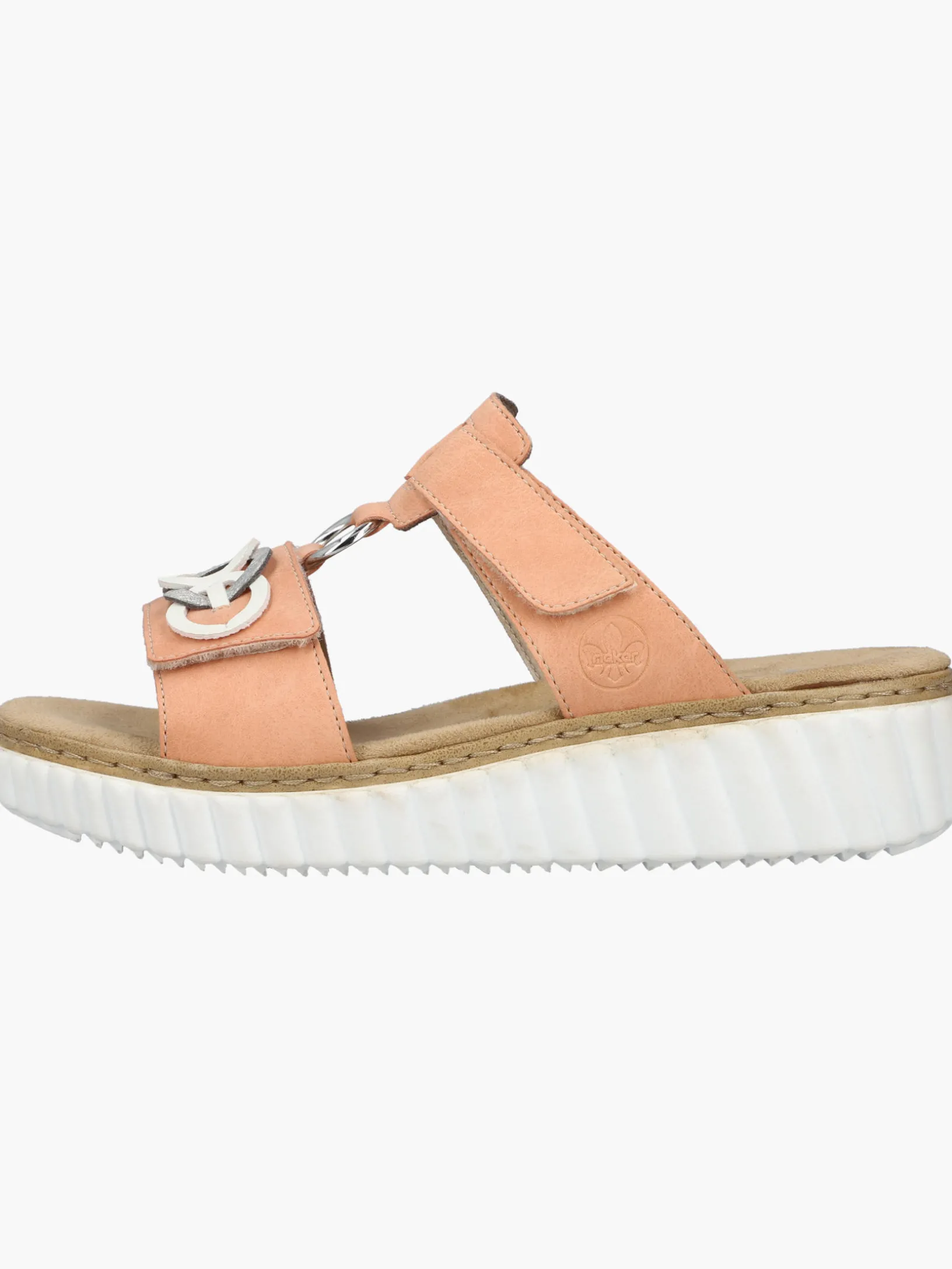 Happy feet, happy life! Diese Rieker Pantoletten für Damen in Pfirsichfarben lassen deine Füße so richtig den Sommer spüren. Der Klettverschluss ermöglicht einen schnellen Einstieg und hält den Schuh ideal am Fuß. Der dekorative Schmuckdekor ist ein hübsches Detail. Der offene Schuh sowie die schockabsorbierende und sehr leichte Sohle mit Keilabsatz sorgen für anhaltendes Wohlgefühl. Ein weiteres Plus ist die extra weiche Decksohle. Durch die Extraweite H haben die Füße mehr Platz im Schuh. Hineinschlüpfen und wohlfühlen!