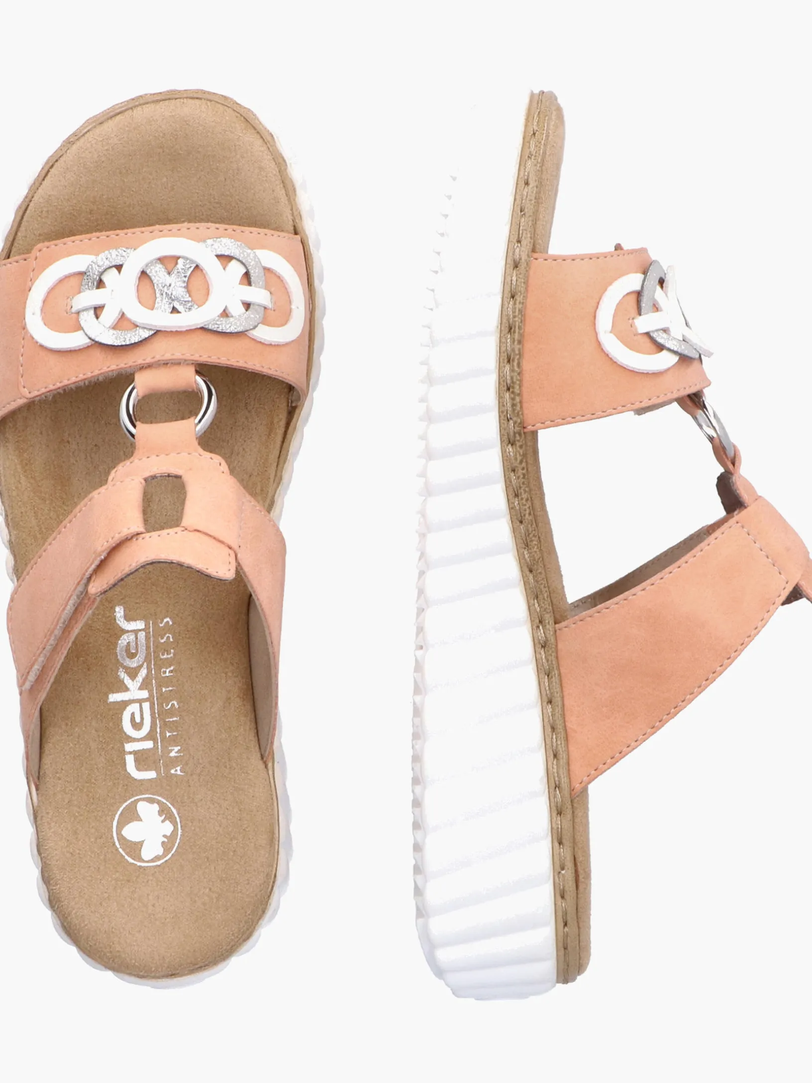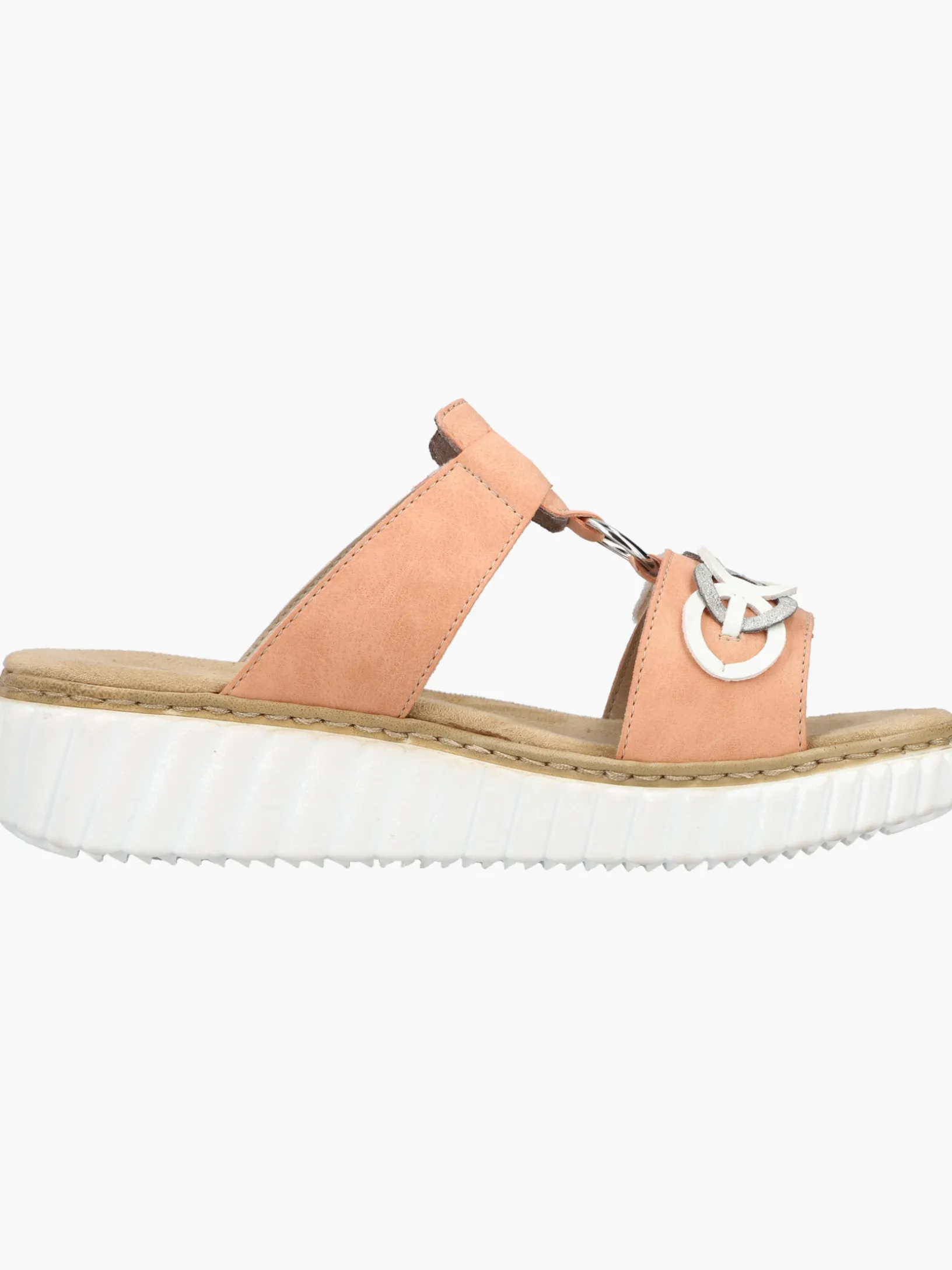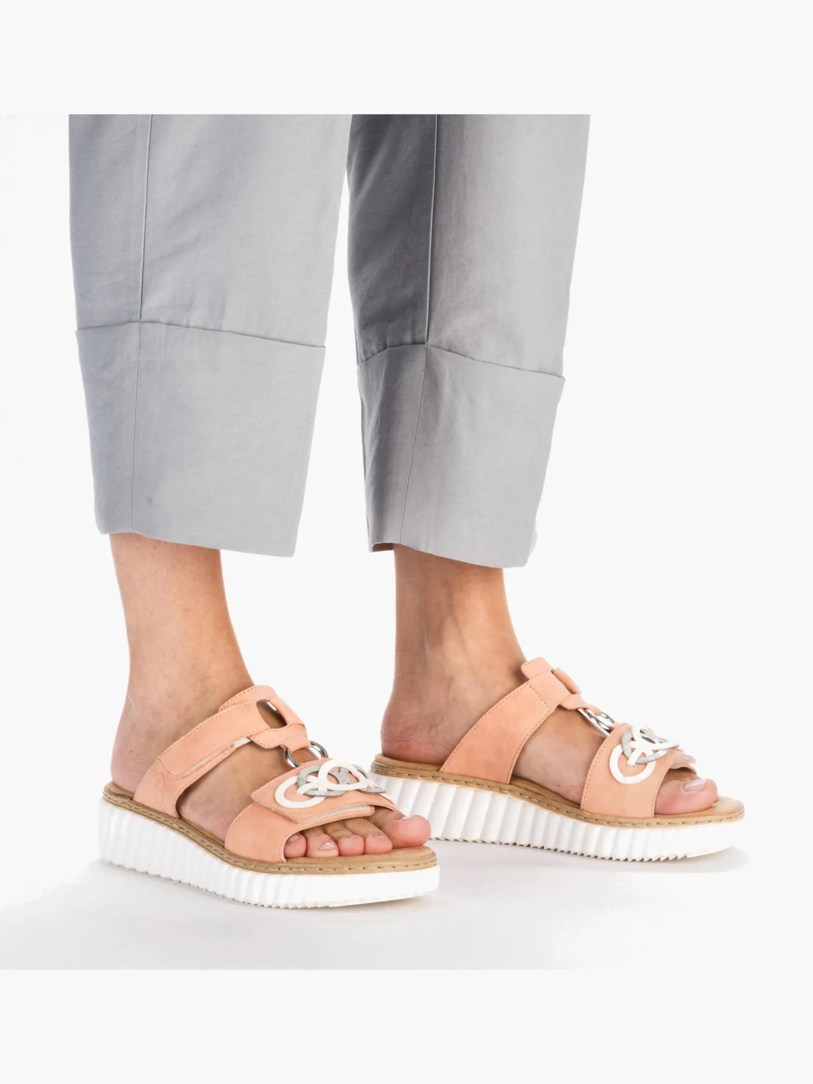 Happy feet, happy life! Diese Rieker Pantoletten für Damen in Pfirsichfarben lassen deine Füße so richtig den Sommer spüren. Der Klettverschluss ermöglicht einen schnellen Einstieg und hält den Schuh ideal am Fuß. Der dekorative Schmuckdekor ist ein hübsches Detail. Der offene Schuh sowie die schockabsorbierende und sehr leichte Sohle mit Keilabsatz sorgen für anhaltendes Wohlgefühl. Ein weiteres Plus ist die extra weiche Decksohle. Durch die Extraweite H haben die Füße mehr Platz im Schuh. Hineinschlüpfen und wohlfühlen!
