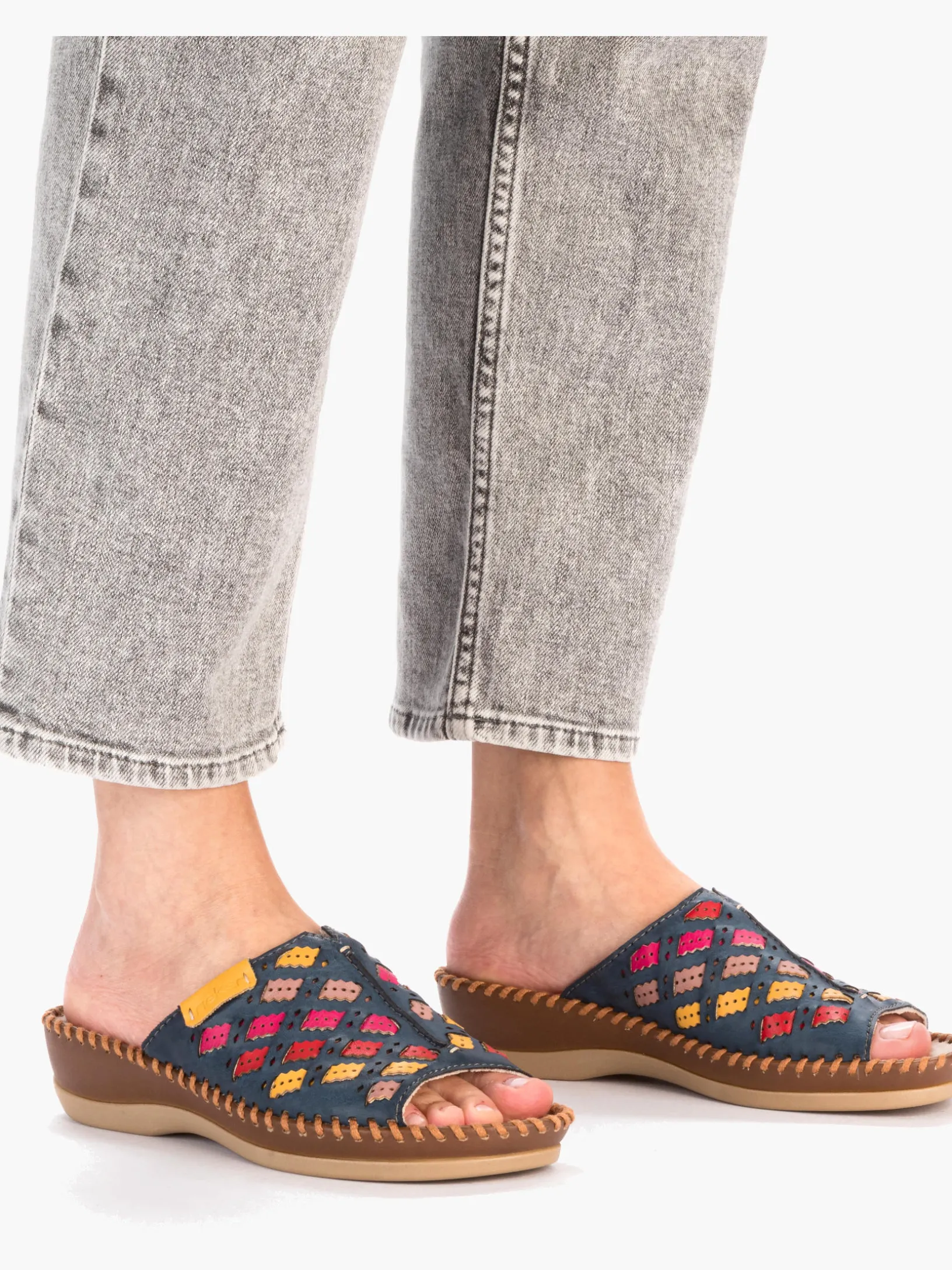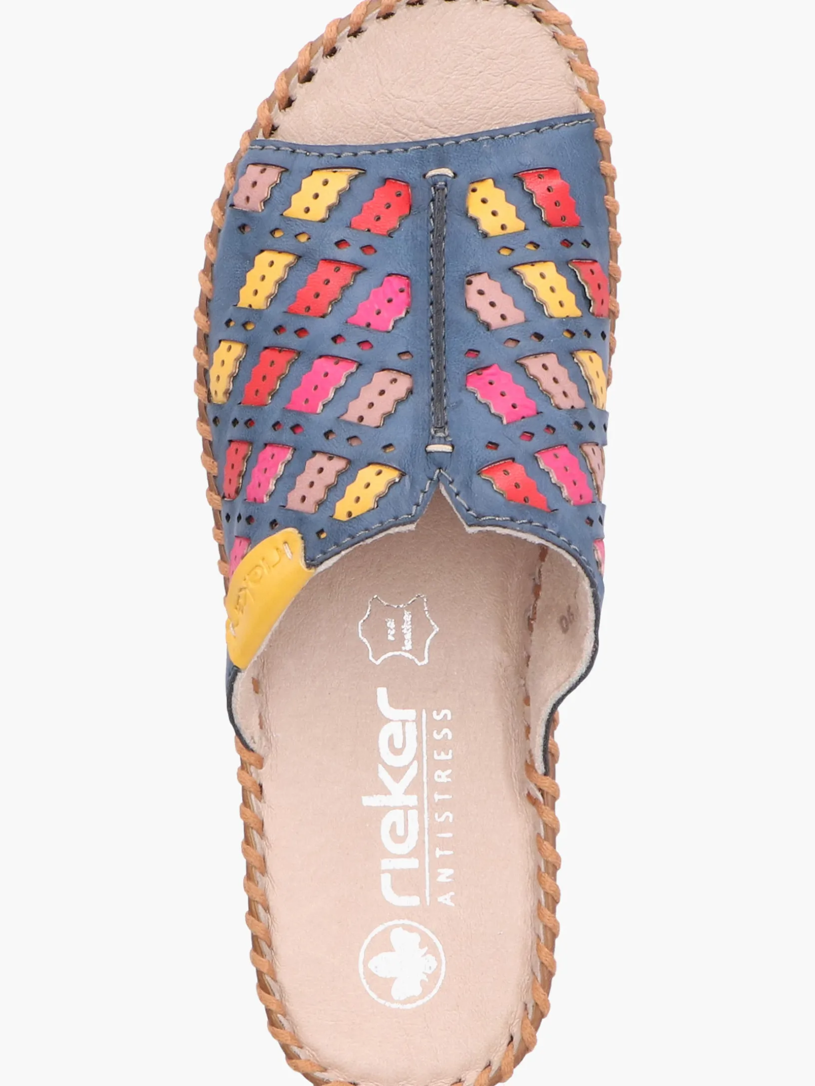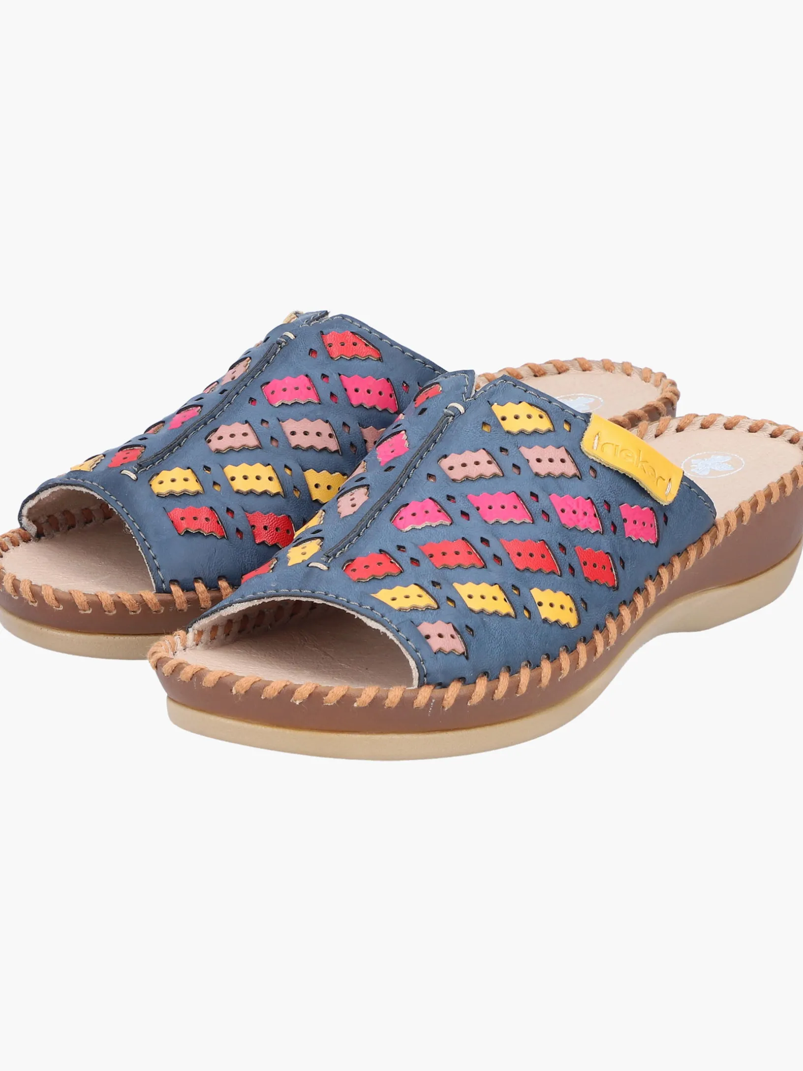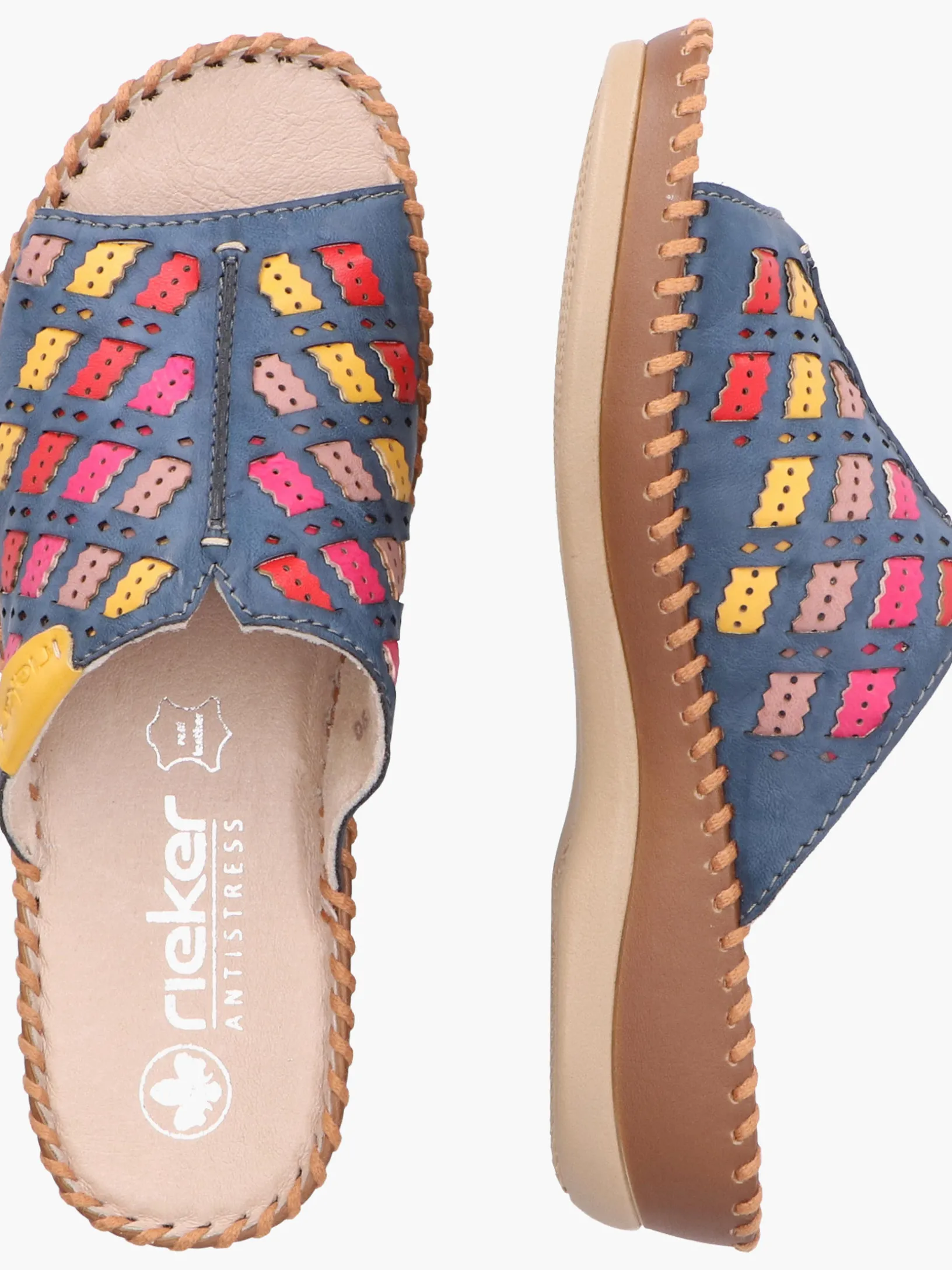 Achtung Trendalarm! Diese Rieker Pantoletten für Damen in Meeresblau bringen dich garantiert in Urlaubsstimmung. Der Schuh kann ohne Verschluss ganz einfach durch Hineinschlüpfen angezogen werden. Der offene Schuh sowie die schockabsorbierende und leichte Sohle sorgen für anhaltendes Wohlgefühl. Ein weiteres Plus ist die extra weiche Decksohle. Das Modell ist in Komfortweite G geschnitten und sichert dem Fuß genügend Freiraum. Also nichts wie los!
