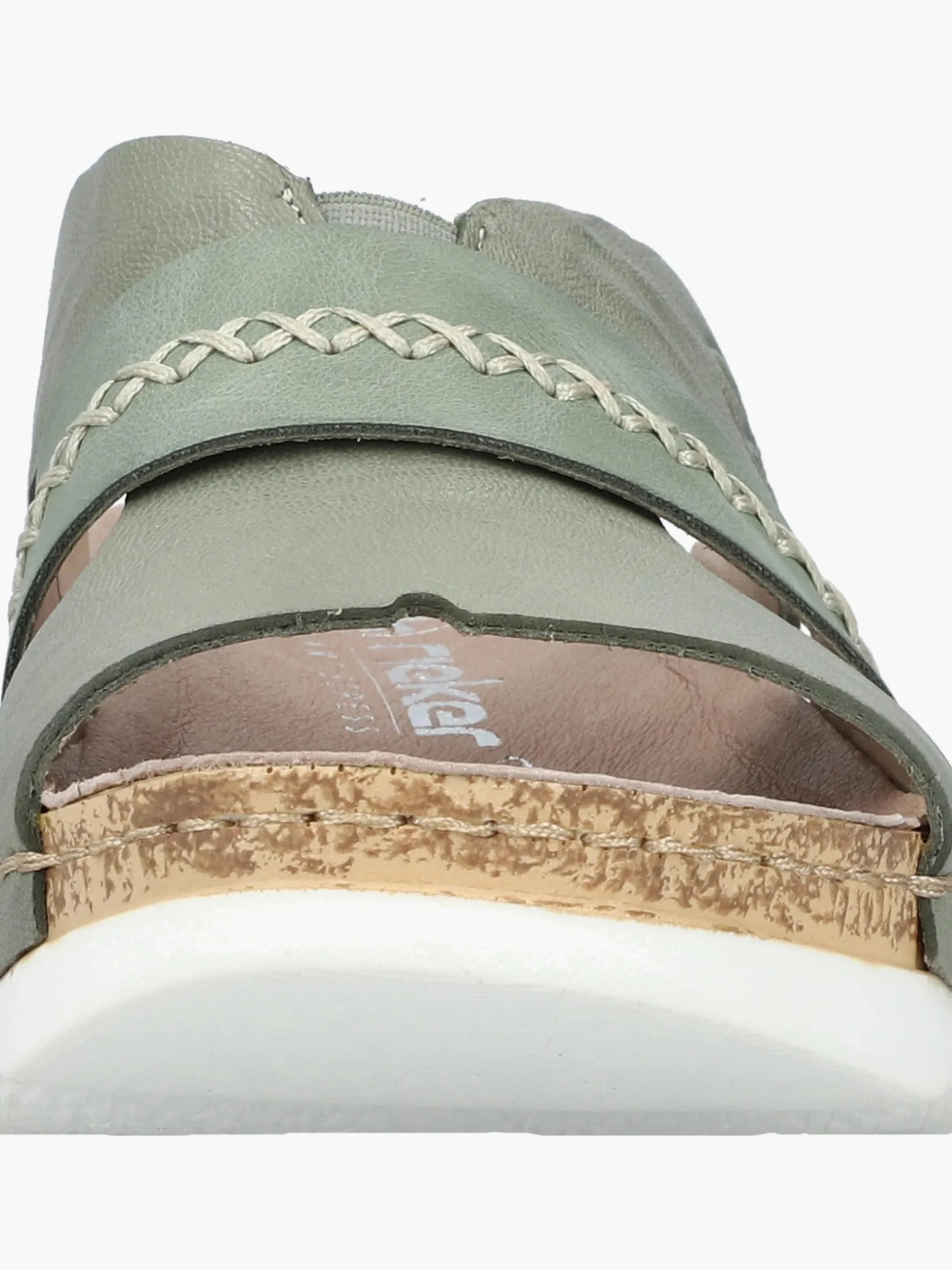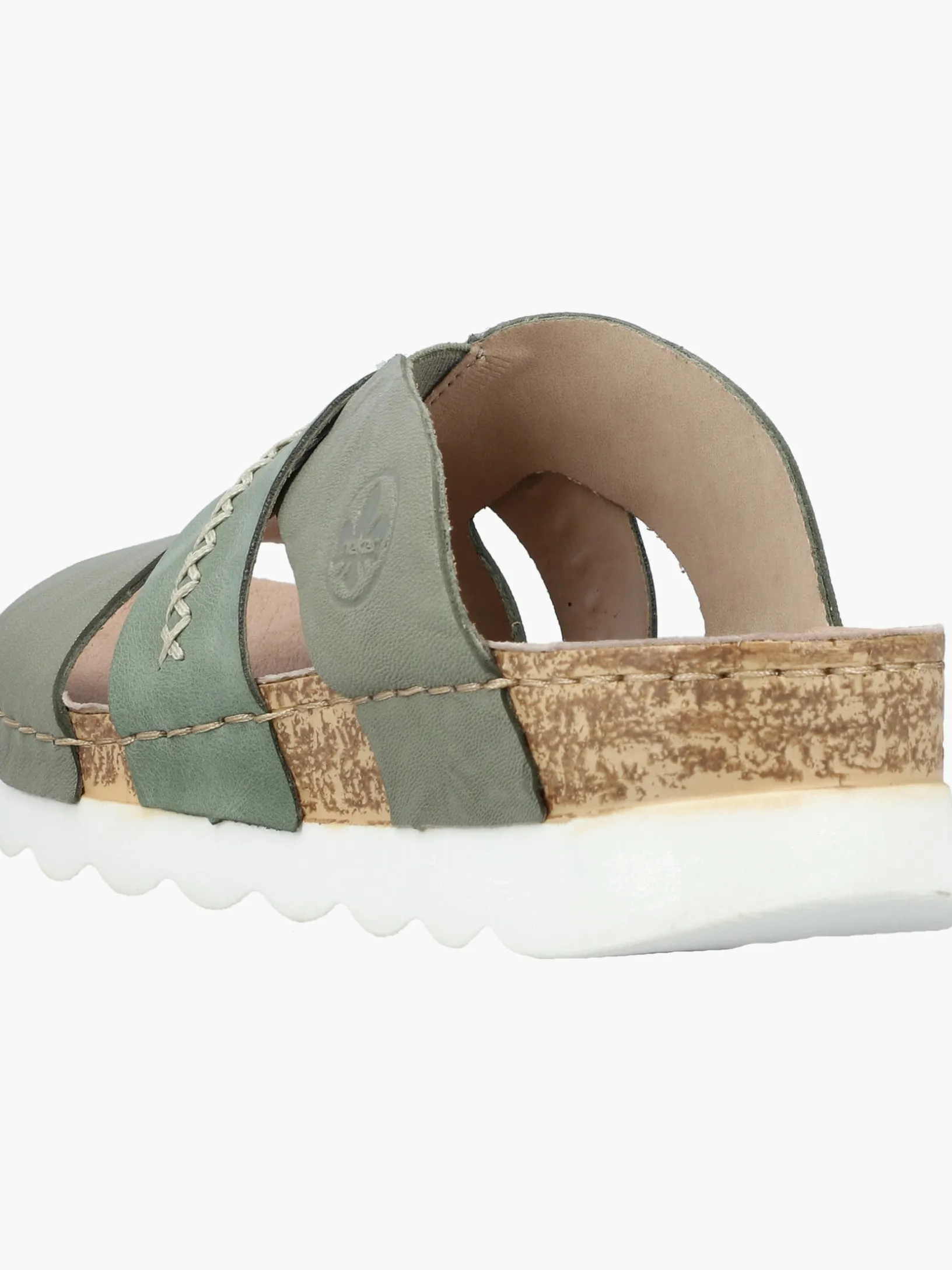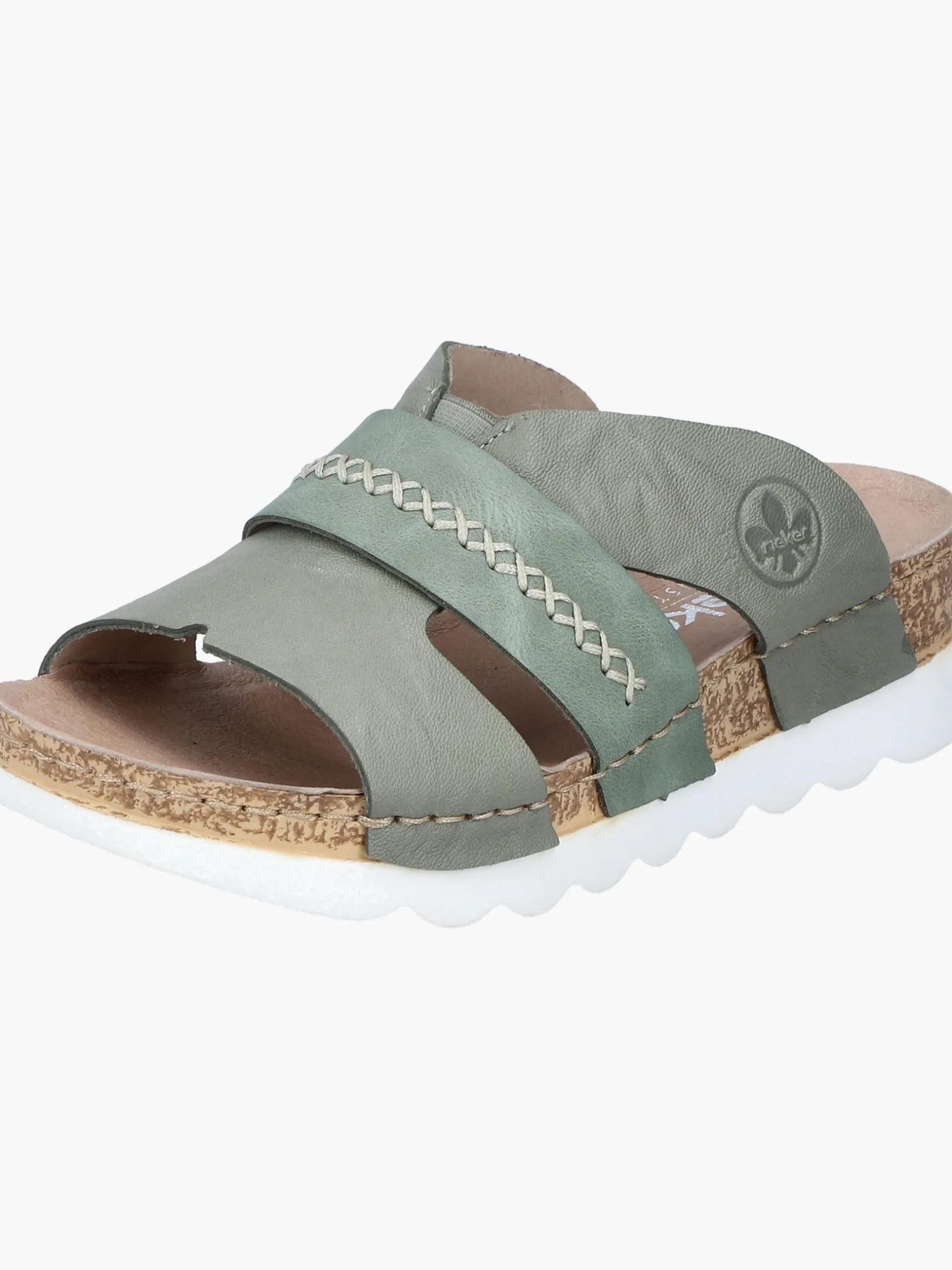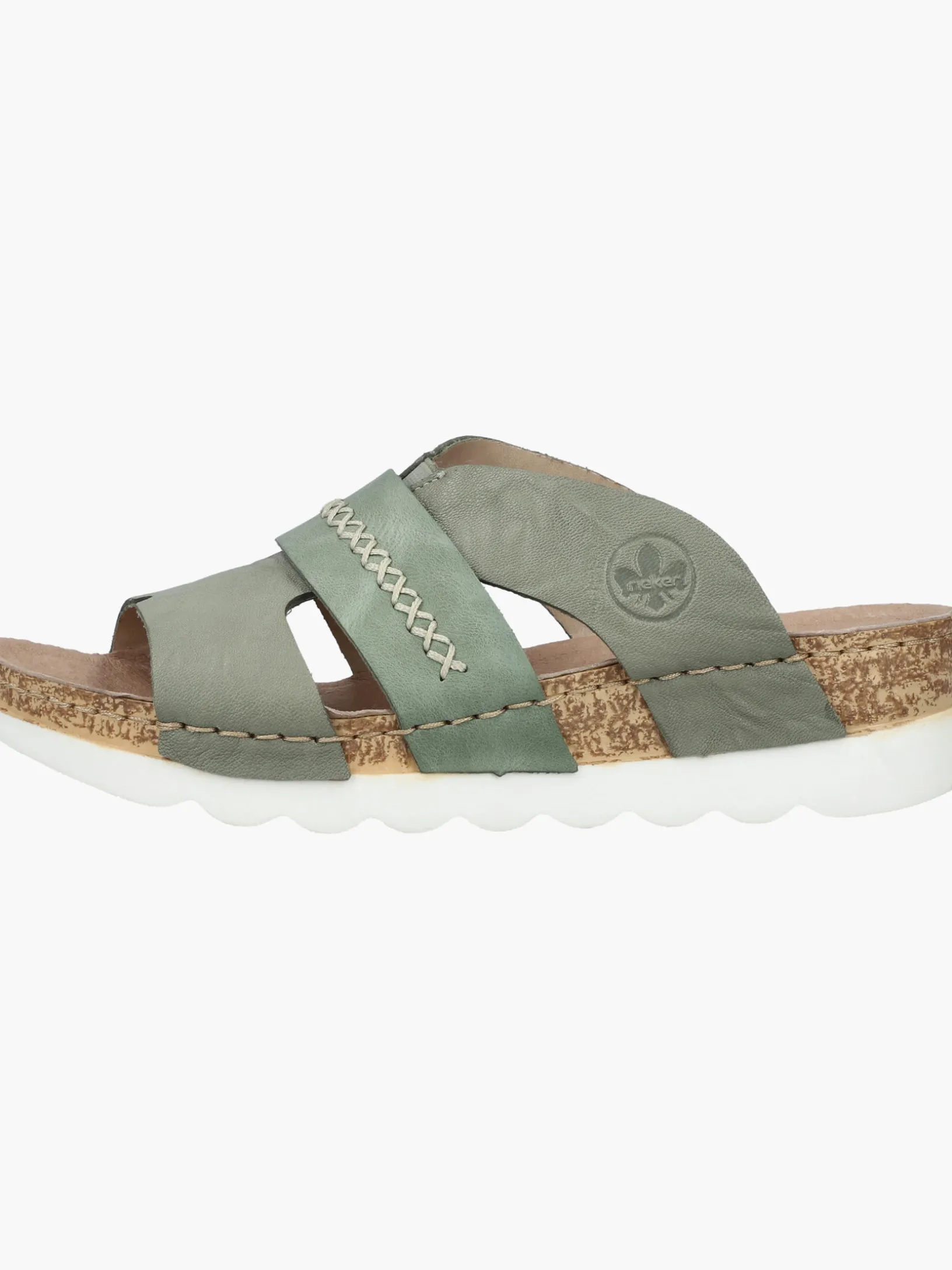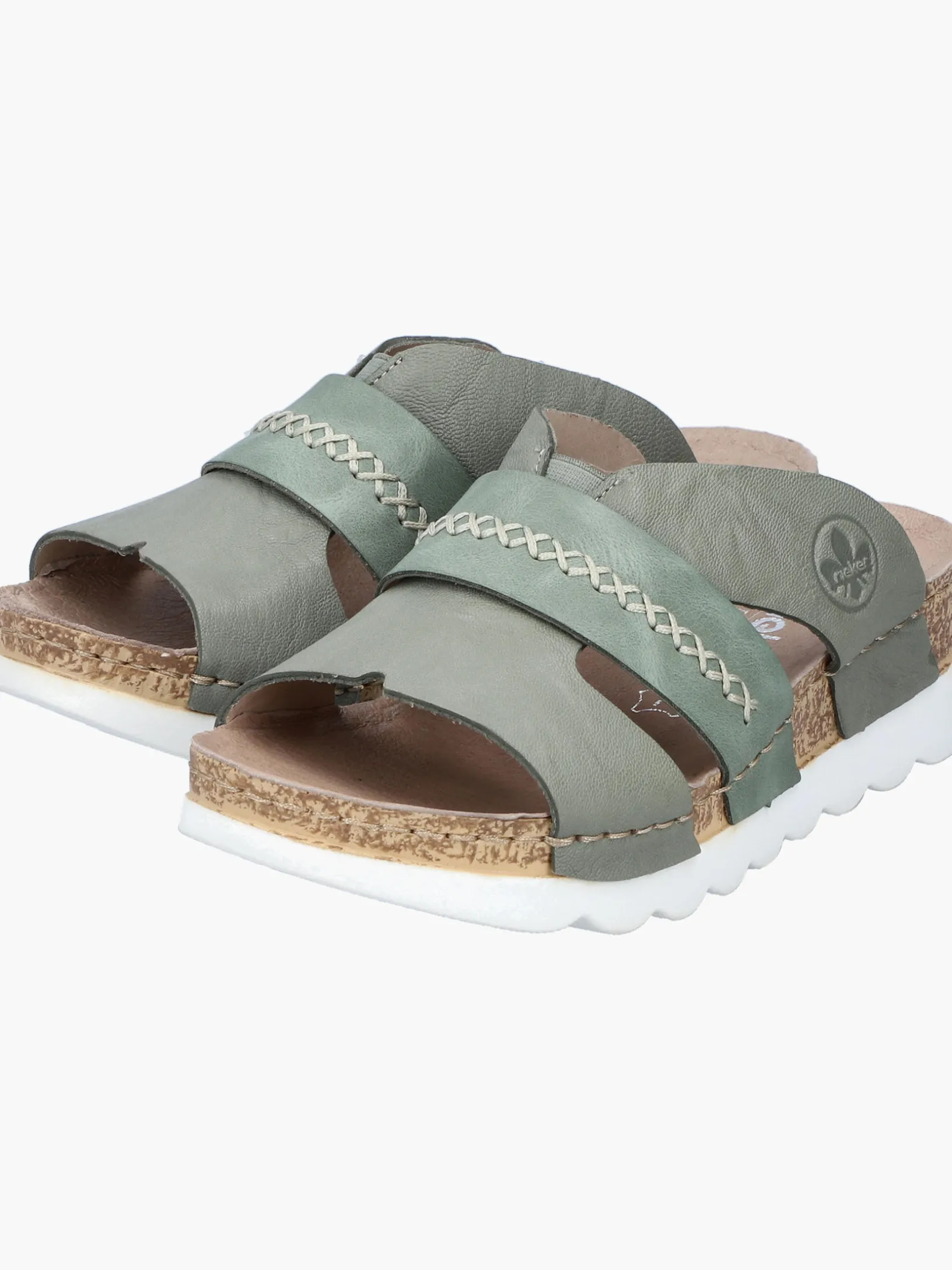 Easy walking, easy living! Diese lässigen grüngrauen Rieker Pantoletten für Damen aus Glattleder sind gemütliche Begleiter auf all deinen Wegen. Der Schuh kann ohne Verschluss ganz einfach durch Hineinschlüpfen angezogen werden. Die groben Ziernähte runden das moderne Design perfekt ab. Die schockabsorbierende und leichte Sohle der Pantoletten bietet besten Gehkomfort. So machen die warmen Tage Spaß!