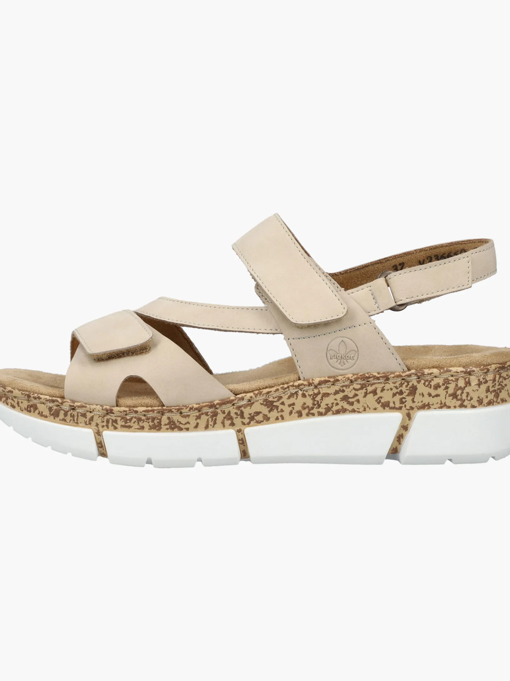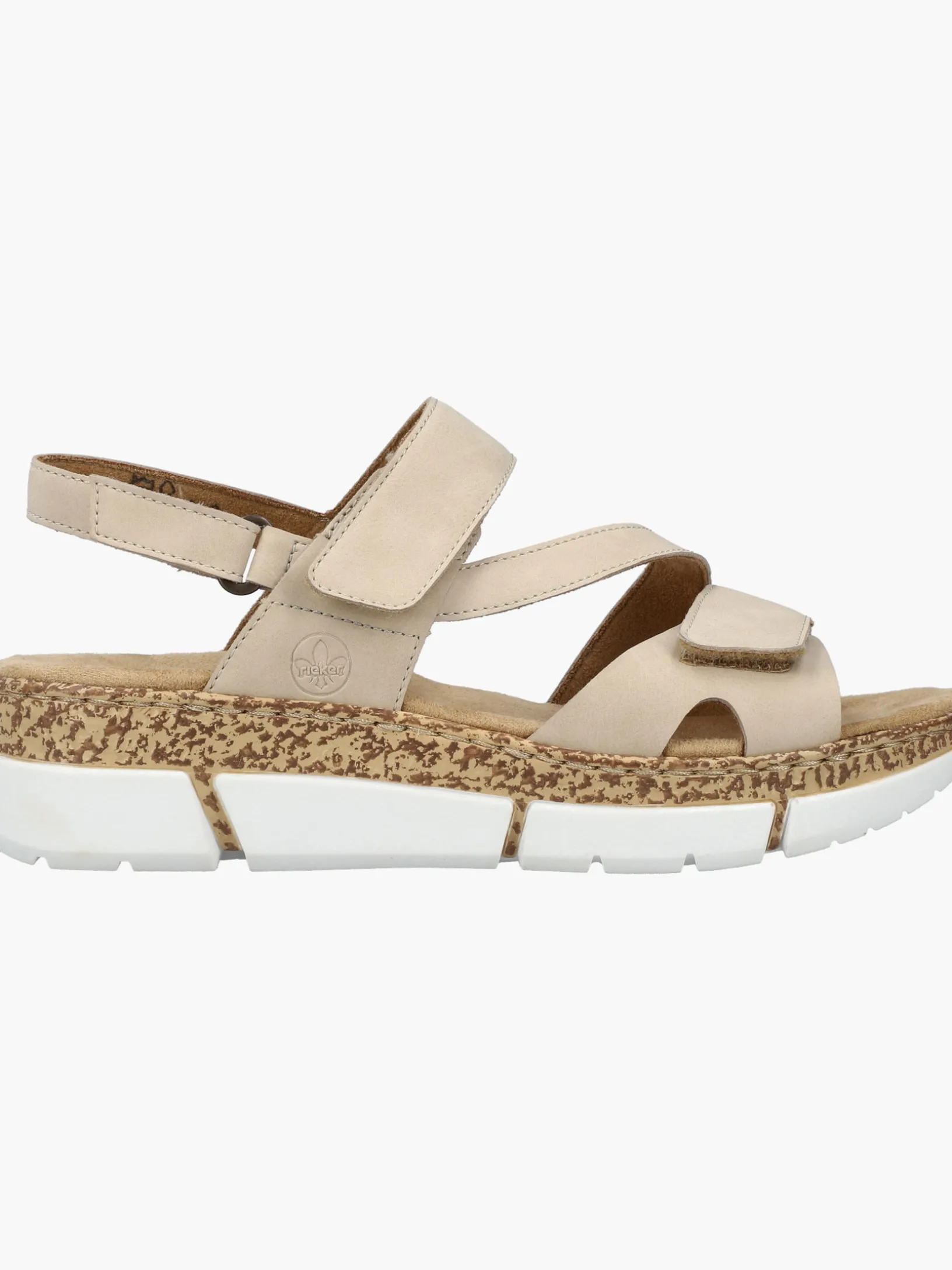Lieblingsschuh-Potential! Mit diesen Rieker Riemchensandalen für Damen in Hellbeige kannst du dich noch mehr auf das schöne Wetter freuen, und: Sie sind eines unserer exklusiven „150 Jahre Rieker“ Jubiläumsmodelle! Dank breiter Riemen und einem Klettverschluss passt sich der Schuh dem Fuß individuell an. Für zusätzlichen Halt sorgt der schmale Fersenriemen. Die leichte und schockabsorbierende Plateausohle bietet anhaltendes Wohlgefühl ‒ auch an langen Tagen. Darüber hinaus ist die Decksohle extra weich. Durch die schmale Passform E 1/2 sitzt der Schuh angenehm eng, ohne dabei zu drücken. Modisches Wellness-Feeling im Stil von Rieker!