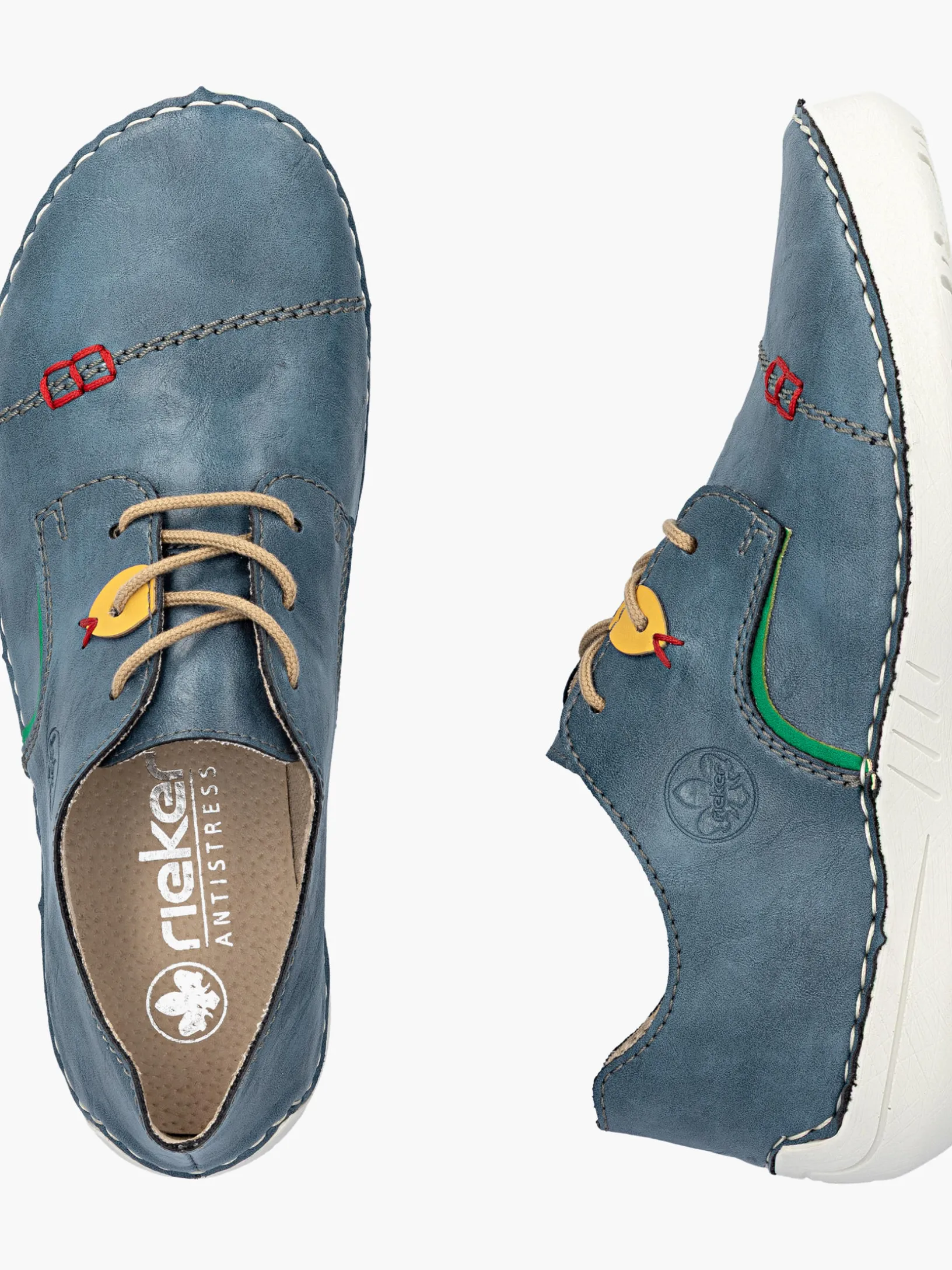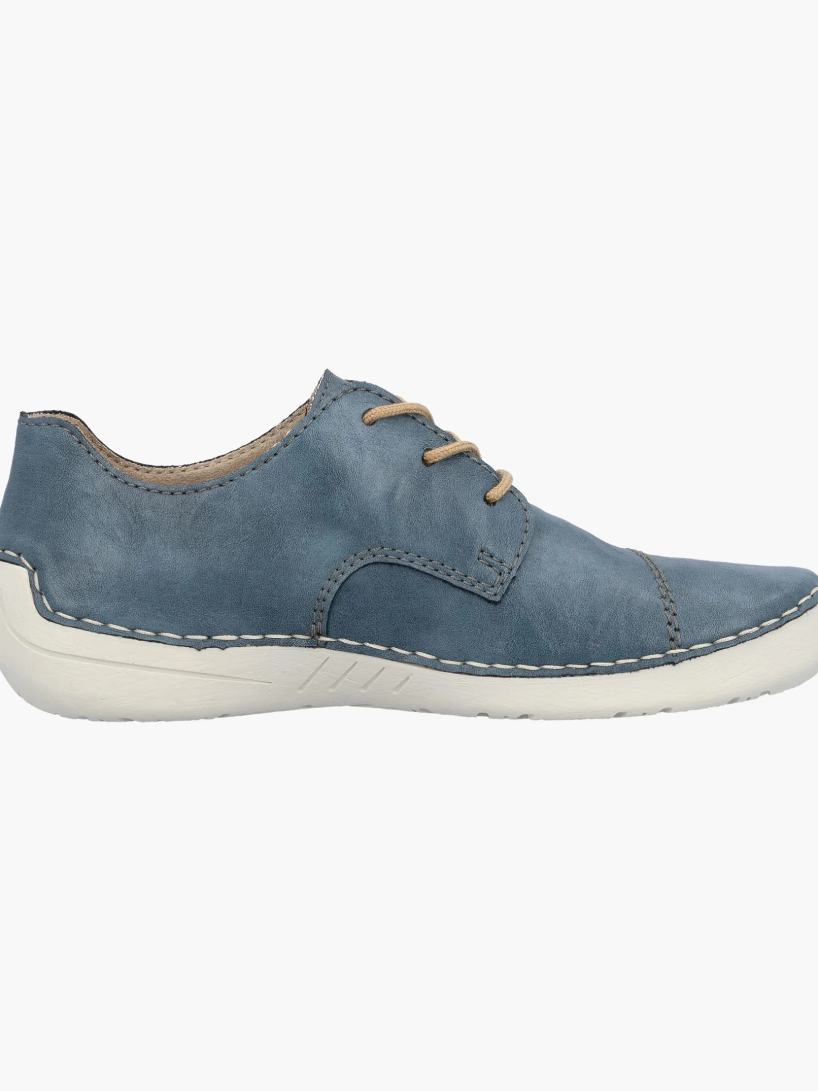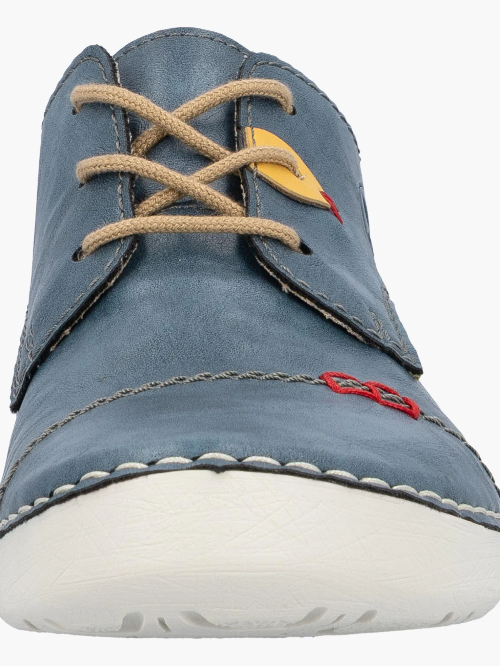 Alleskönner! Diese lässigen schieferblauen Rieker Schnürschuhe für Damen sind gemütliche Begleiter auf all deinen Wegen. Außerdem werden guter Halt und perfekte Passform durch die helle Schnürung garantiert. Die Ziernähte setzen hübsche Akzente. Mit der leichten und schockabsorbierenden Sohle werden deine Füße bei jedem Schritt verwöhnt und die extra weiche Decksohle ist ein weiteres Plus. Was will man mehr?