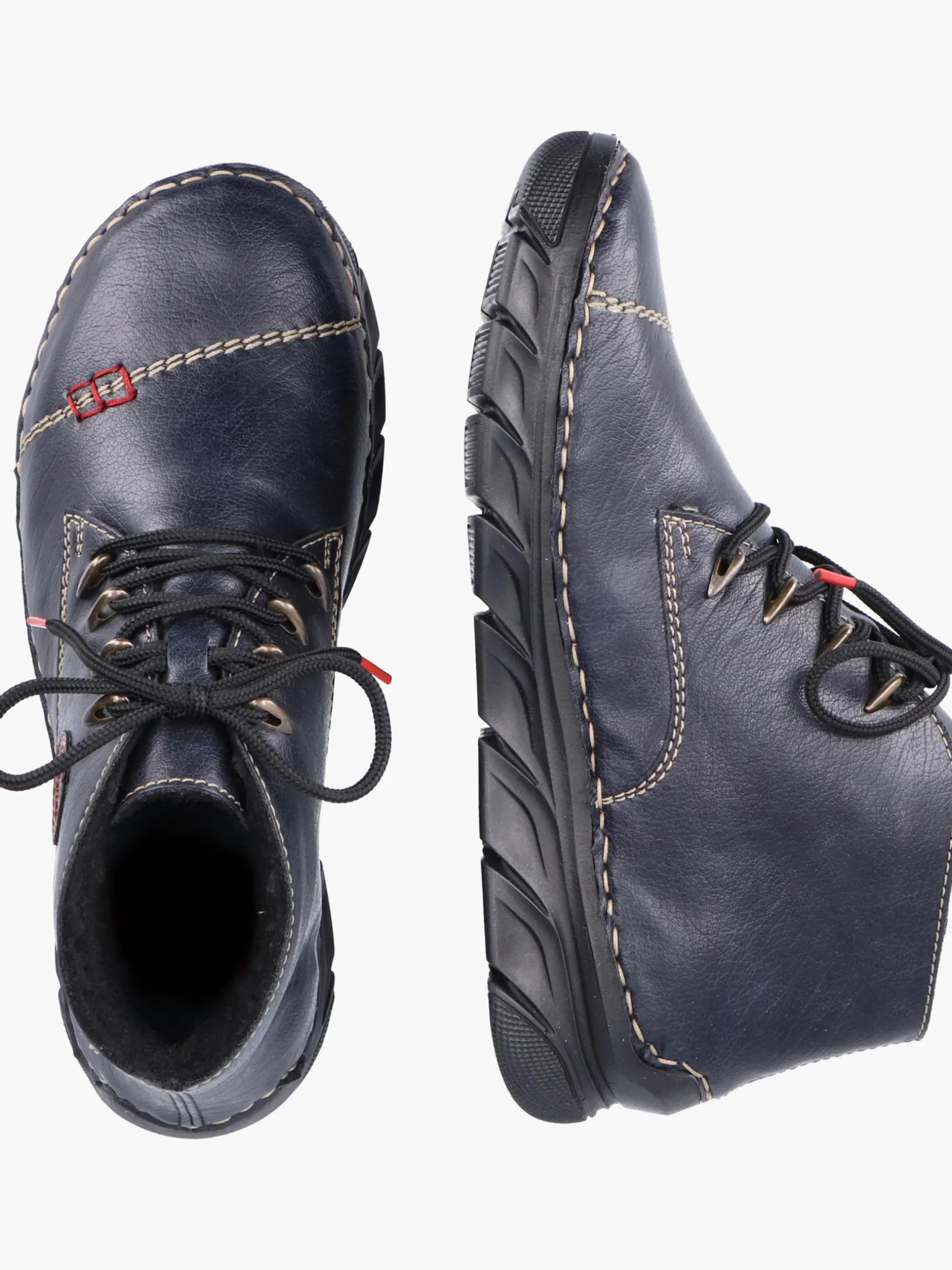 Robustheit gepaart mit Gemütlichkeit! Diese lässigen marineblauen Schnürschuhe von Rieker sind gemütliche Begleiter auf all deinen Wegen. Zudem sorgt die schwarze Schnürung dafür, dass der Schuh jederzeit gut sitzt. Der gestickte Logo in Knopfoptik setzt einen frischen Akzent. Mit der schockabsorbierenden und sehr leichten Sohle freuen sich die Füße über besten Laufkomfort bei jedem Schritt. Darüber hinaus ist die Decksohle extra weich. Das weiche Warmfutter bietet ausgezeichneten Kälteschutz. Was will man mehr?