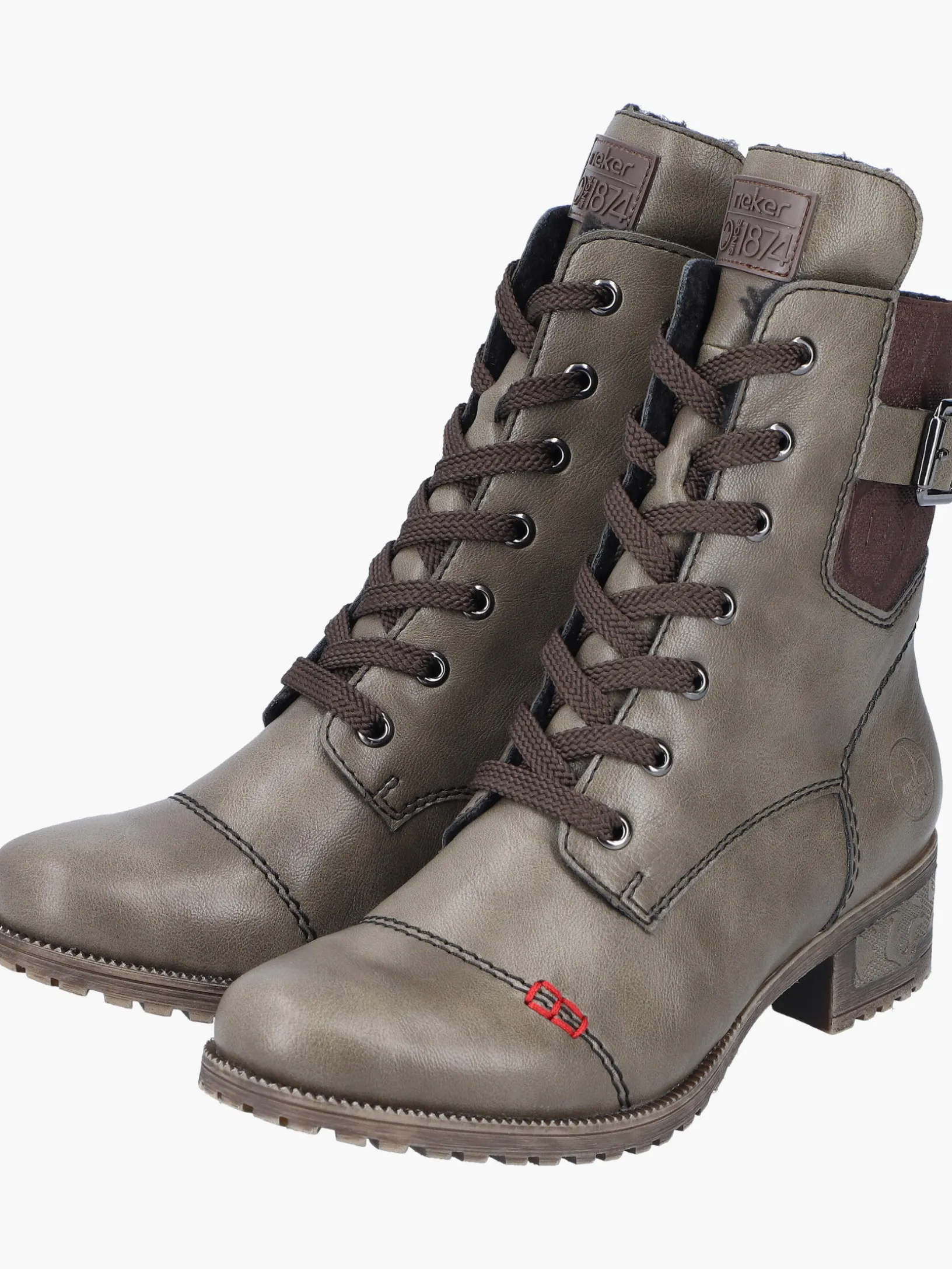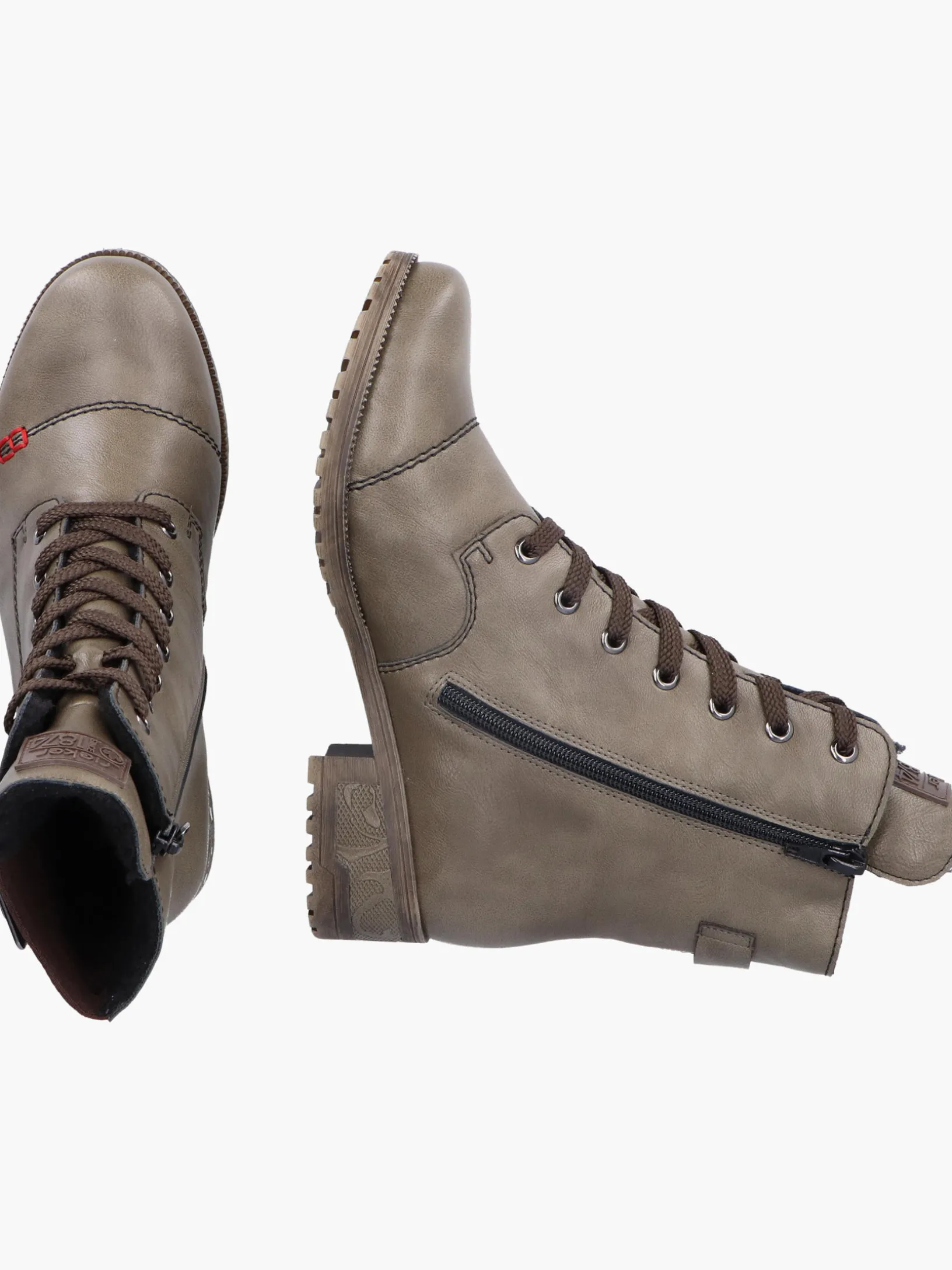 Lieblingsschuh-Potential! Ohne diese stylischen armeegrünen Schnürstiefel von Rieker würde die kalte Saison nur halb so viel Spaß machen. Die clevere Kombination aus Schnürung und Reißverschluss gibt idealen Halt und ermöglicht ein einfaches An- und Ausziehen. Ein schöner Hingucker ist die dekorative Schnalle an der Seite. Durch die robuste Profilsohle mit Blockabsatz ist jeder Schritt eine sichere Angelegenheit und die Decksohle ist extra weich. Kuscheliges Warmfutter hält die Füße garantiert den ganzen Tag über schön warm. Mehr geht nicht!