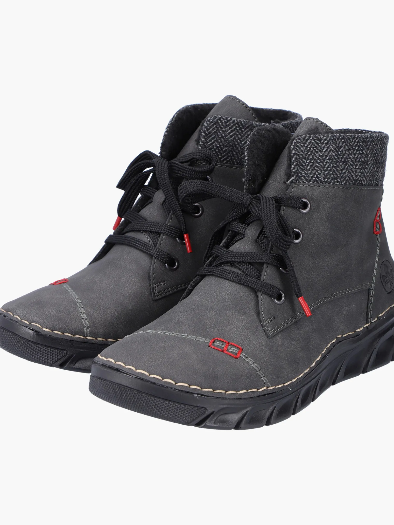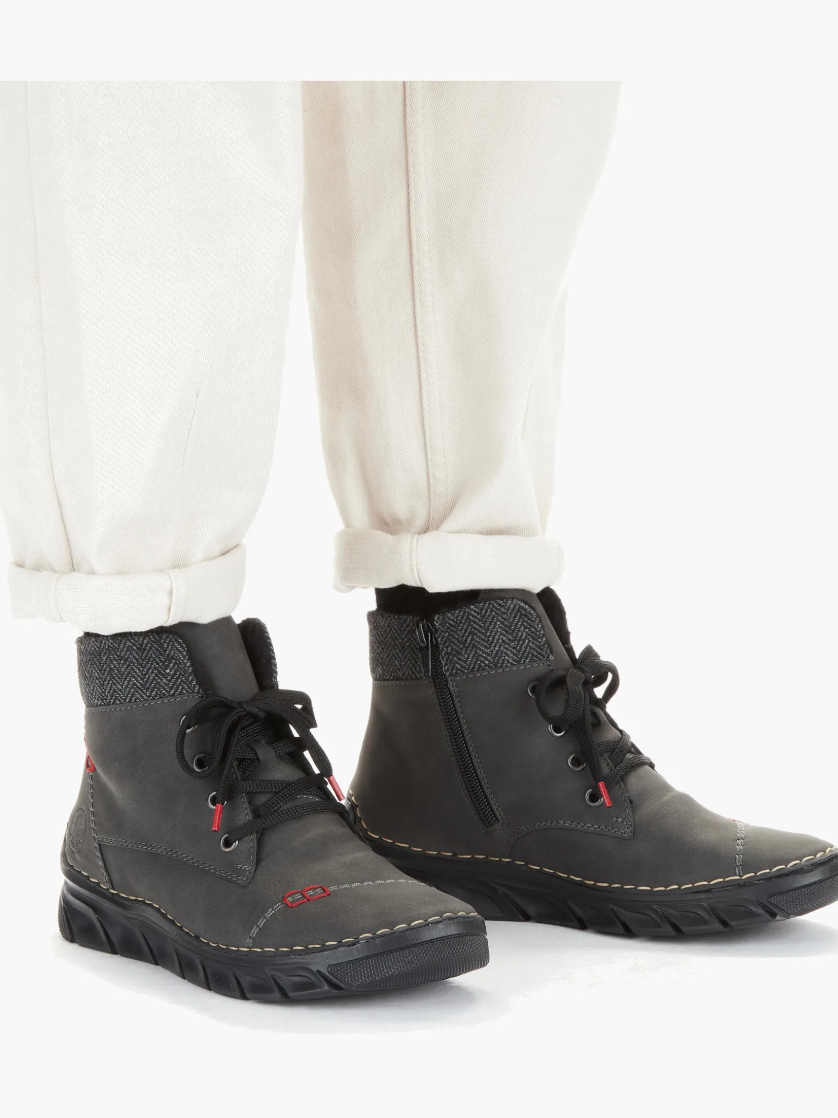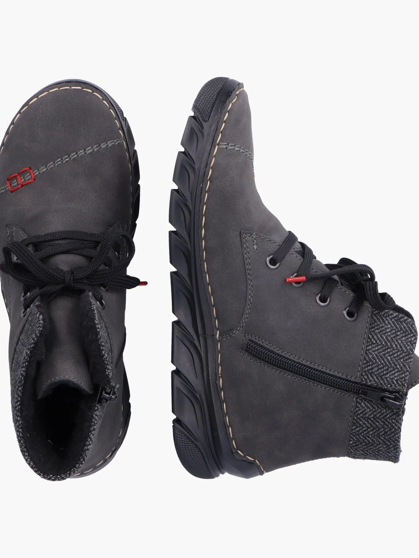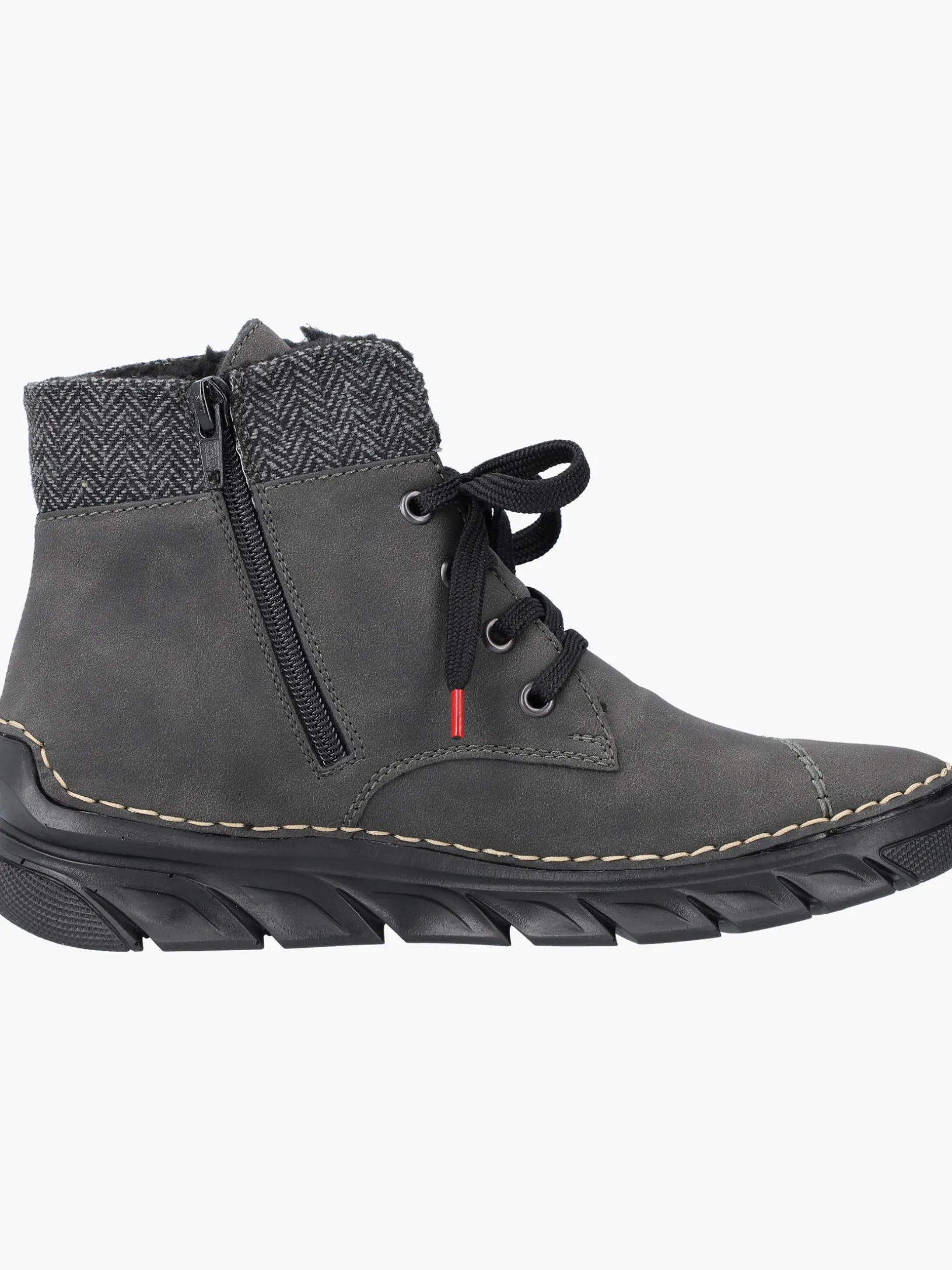 Die Kälte kann dir gar nichts! Diese grauen Schnürstiefel von Rieker wurden aufwendig verarbeitet. Die Schnürung wird durch einen Reißverschluss ergänzt und garantiert somit idealen Halt und eine perfekte Passform. Mit der sehr leichten und schockabsorbierenden Sohle werden deine Füße bei jedem Schritt verwöhnt und die extra weiche Decksohle sorgt für mehr Tragekomfort. Weiches Warmfutter macht diesen Schnürstiefel zum optimalen Begleiter – egal wann, egal wo! Alles in einem – top!