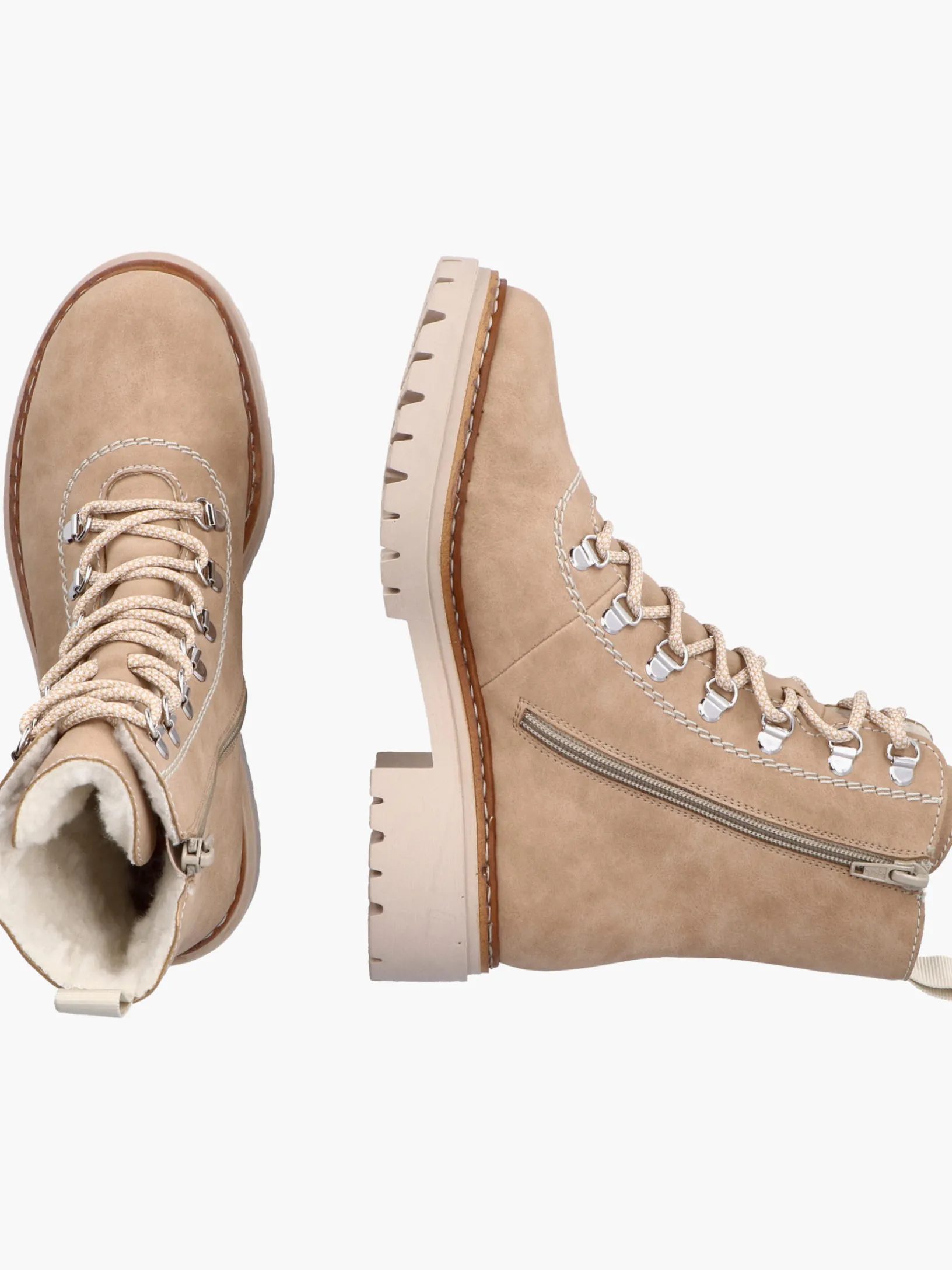 Fashion-Lovers aufgepasst: Die Rieker Must-Haves sind da! Diese braunbeigen Schnürstiefel von Rieker überzeugen durch modernes Design und hohen Tragekomfort. Die Schnürung wird durch einen Reißverschluss ergänzt und garantiert somit idealen Halt und eine perfekte Passform. Die schockabsorbierende und leichte Sohle sorgt für ein angenehmes Laufgefühl auch bei langem Tragen und die Decksohle ist extra weich. Für alle Ladies mit großen Füßen ist der Schnürstiefel auch in Übergrößen erhältlich. Das weiche Warmfutter hält die Füße kuschelig warm. Let´s rock the cold days!